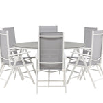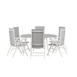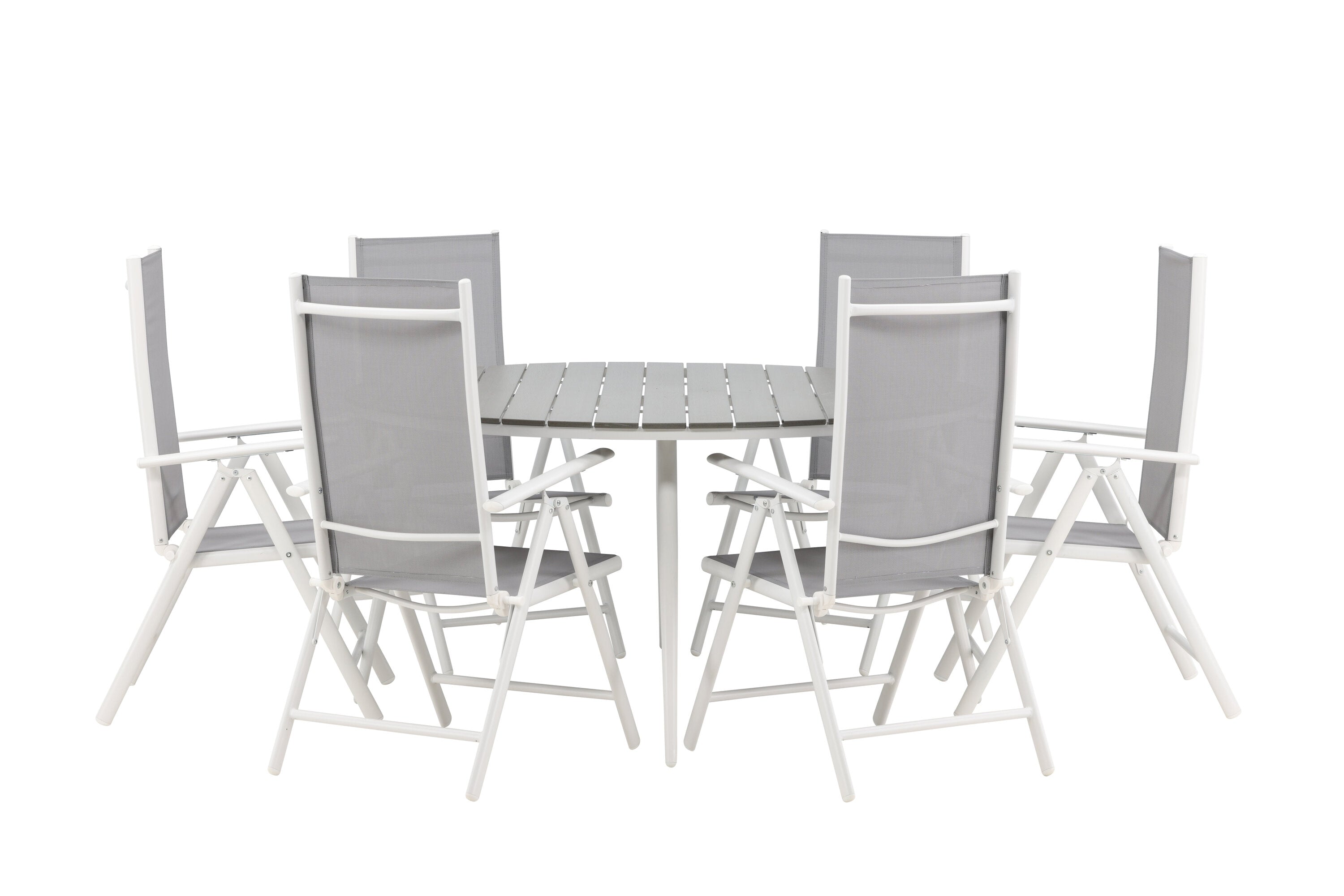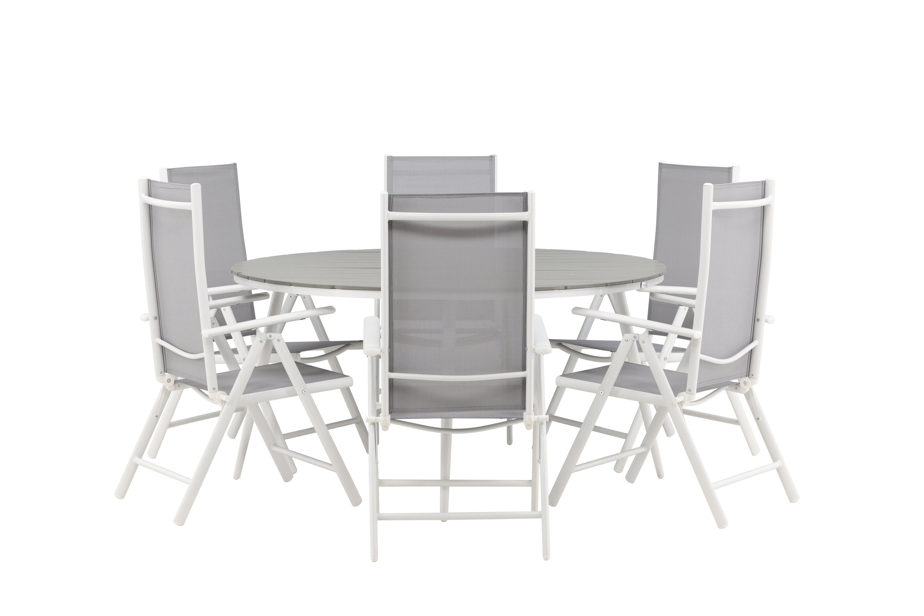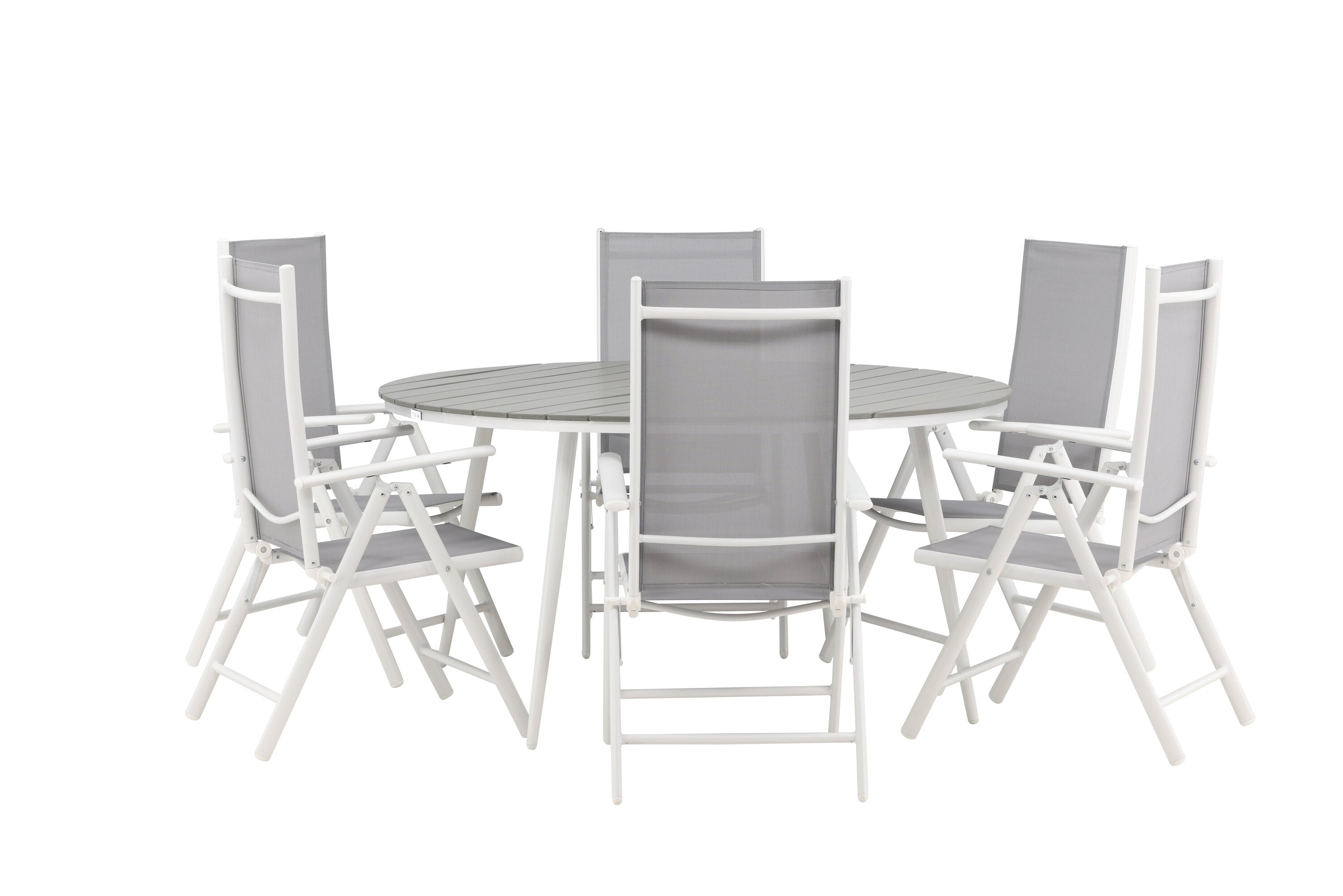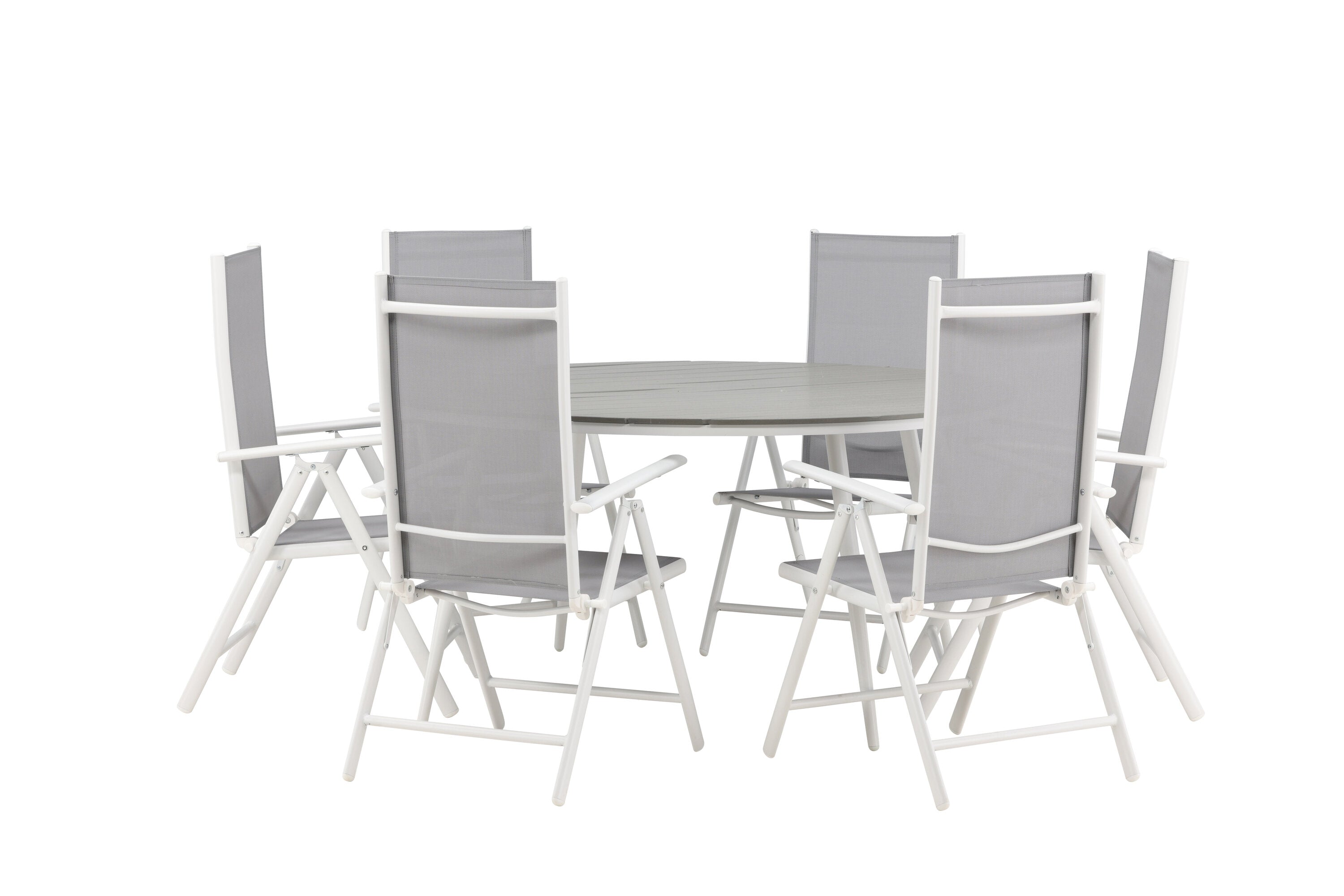 Break - Jídelní stůl kulatý- Bílá / Šedá - Alu / Aintwood - 150ø _1+ Break 5:pos Židle - Bílá/Šedá _6