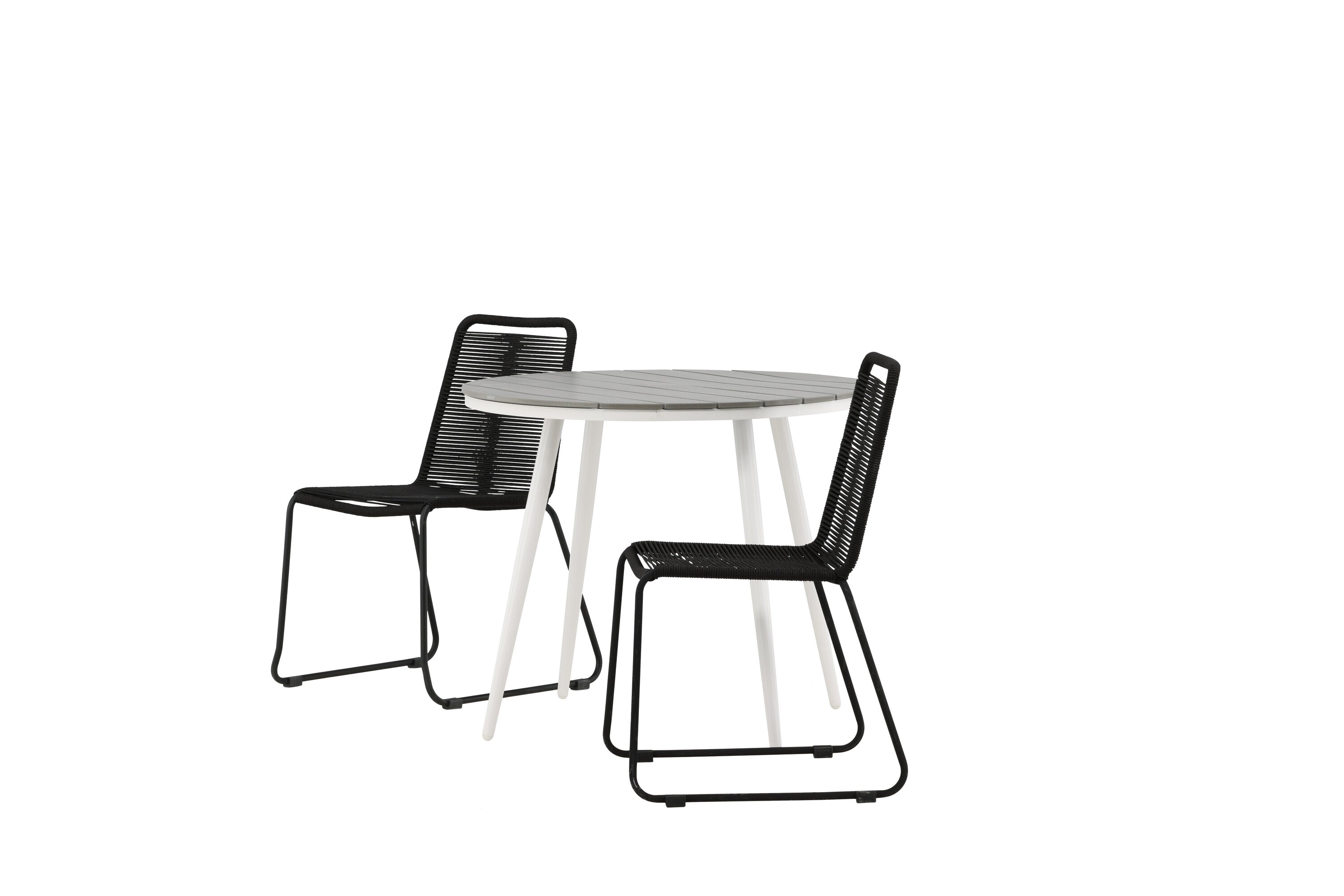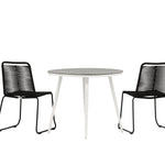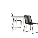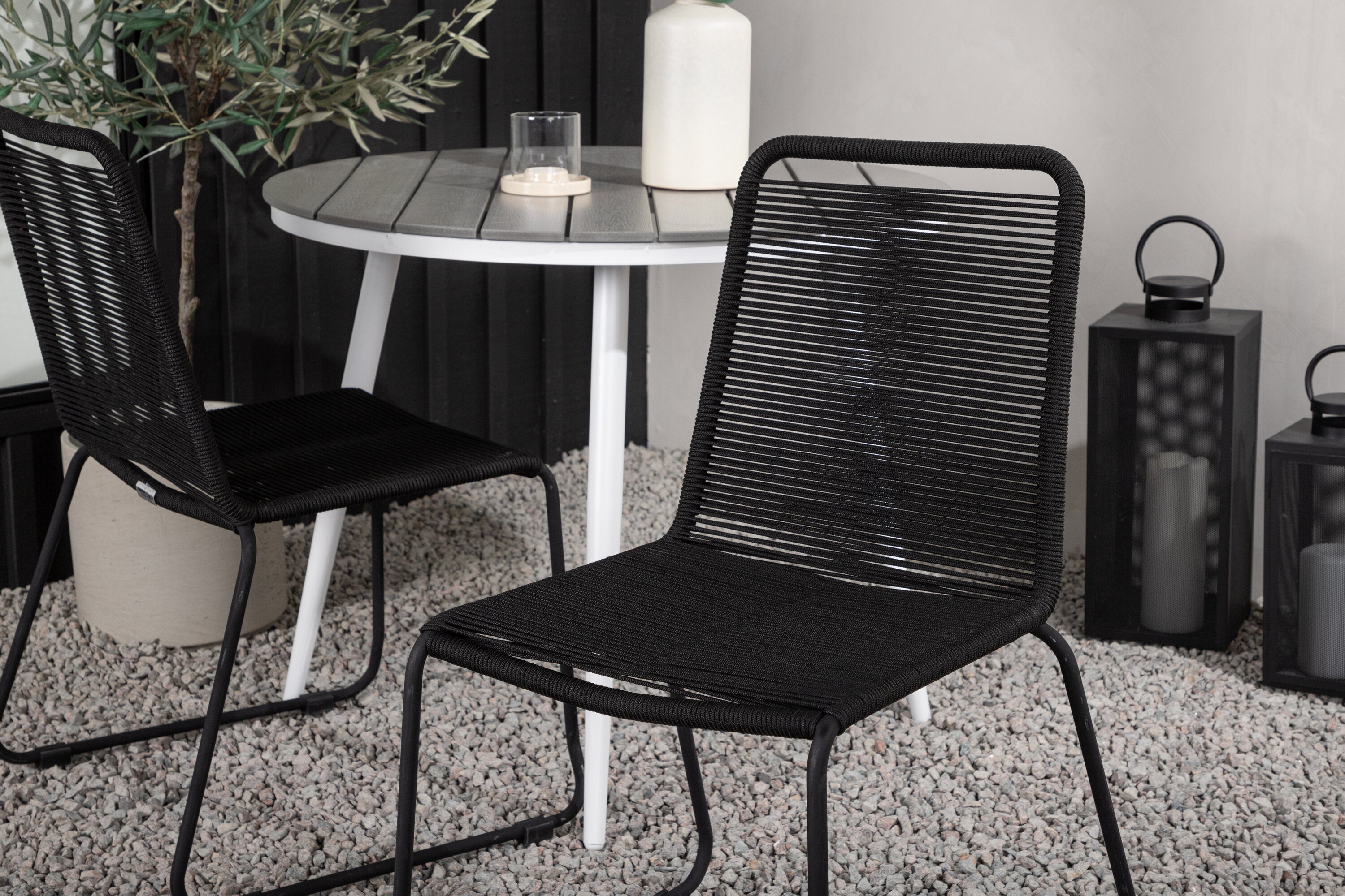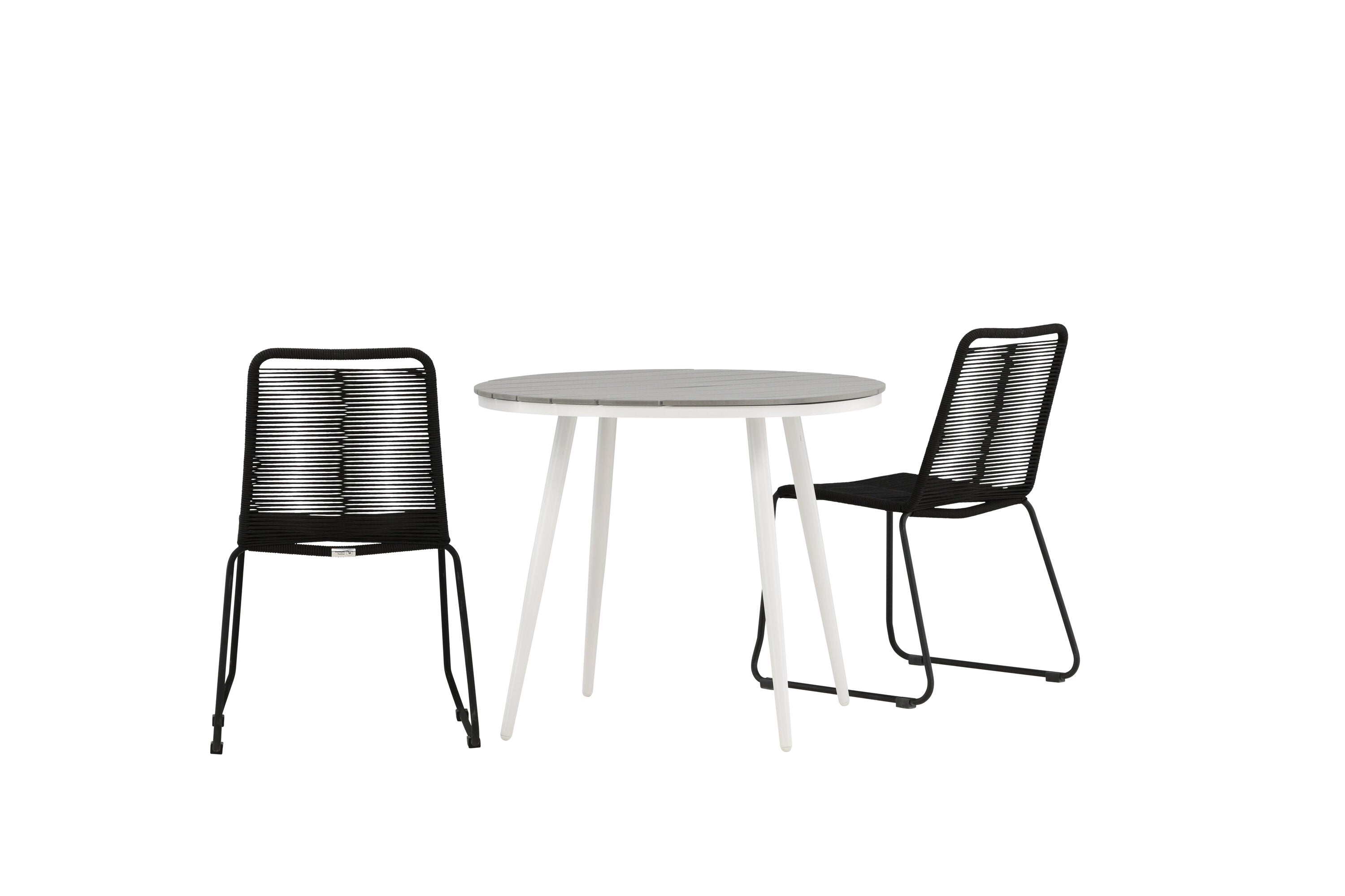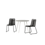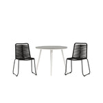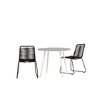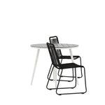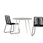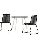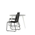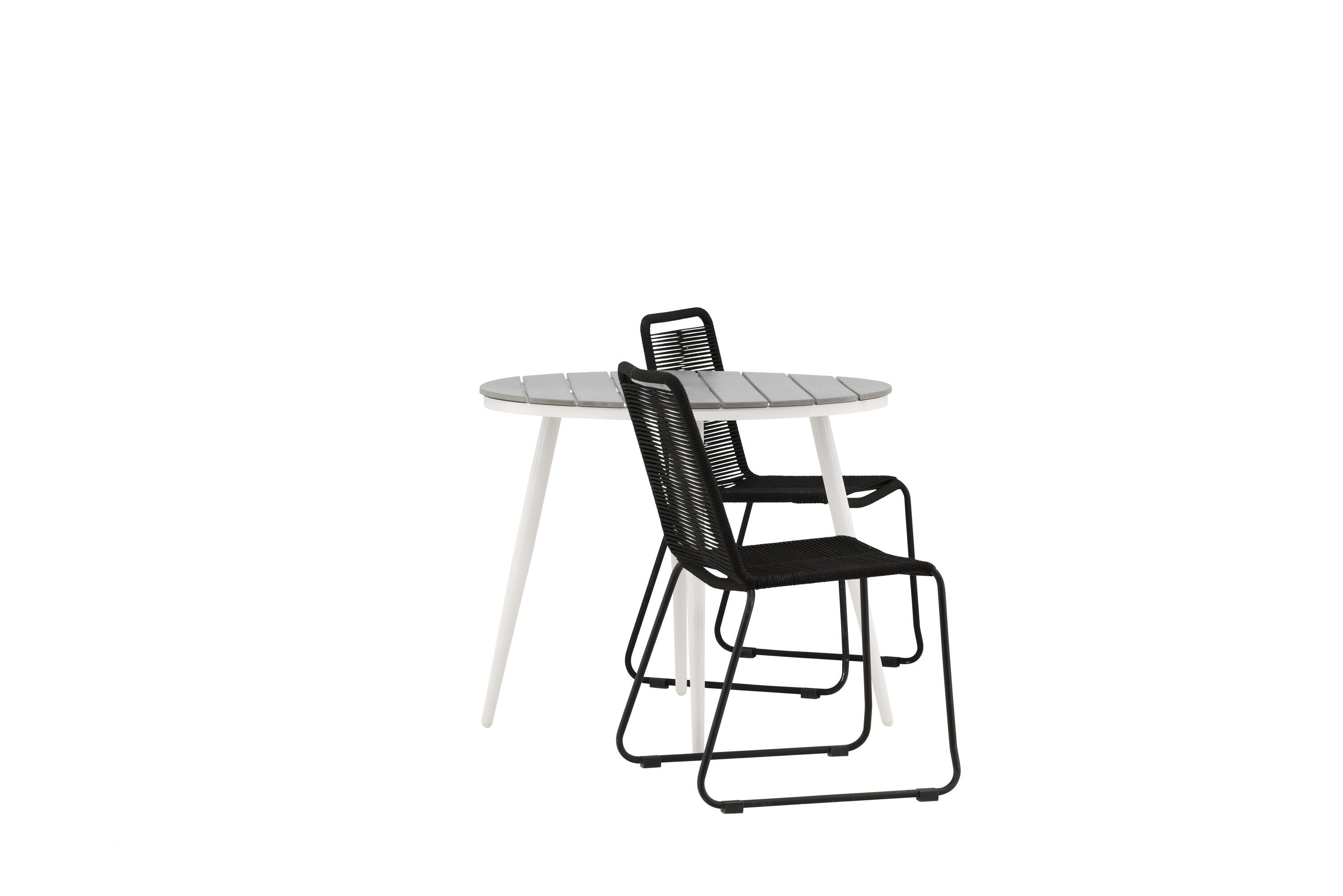Break - Jídelní stůl kulatý - Bílá / Šedá - Alu / Aintwood - 90ø _1+ Lindos Stohovací židle - Černá Alu / Černé lano _2