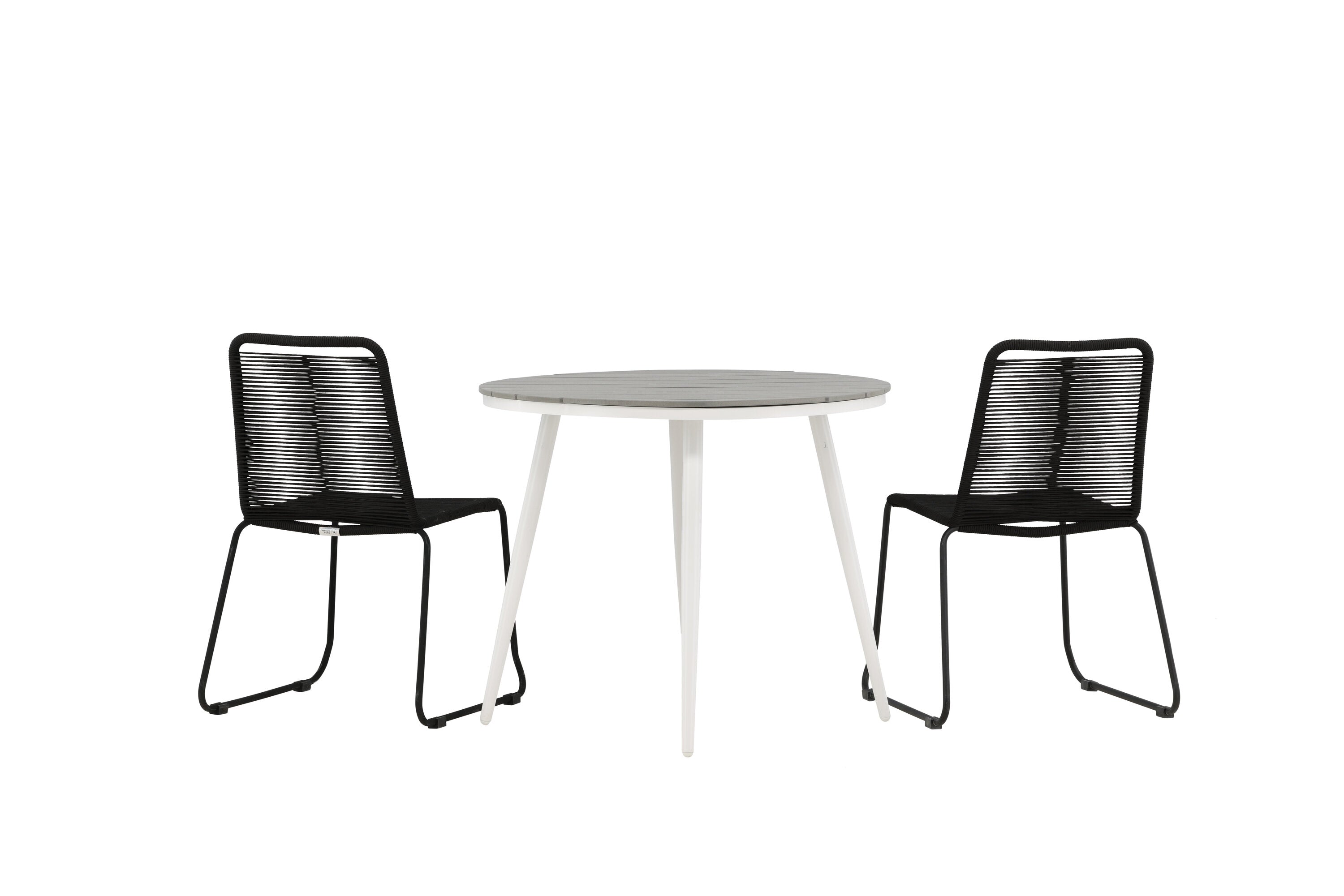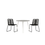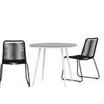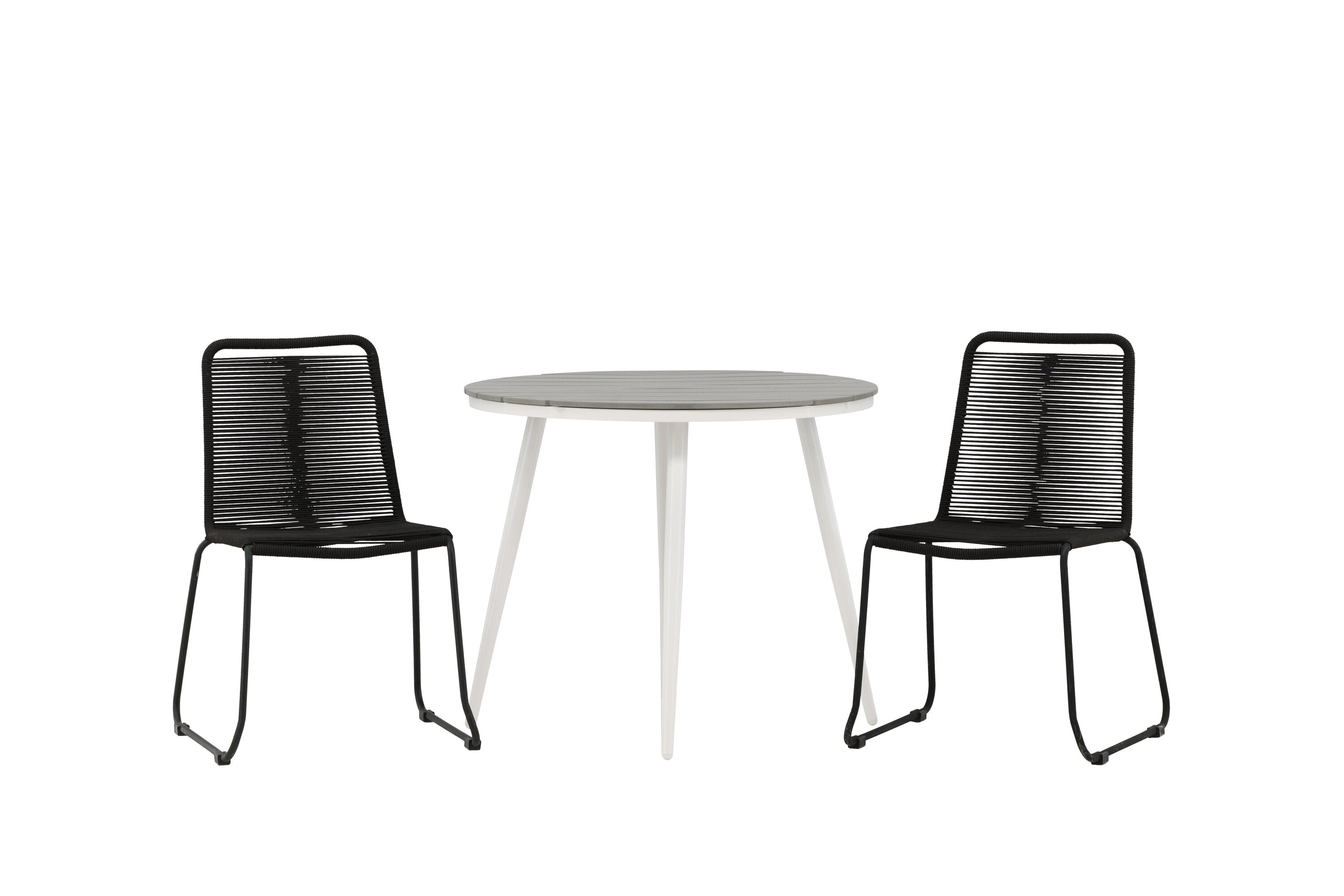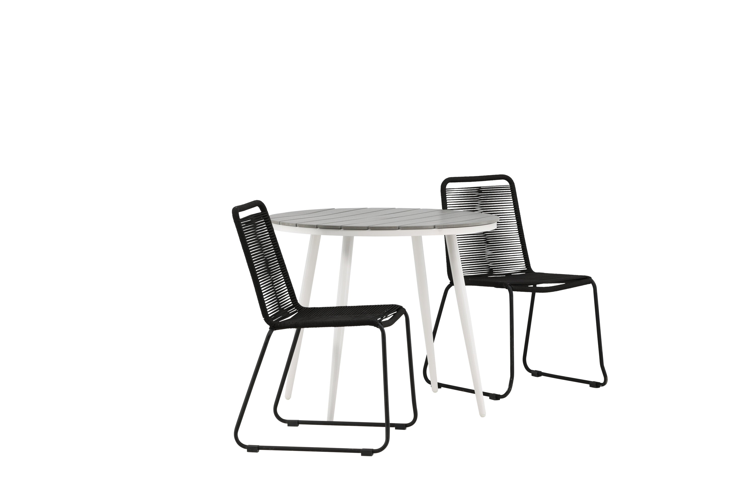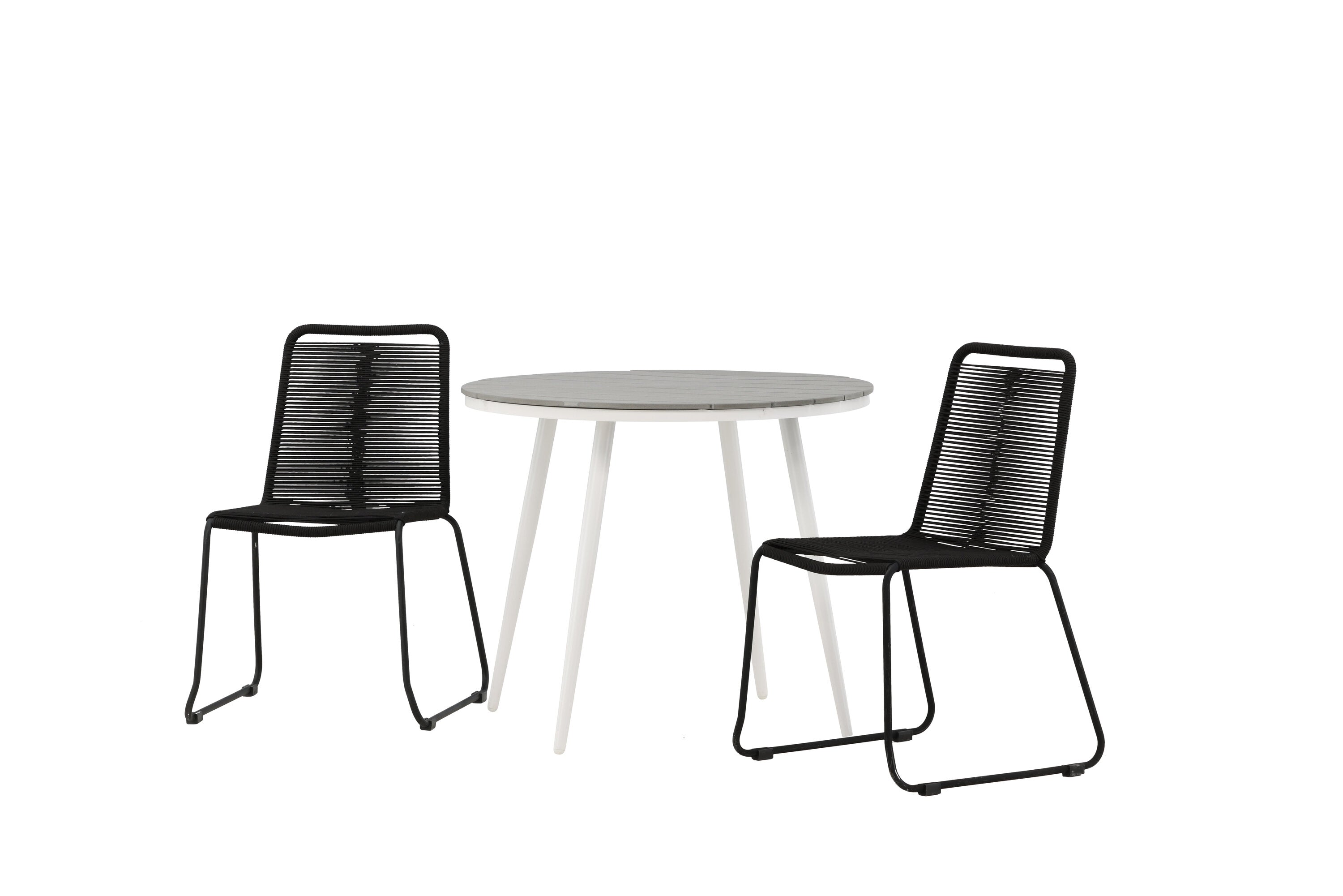 Break - Jídelní stůl kulatý - Bílá / Šedá - Alu / Aintwood - 90ø _1+ Lindos Stohovací židle - Černá Alu / Černé lano _2