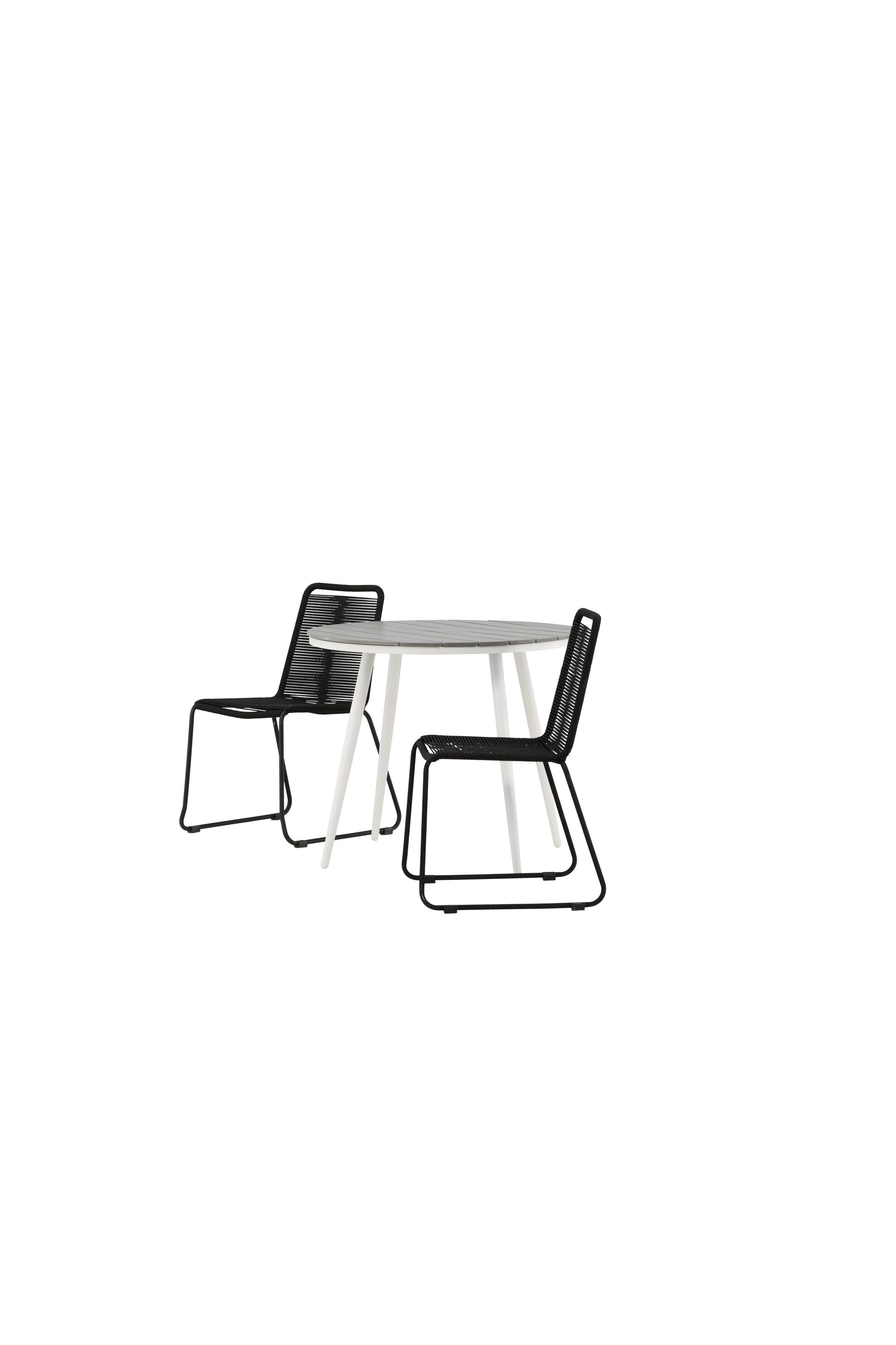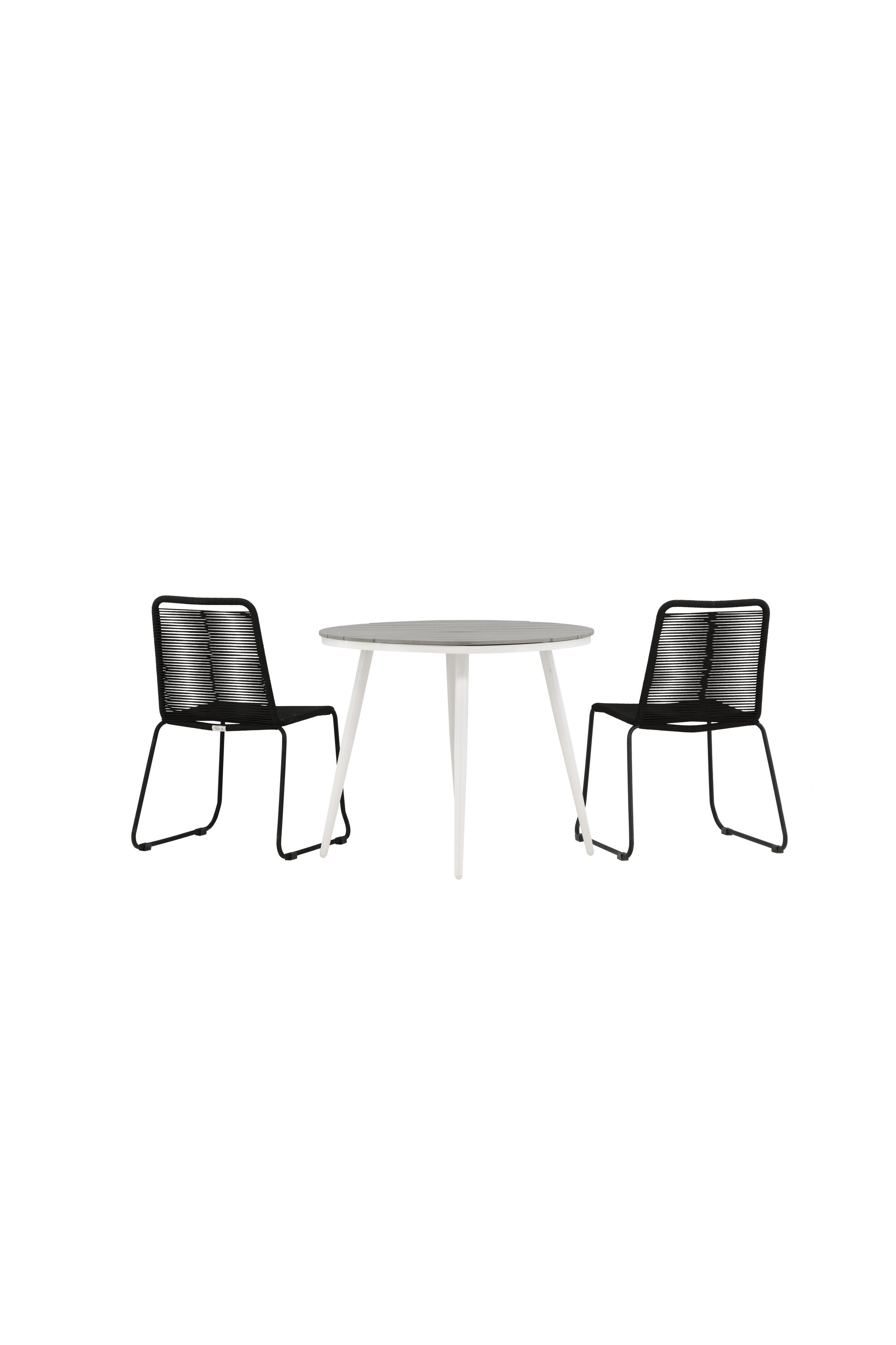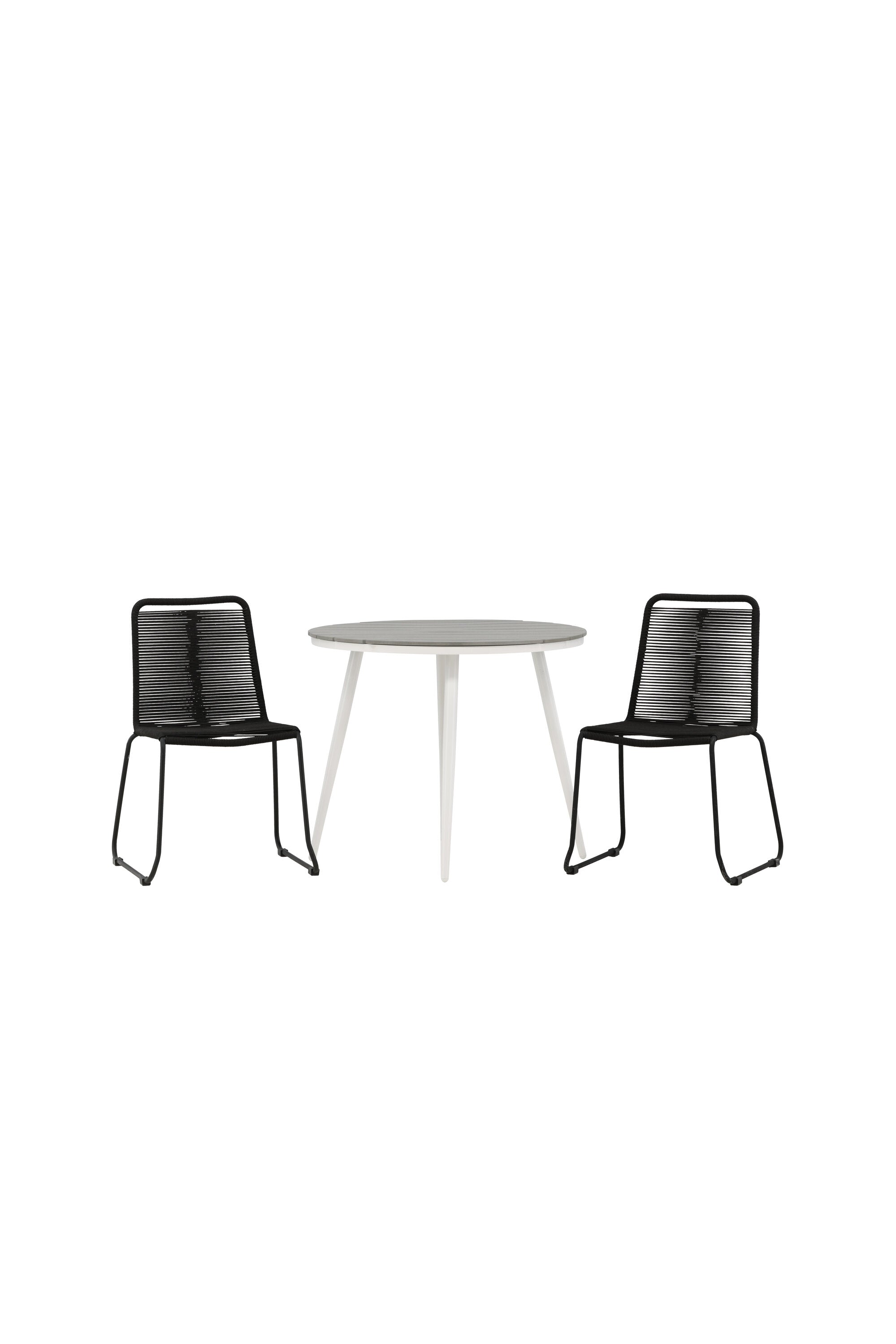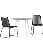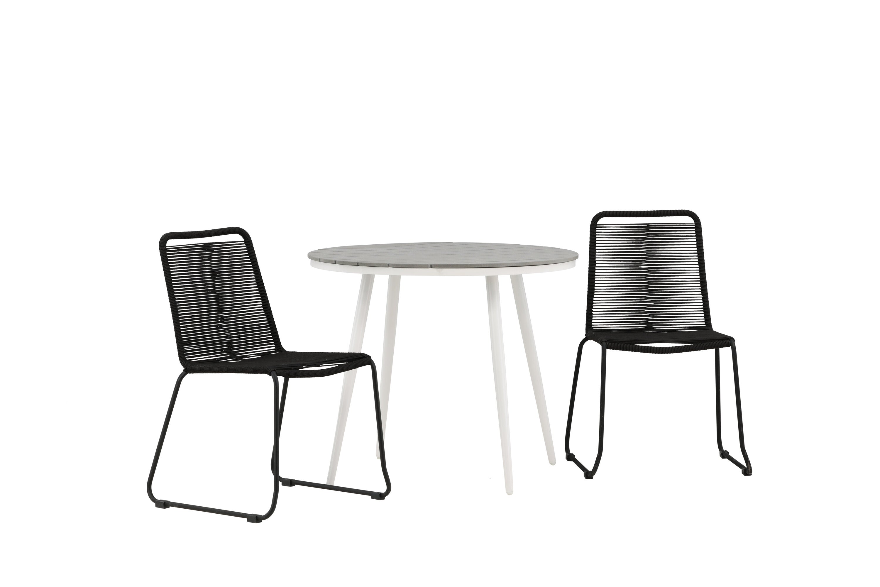 Break - Jídelní stůl kulatý - Bílá / Šedá - Alu / Aintwood - 90ø _1+ Lindos Stohovací židle - Černá Alu / Černé lano _2