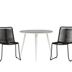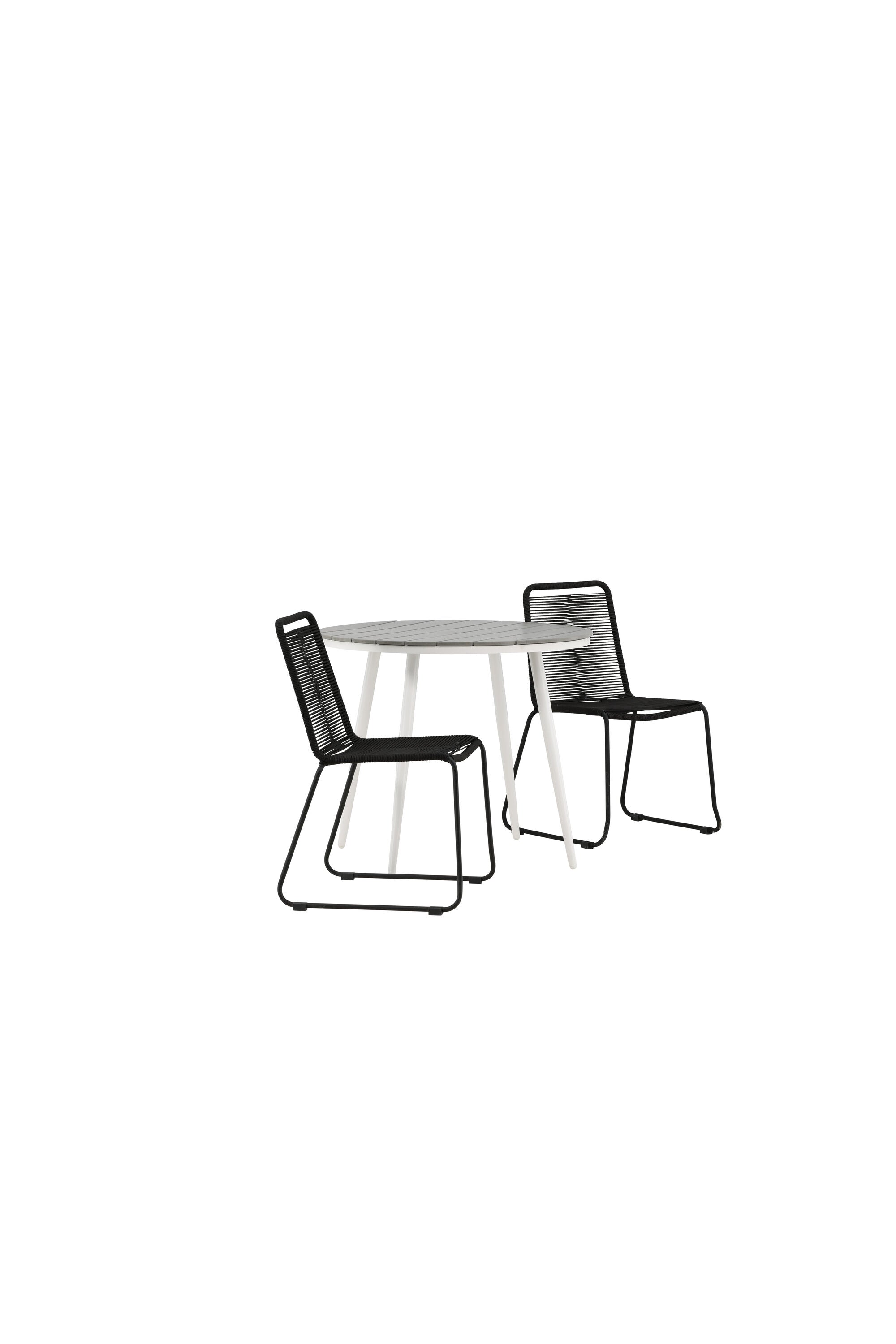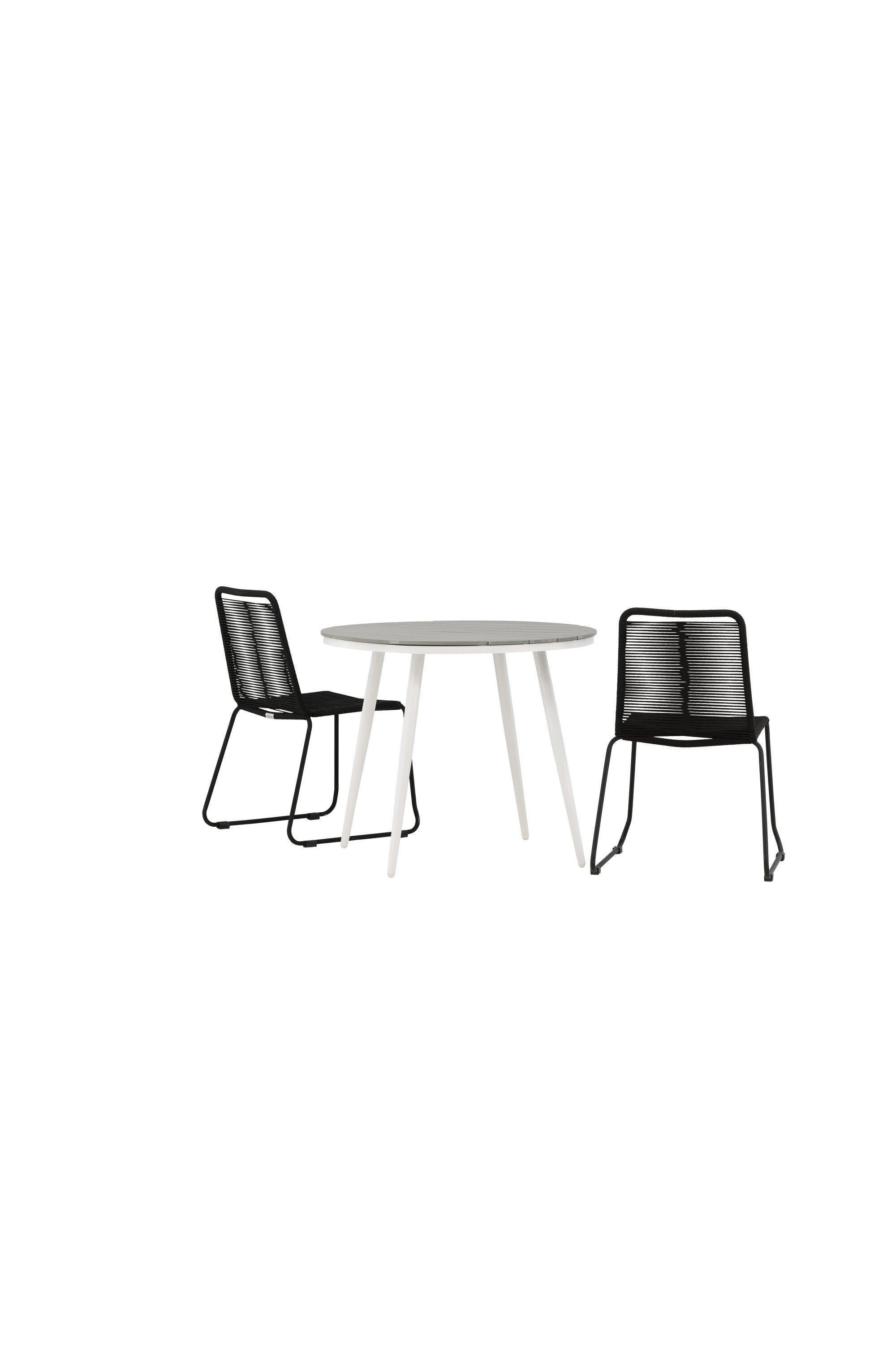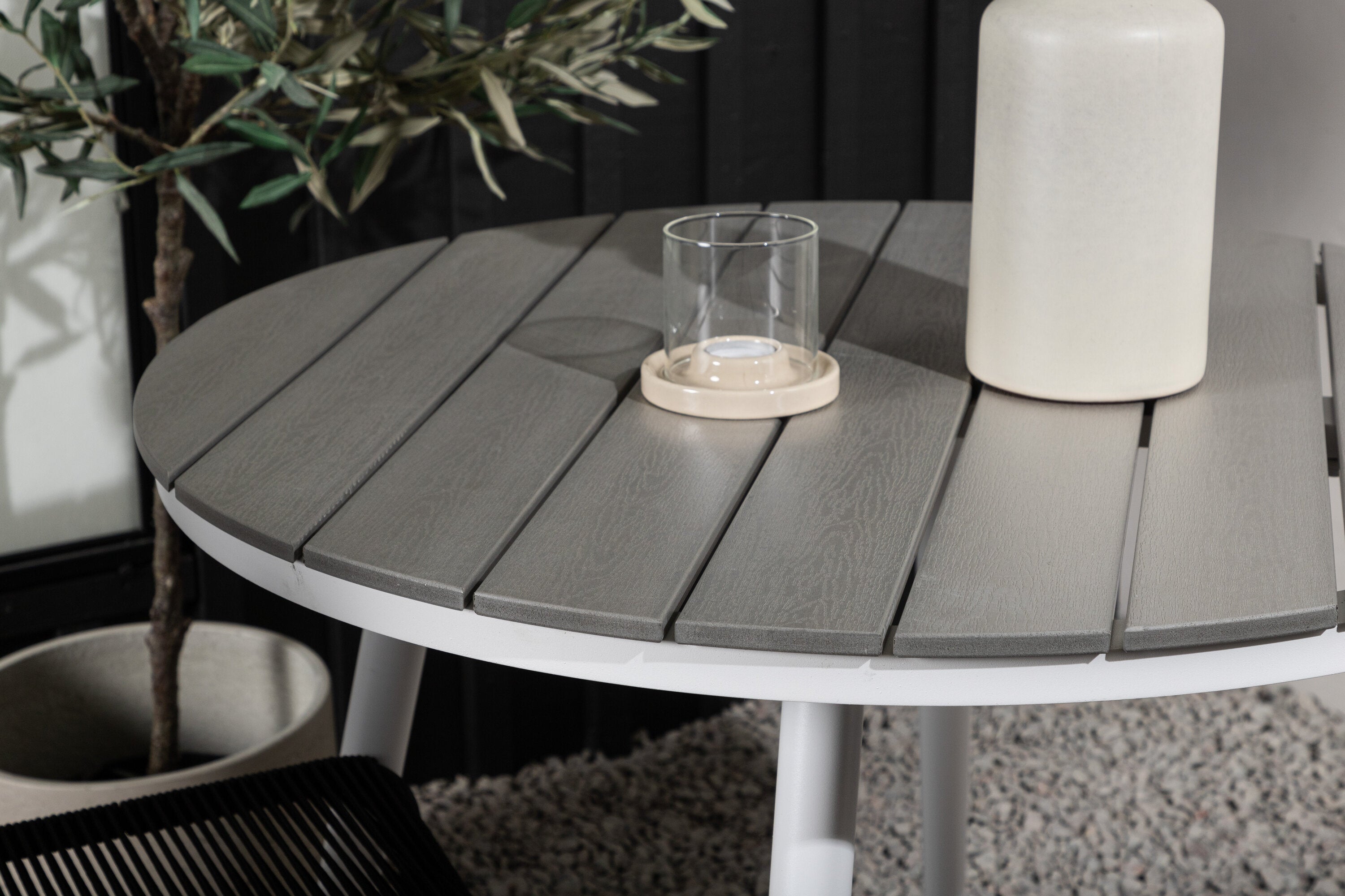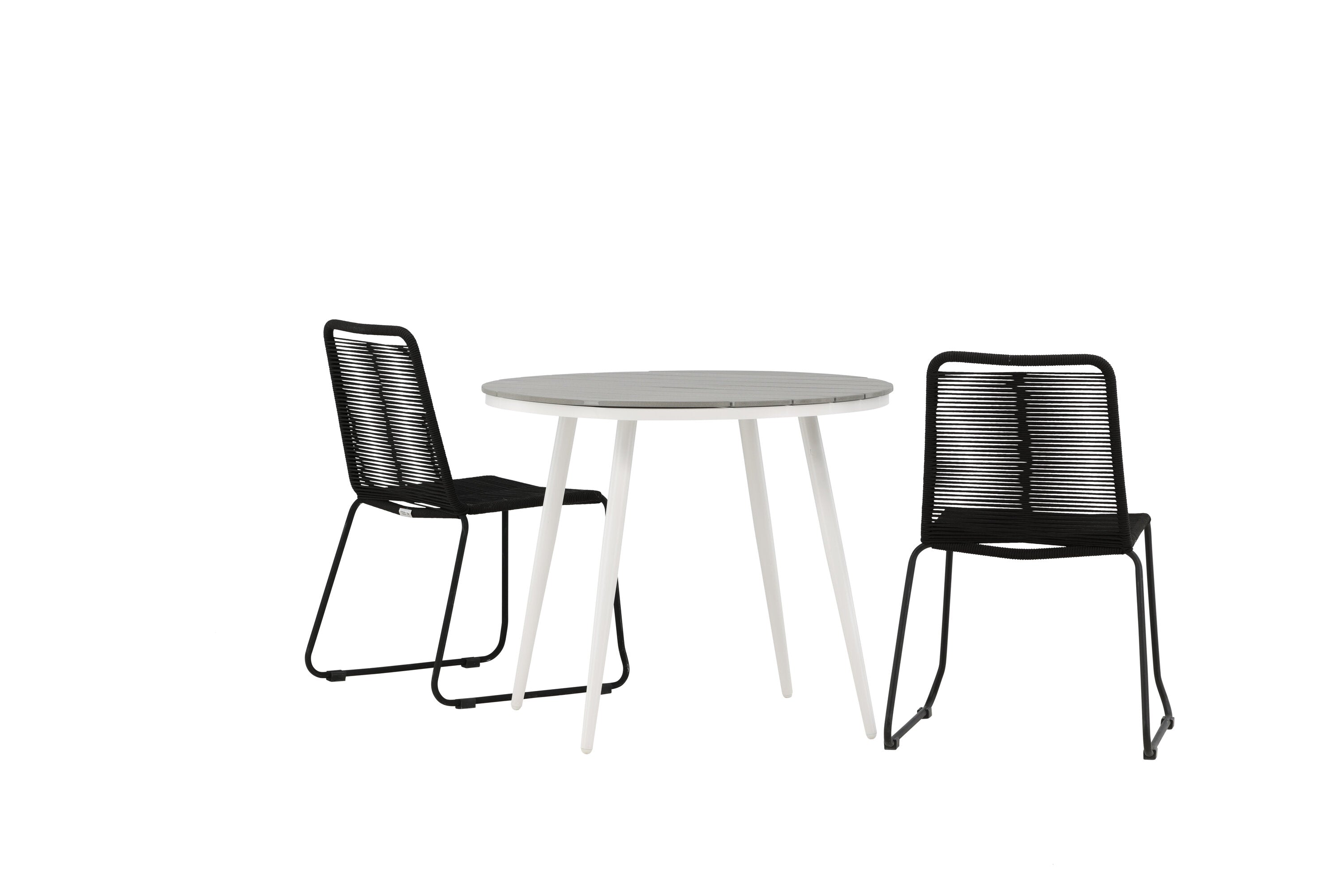 Break - Jídelní stůl kulatý - Bílá / Šedá - Alu / Aintwood - 90ø _1+ Lindos Stohovací židle - Černá Alu / Černé lano _2