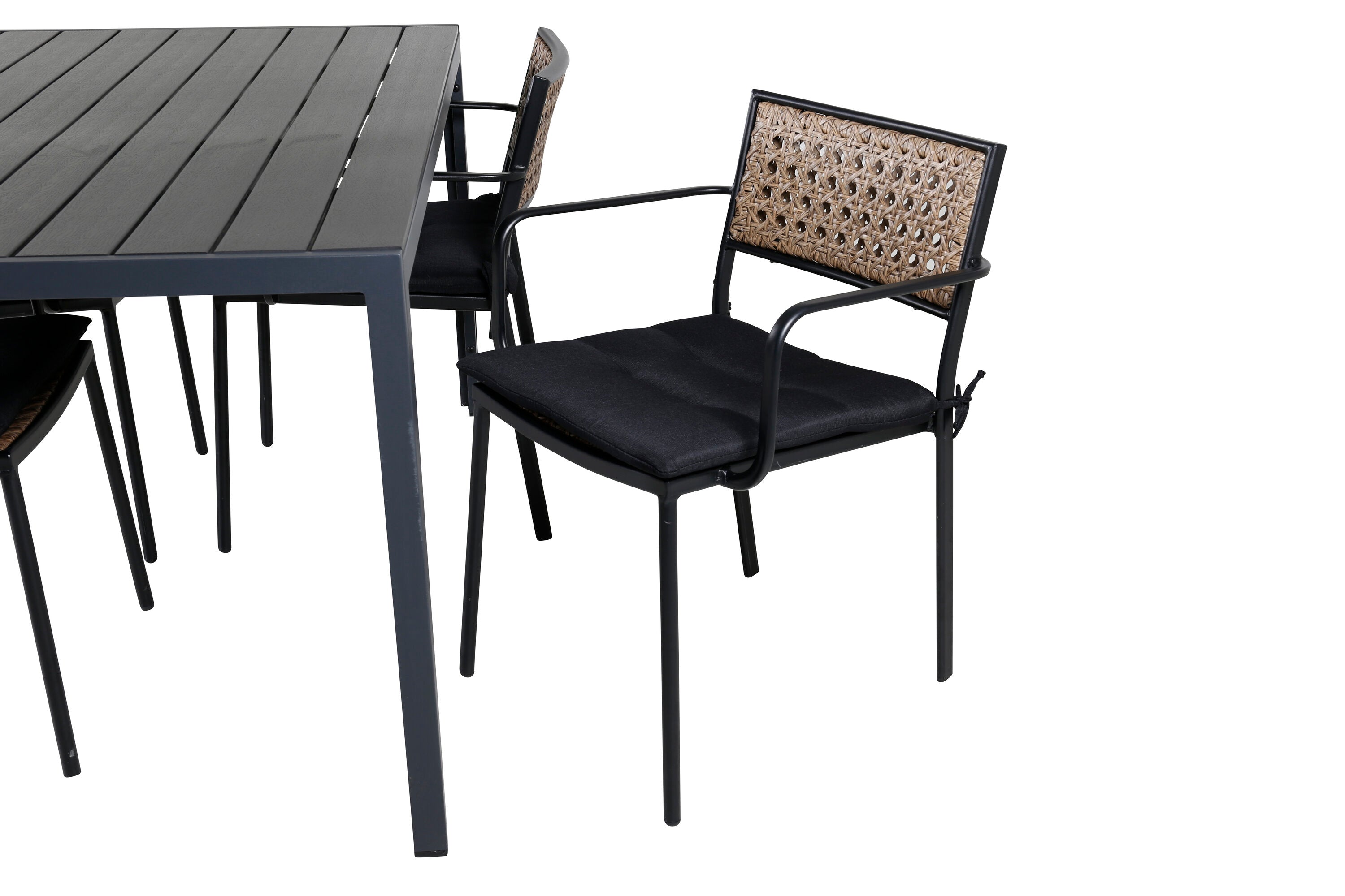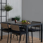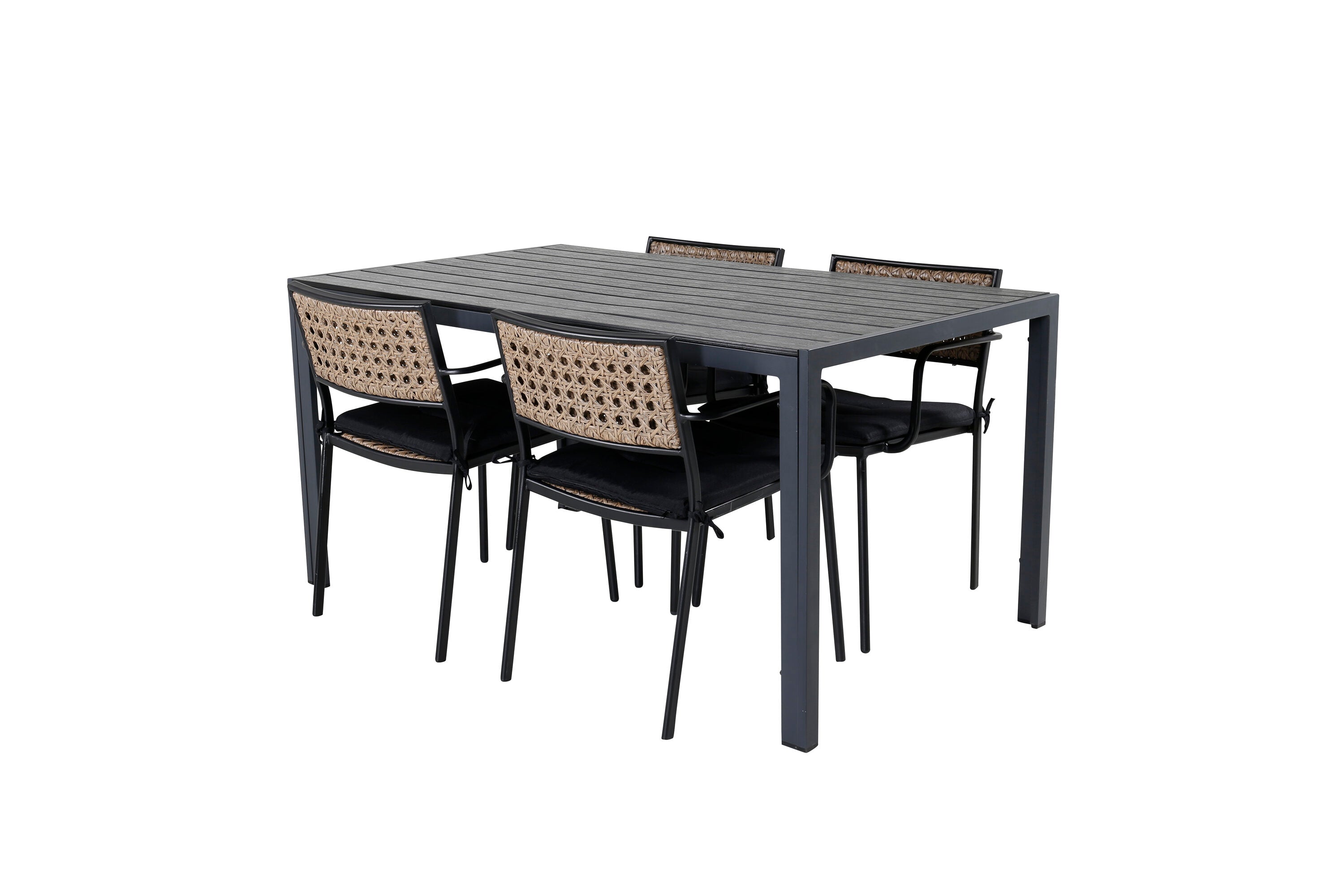 Break Table 150*90 - Černá/Black+Paola Jídelní židle - Černá ocel / Přírodní proutí / Black Cushion_4