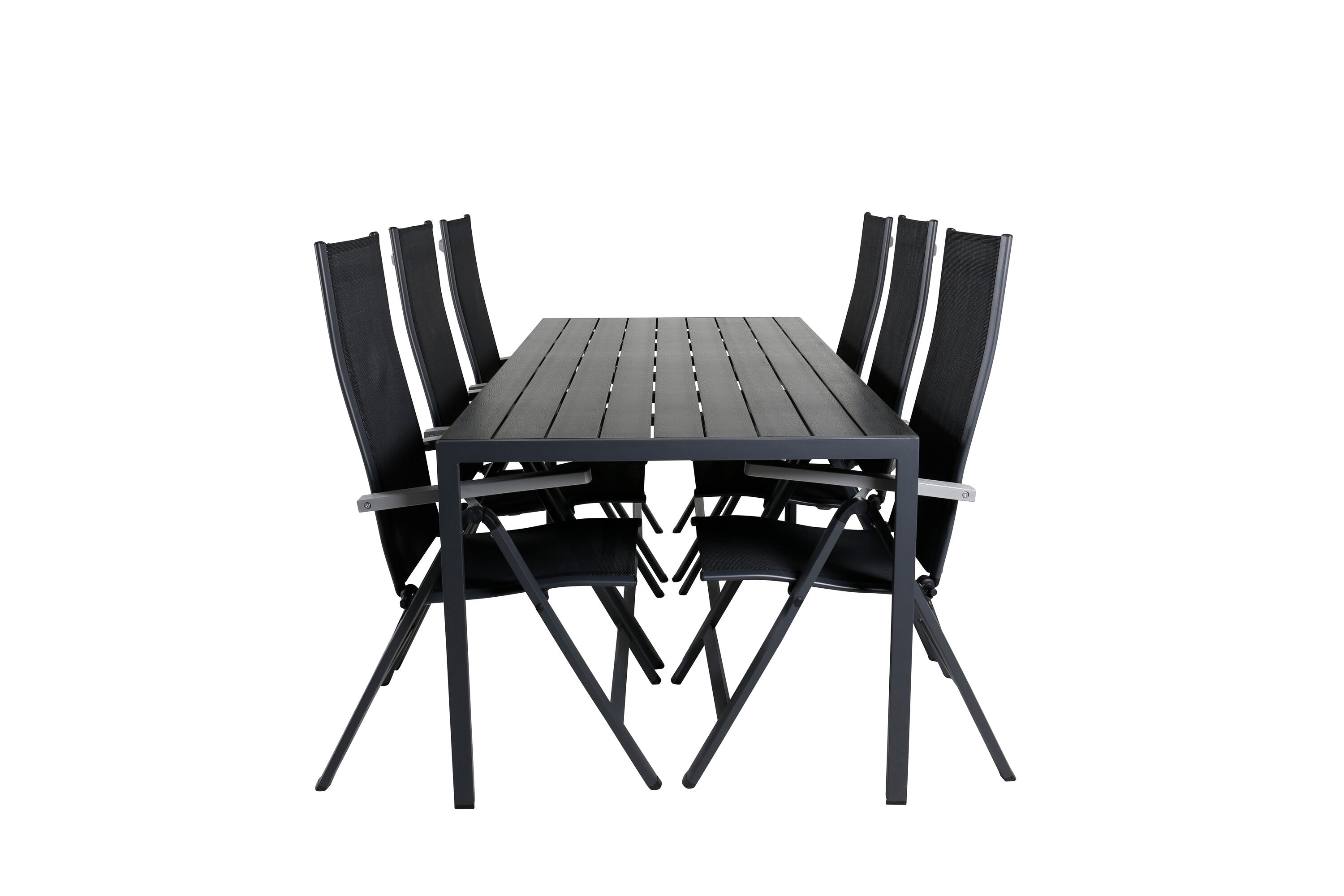 Připravte se na letošní letní výjimečný noční život s pohodlnou jídelní skupinou v lahodné černé barvě. Přestávka na jídelní stůl je dobře kombinována s našimi skládacími jídelními židlemi ze série Albany - upravte opěradlo pro optimální pohodlí a pohodlí toto léto!