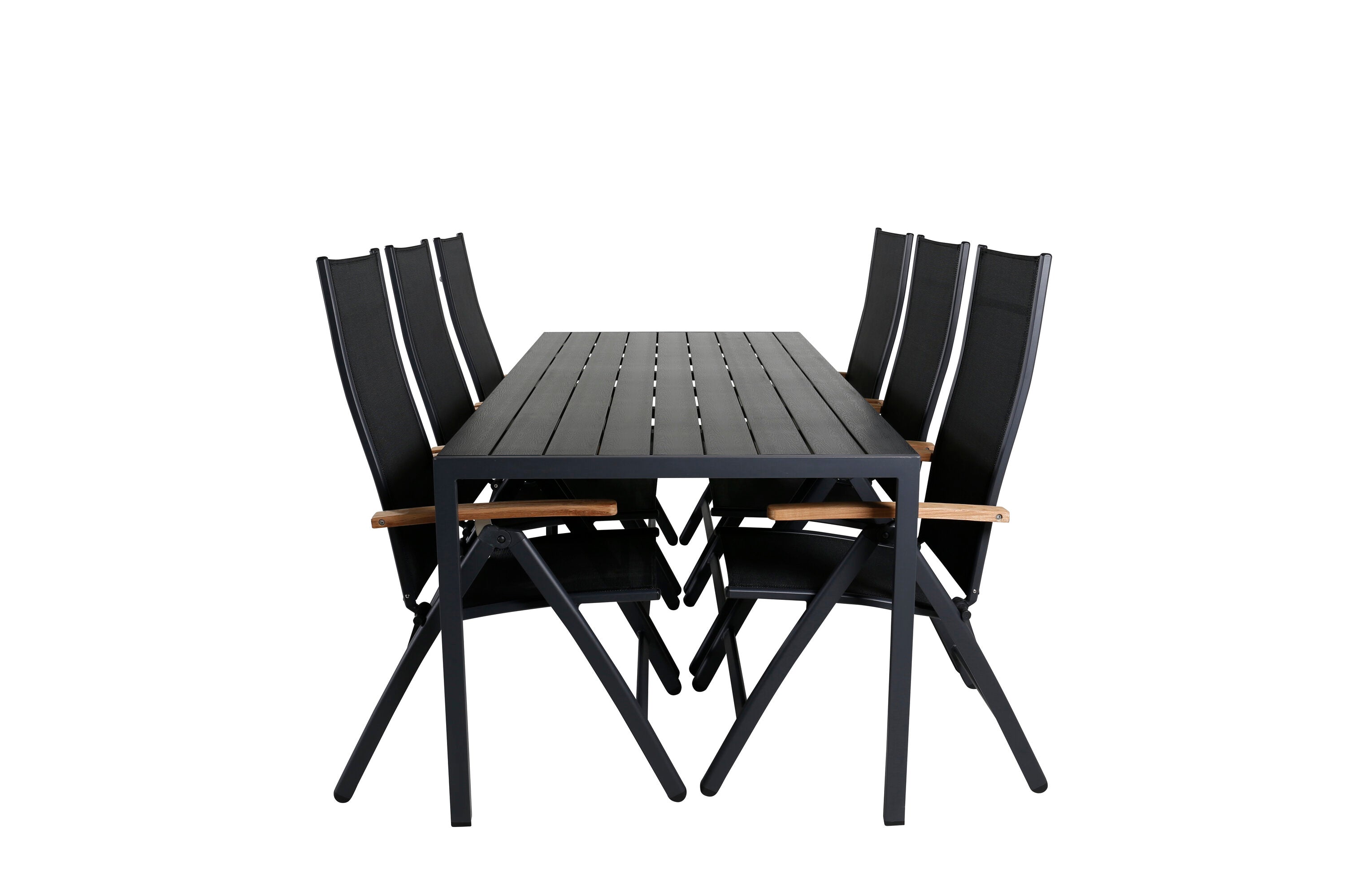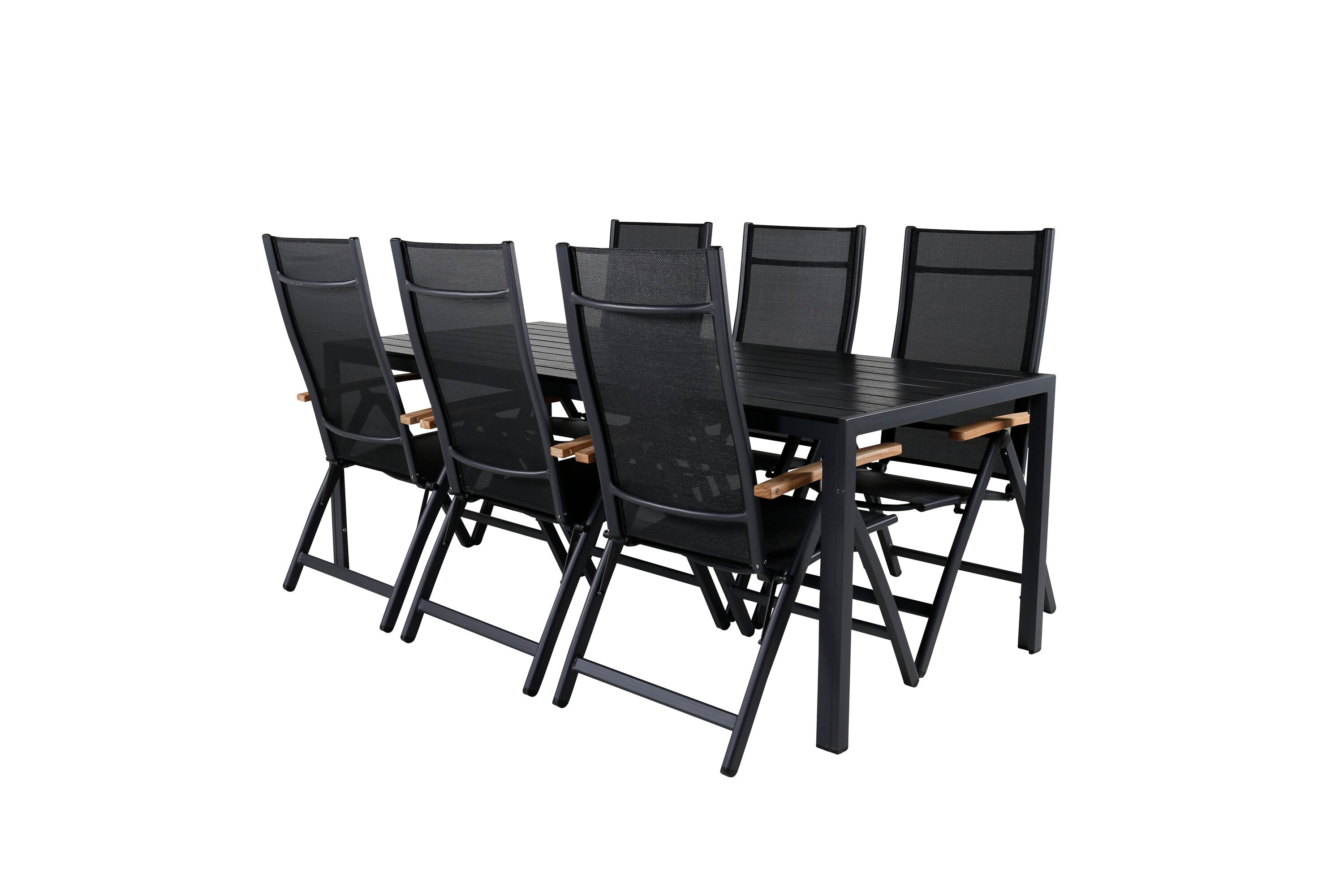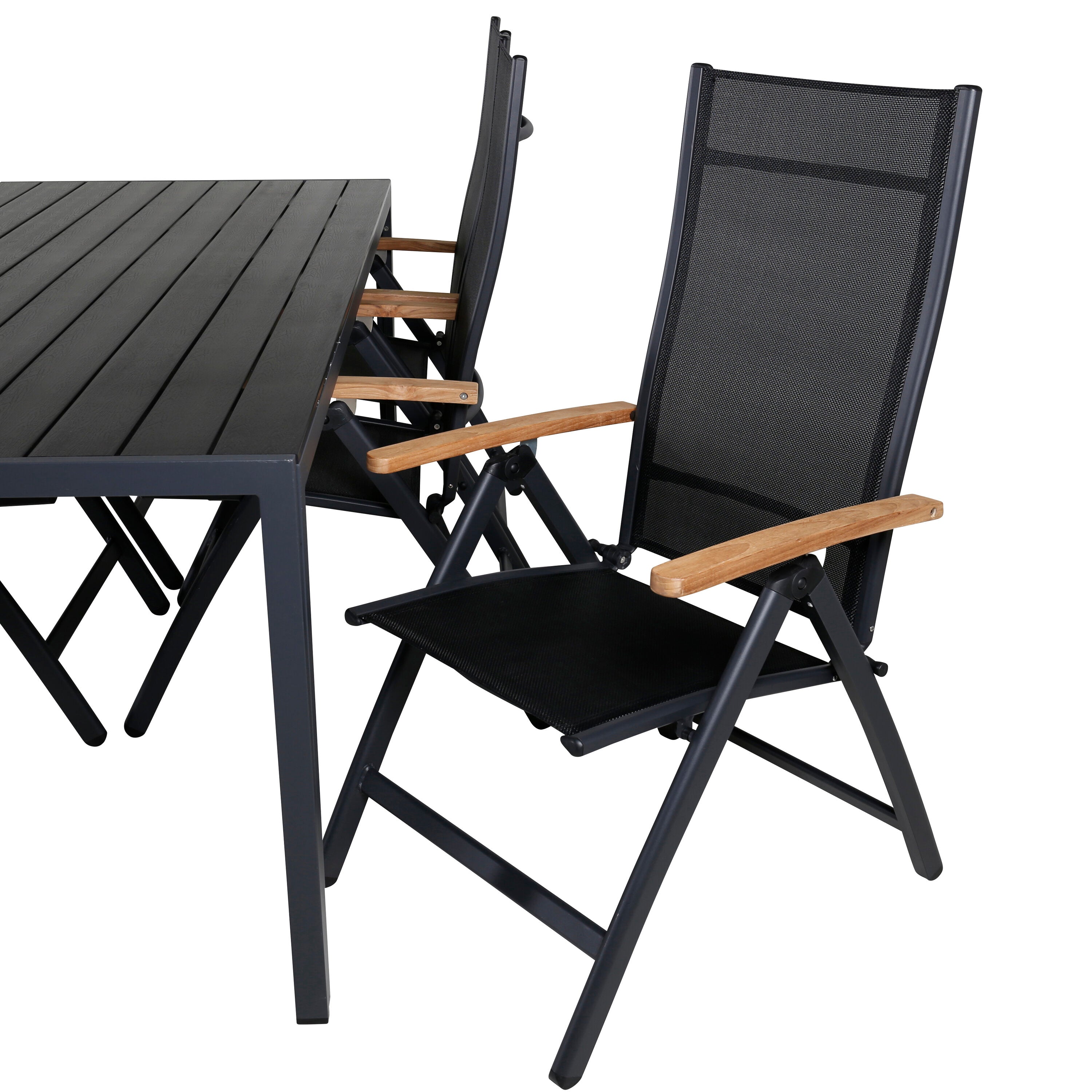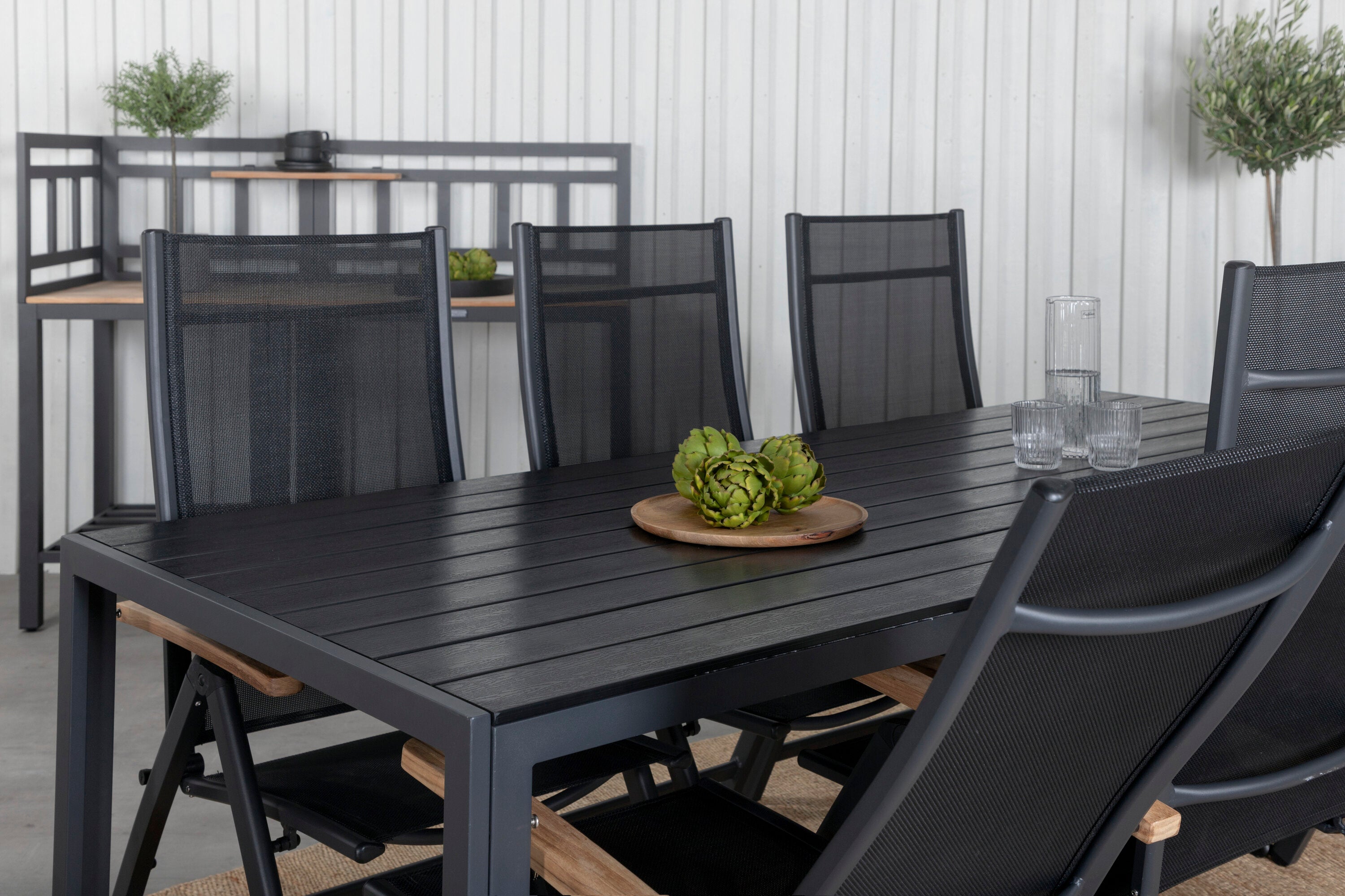 Break Table 205*90 - Black/Black+Panama Light, 5poschoďová židle Černá / Černá a teak_6