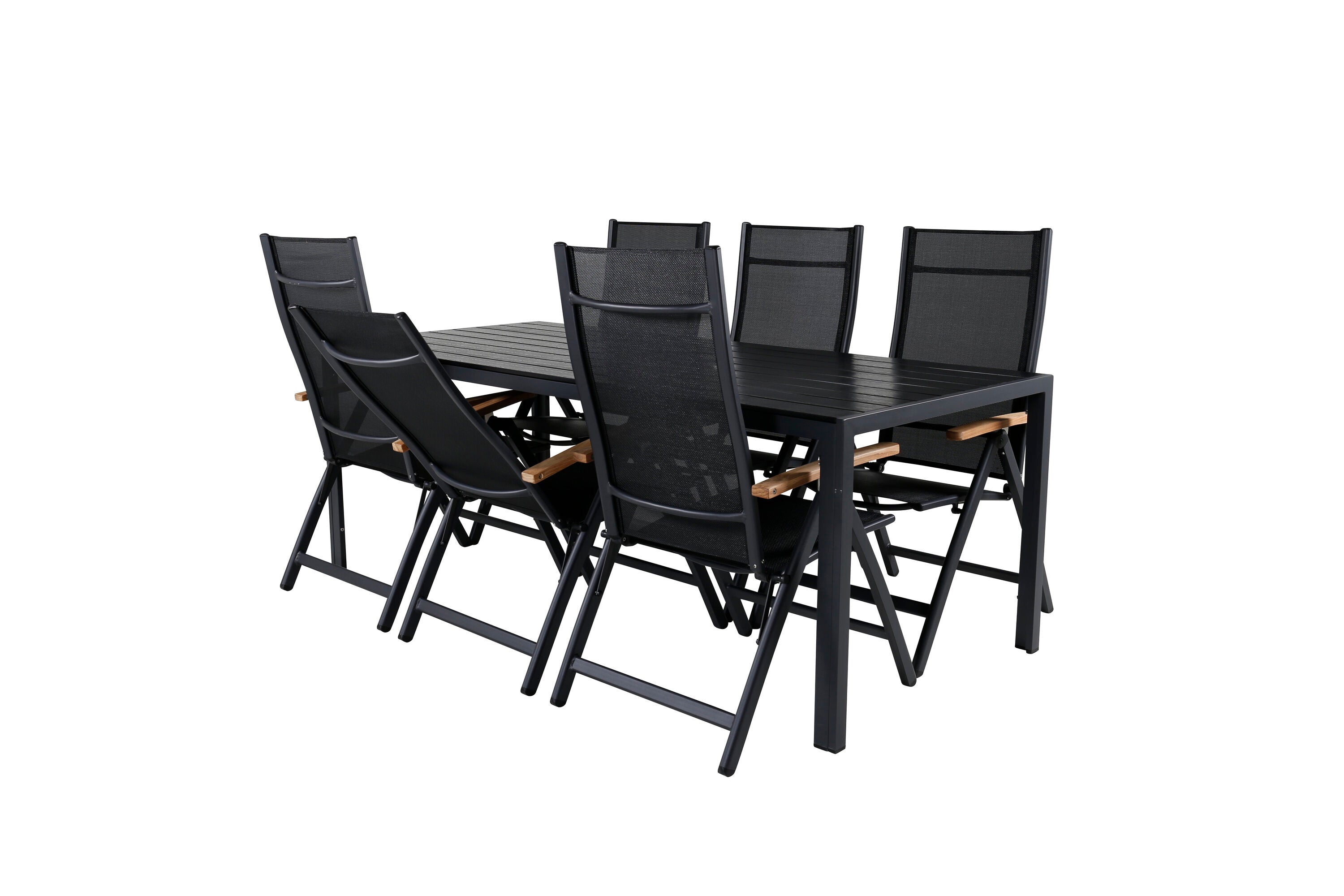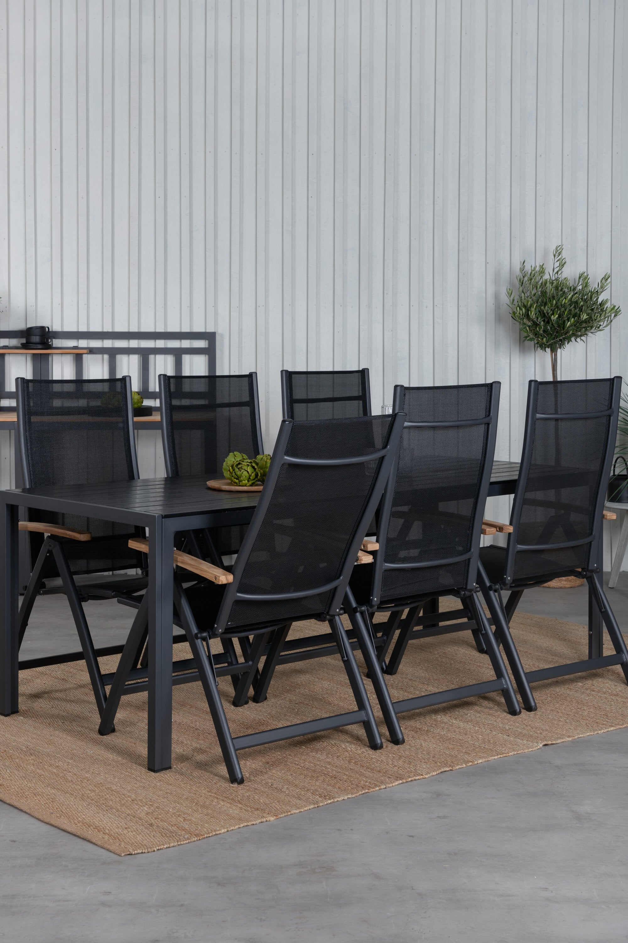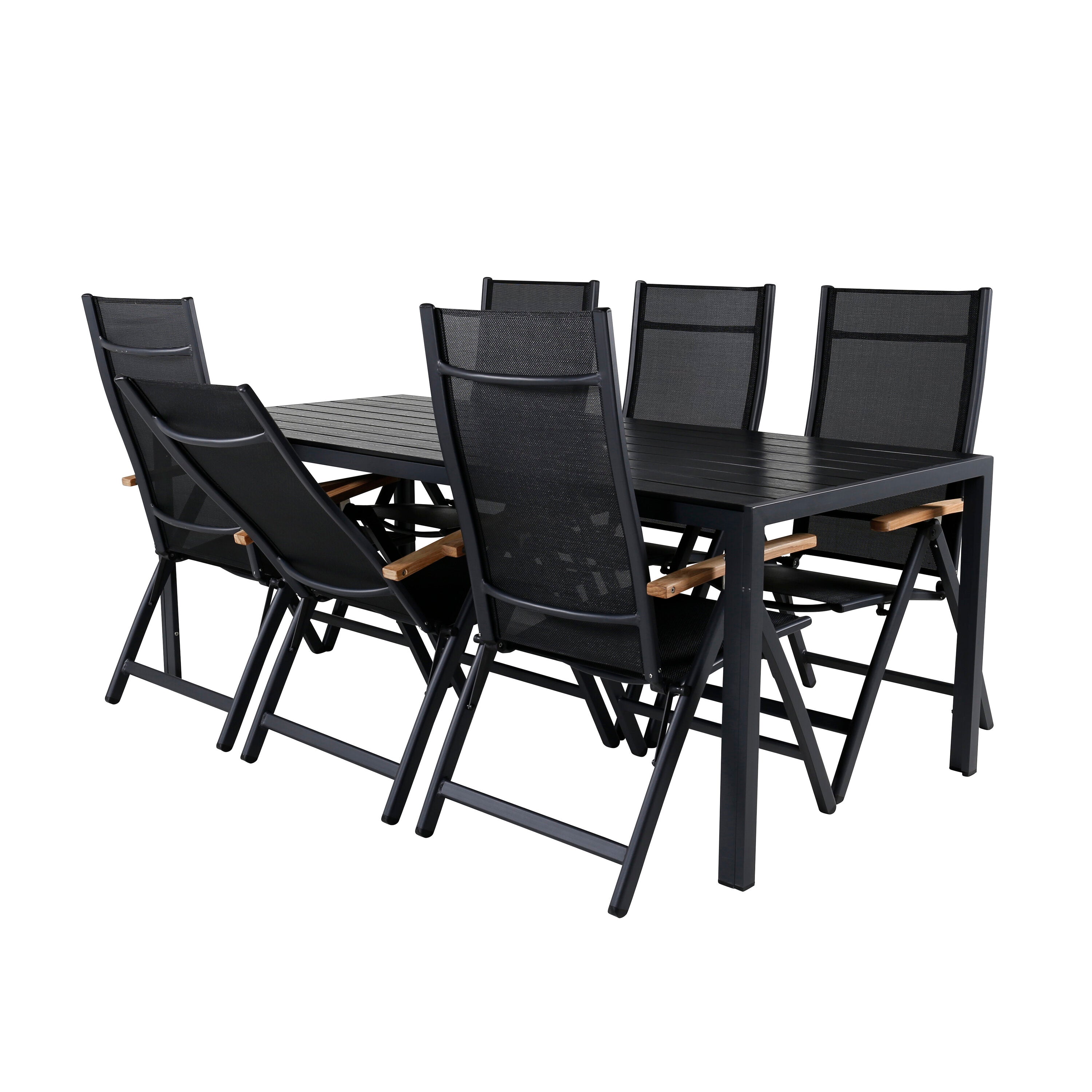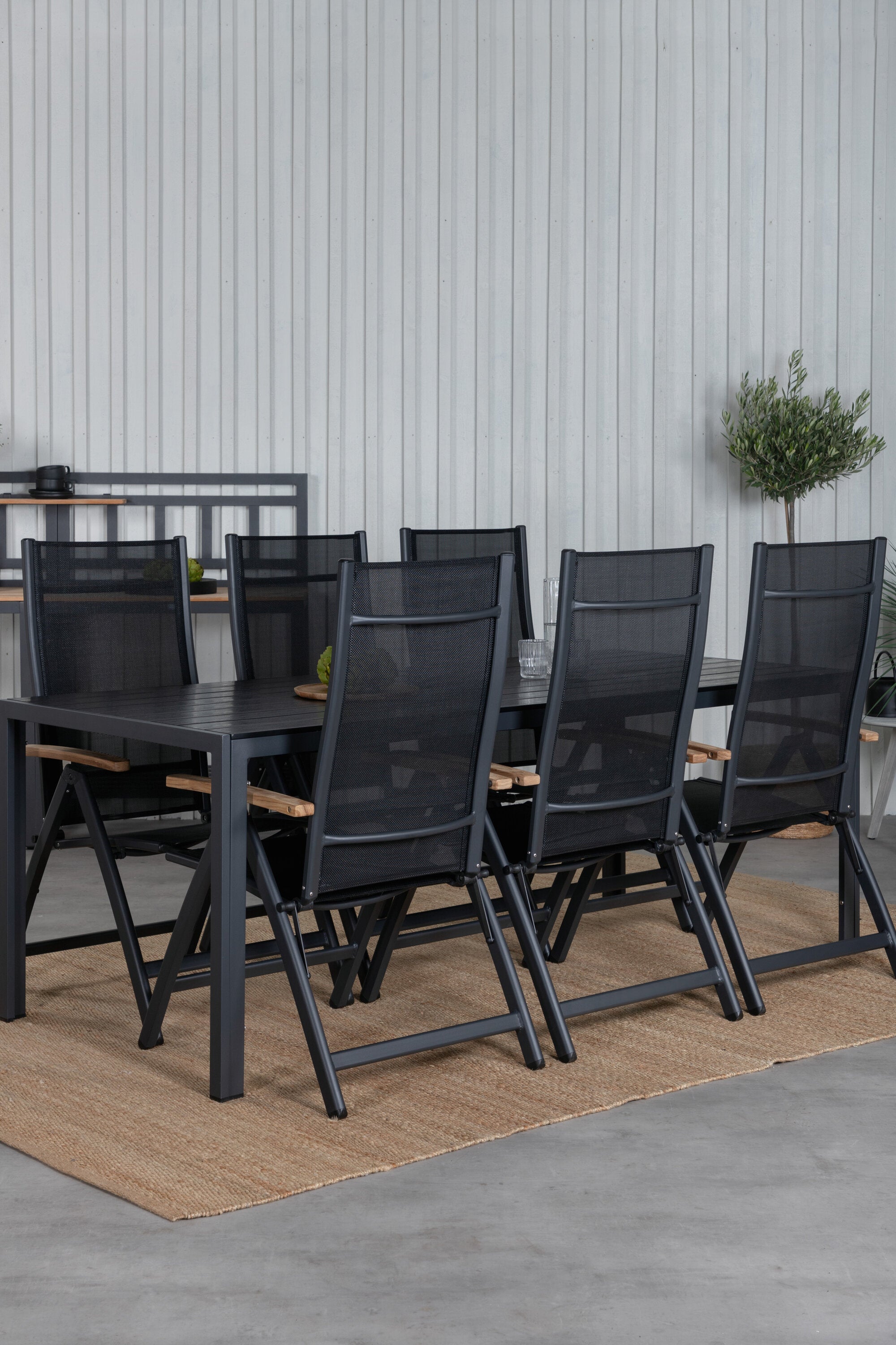 Break Table 205*90 - Black/Black+Panama Light, 5poschoďová židle Černá / Černá a teak_6