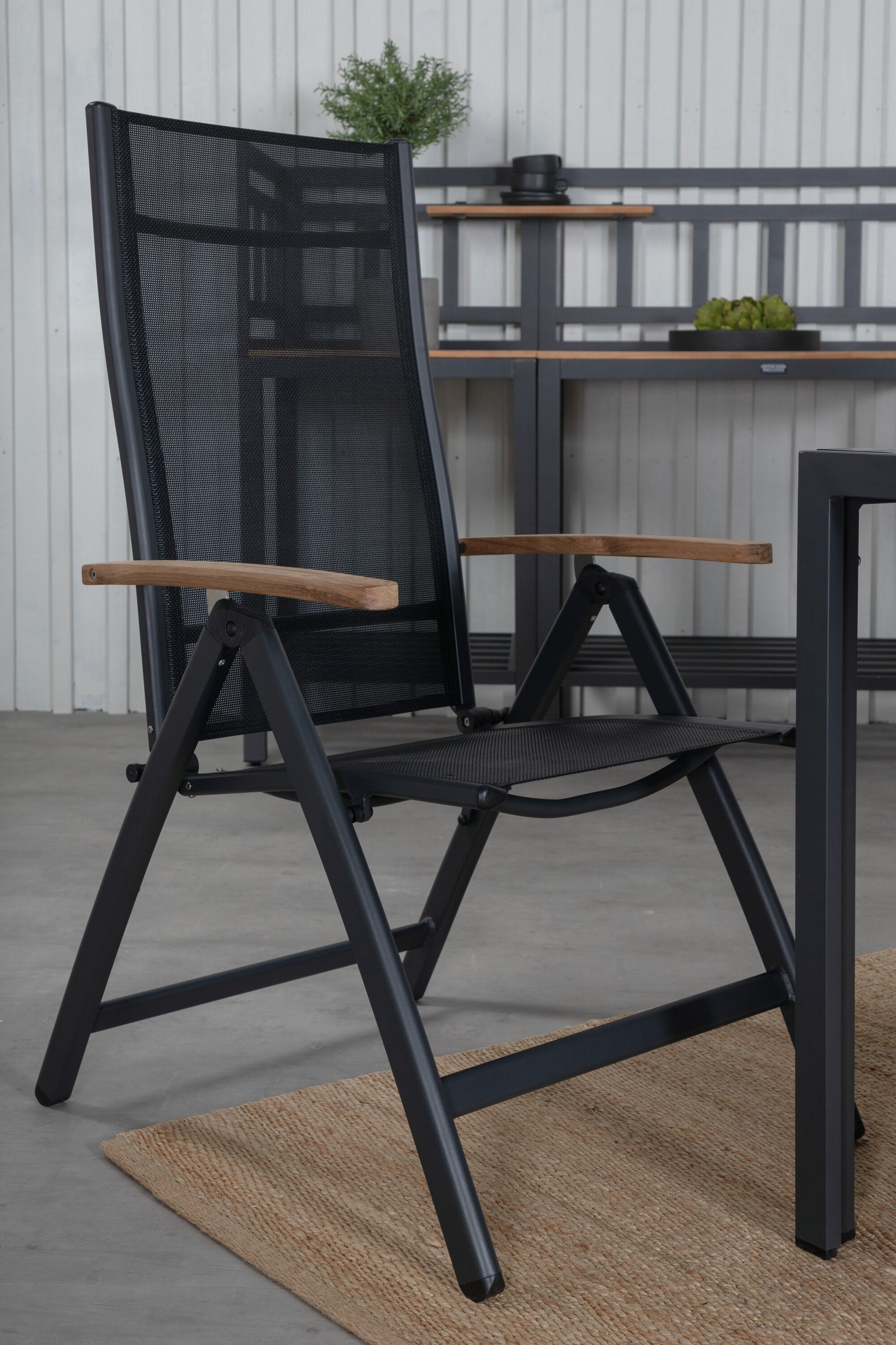 Naše oblíbené jídelní židle ze série Panama jsou skládací pro optimální pohodlí a mají ozdobné područky ze dřeva. Zde v lahodné kombinaci s jídelním stolem. Připravte se na letošní letní výjimečný noční život s pohodlnou jídelnou v namyšlené černé barvě!
