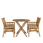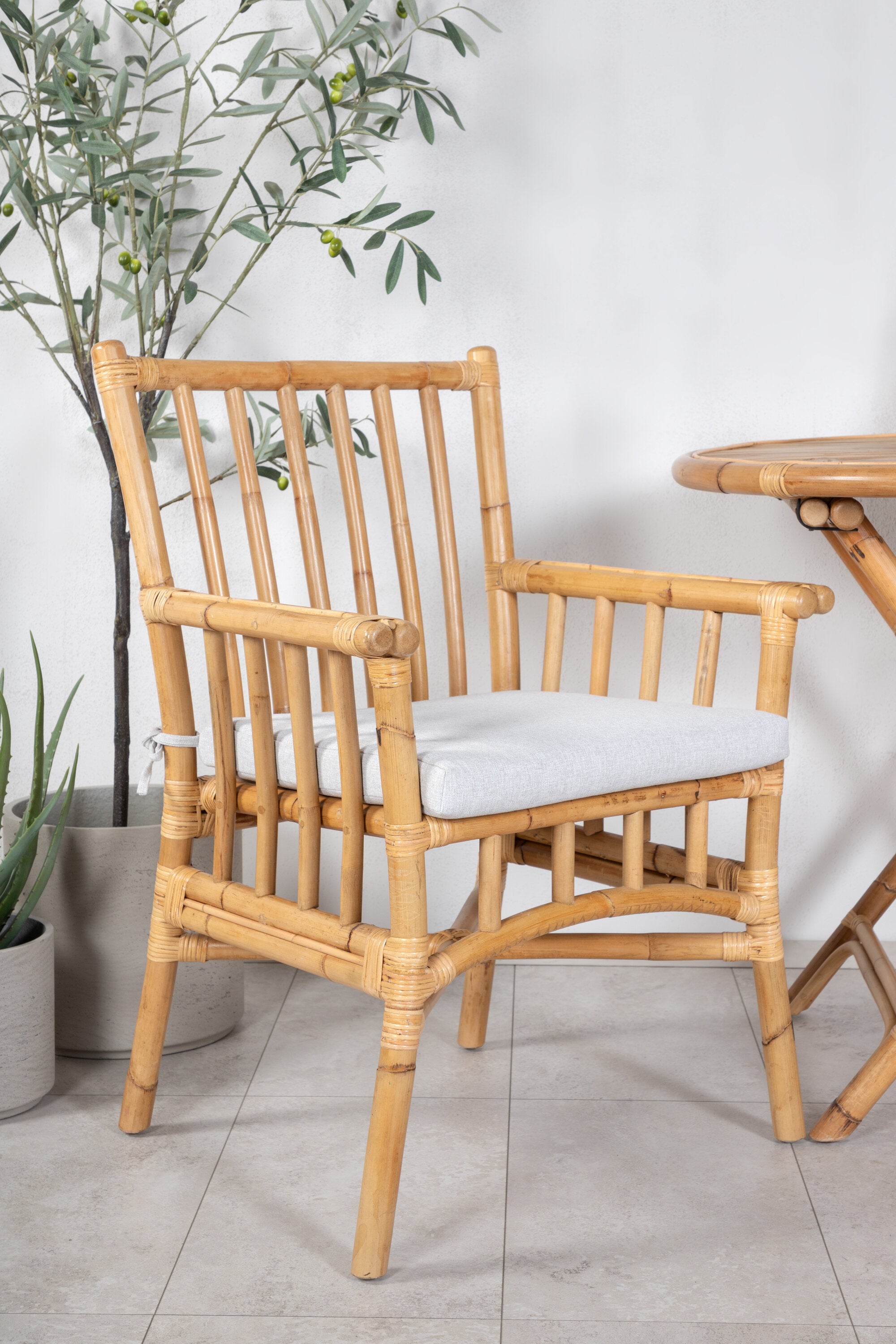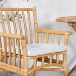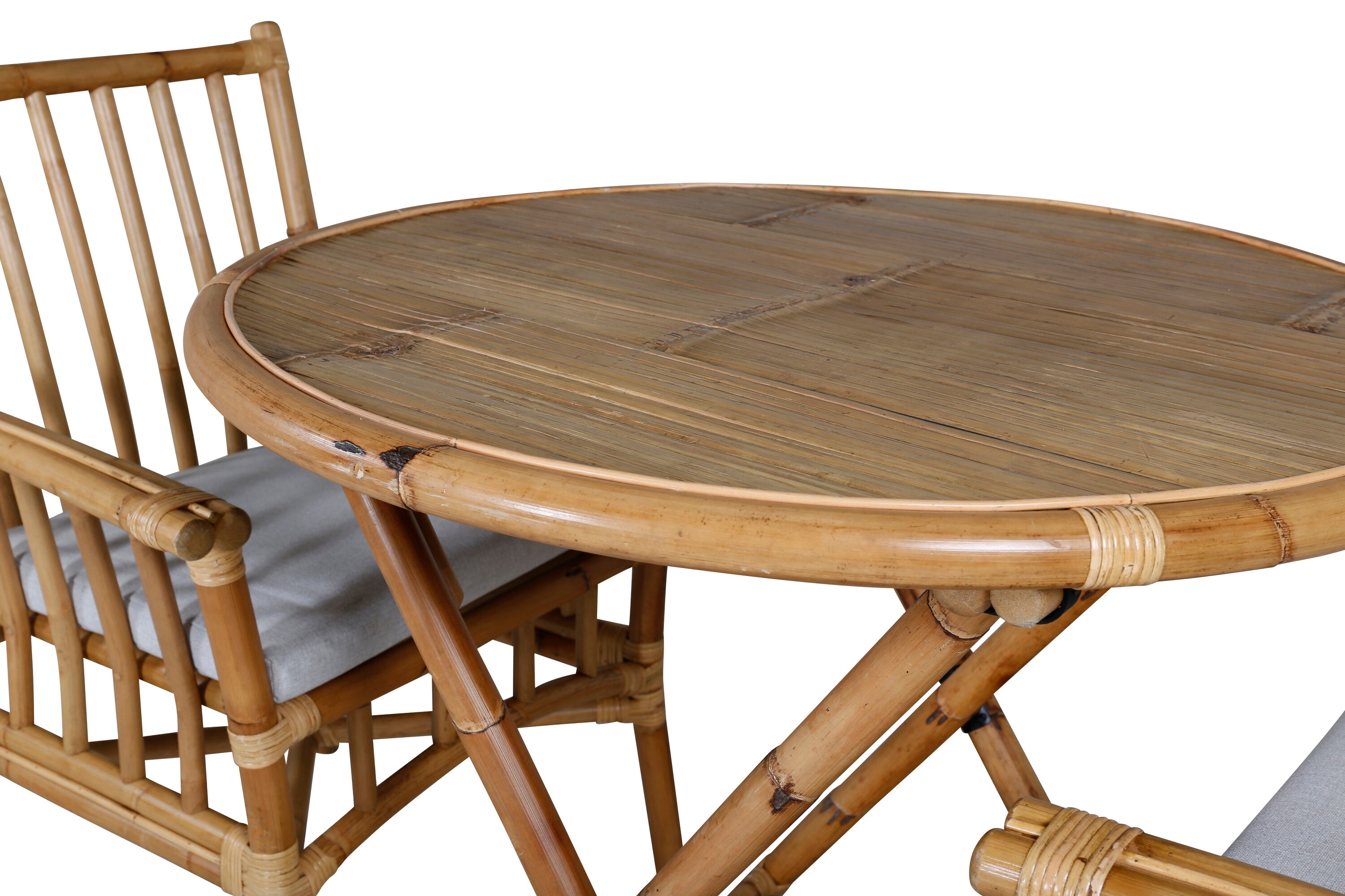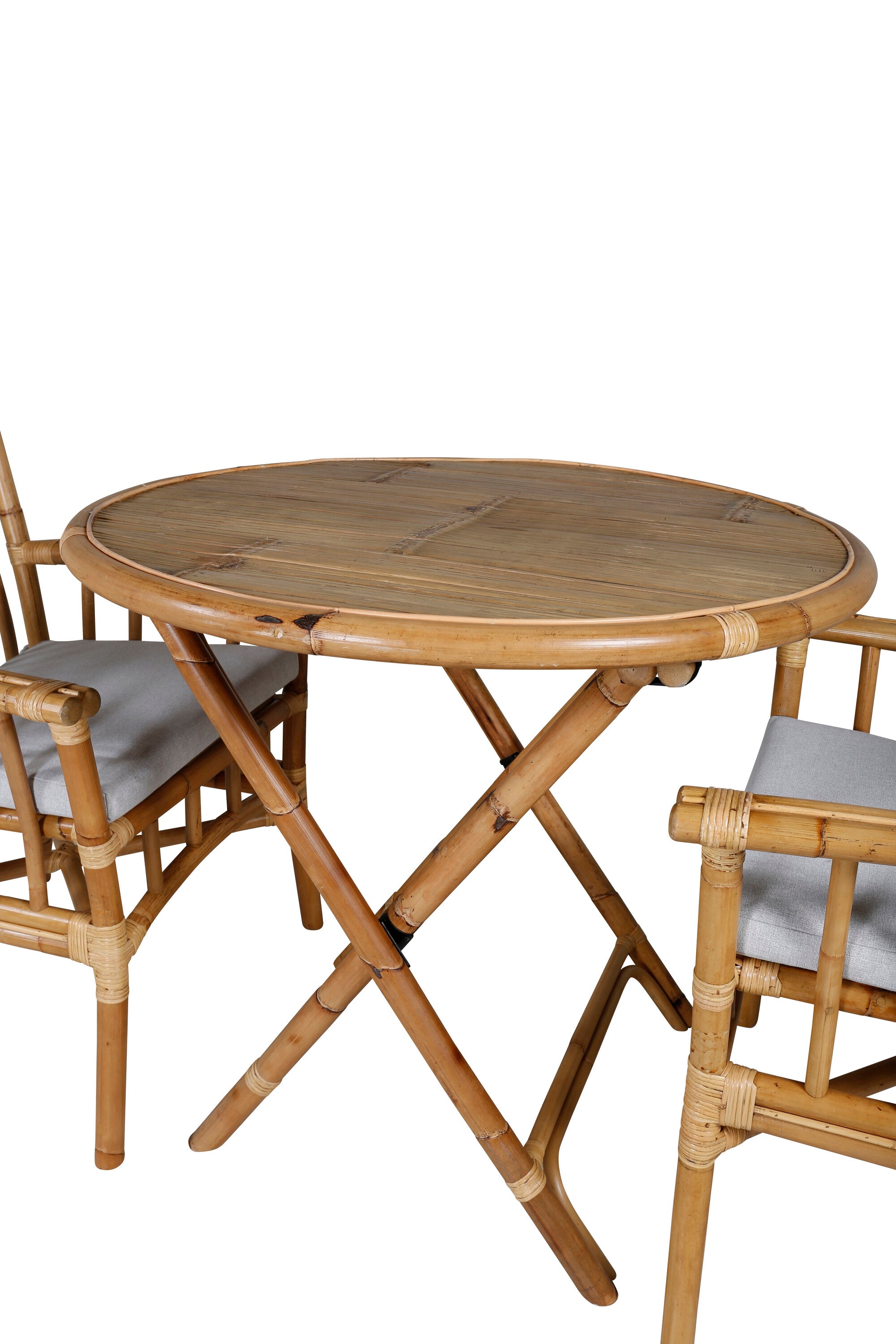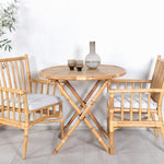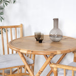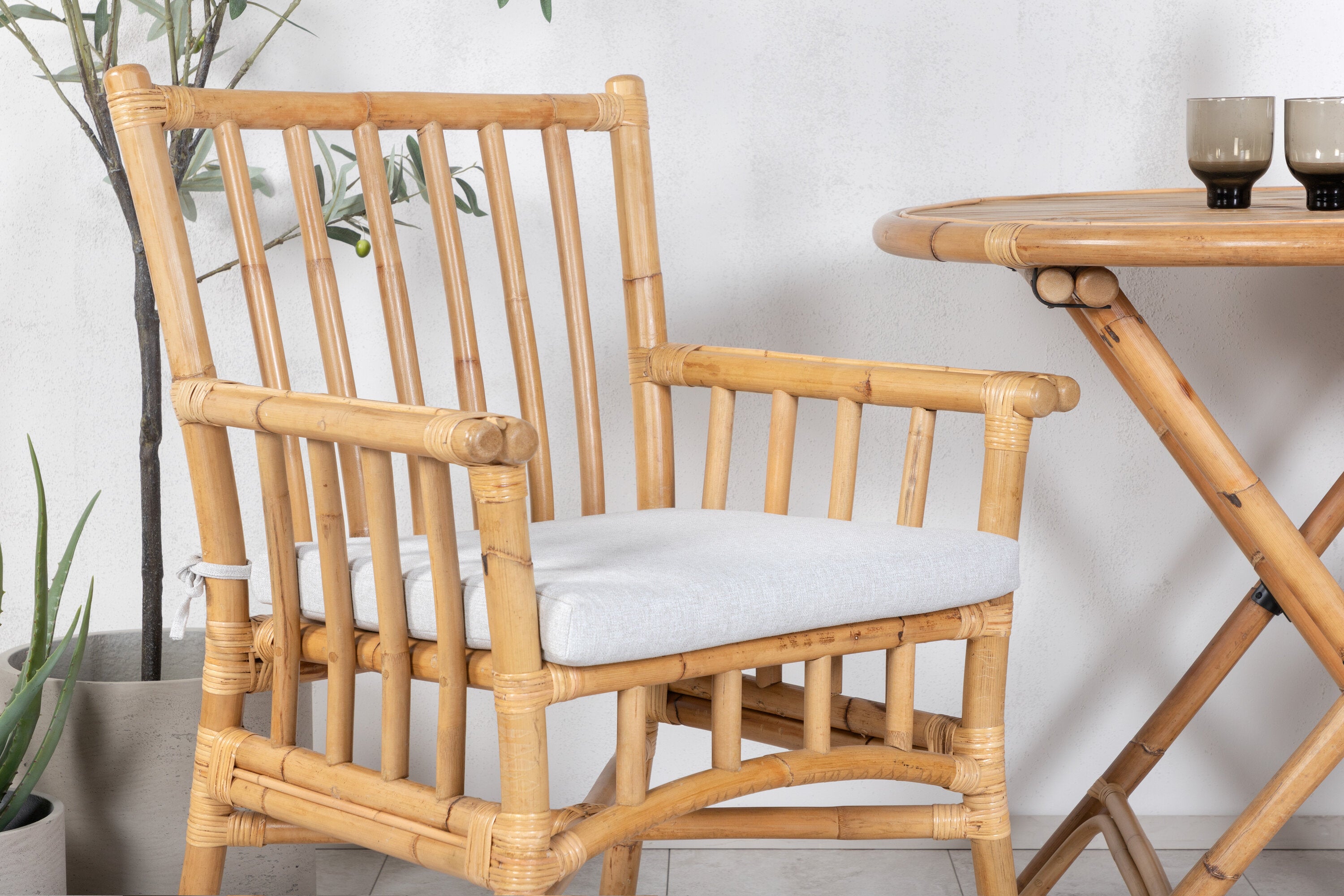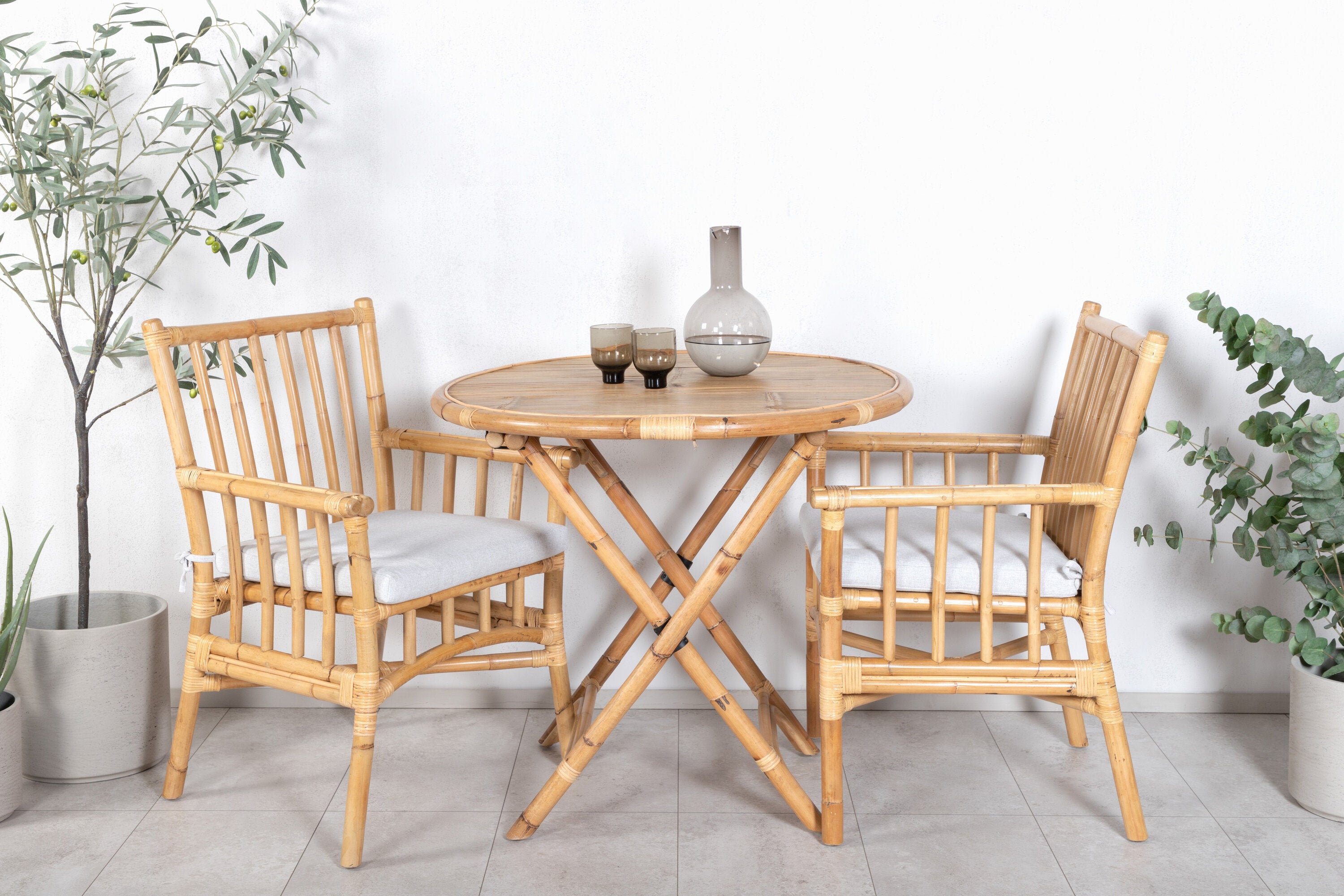 Cane, náš krásný kavárenský stůl a jídelní židle z přírodního bambusu. Tato elegantní kombinace se snadno hodí do většiny prostředí a poskytuje tichý a příjemný pocit. Zařiďte si terasu nebo balkon, abyste vytvořili dokonalé místo pro kávu v nádherném letním dni.