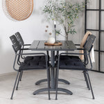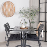 Jídelní stůl Denver v klasickém stylu. Ke stolu přichází naše oblíbené jídelní židle Nicke, kombinace, která vytváří hřejivý, přirozený a příjemný pocit z venkovního prostoru. Rozšiřte svá pozvání na večeři a vyhněte se obavám, že budou všichni ubytováni. Tato skupina jídel vám zaručí dlouhé a pohodlné večery při západu slunce na vaší terase!
