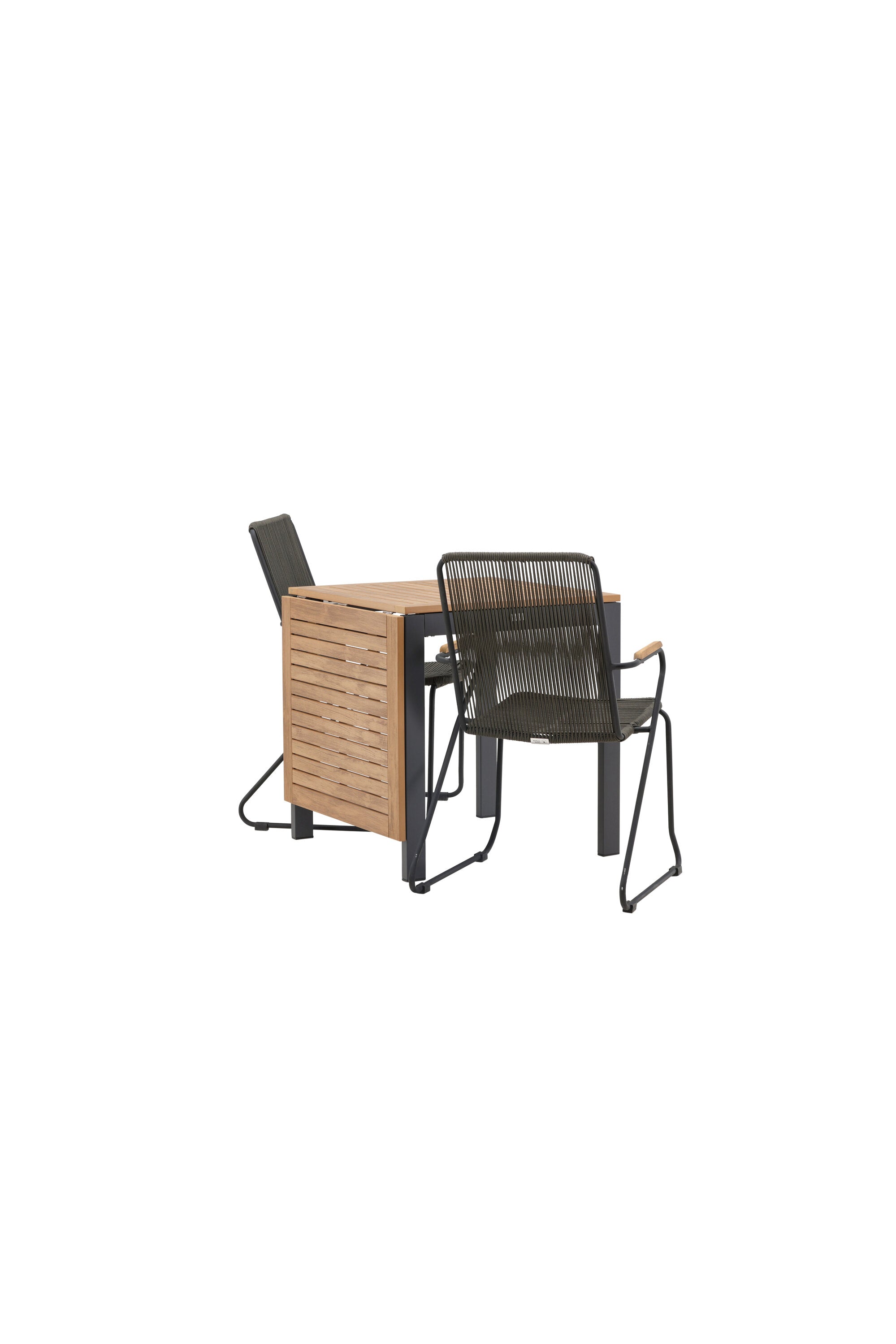 Diego Cafetable Hliník – Černá / Hnědá Aintwood – Obdélníkový 70*70/130* + Bois Jídelní židle Ocel – Černá / Tmavě šedá Lano _2