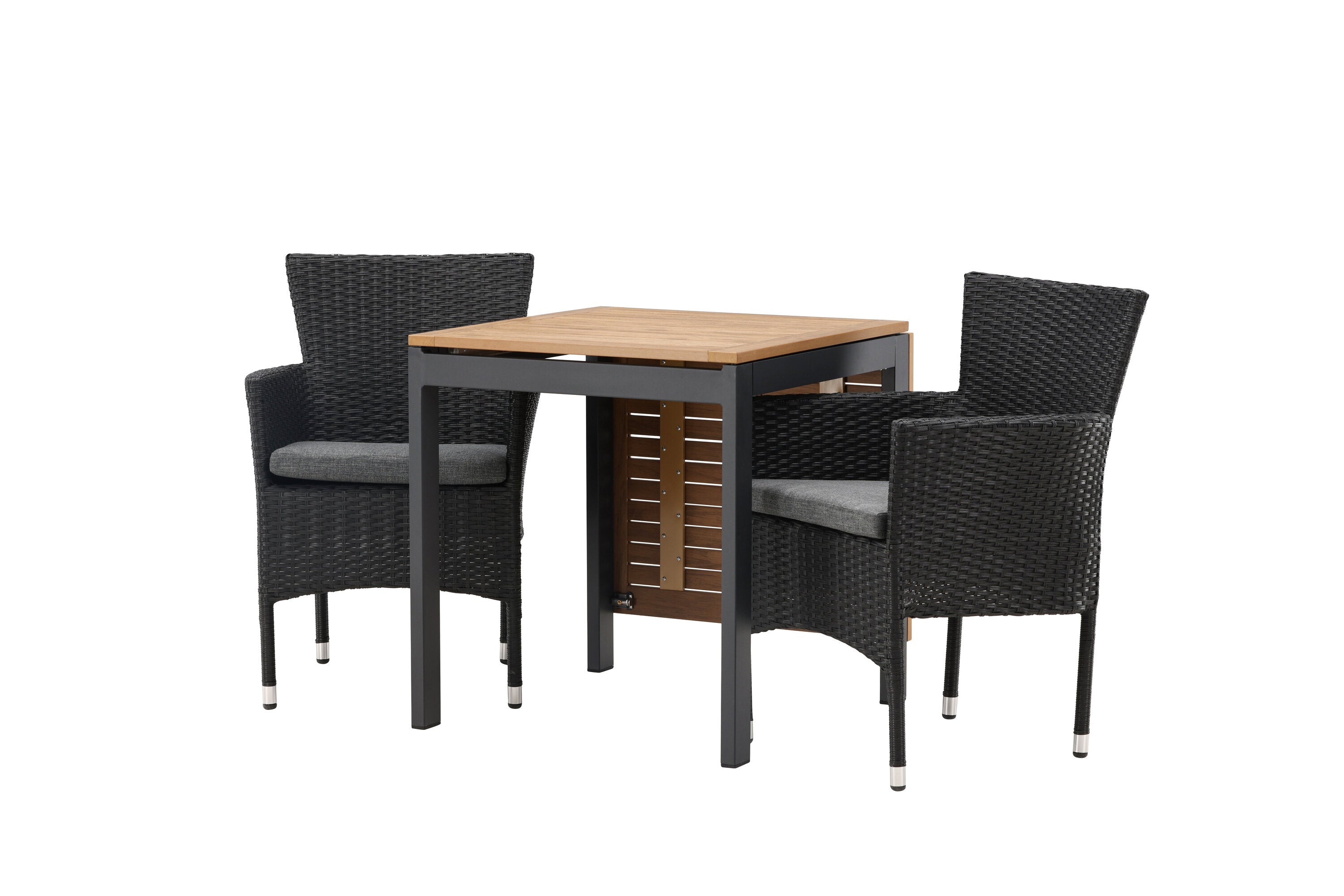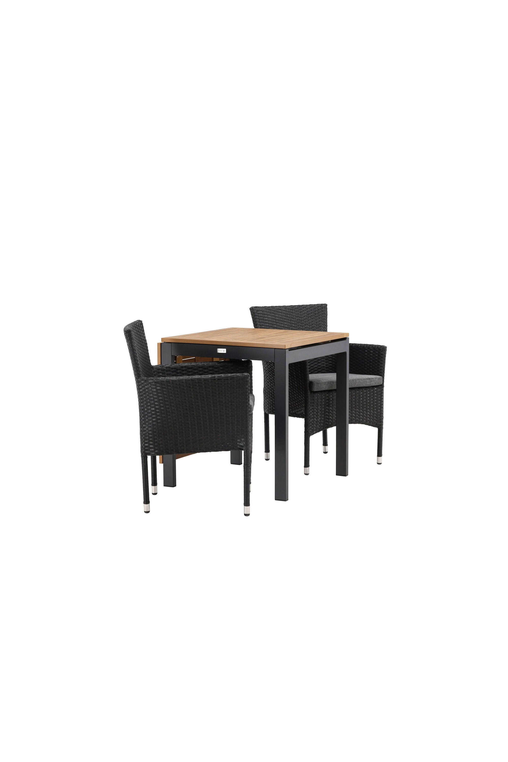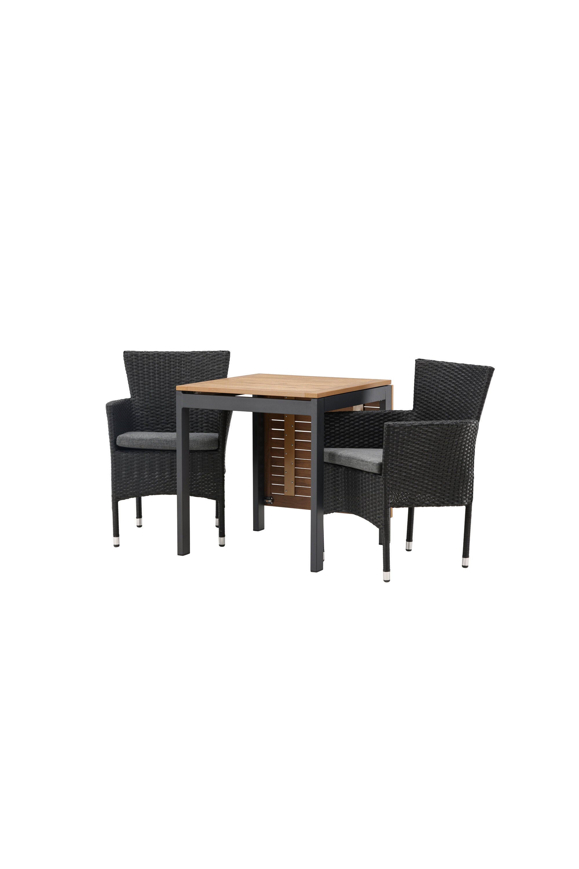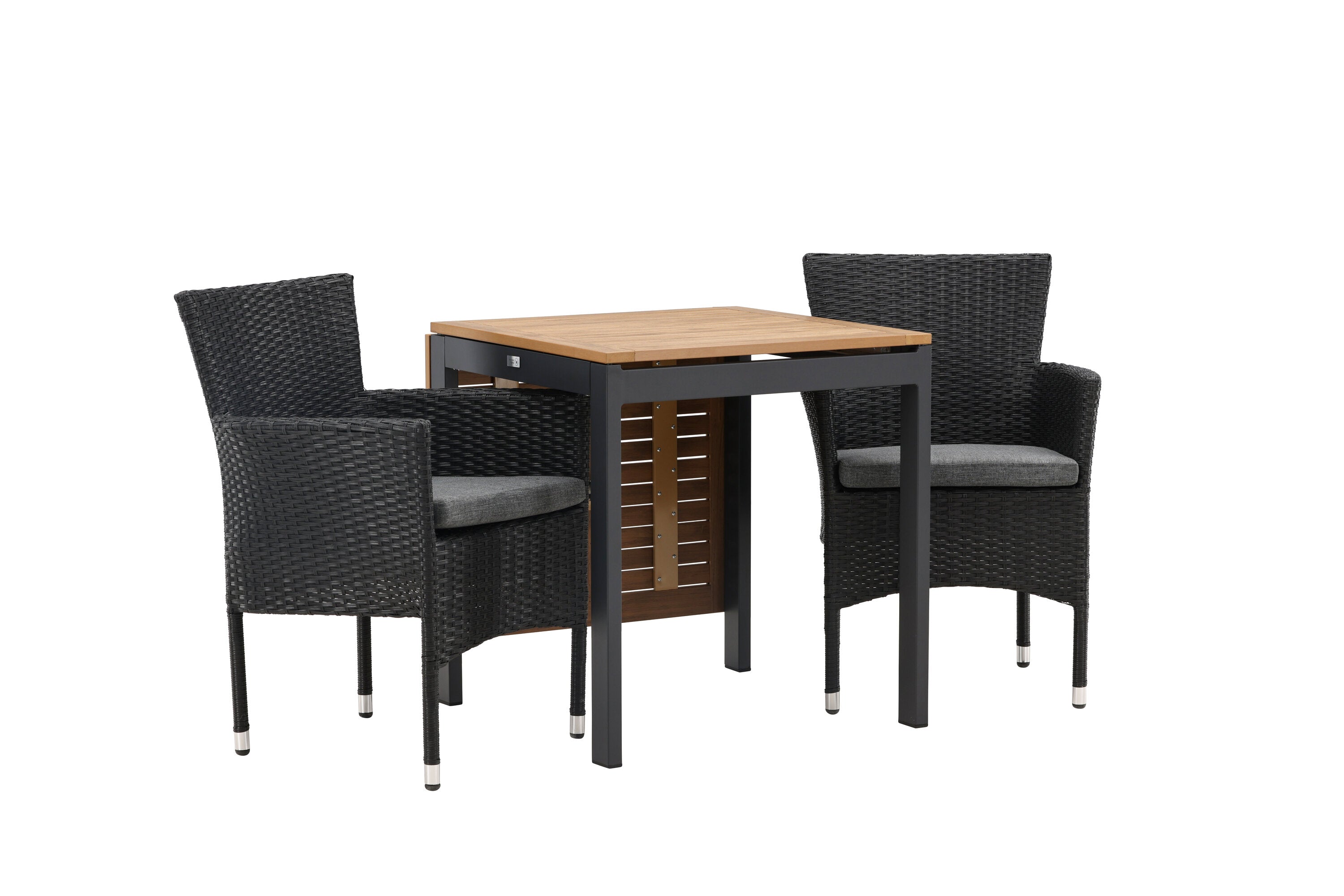 Diego Cafetable hliník – černá / hnědá Aintwood – obdélníkový 70*70/130* + hliníková jídelní židle Malina – černá / proutí _2