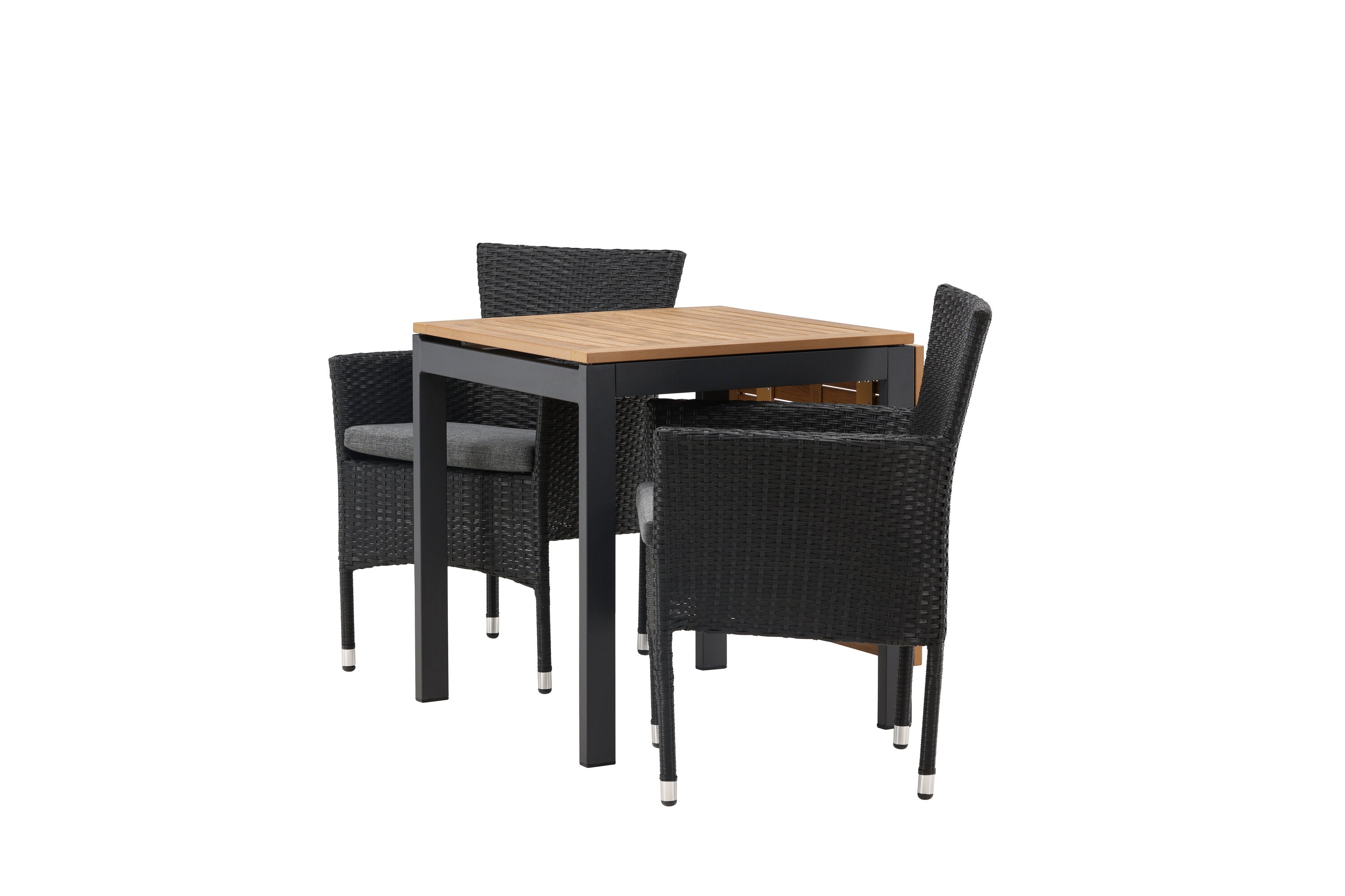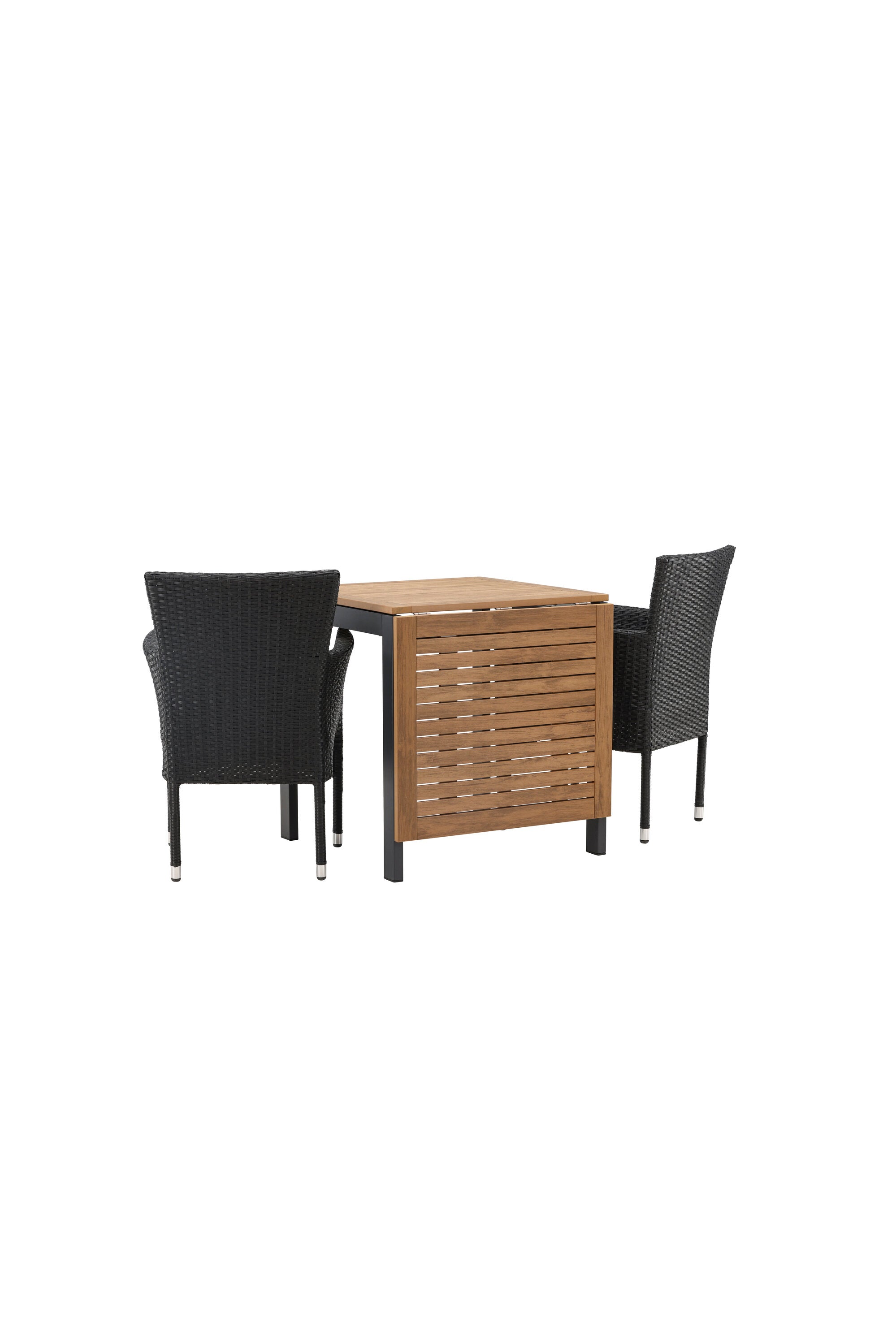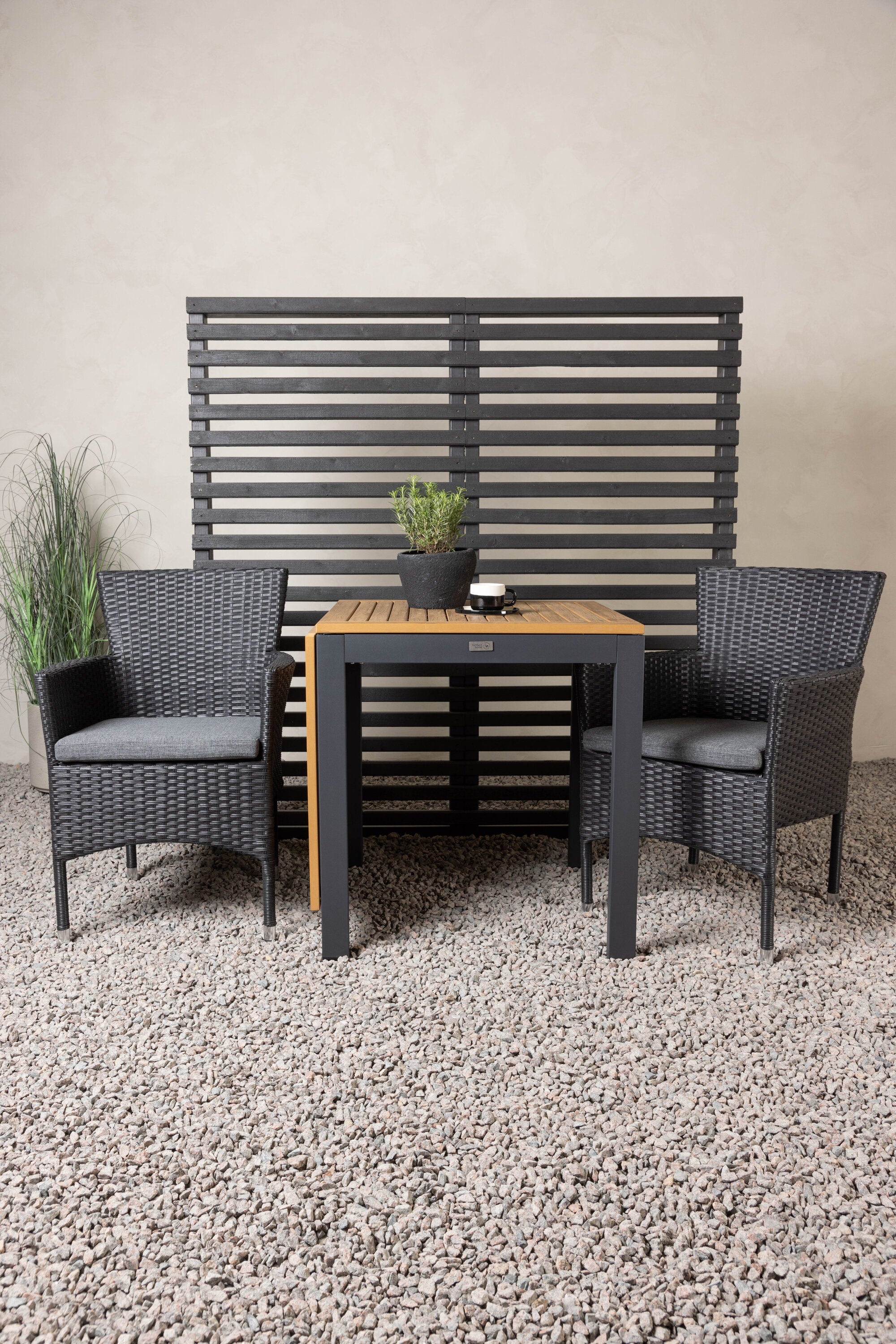 Diego Cafetable hliník – černá / hnědá Aintwood – obdélníkový 70*70/130* + hliníková jídelní židle Malina – černá / proutí _2