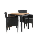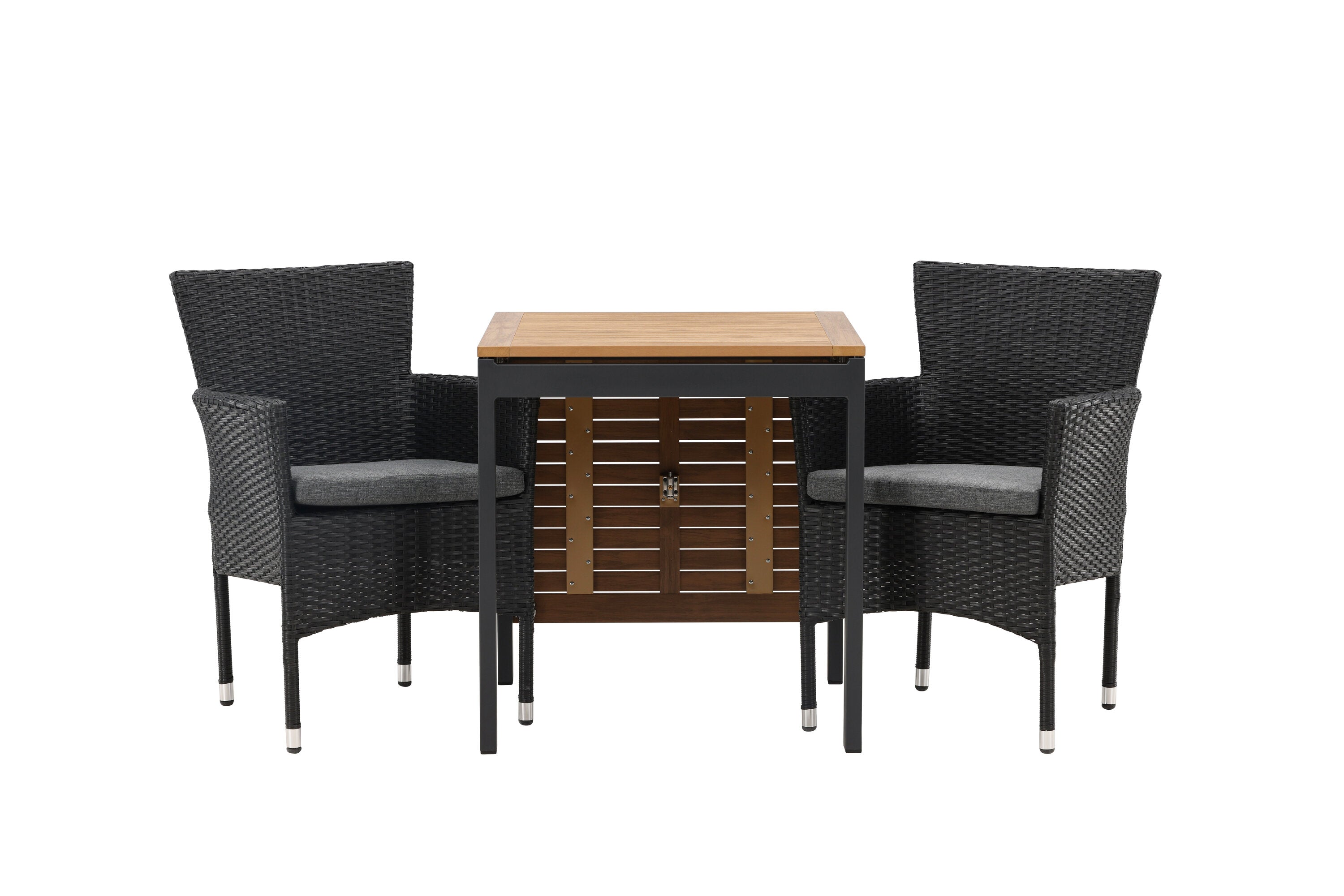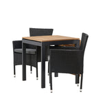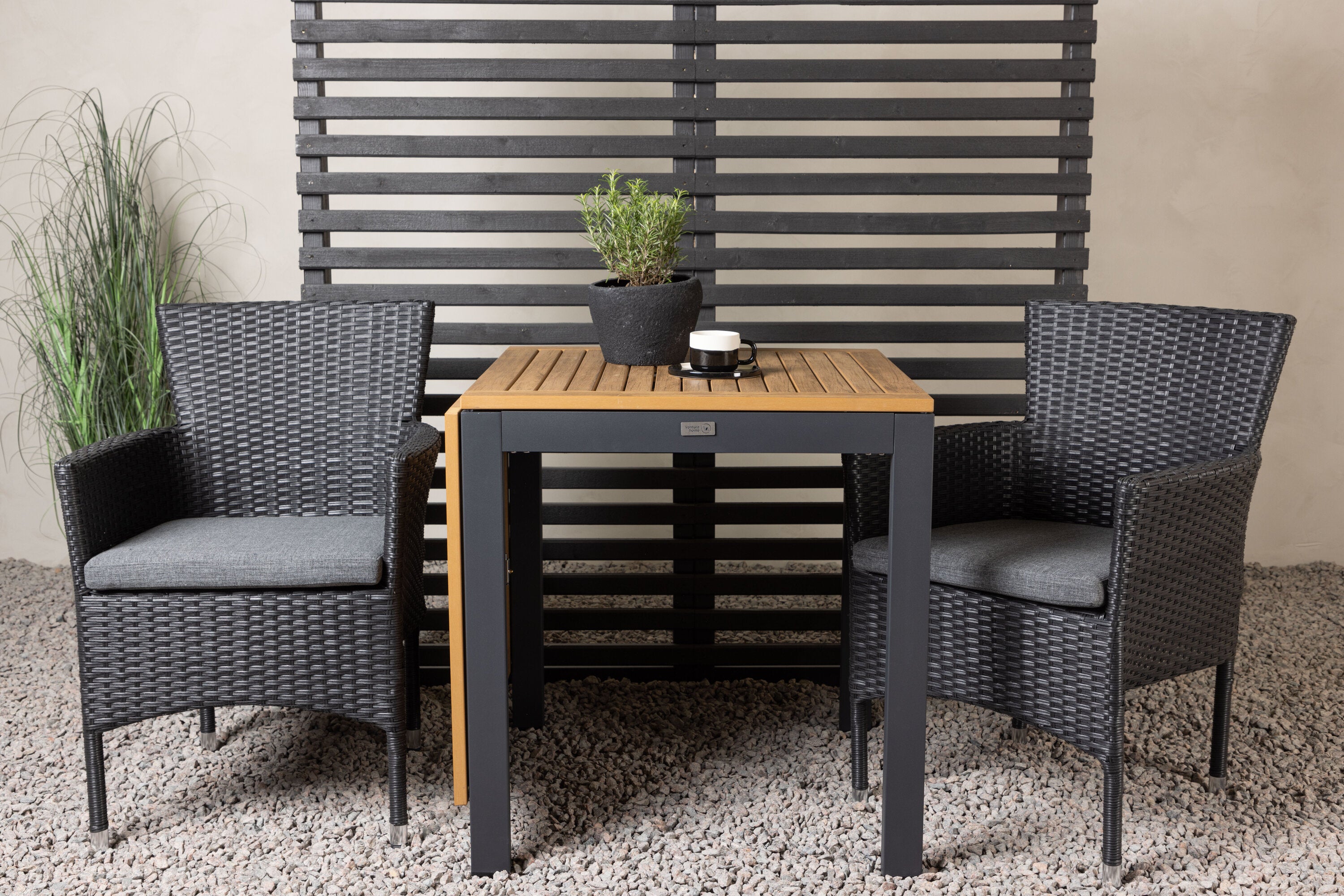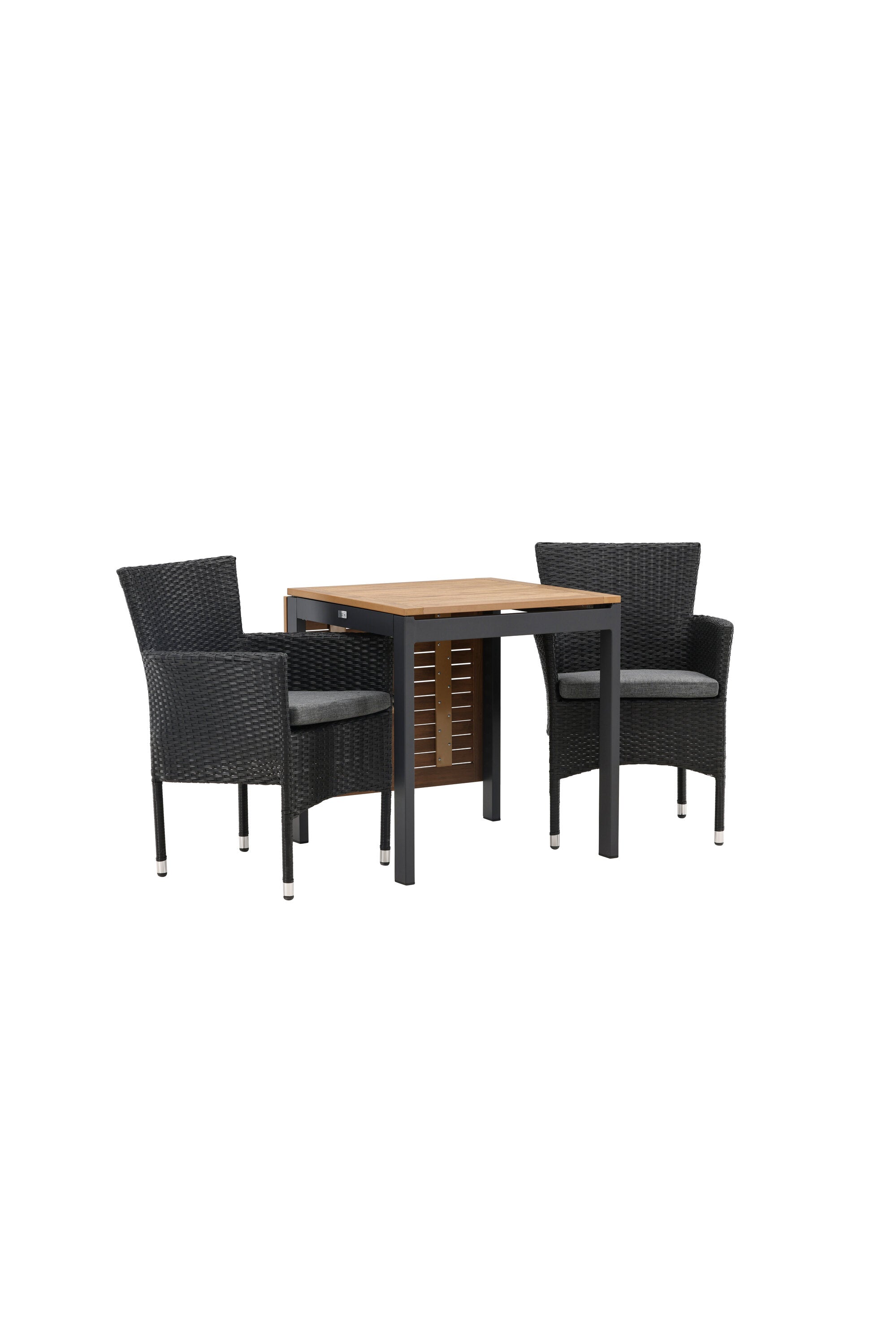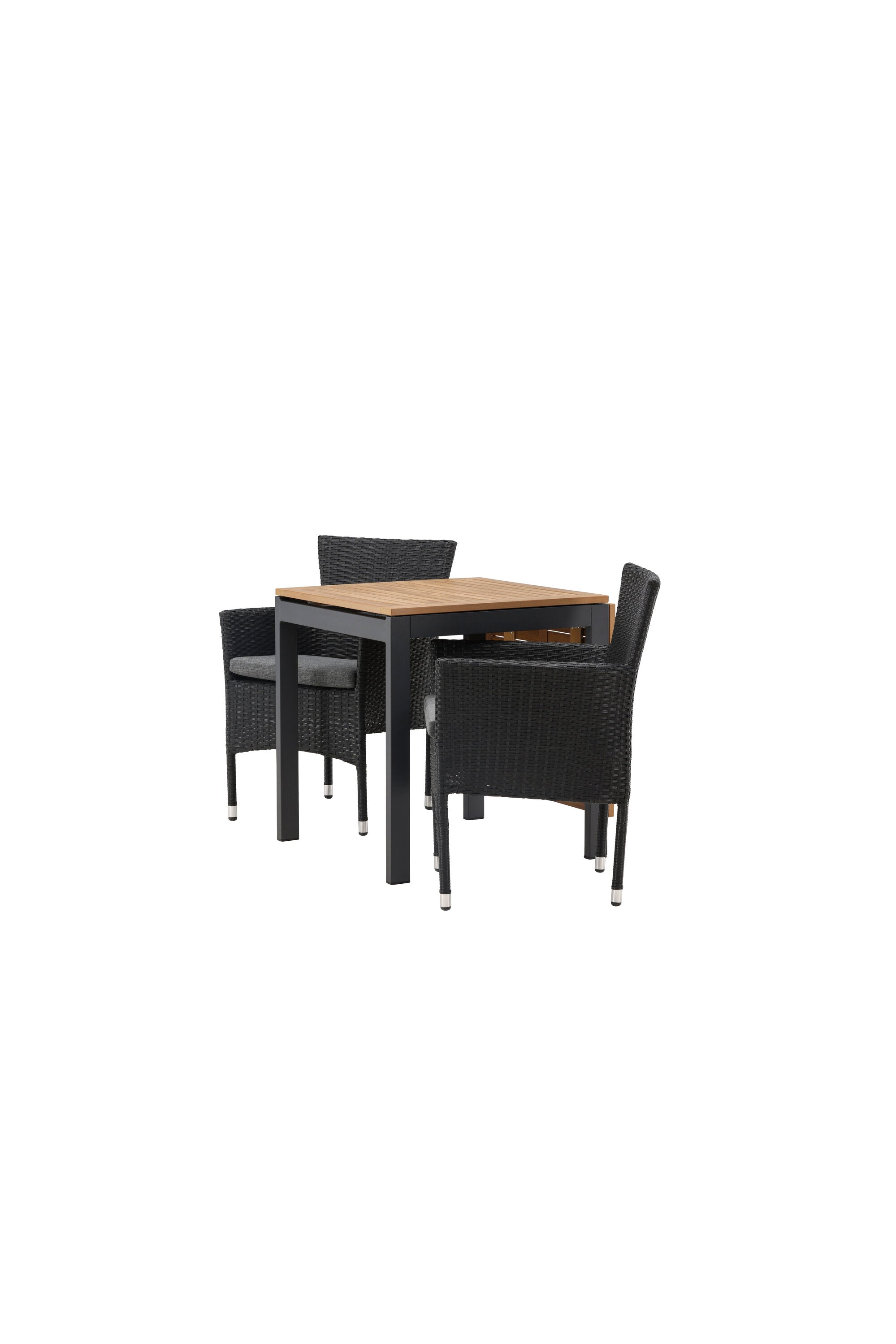 Diego Cafetable hliník – černá / hnědá Aintwood – obdélníkový 70*70/130* + hliníková jídelní židle Malina – černá / proutí _2