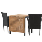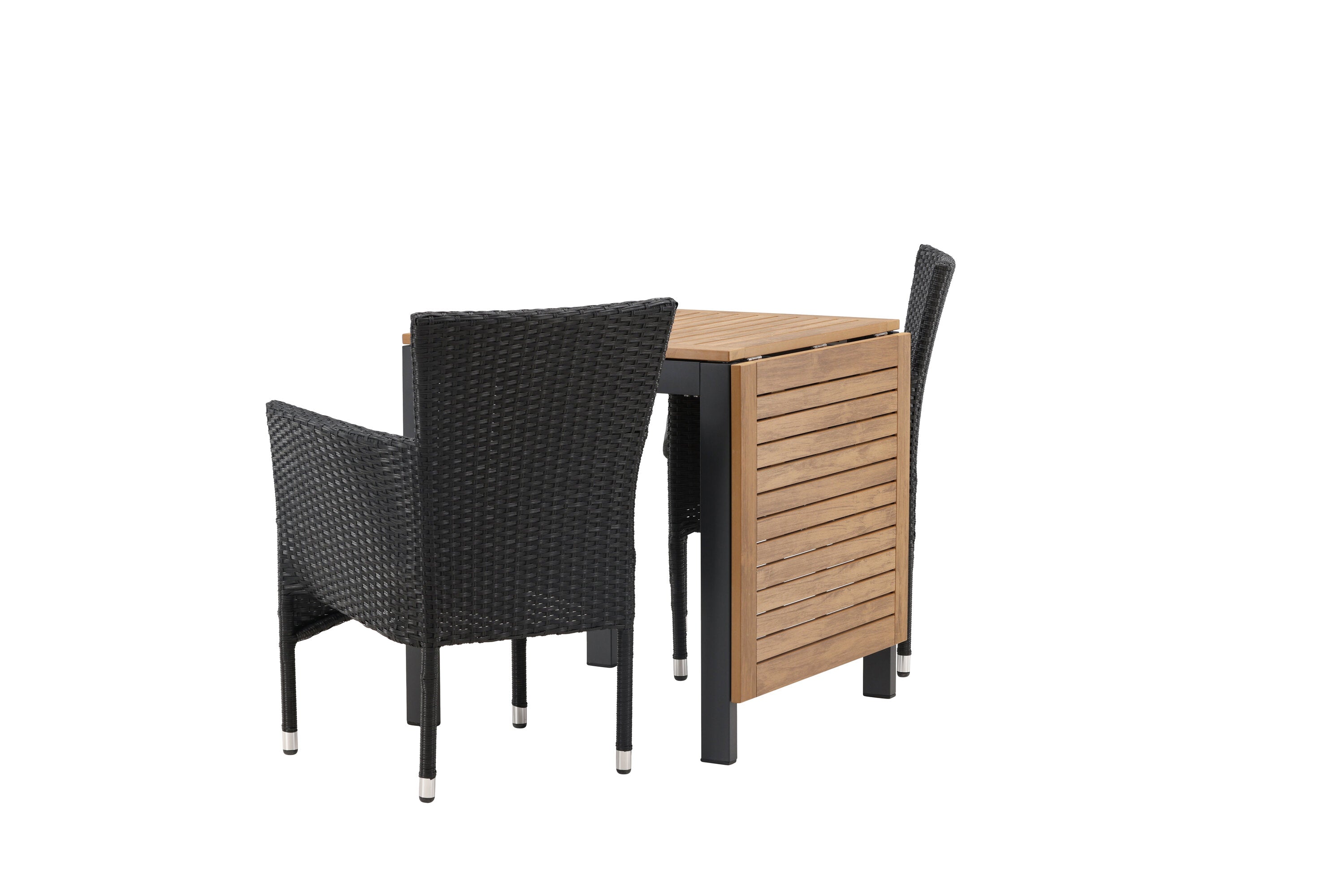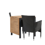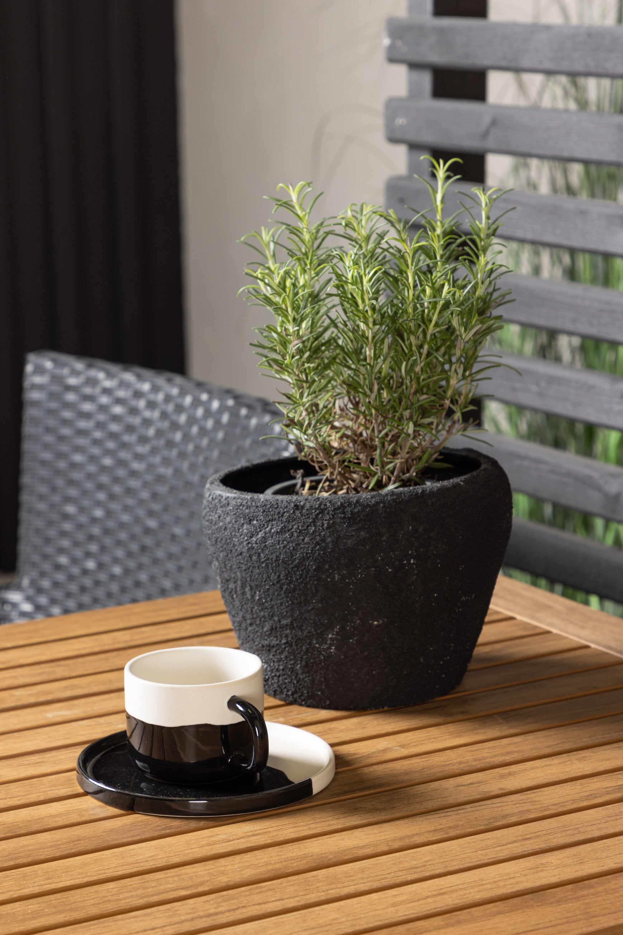 Pohodlně se usaďte u odpolední kávy! Kavárenský stůl Diego je stejně chytrý jako stylový s deskou v hnědém aintwoodu a nohami v černém hliníku. Stůl má také jednoduchou konstrukci, která umožňuje snadné skládání nástavných desek po stranách. Zde v kombinaci s našimi fantastickými jídelními židlemi ze série Malina. Židle má hliníkový rám a je čalouněná pleteným, černým umělým ratanem. Pohodlné a klasické styly se nikdy nezkazí! Rozměry stolu: 130/70x70cm.