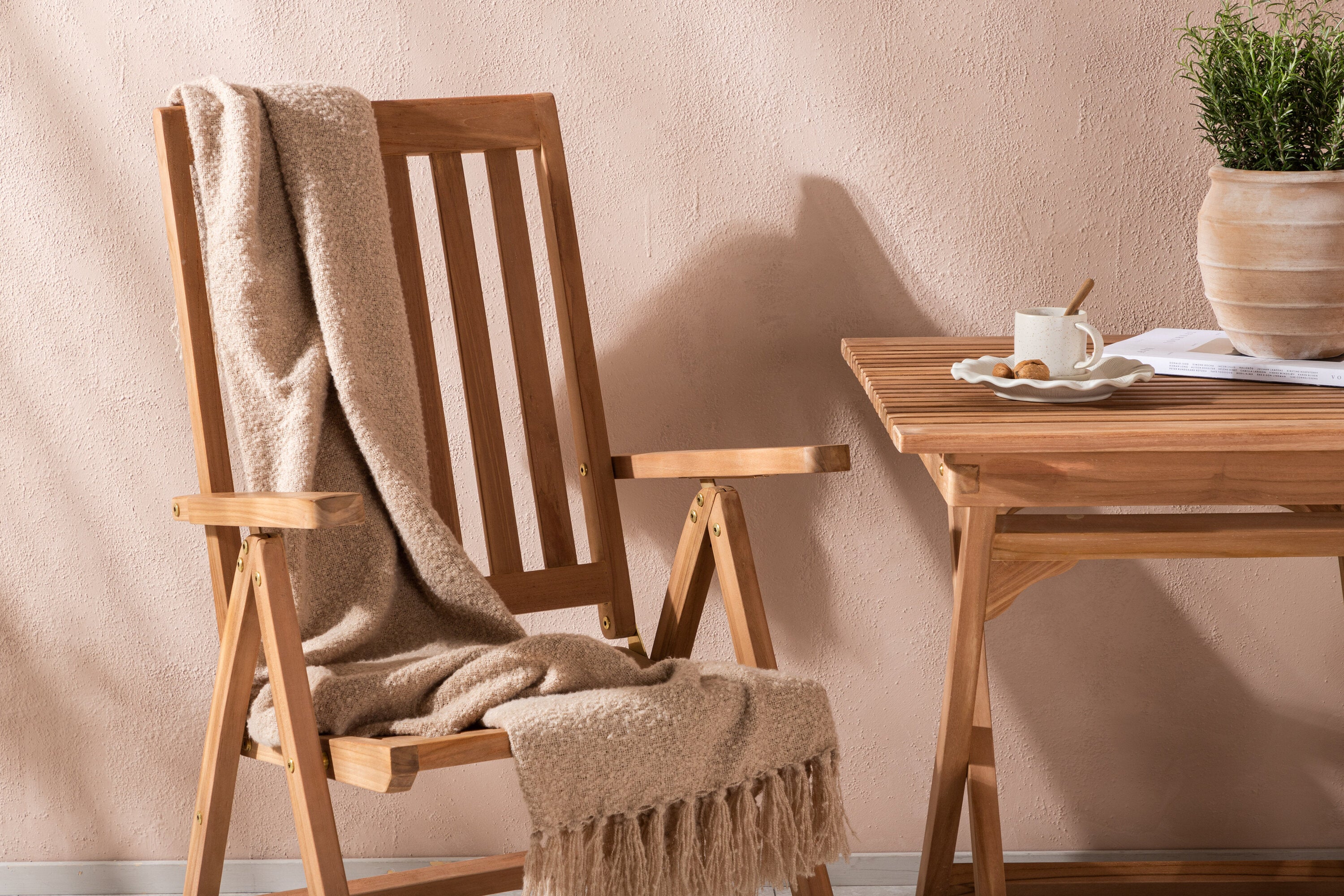 Ghana - Skládací stůl - Natural - Teak - 70*70cm _1+ Keňa 5poziční skládací židle - Teak _2