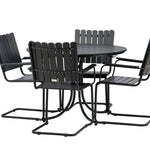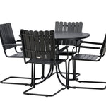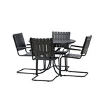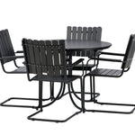 Jídelní set Holmsund, vyrobený z robustní černé oceli s krásnou deskou a židlemi z akácie, nabízí pocit modernosti i přirozené krásy. Postaven tak, aby odolal povětrnostním vlivům, získáte spolehlivou jídelní soupravu, kterou si můžete bez obav užívat rok co rok.