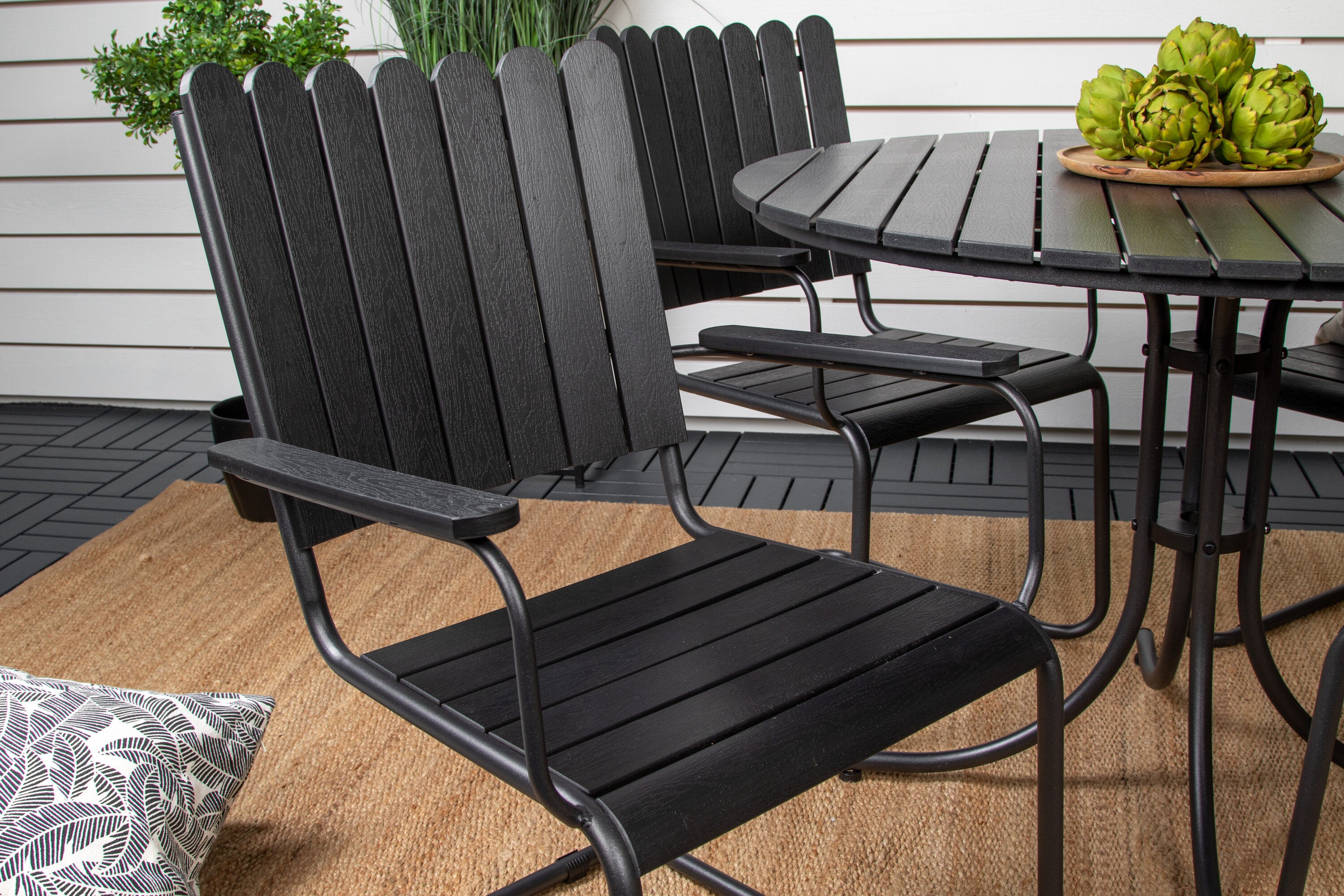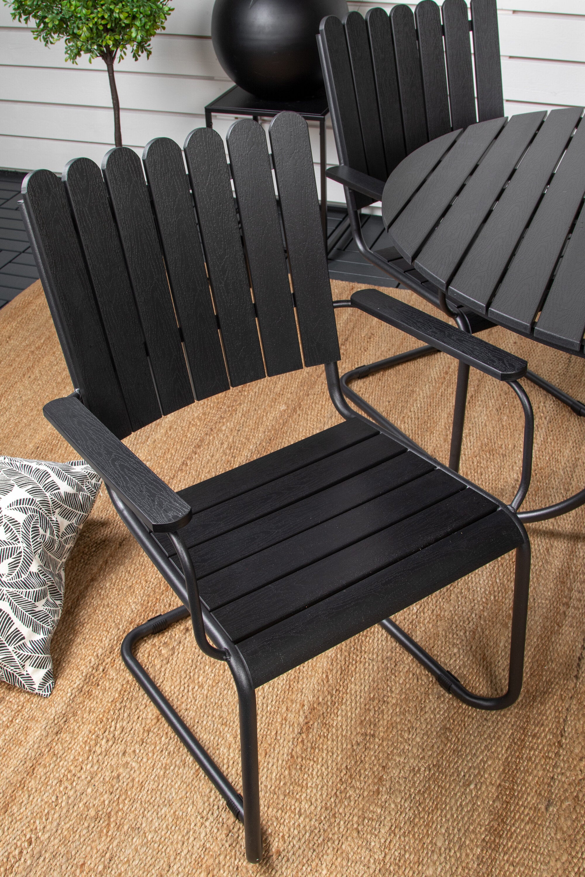 Vydejte se na svůj balkon do nádherně luxusního jídelního setu, který díky svému nadčasovému designu a odolným materiálům obstojí ve zkoušce času! Tato černá jídelní souprava ze série Holmsund vyzařuje moderní eleganci s okouzlujícím a lákavým designem, který se rychle stane okouzlujícím a vkusným detailem vaší zahrady.