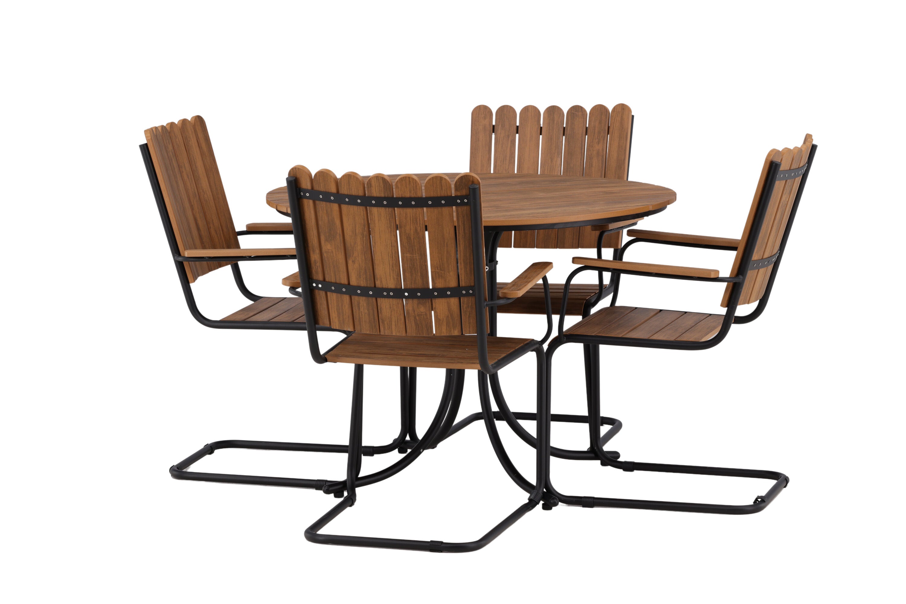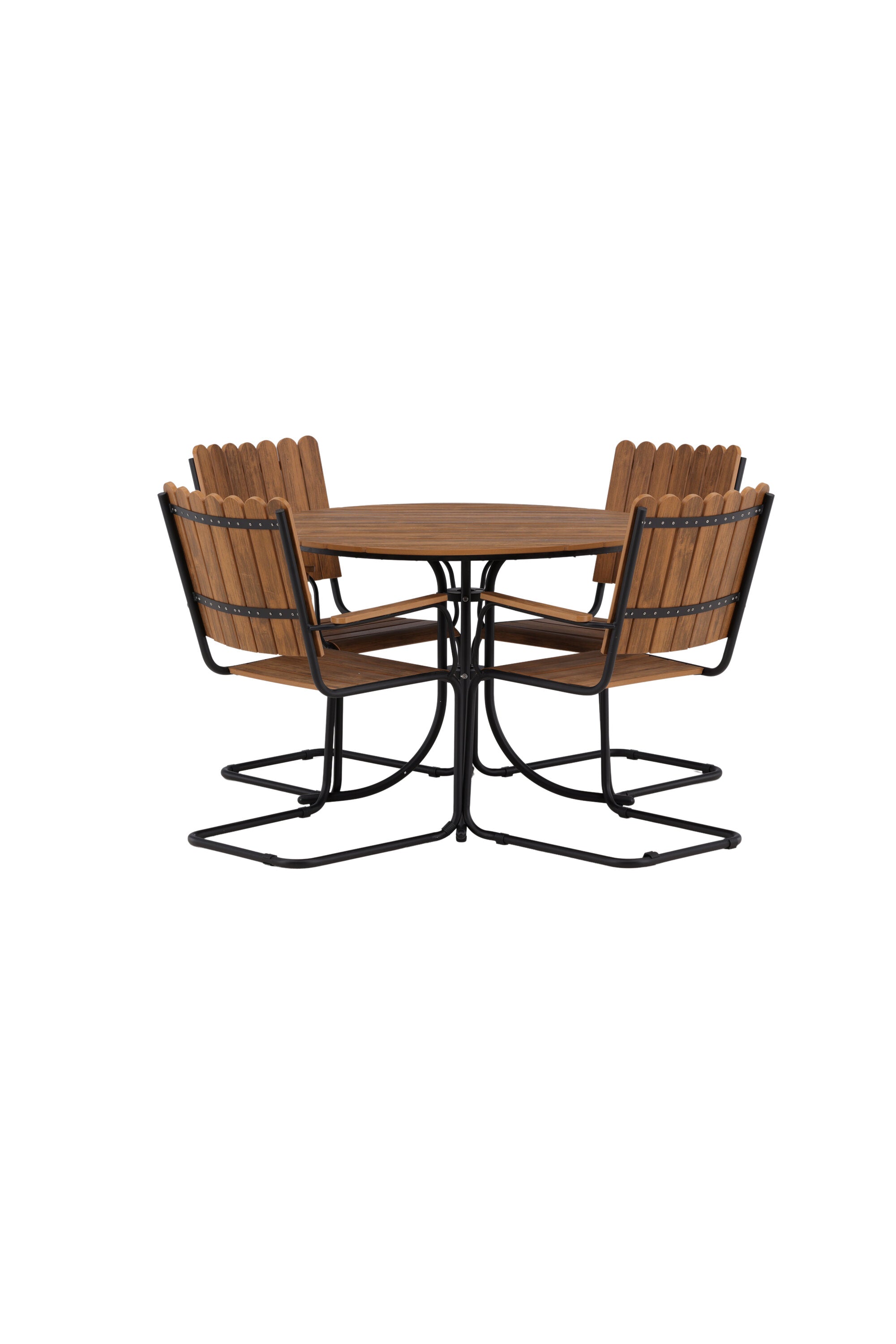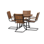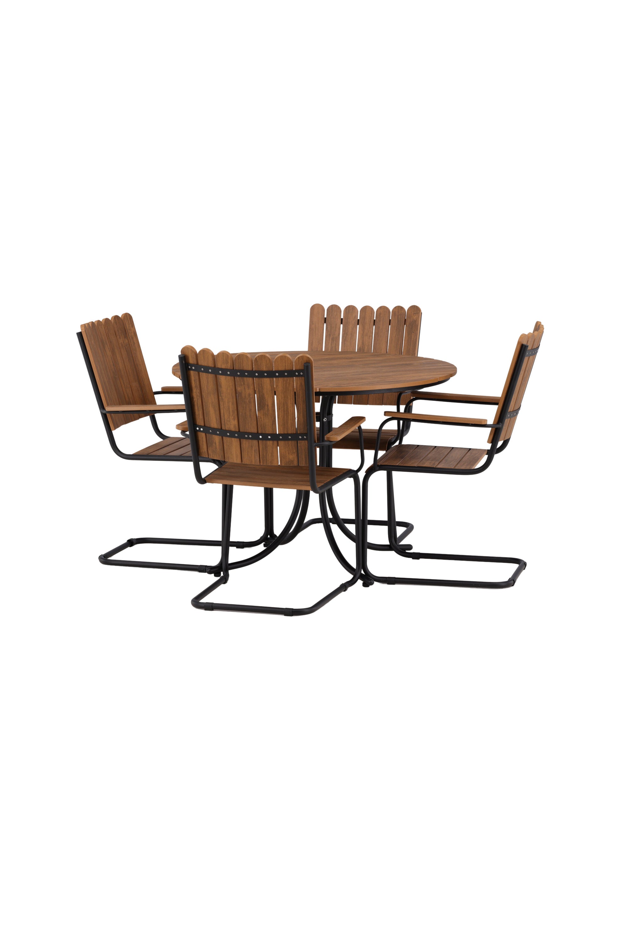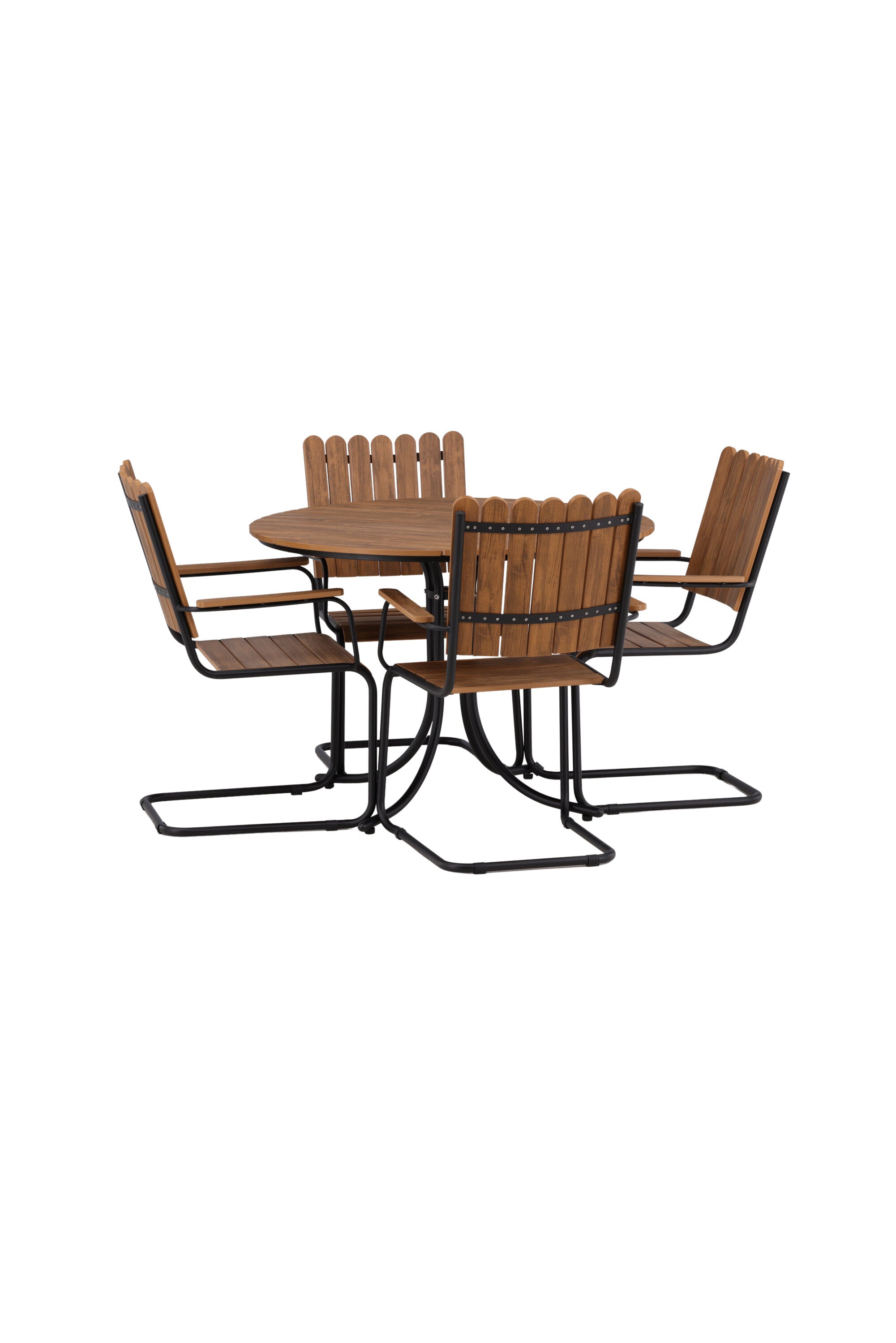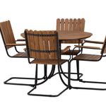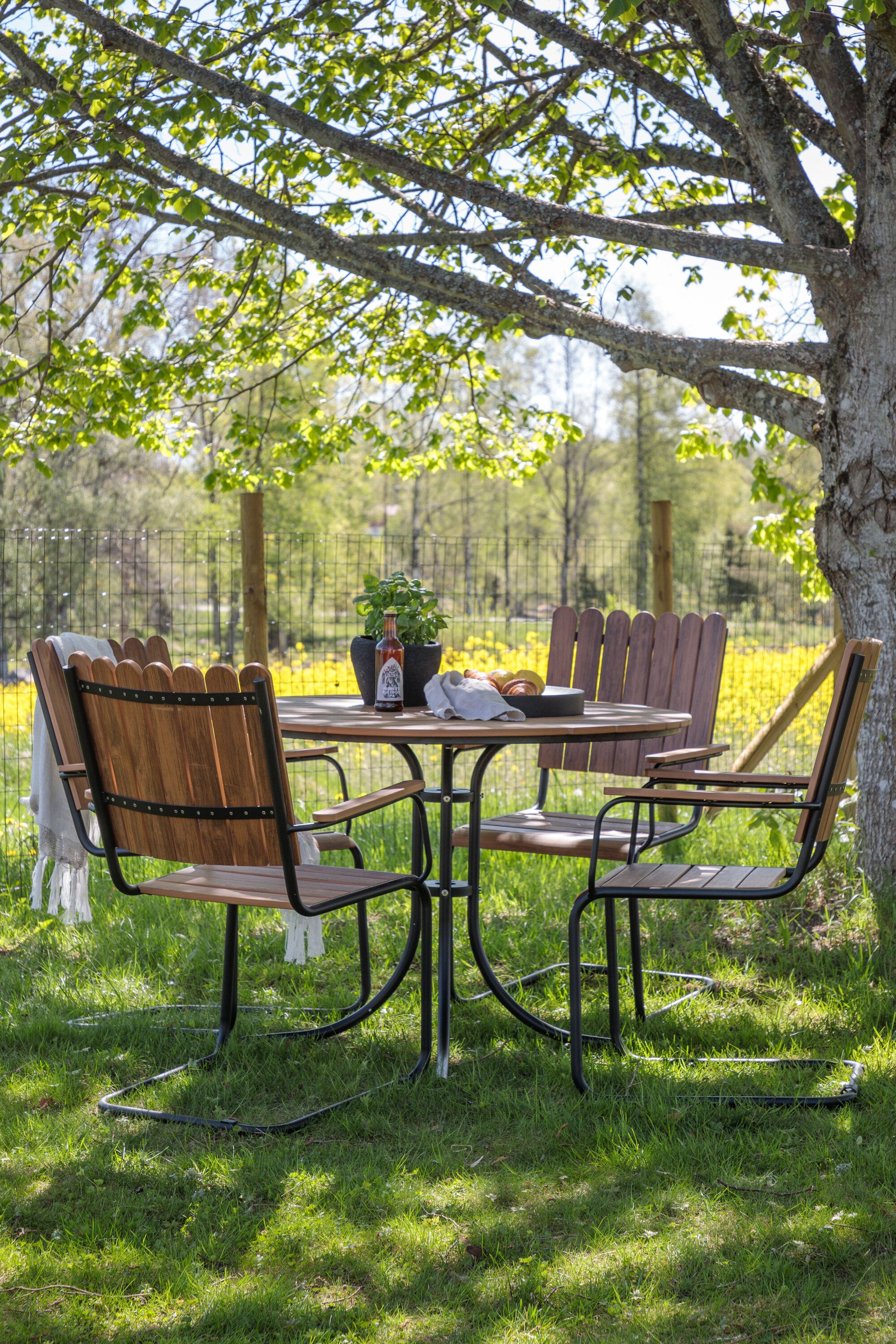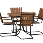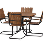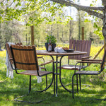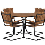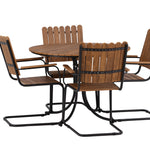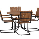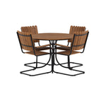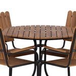 Moderní, odolný a příjemný! Tento kulatý jídelní stůl ze série Holmsund vytvoří svým okouzlujícím designem lahodný poutač na vaší zahradě. Jídelní skupina je vyrobena z černé oceli a židle a deska stolu jsou vyrobeny z akácie v barvě dřeva. Doplňte židlemi ze stejné série a užijte si odpovídající jídelní sestavu, která ozdobí vaši terasu!