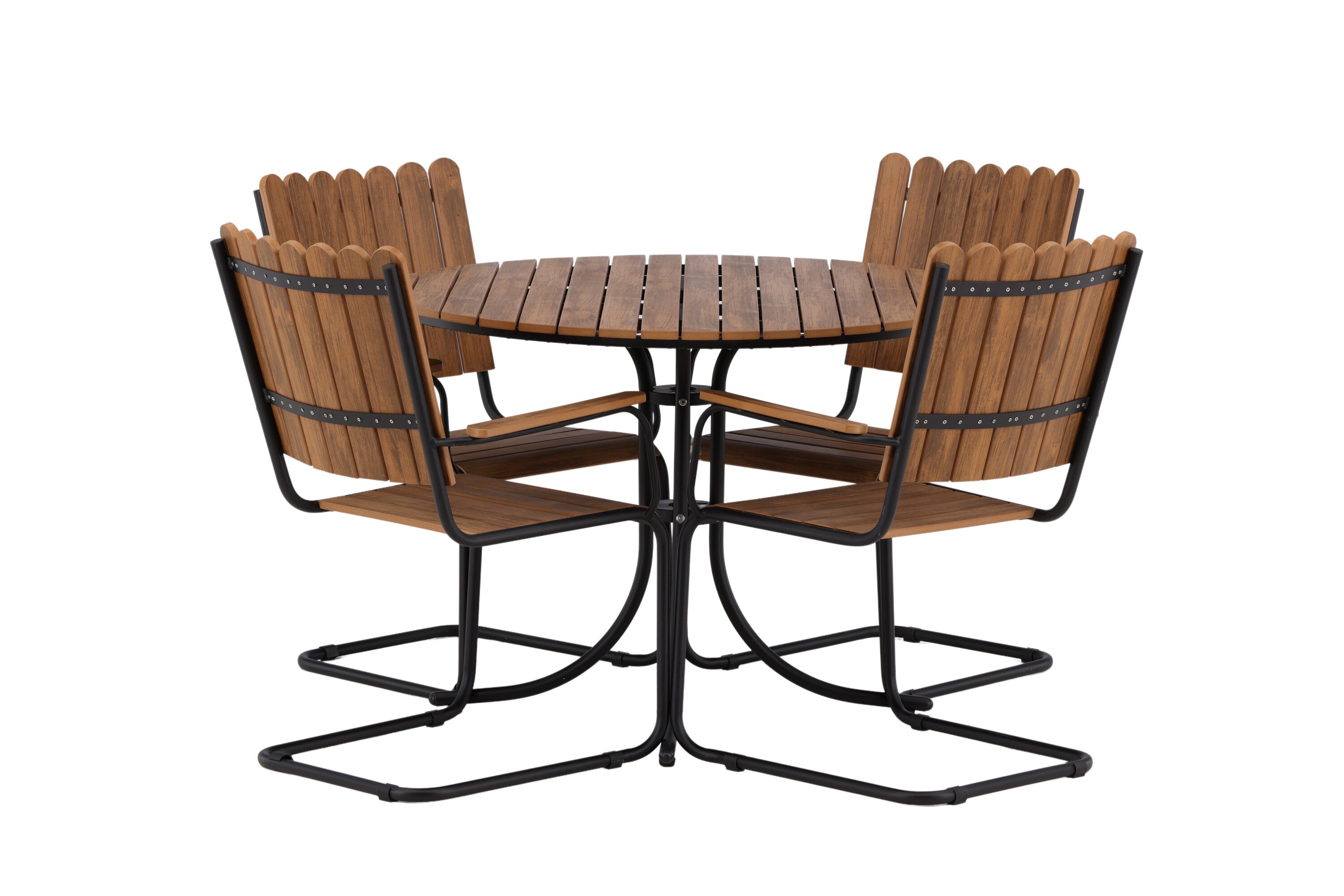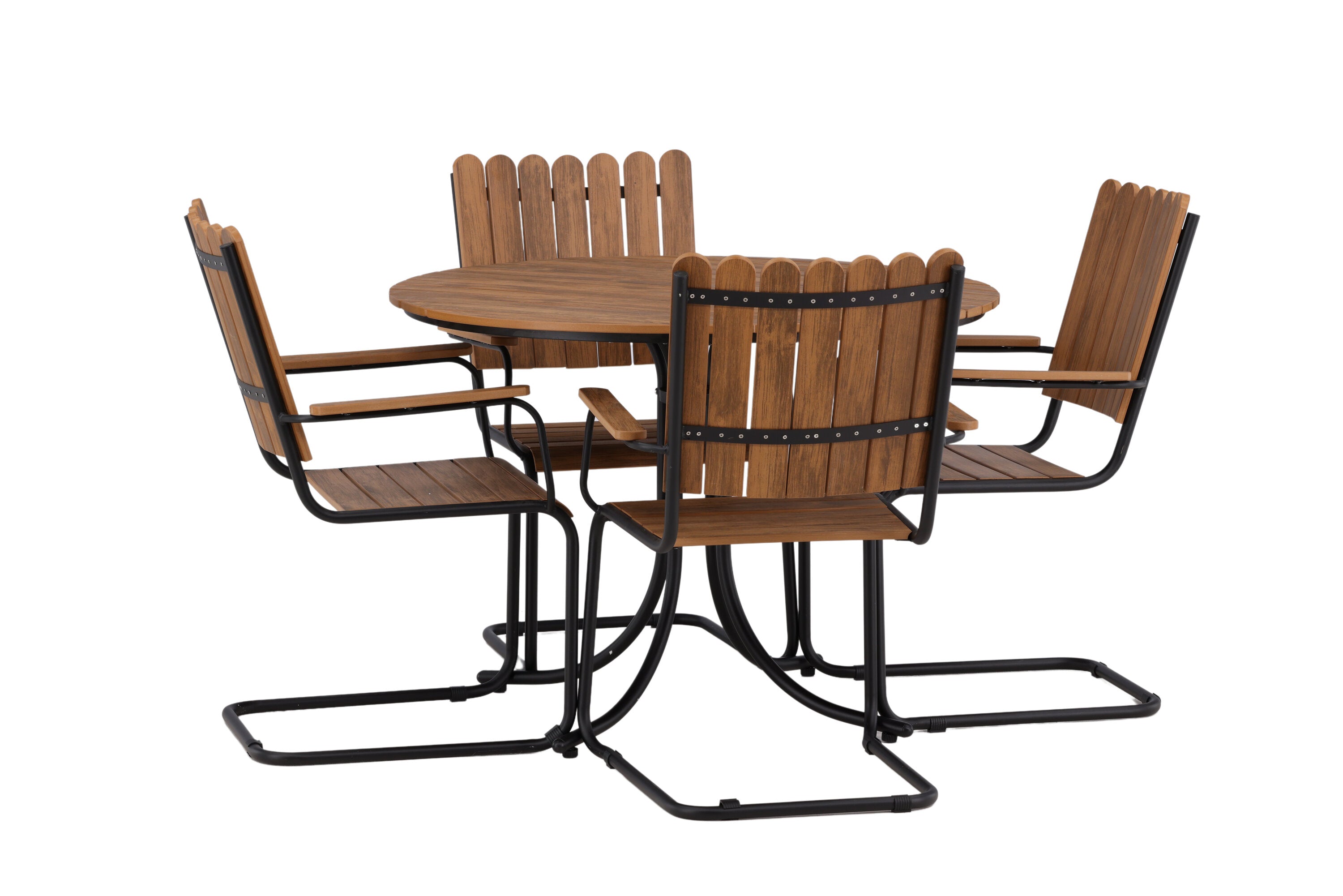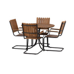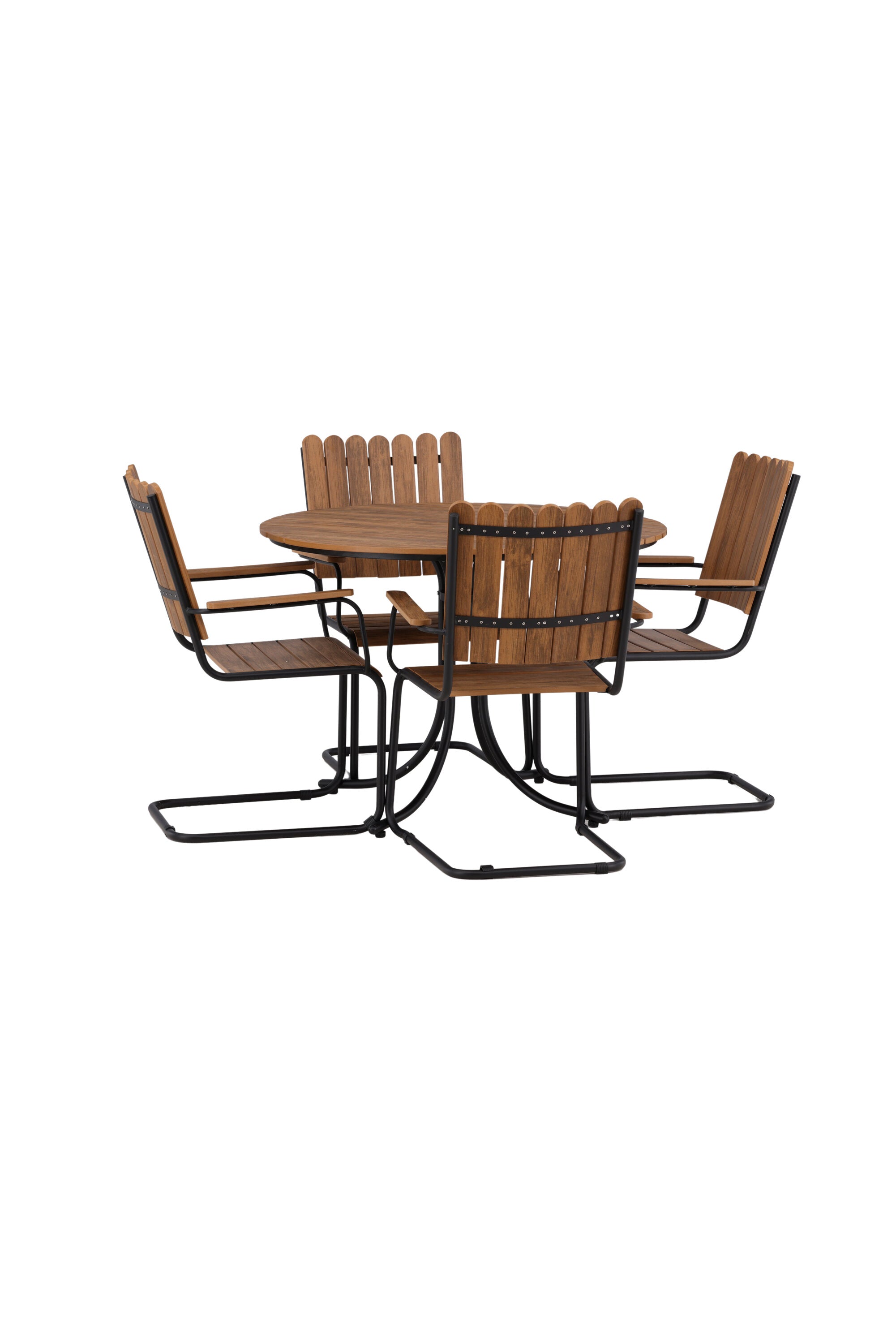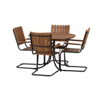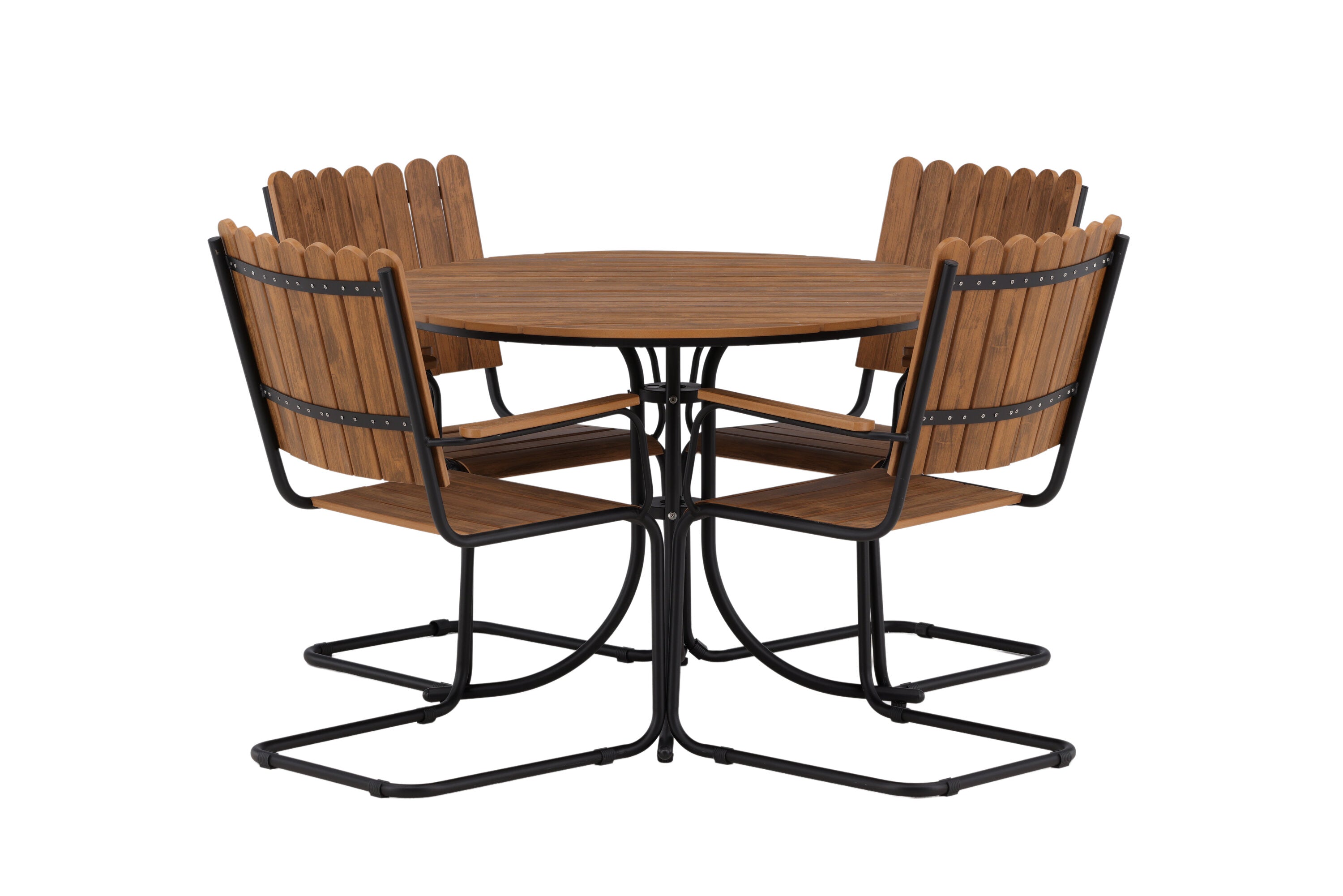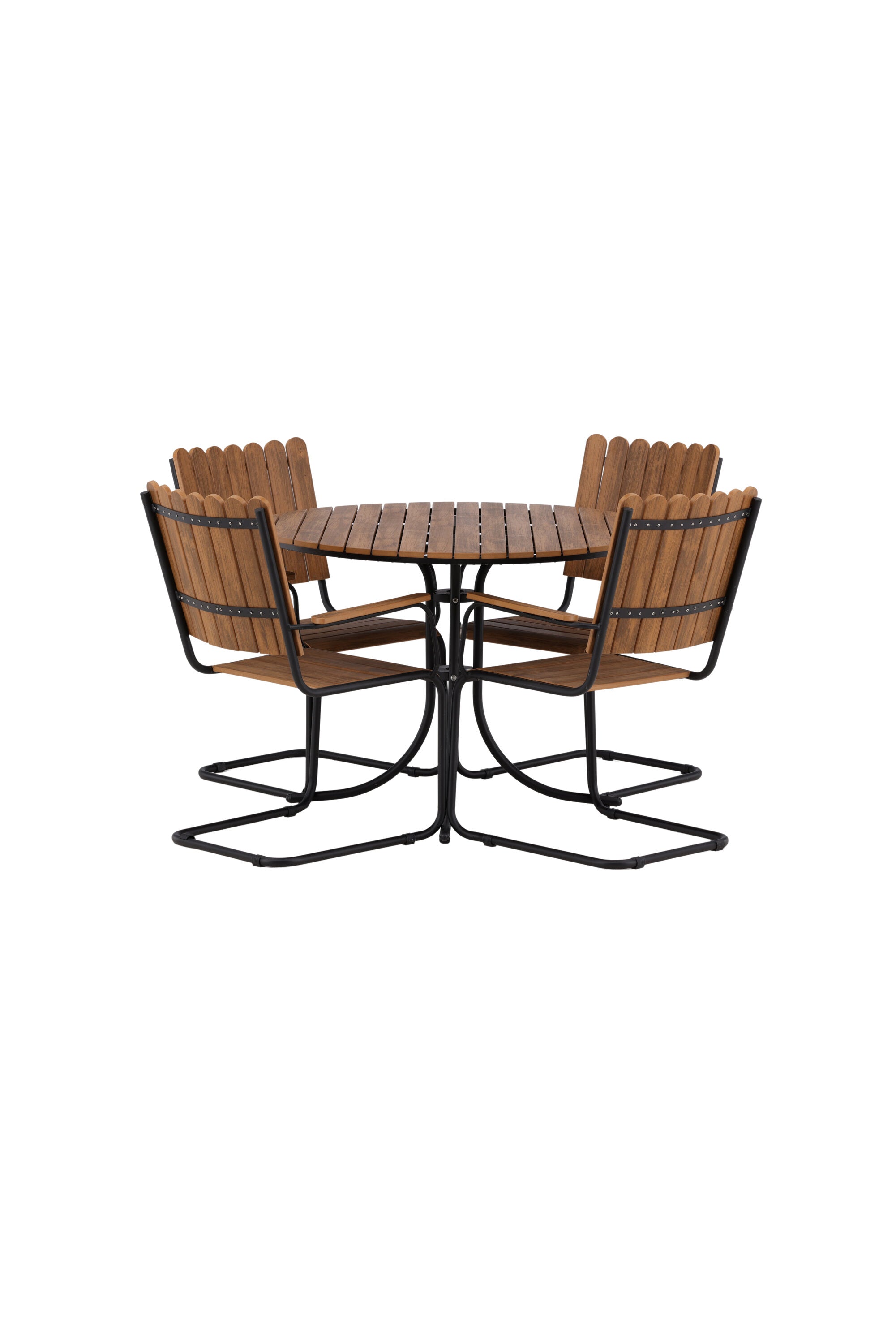 Moderní, odolný a příjemný! Tento kulatý jídelní stůl ze série Holmsund vytvoří svým okouzlujícím designem lahodný poutač na vaší zahradě. Jídelní skupina je vyrobena z černé oceli a židle a deska stolu jsou vyrobeny z akácie v barvě dřeva. Doplňte židlemi ze stejné série a užijte si odpovídající jídelní sestavu, která ozdobí vaši terasu!