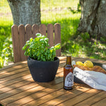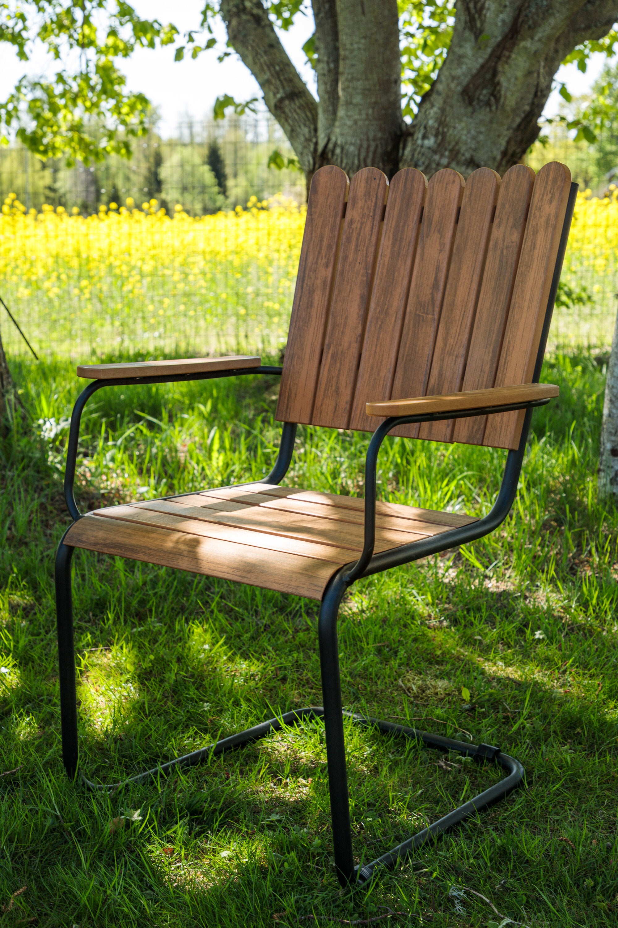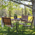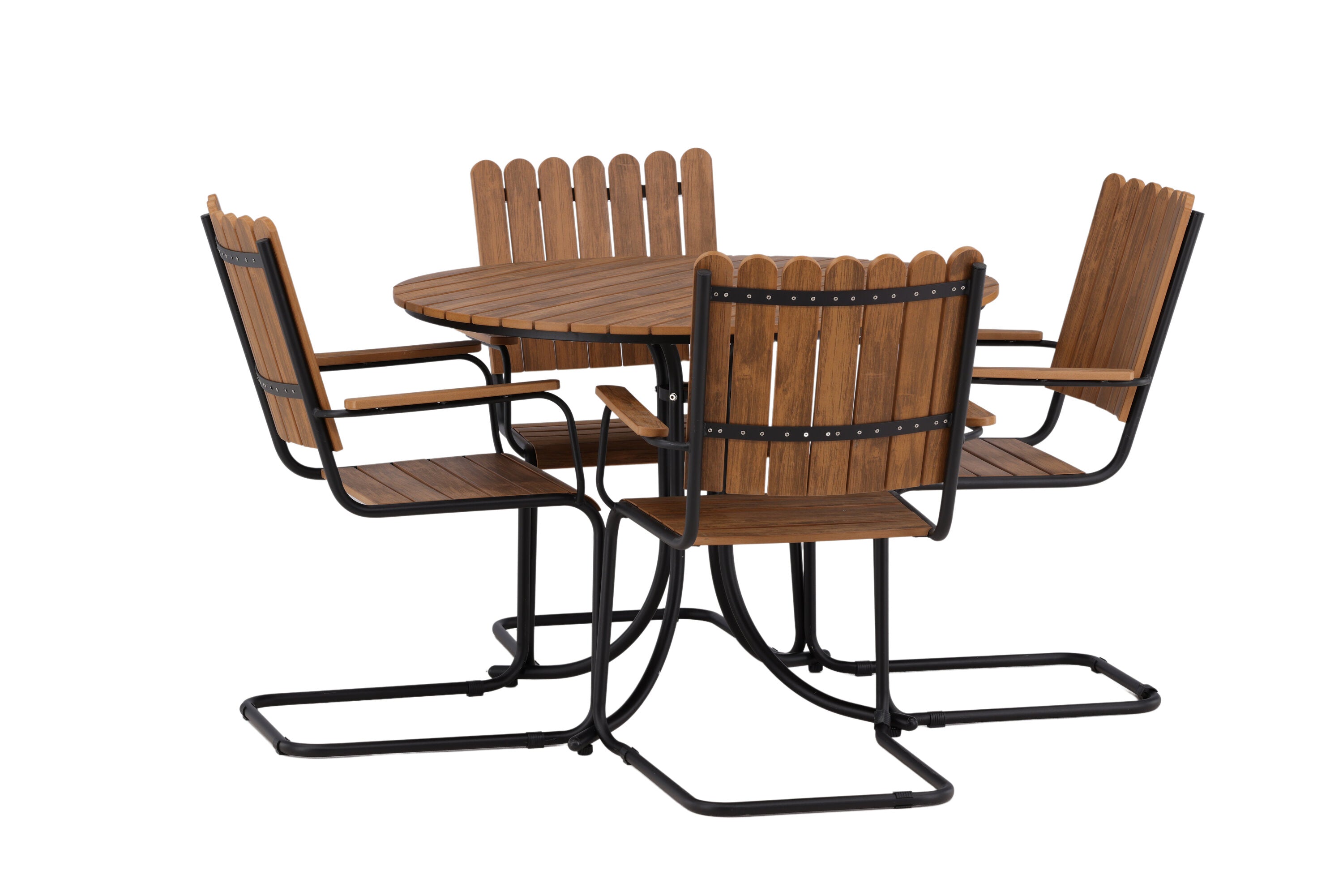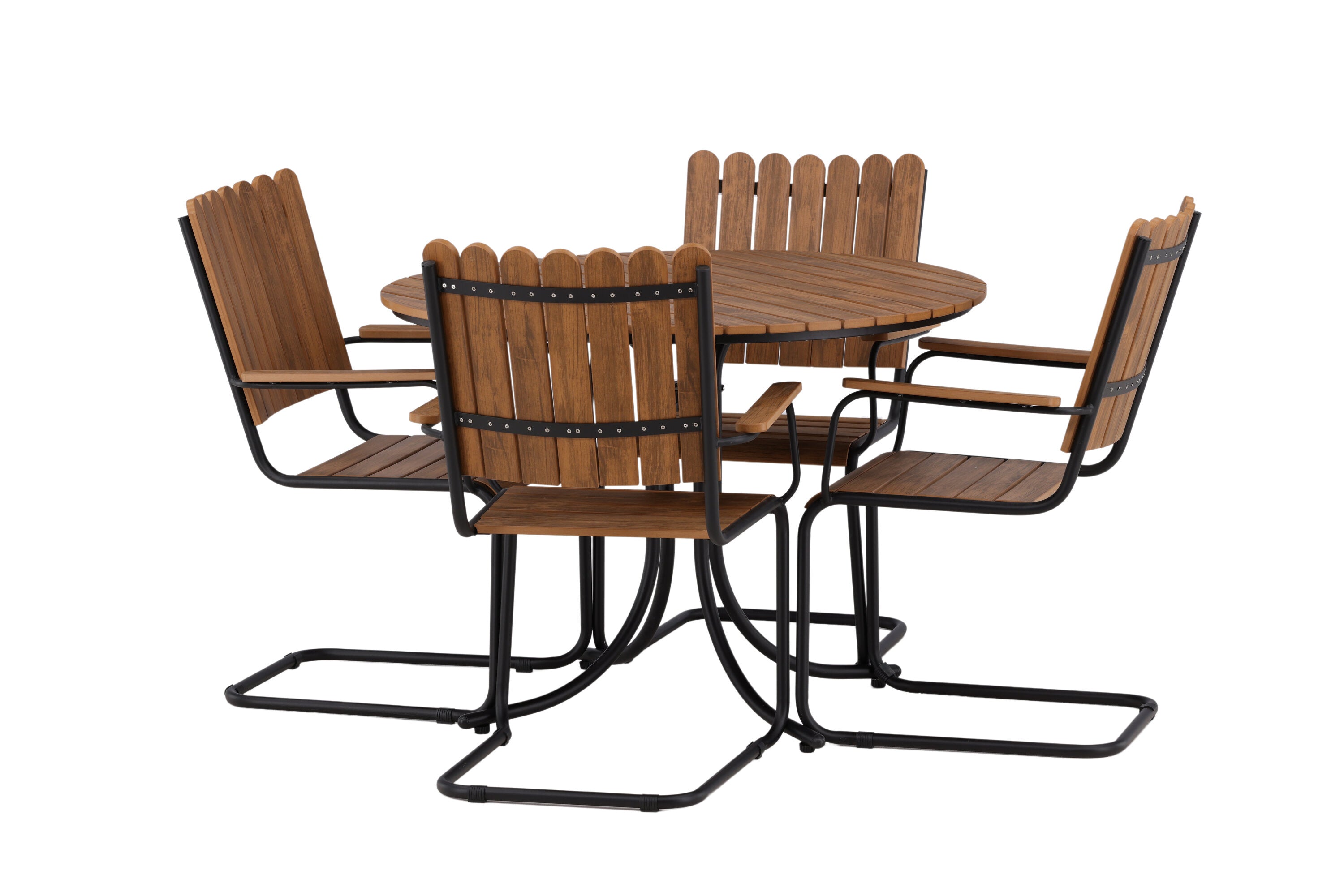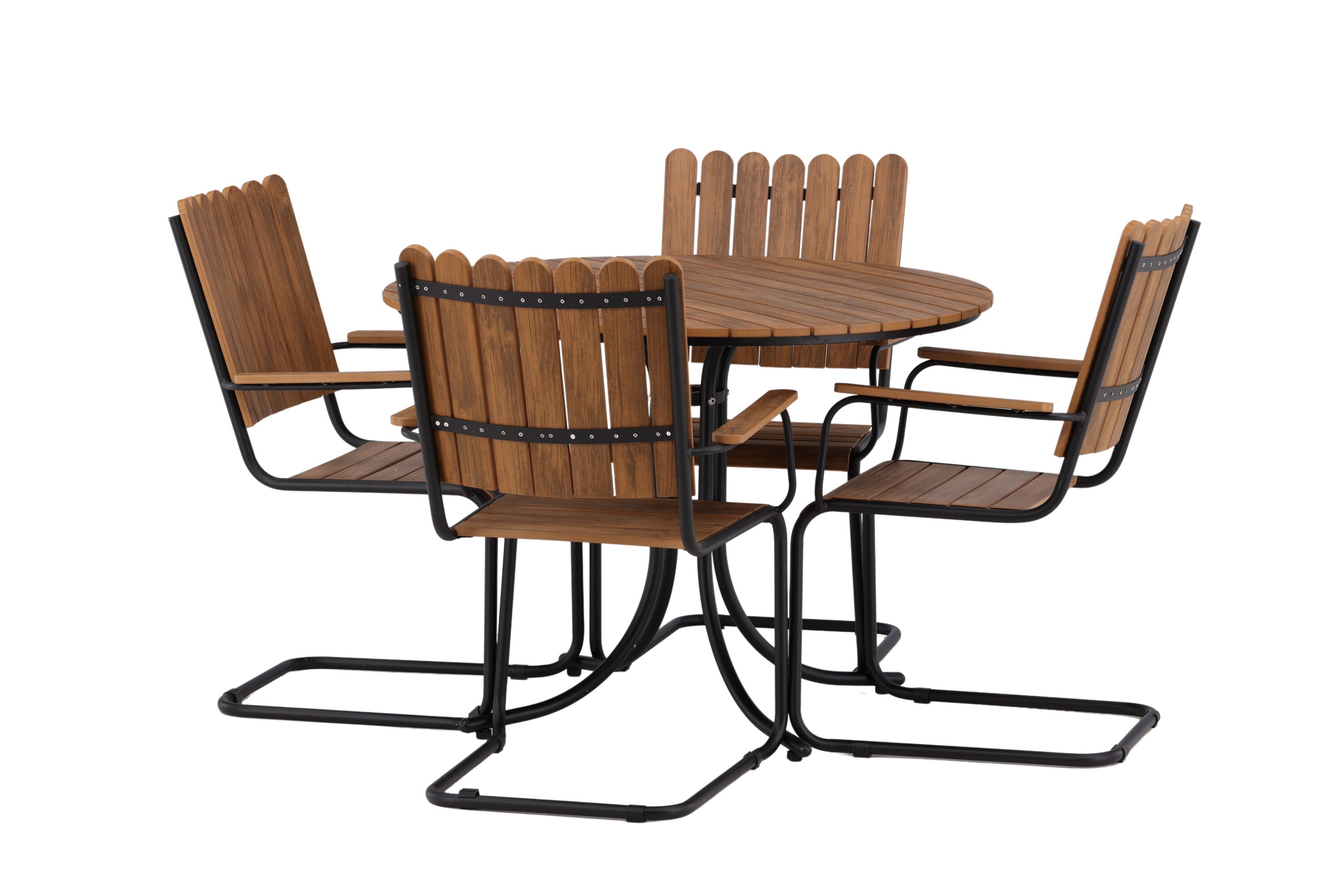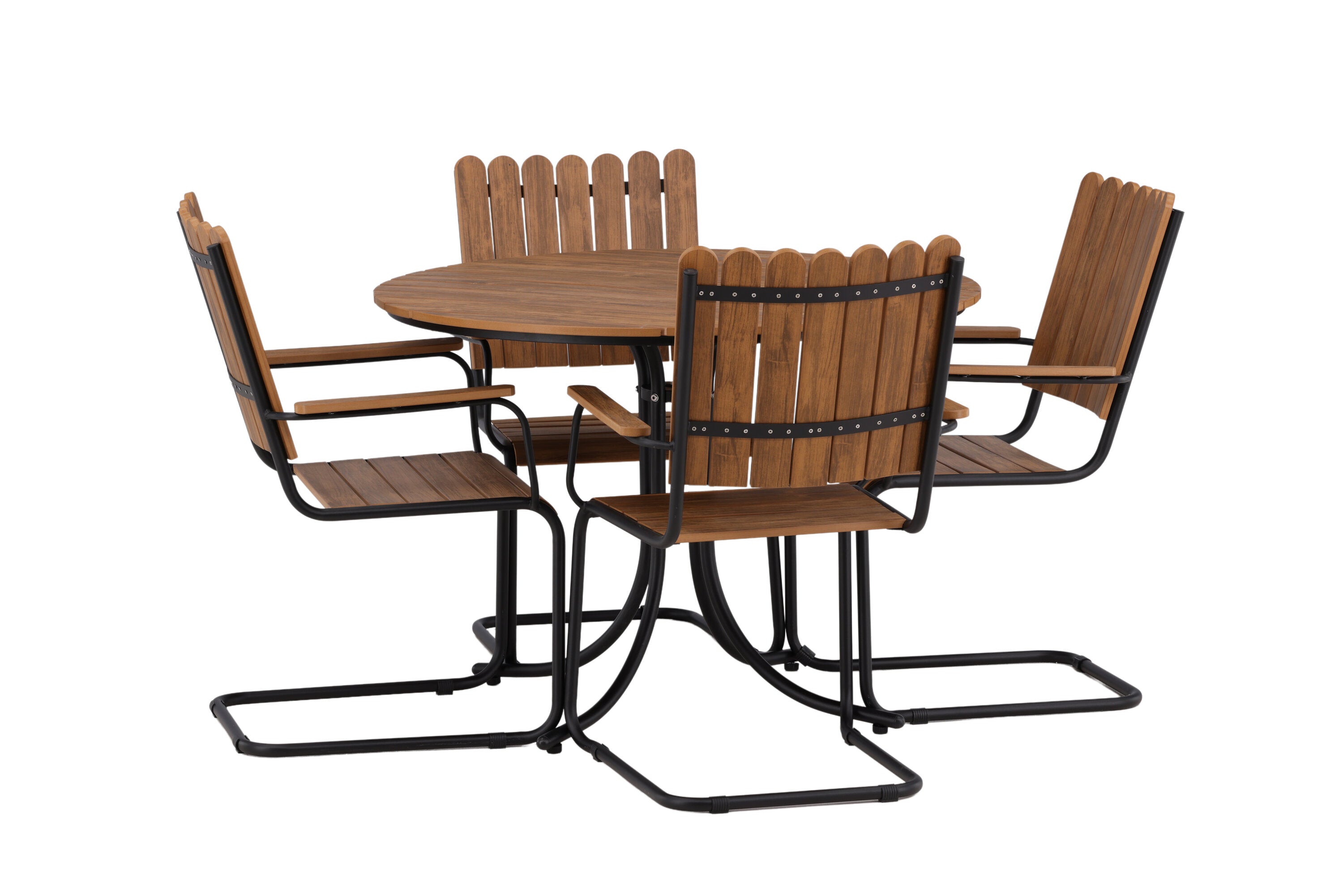 Moderní, odolný a příjemný! Tento kulatý jídelní stůl ze série Holmsund vytvoří svým okouzlujícím designem lahodný poutač na vaší zahradě. Jídelní skupina je vyrobena z černé oceli a židle a deska stolu jsou vyrobeny z akácie v barvě dřeva. Doplňte židlemi ze stejné série a užijte si odpovídající jídelní sestavu, která ozdobí vaši terasu!