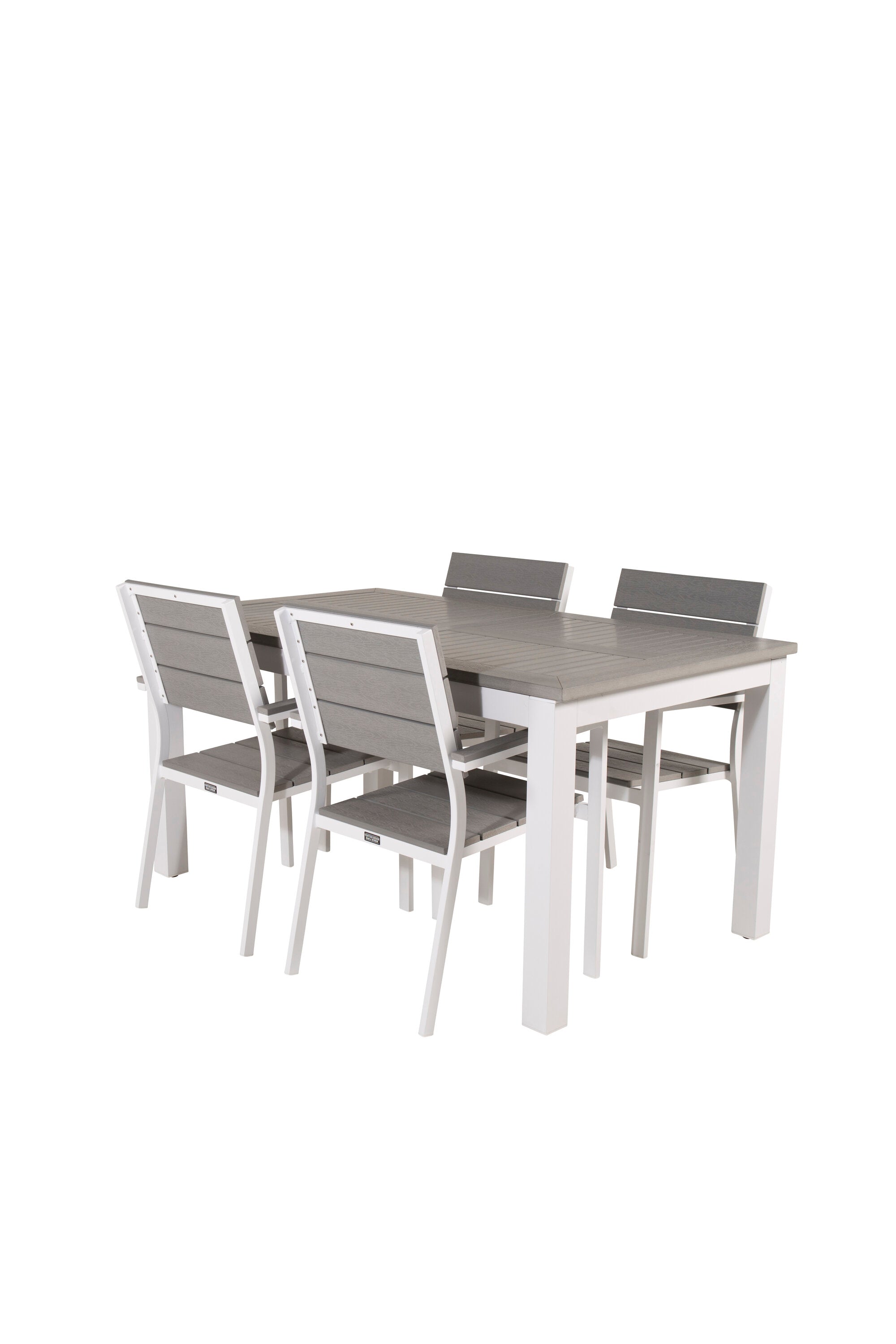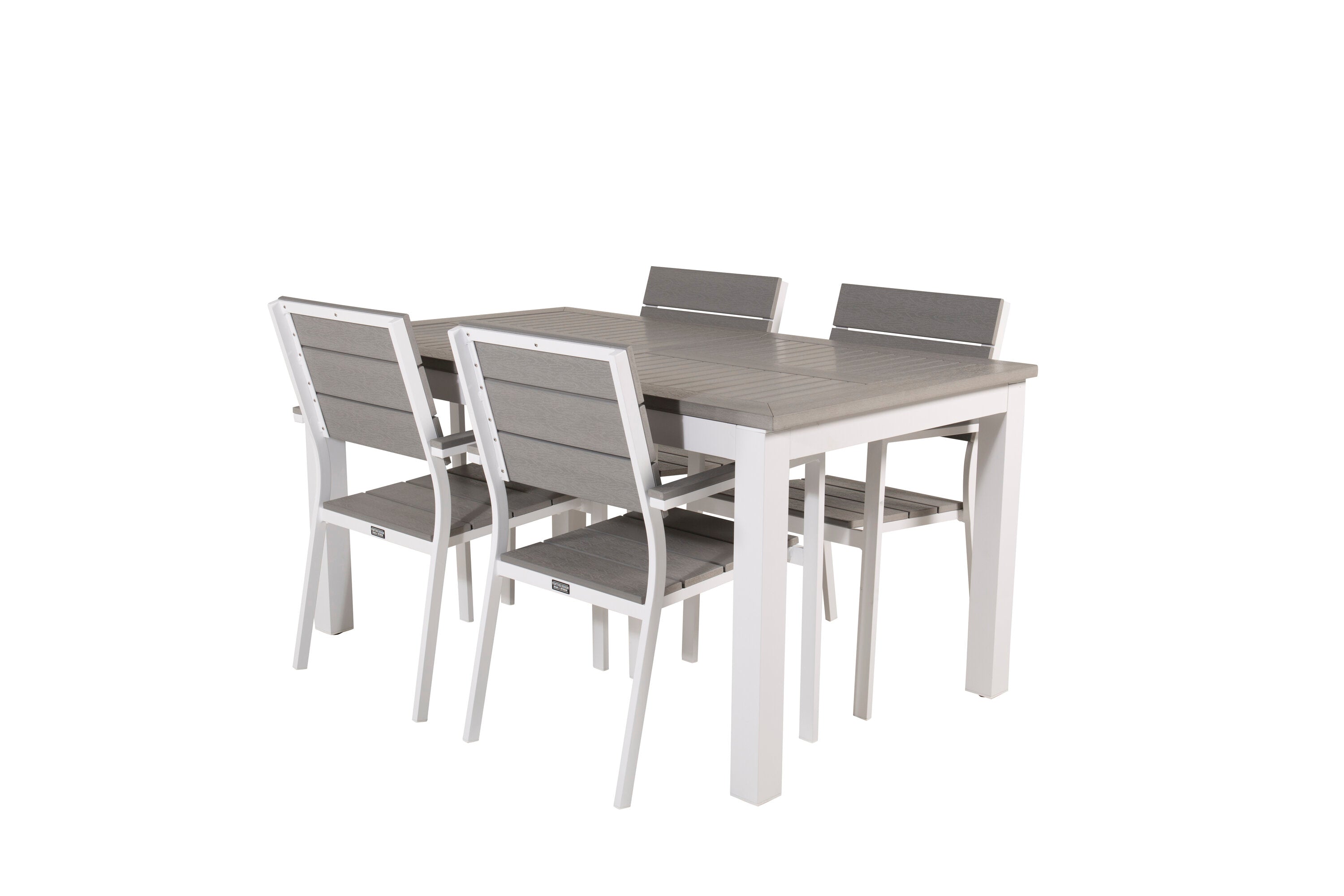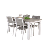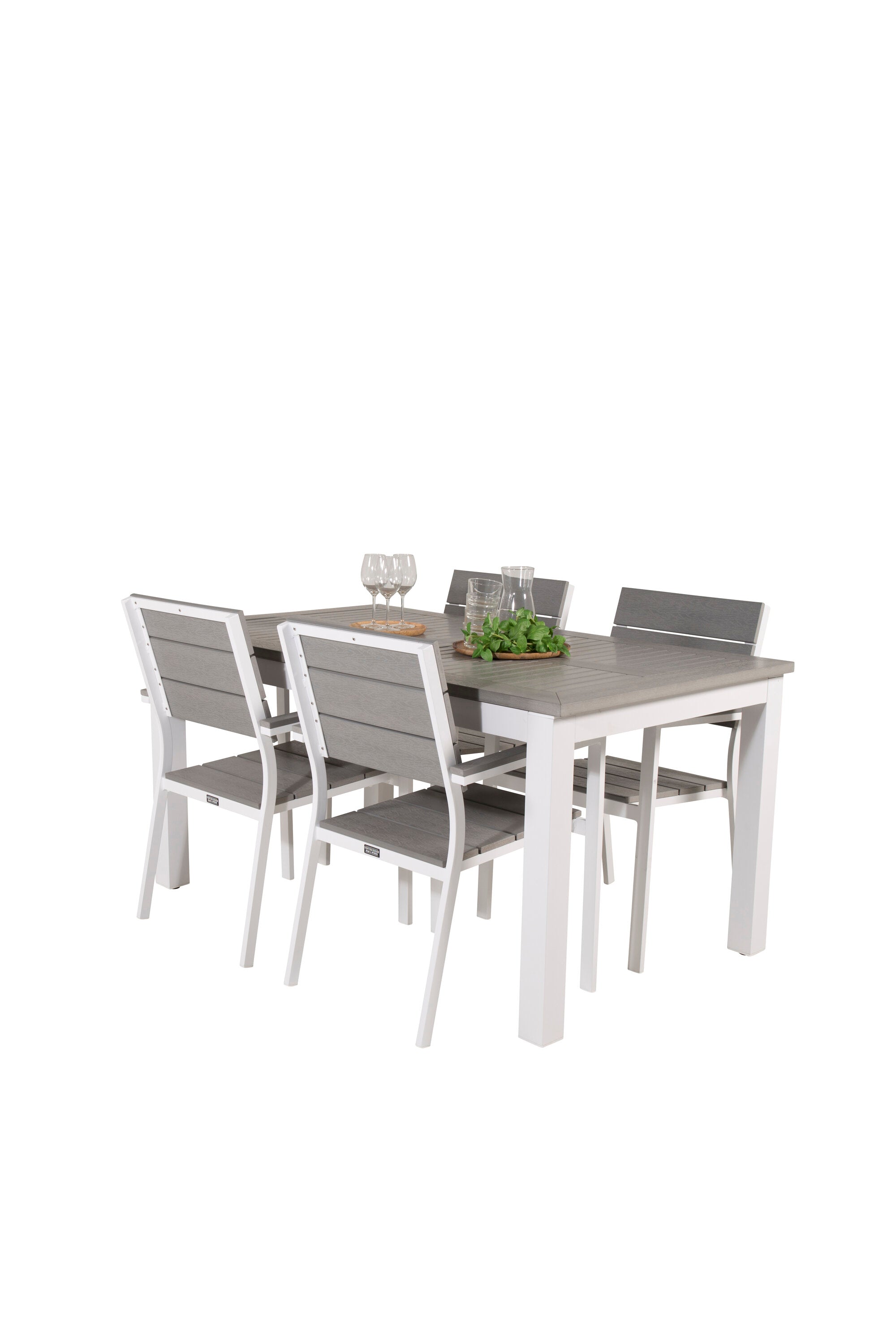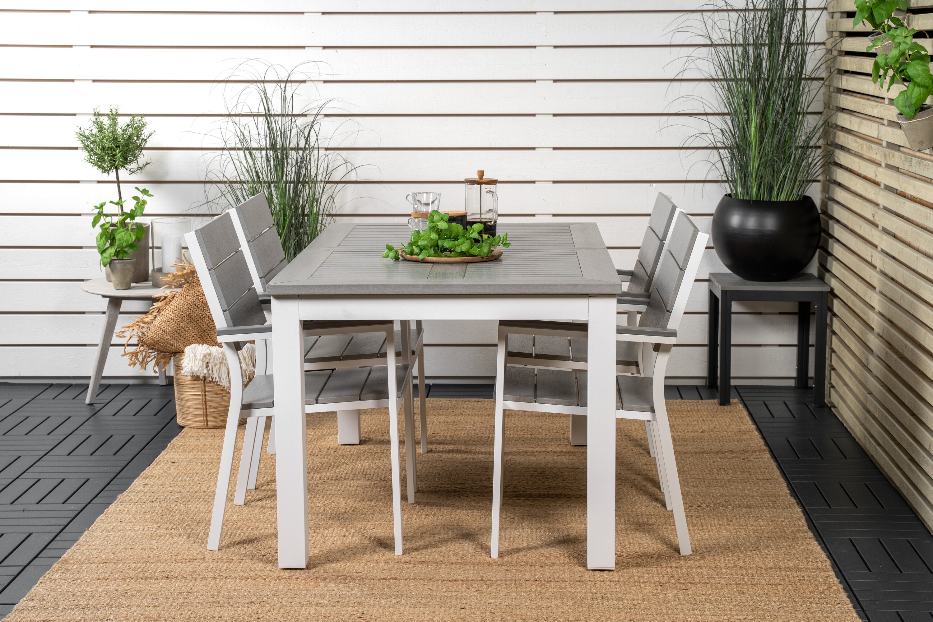 Jídelní stůl Albany 160/240*100 - Bílá Alu / Šedá Aintwood+Židle Aintwood+Levels (stohovatelné) - Bílá Alu / Šedá Aintwood_4
