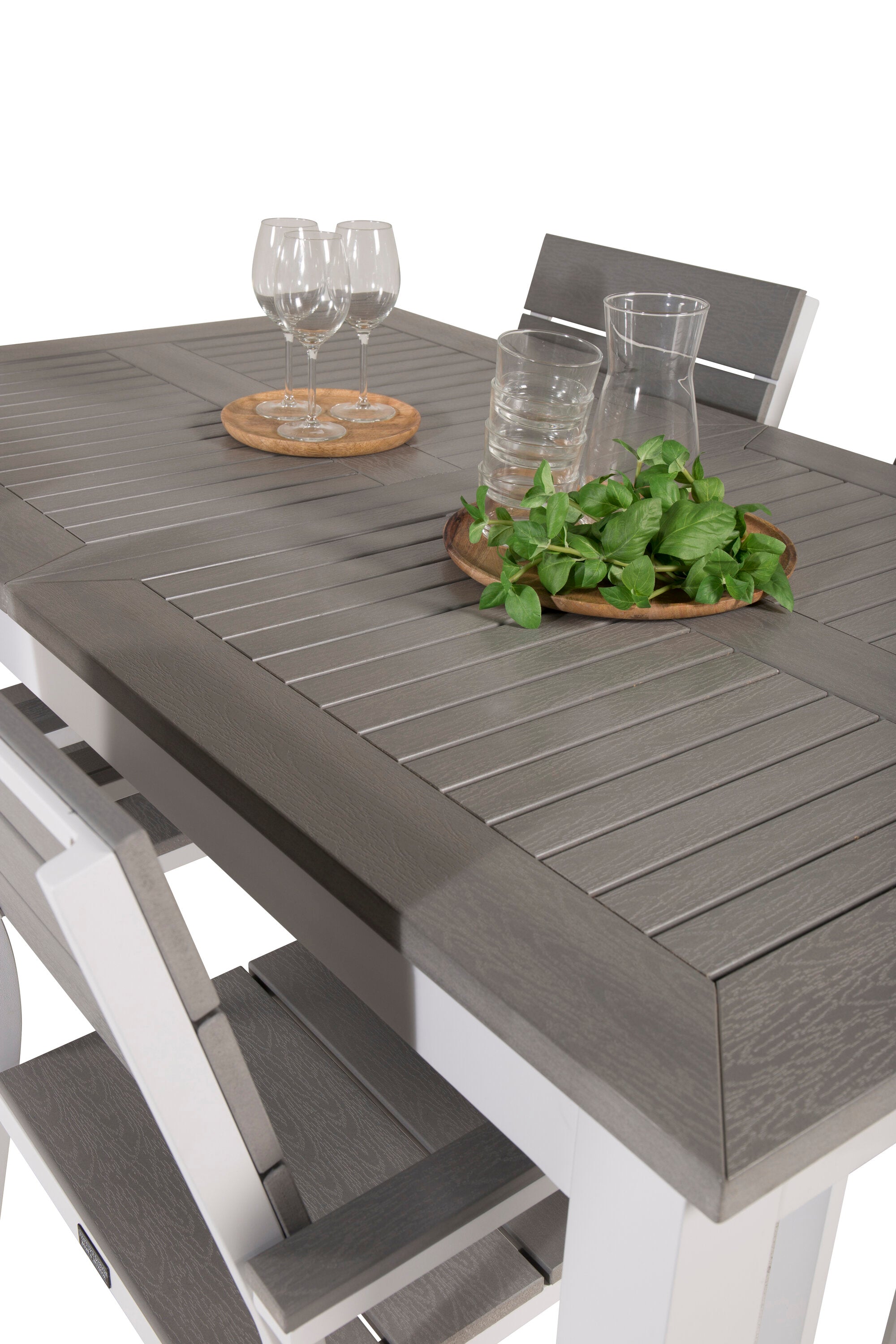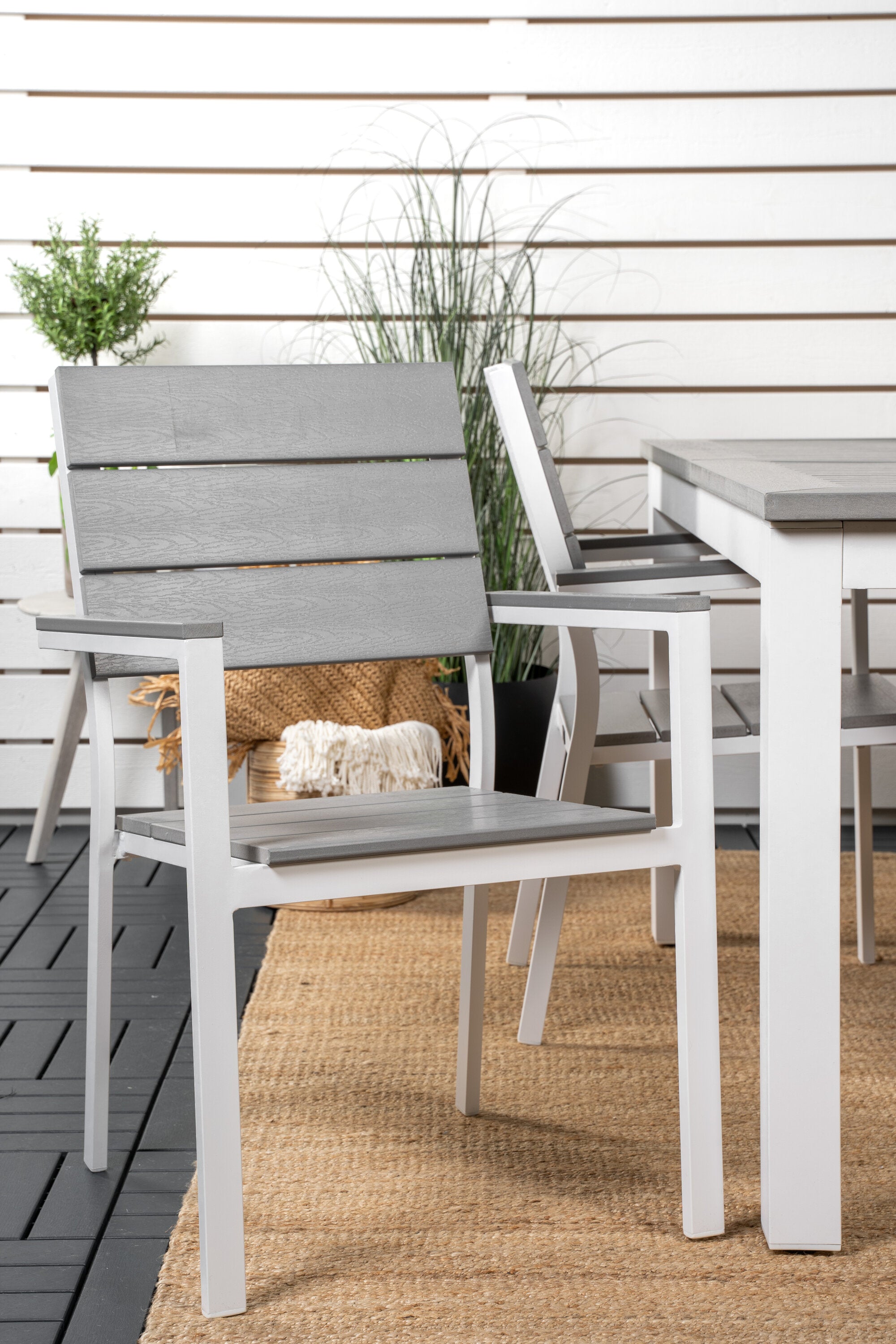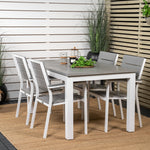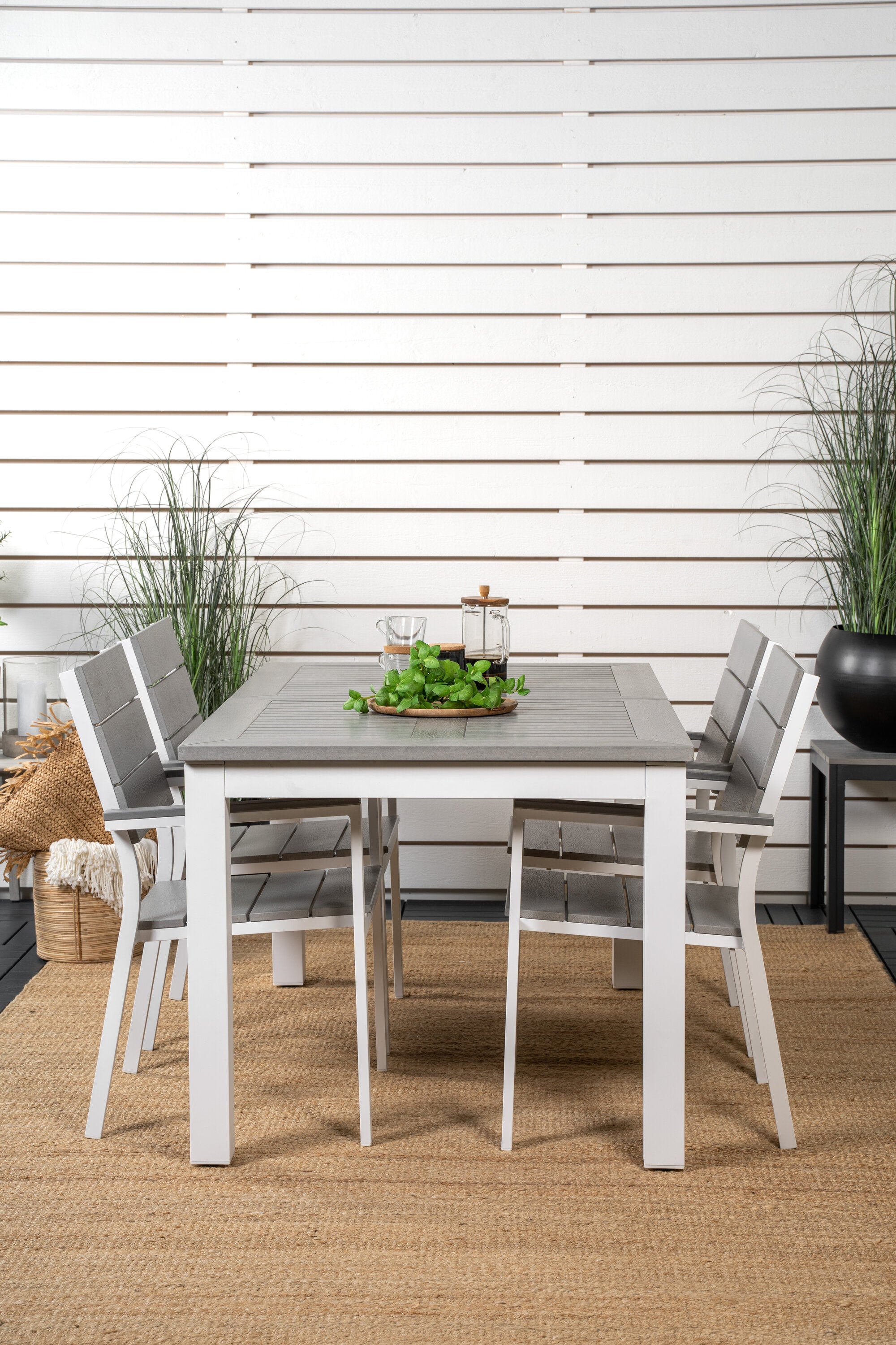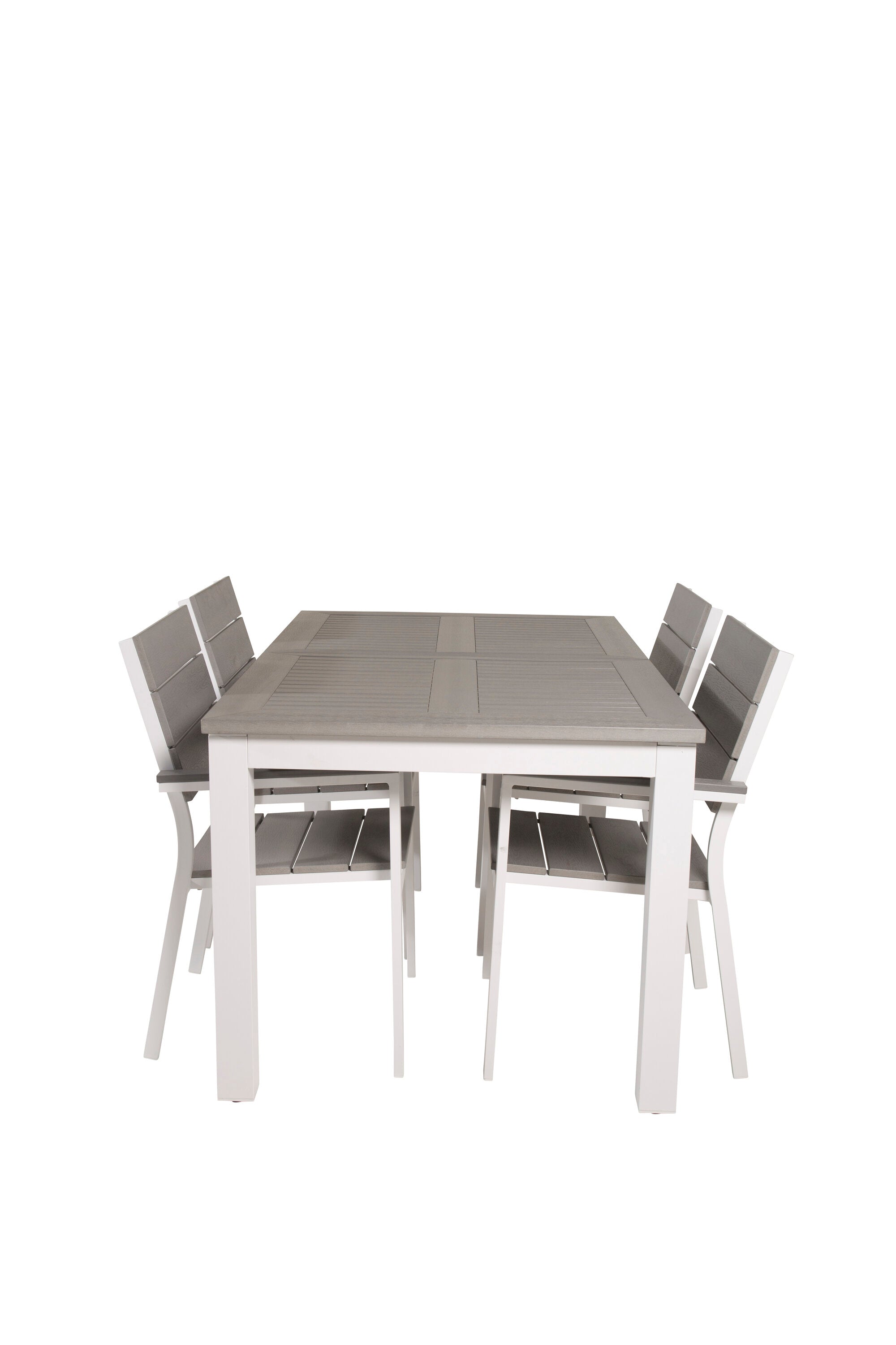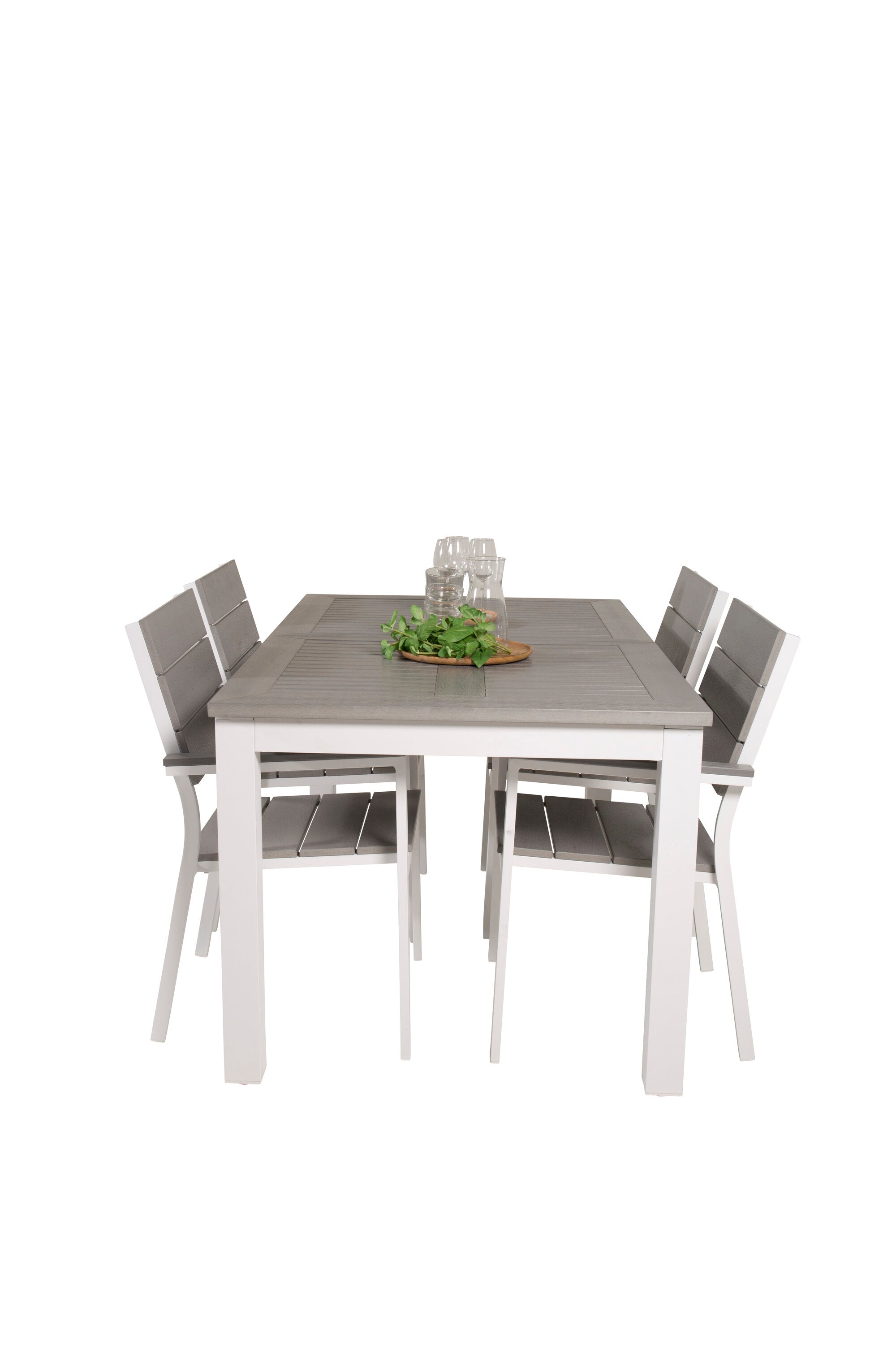 Jídelní stůl Albany 160/240*100 - Bílá Alu / Šedá Aintwood+Židle Aintwood+Levels (stohovatelné) - Bílá Alu / Šedá Aintwood_4