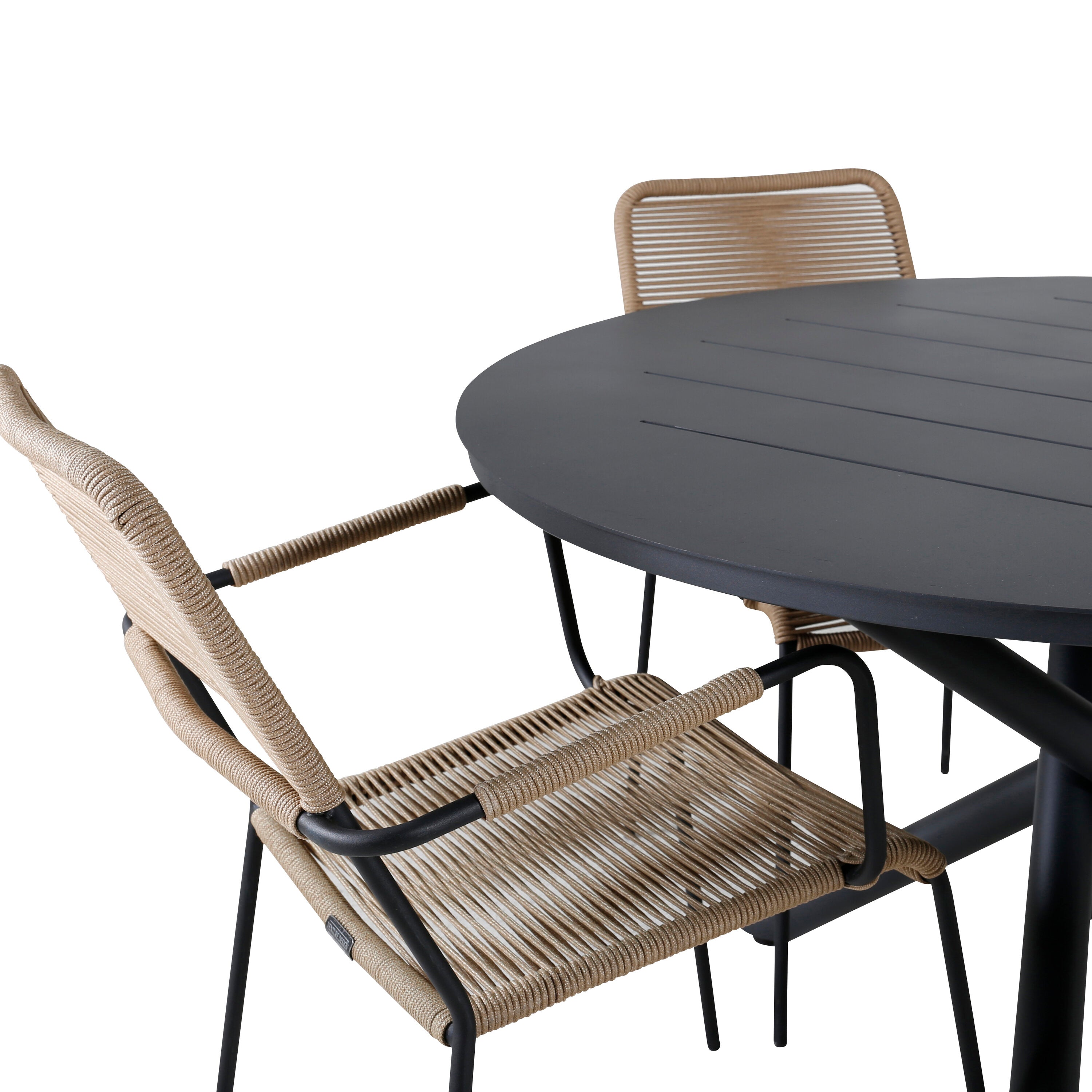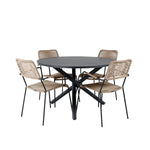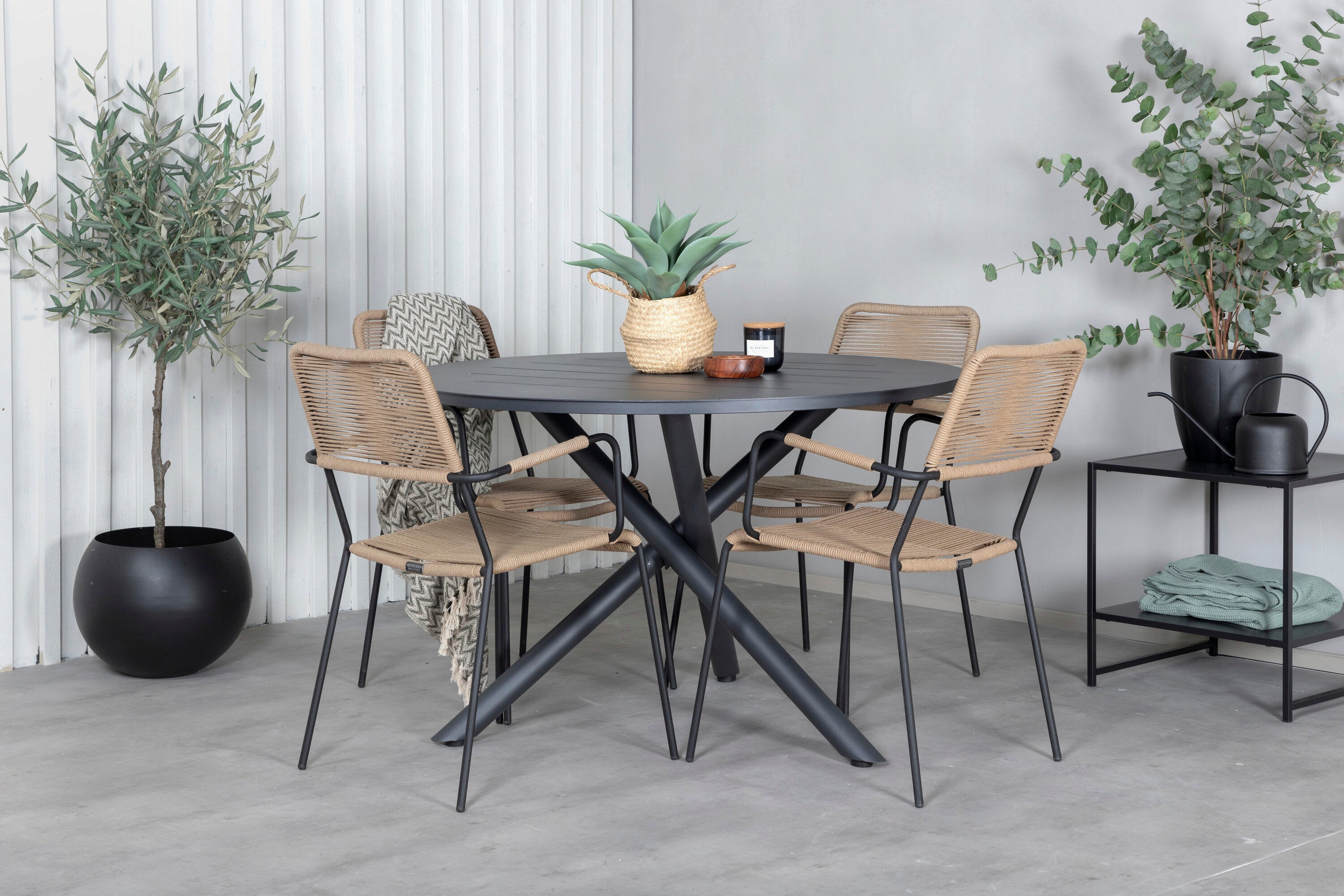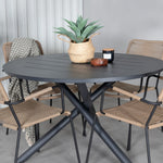 Jídelní stůl Alma - Black Alu - ø120cm+Lindos - Křeslo - Black Alu / Latte Rope_4