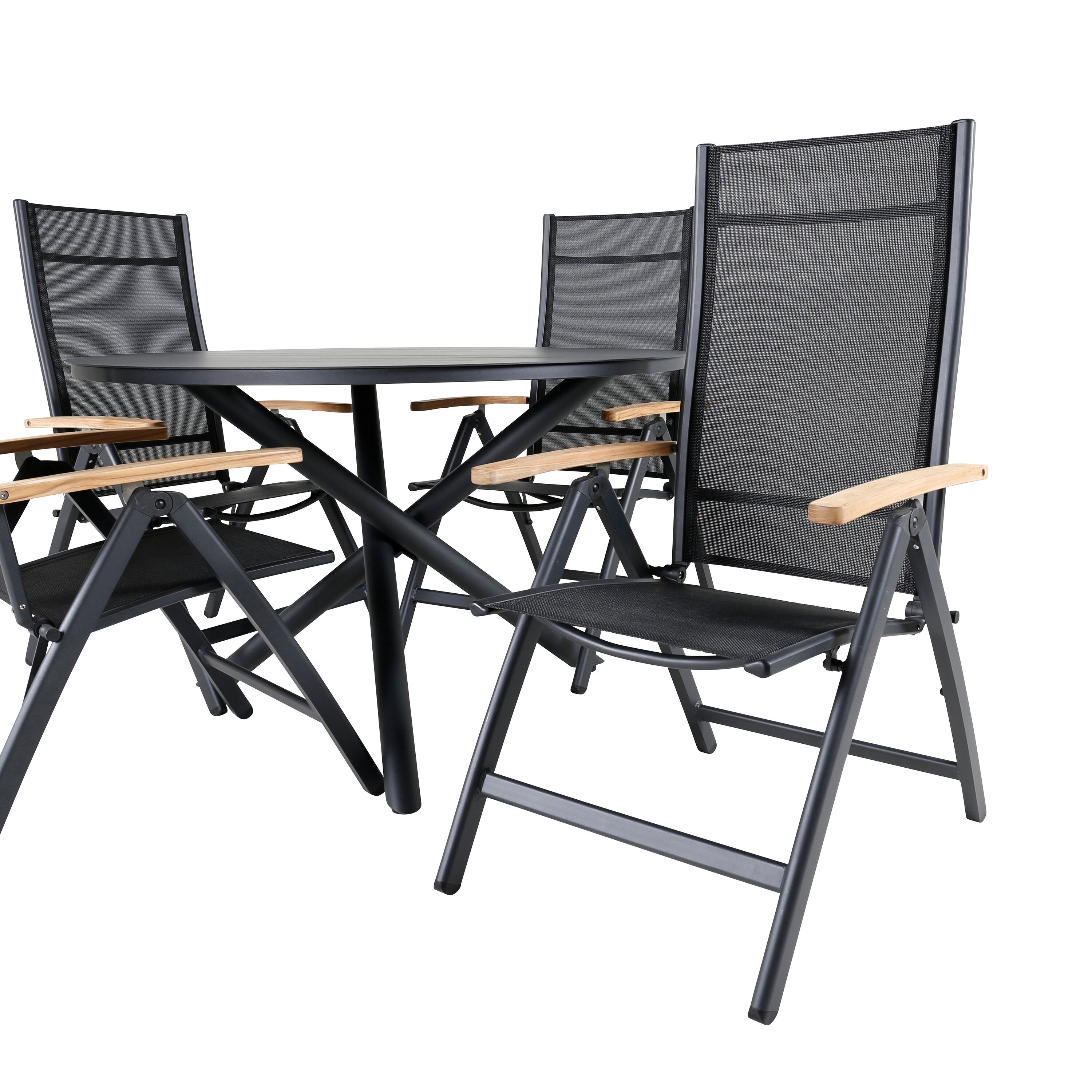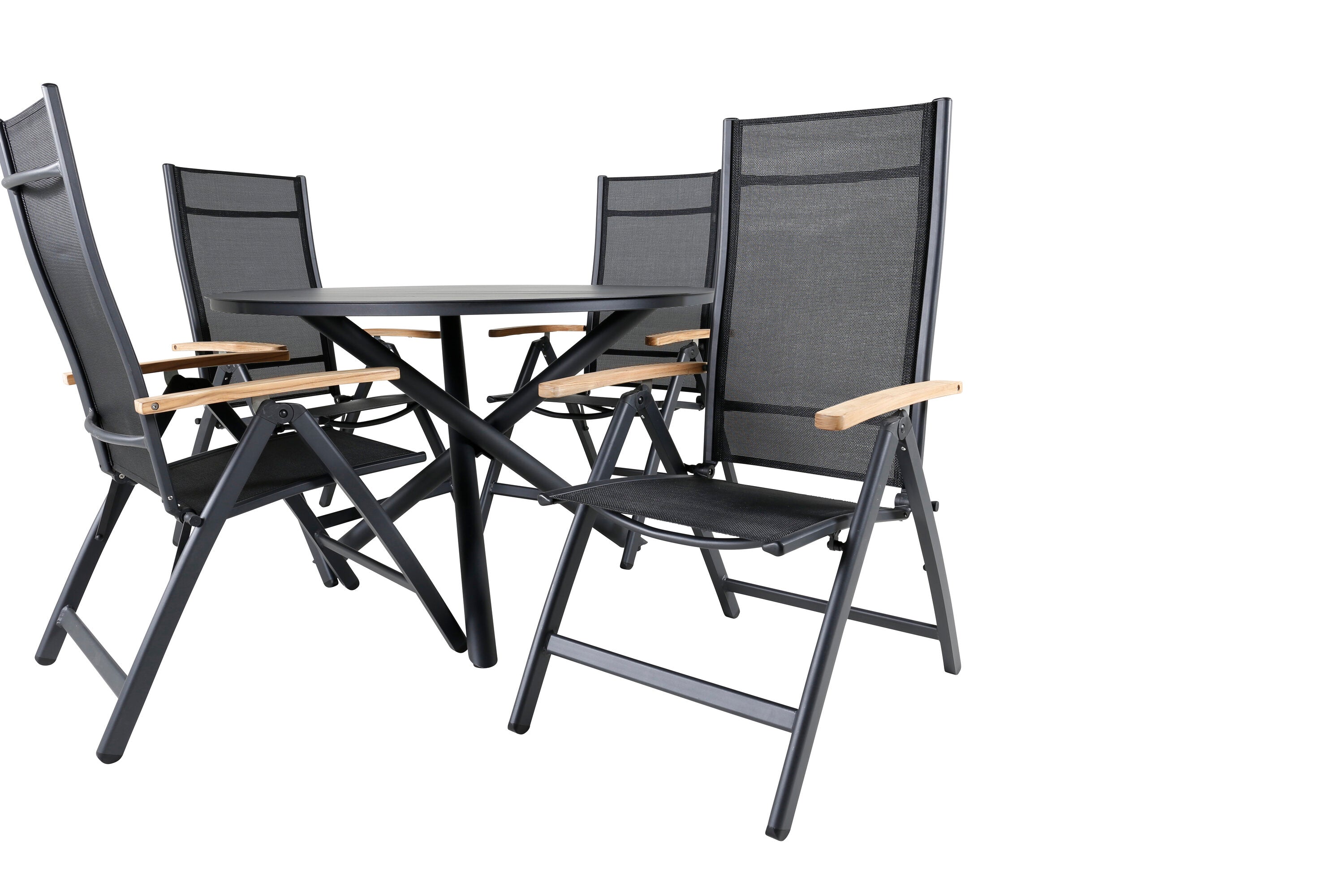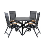 Jídelní stůl Alma - černý Alu - ø120cm+Panama Light 5poschoďová židle Černá / Černá a teak_4