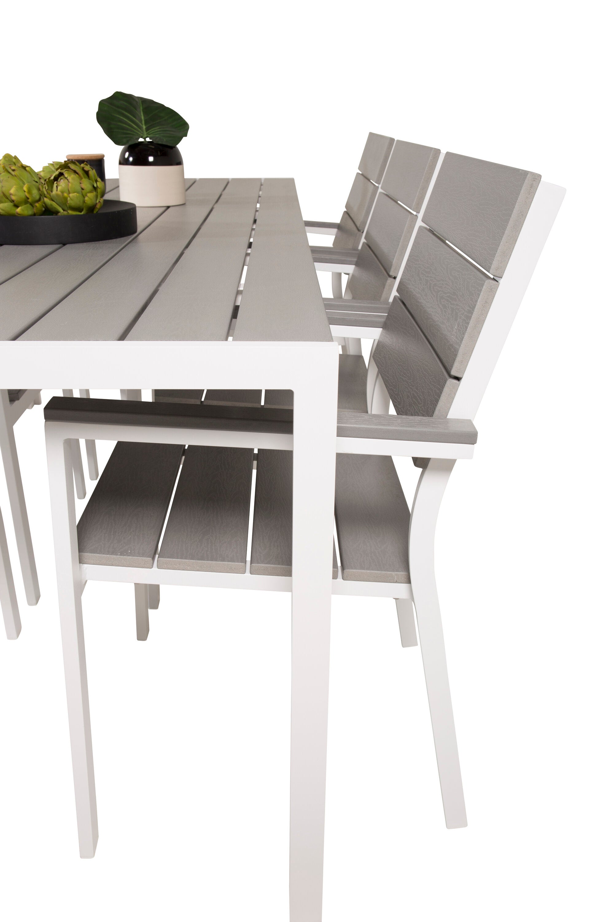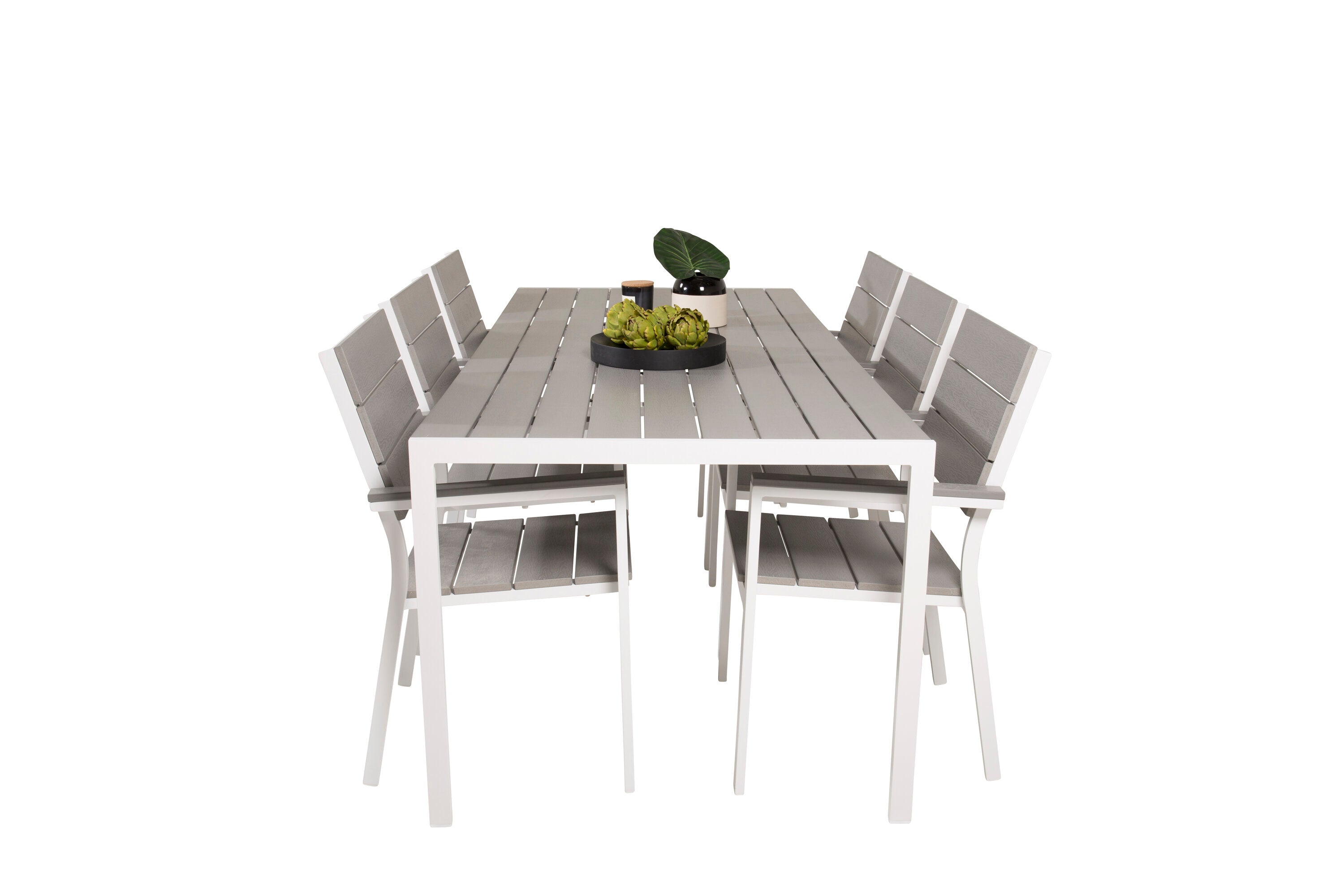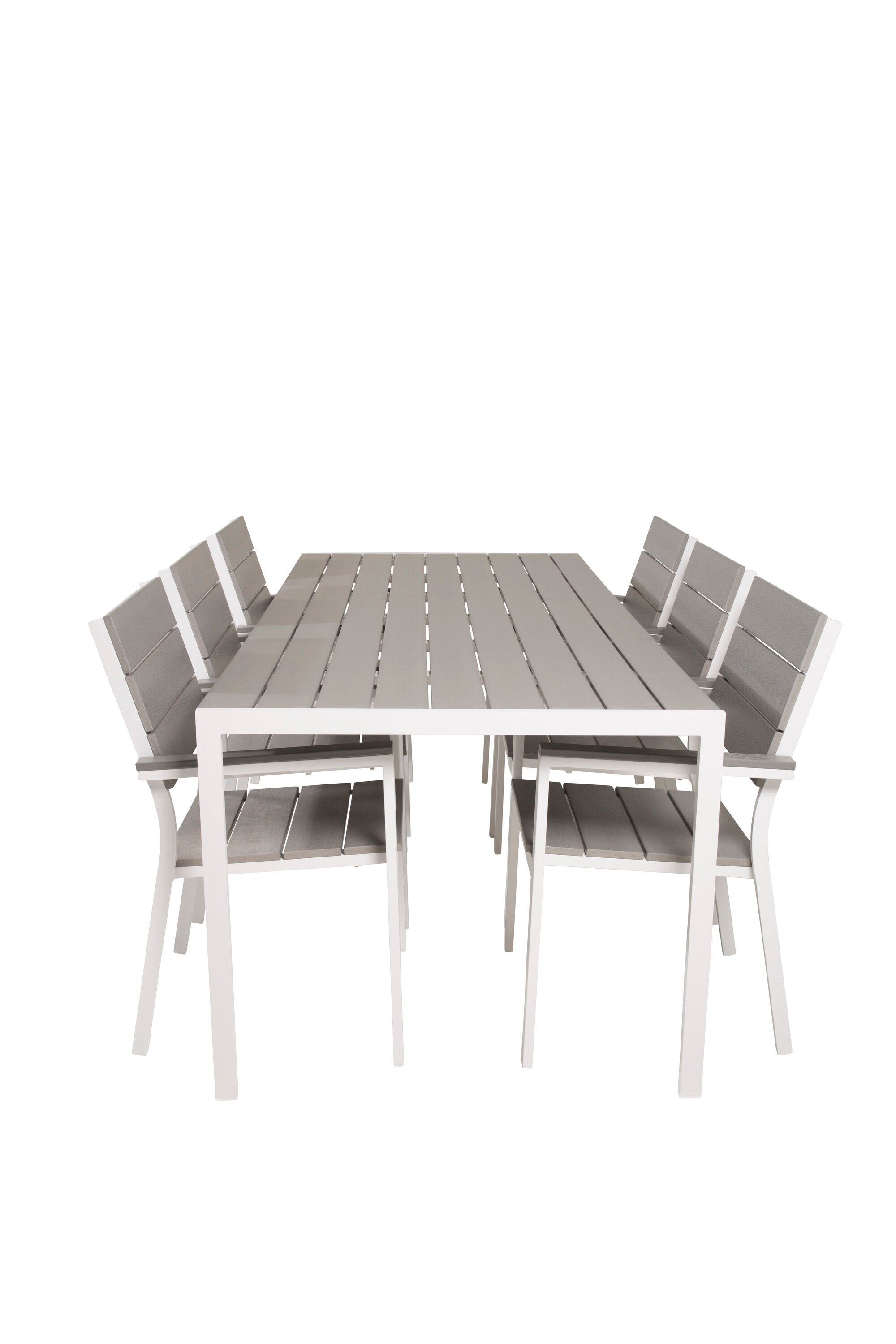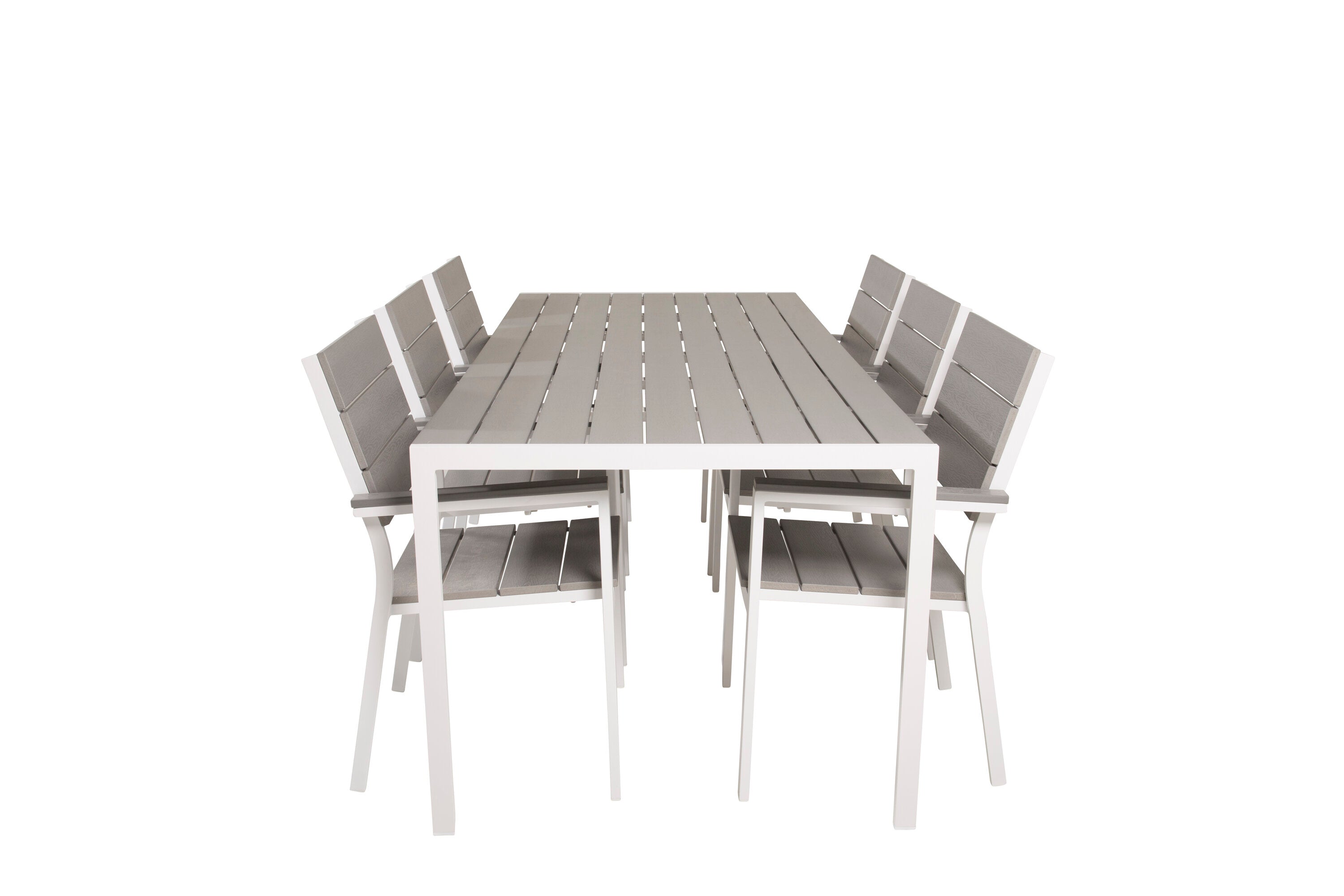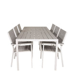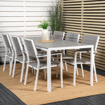 Jídelní stůl Break - 205*90 - Bílá Alu / Šedá židle Aintwood+Levels (stohovatelné)