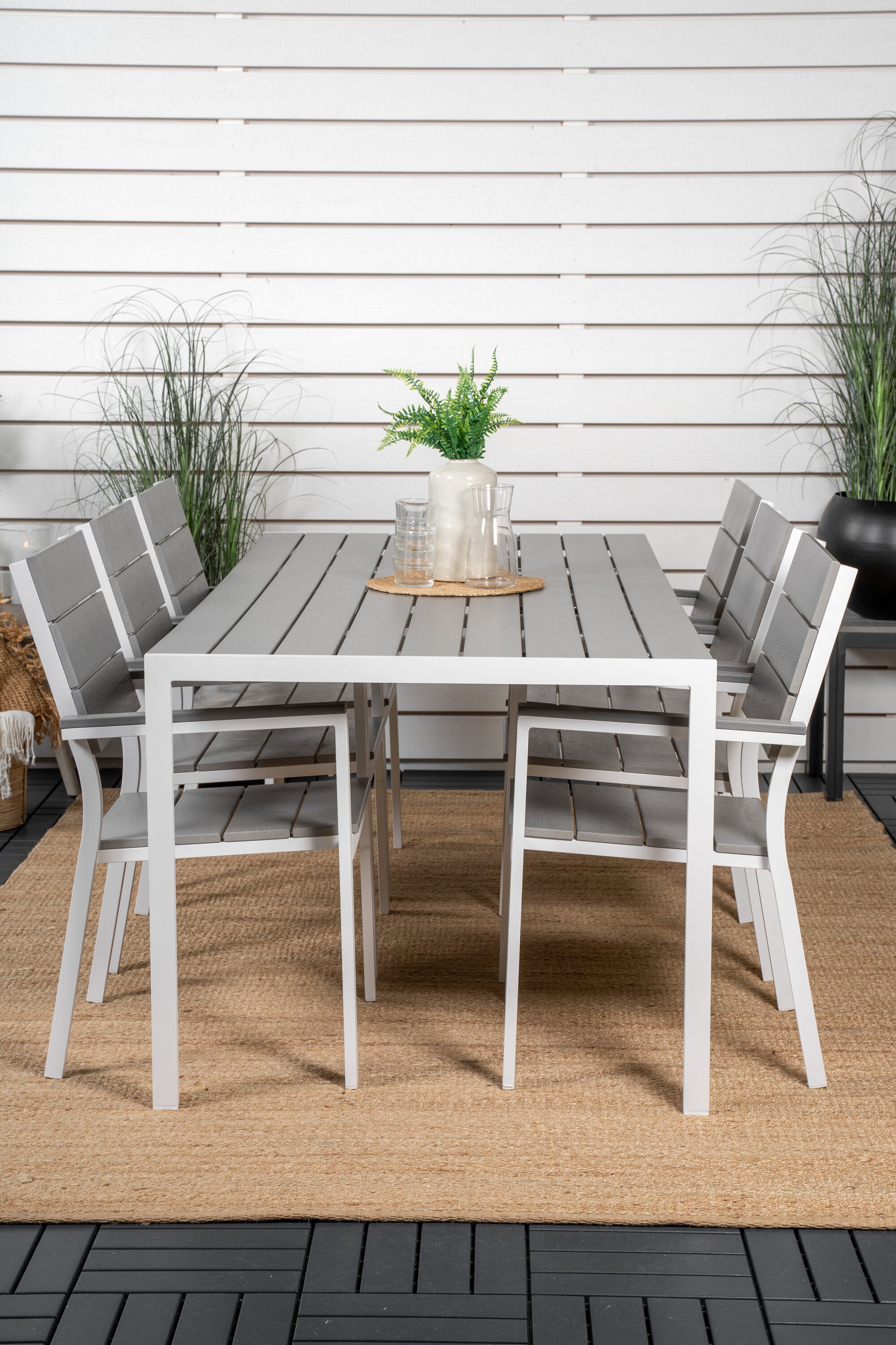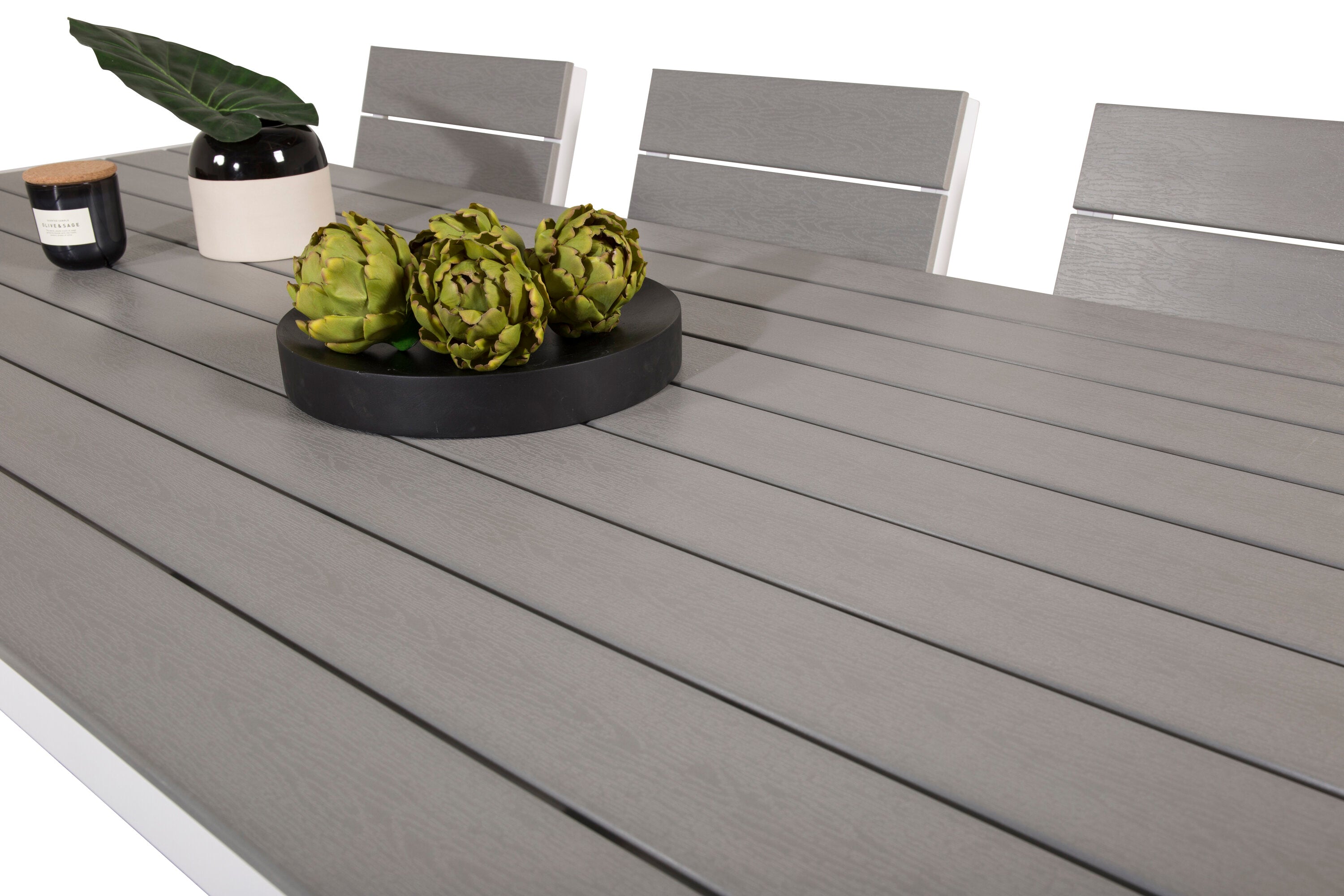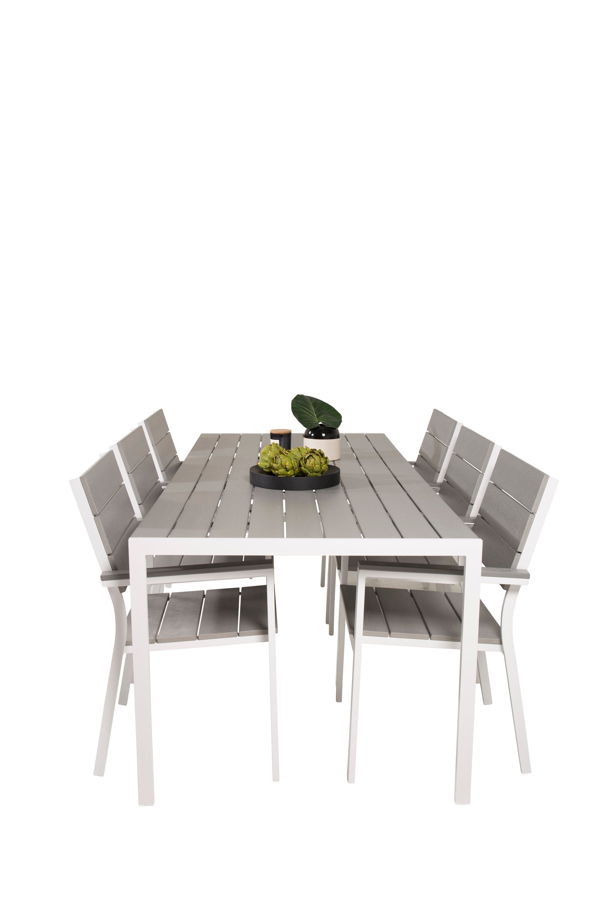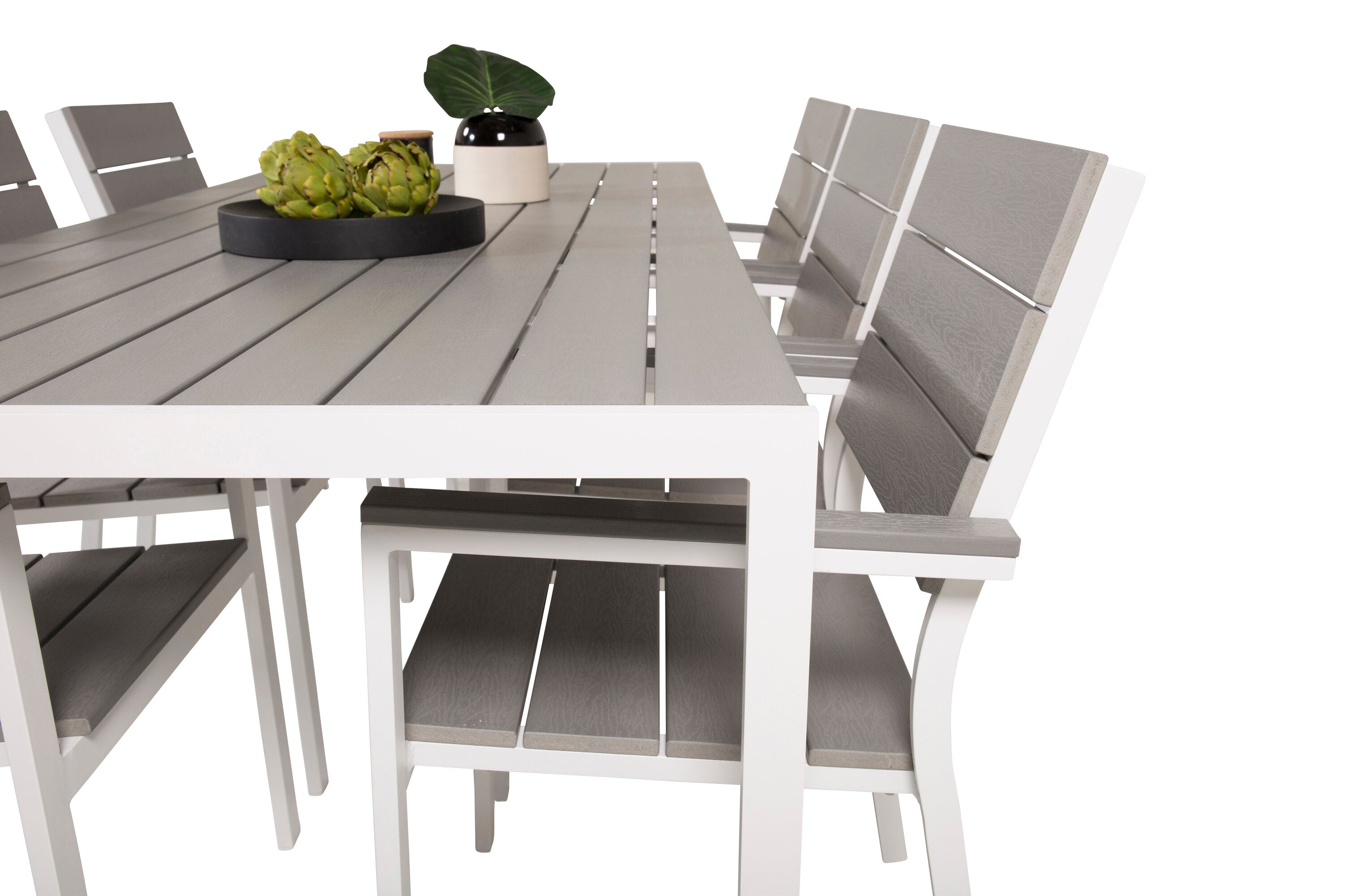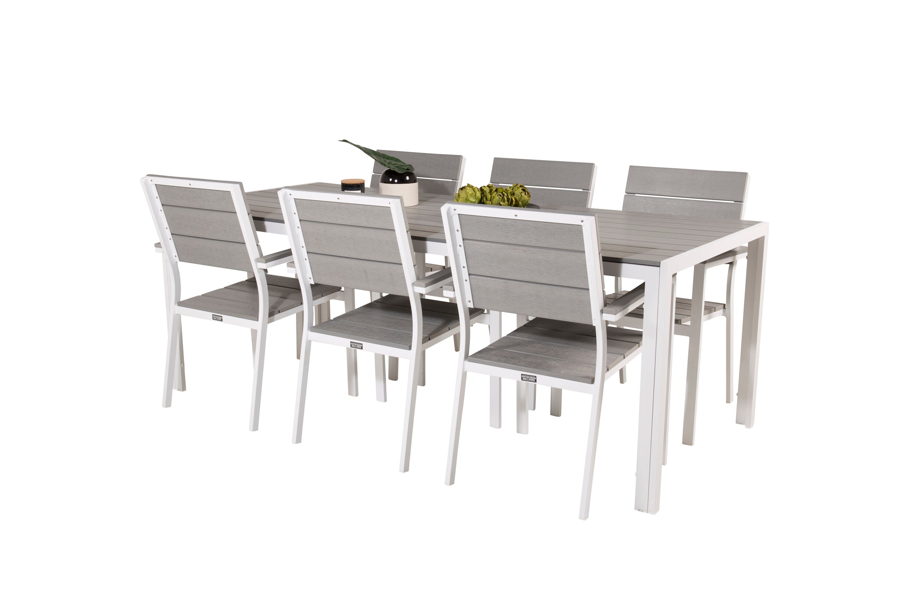 Jídelní stůl Break - 205*90 - Bílá Alu / Šedá židle Aintwood+Levels (stohovatelné)