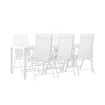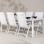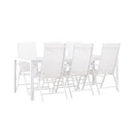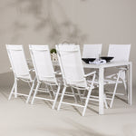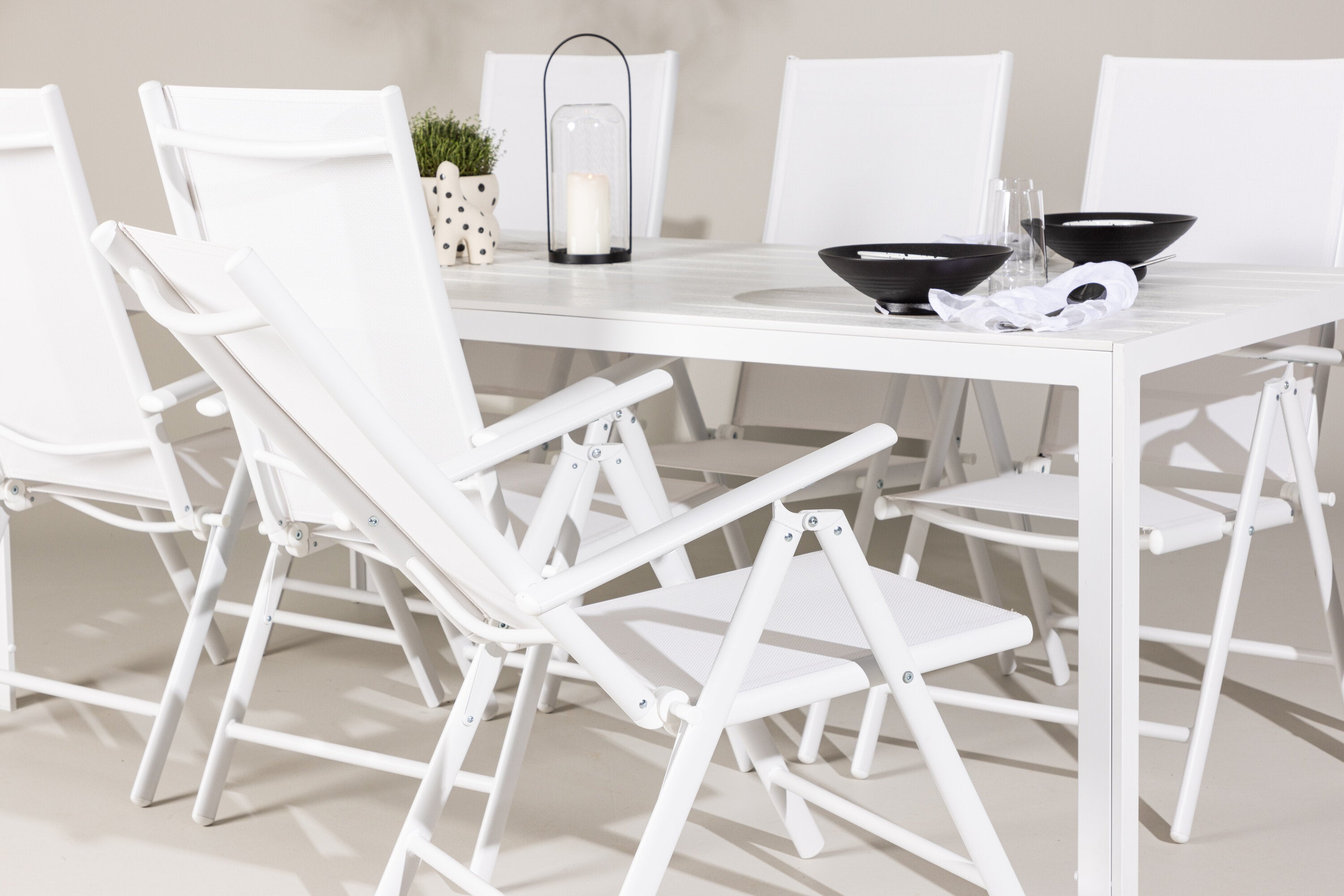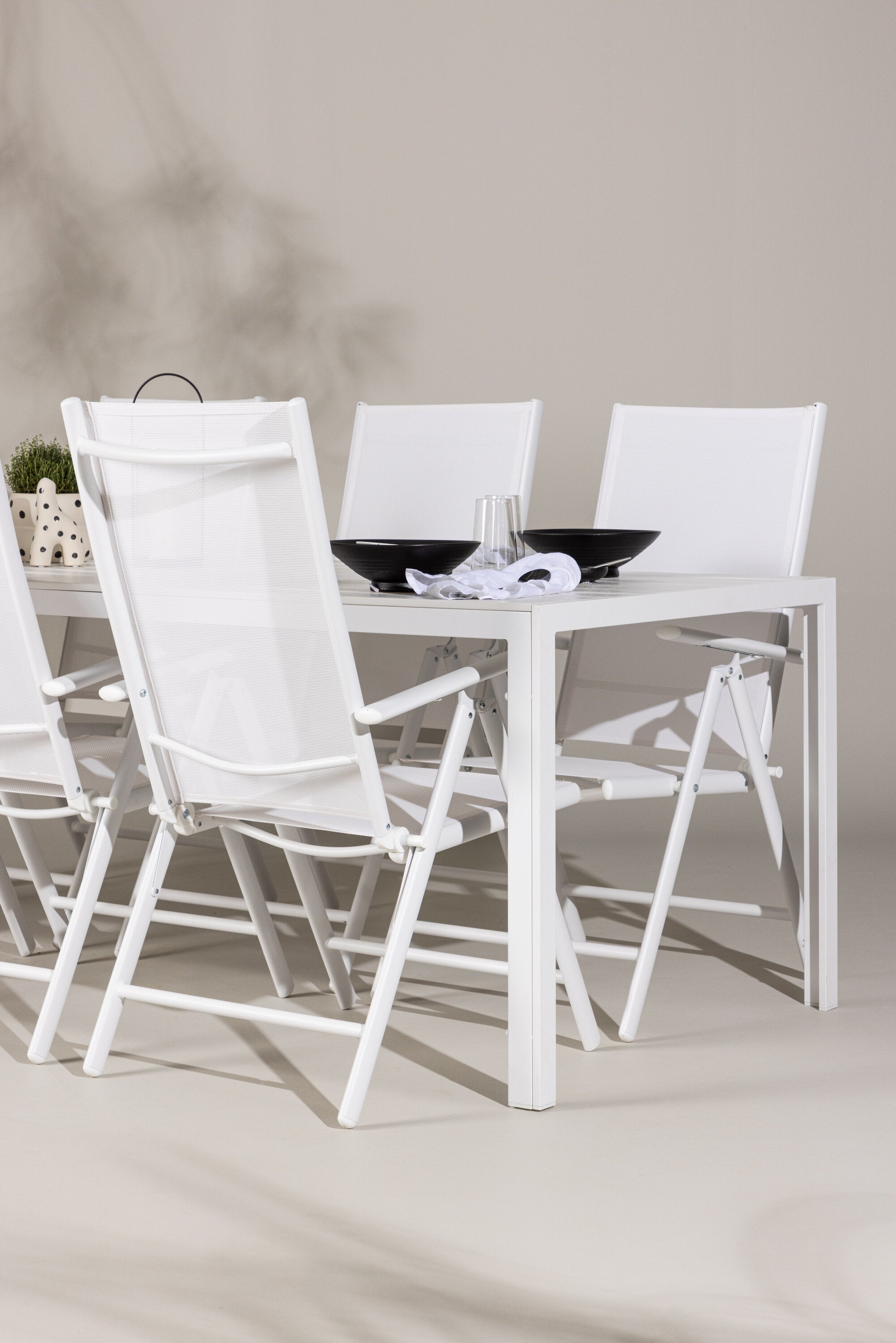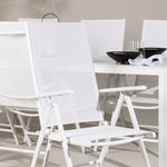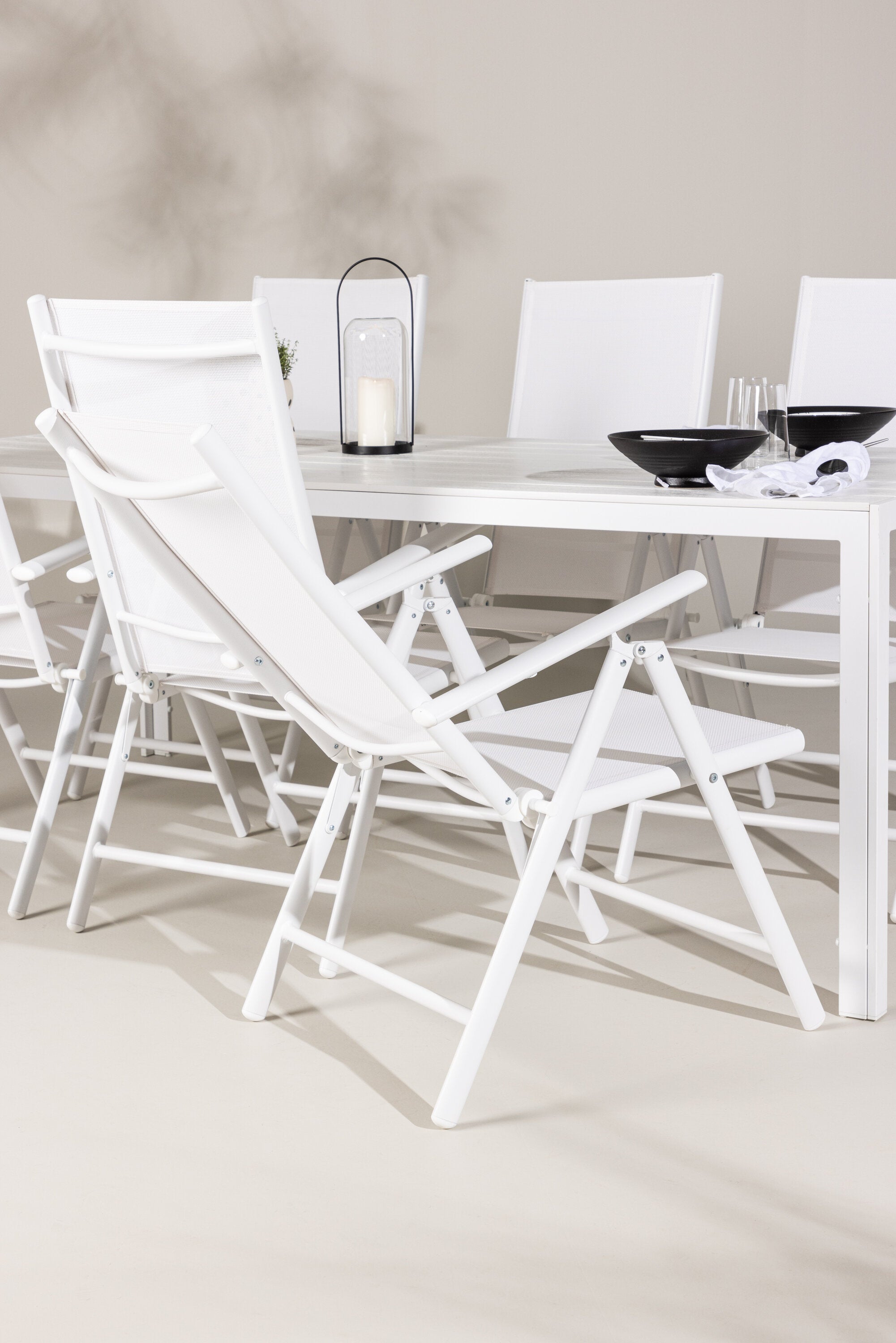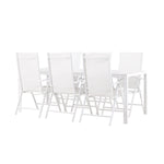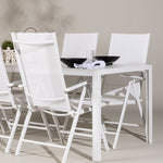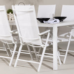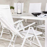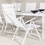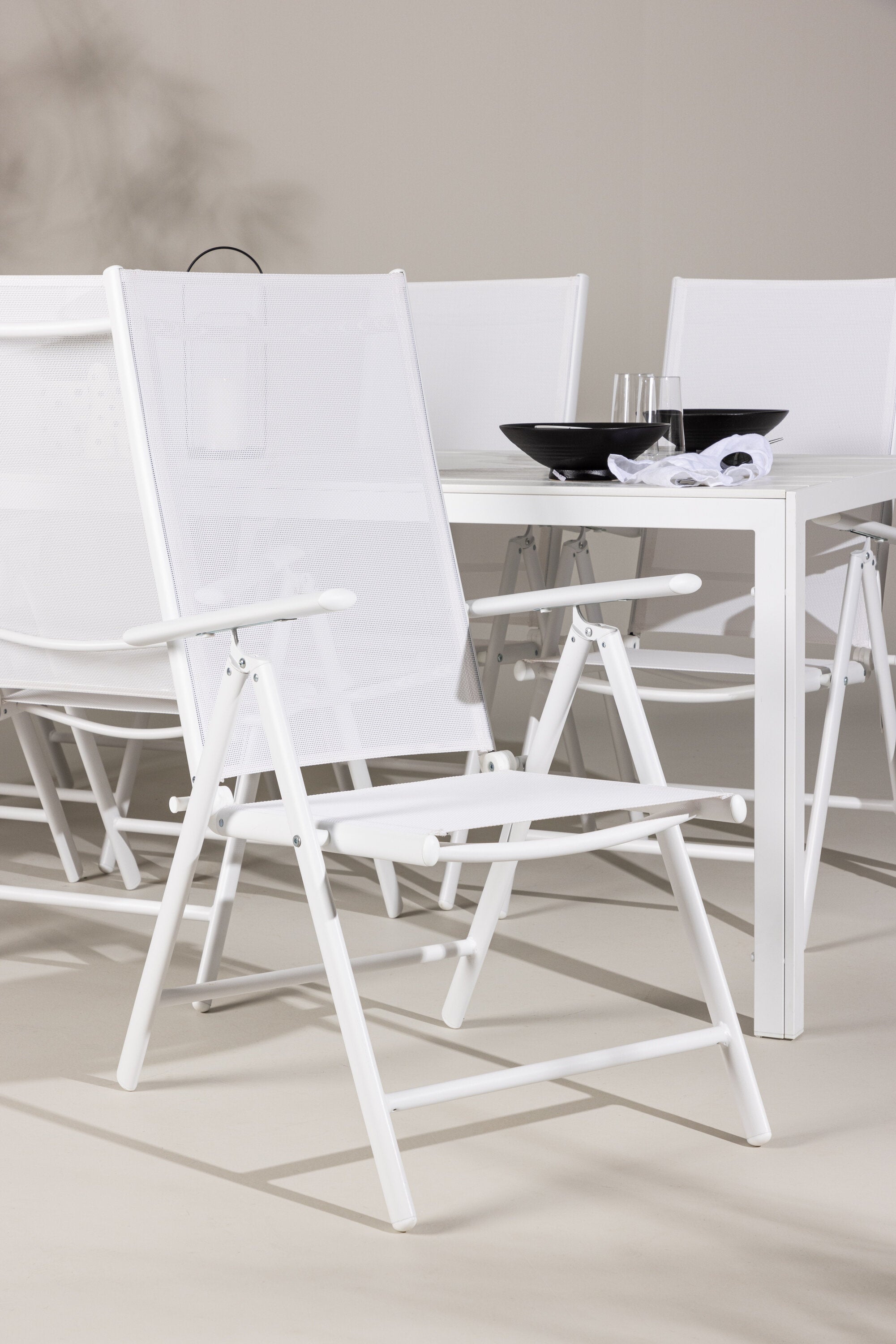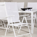 Židle Break s bílou barvou a elegantním designem je vyrobena tak, aby se perfektně hodila do venkovního prostředí. Jeho sedadlo je vyrobeno z odolného textilního materiálu a rám je vyroben z hliníku, což dodává styl. Křeslo lze navíc sklopit pro větší pohodlí a flexibilitu.