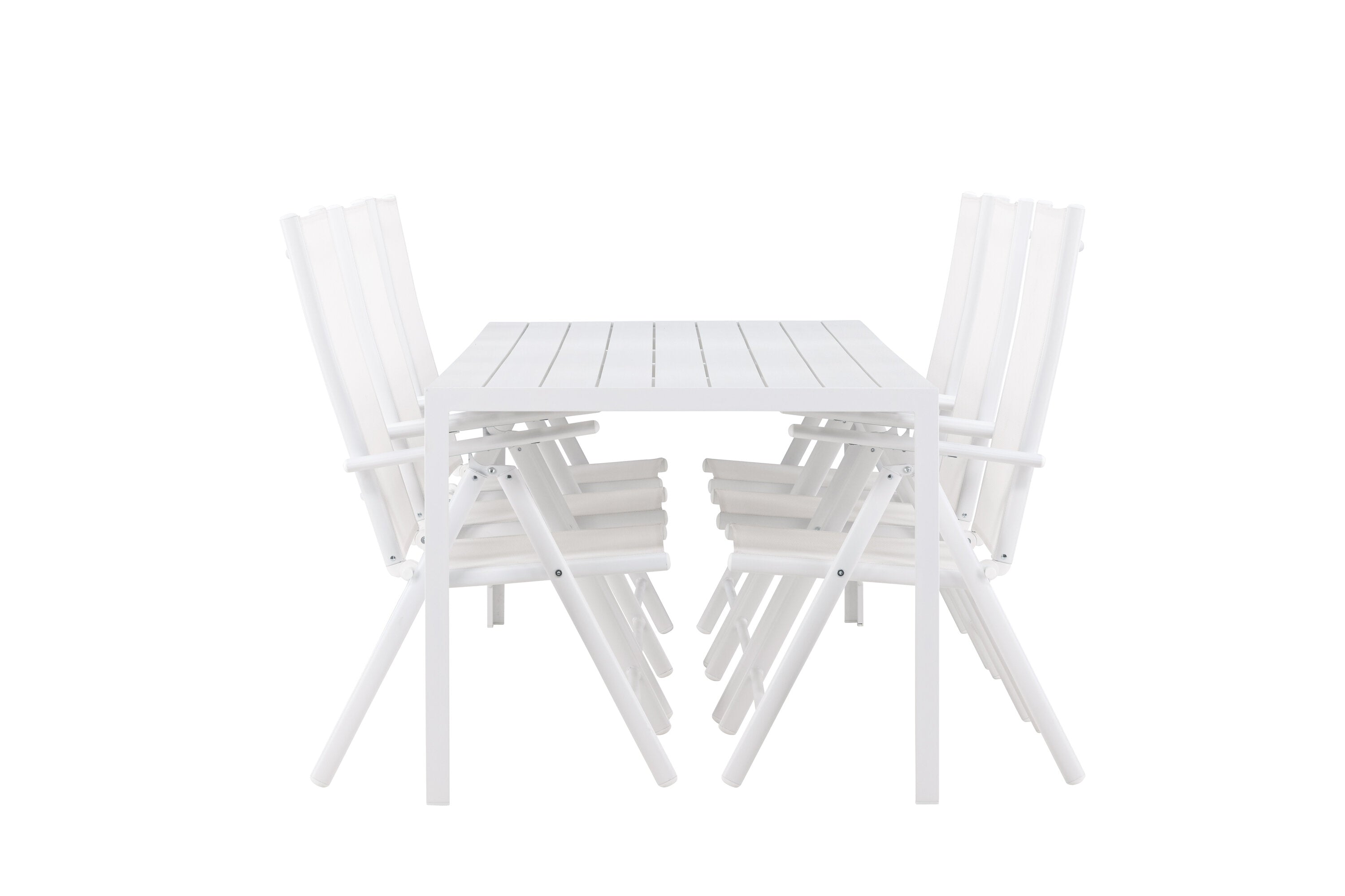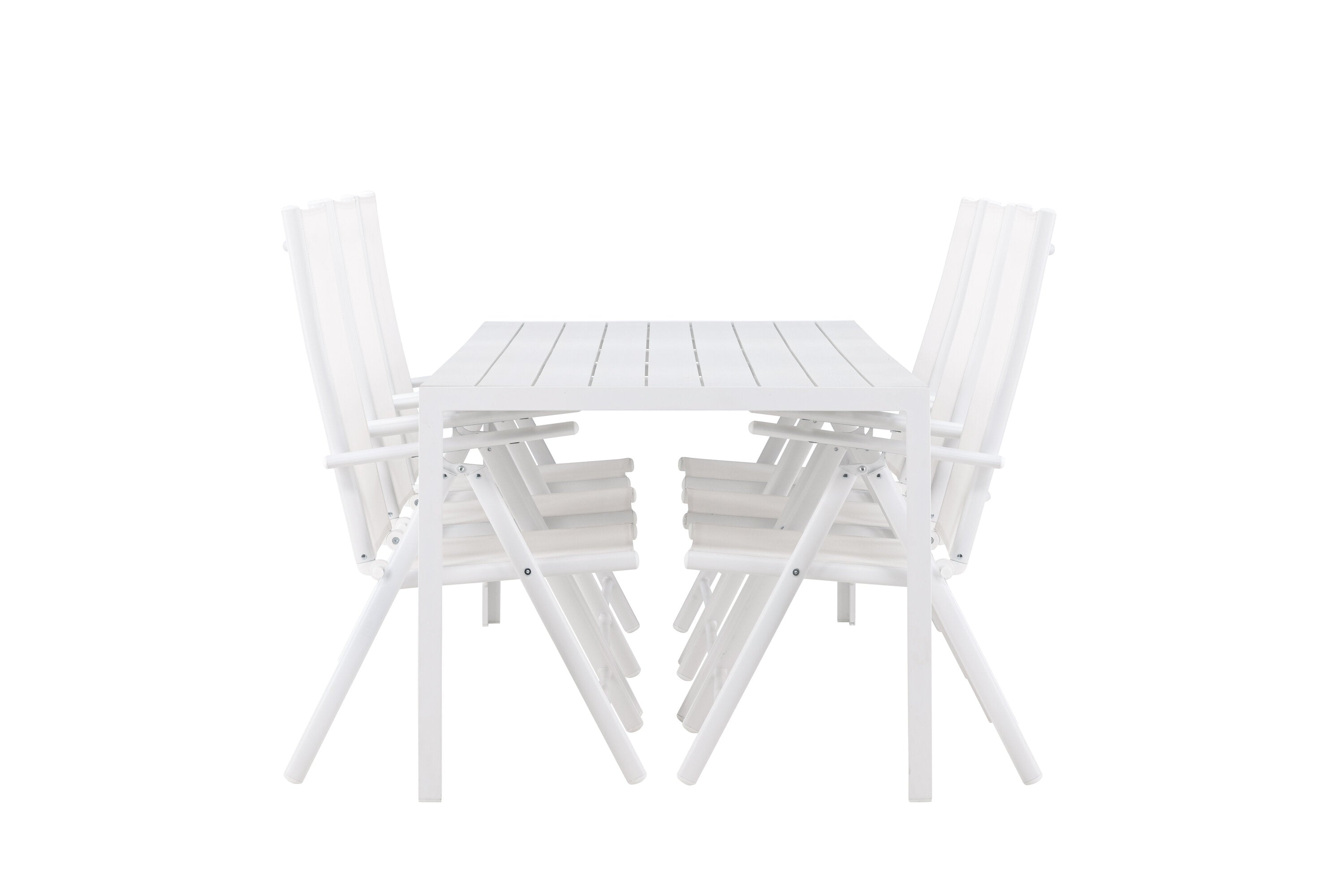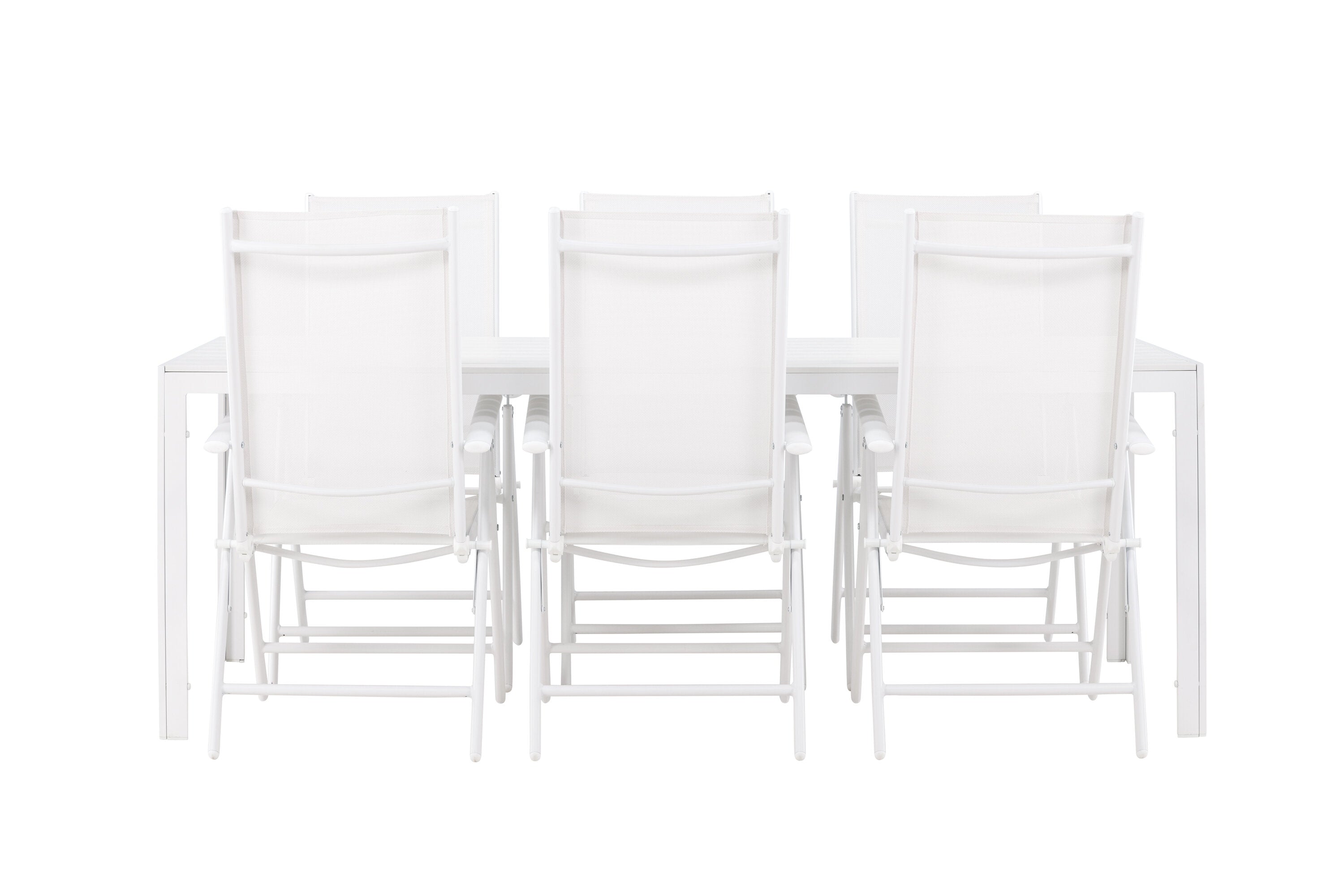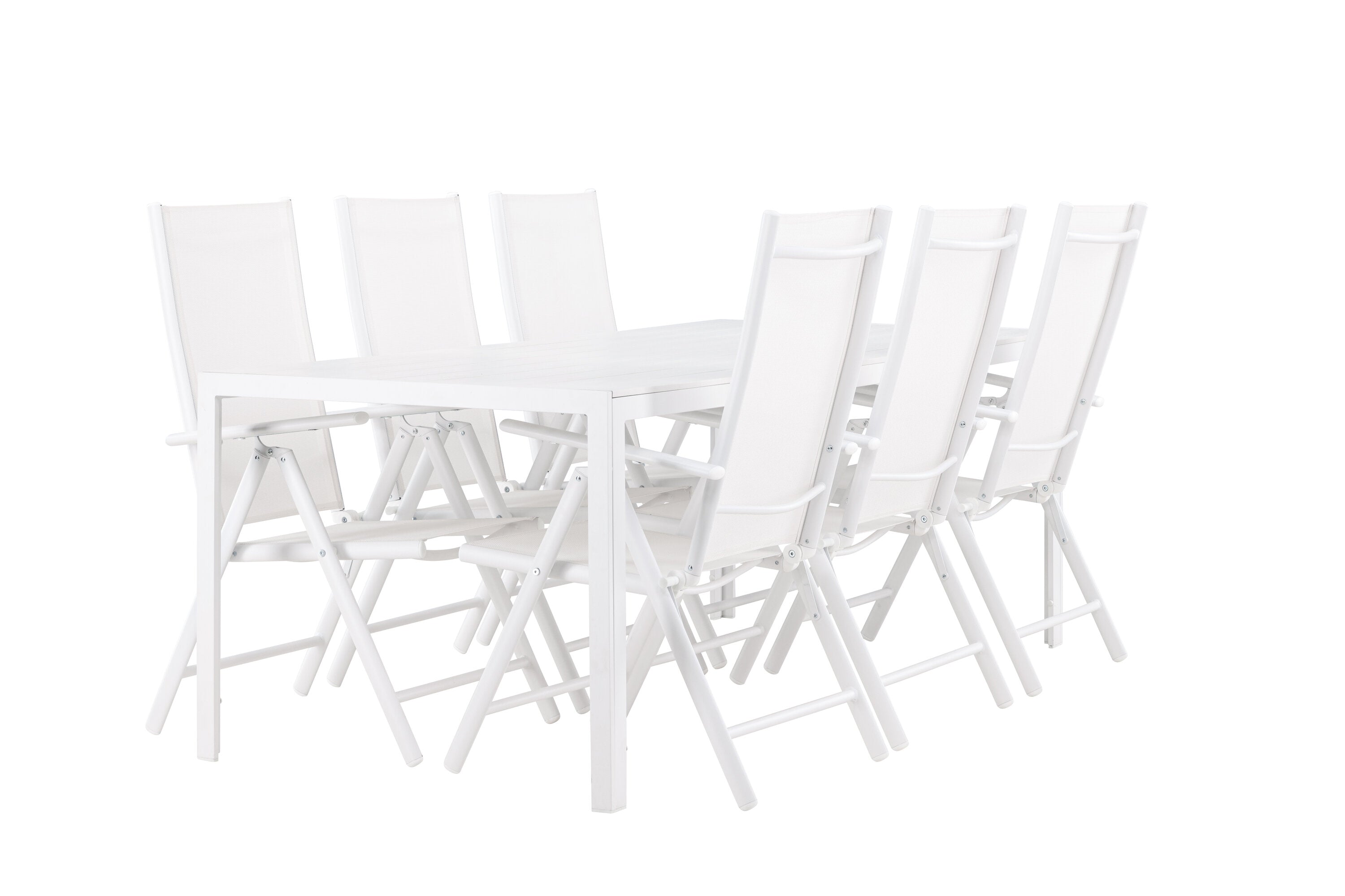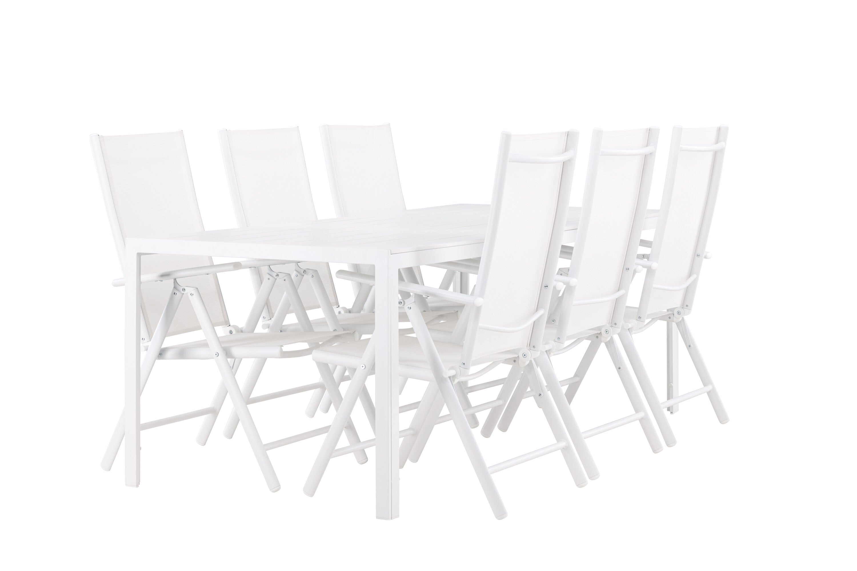 Stůl Break je dokonalým středobodem vašeho venkovního stolování, má bílou desku z nerezového dřeva a hliníkovou základnu. S velkorysými rozměry 205x75 cm pohodlně pojme šest osob pro příjemné venkovní posezení.
