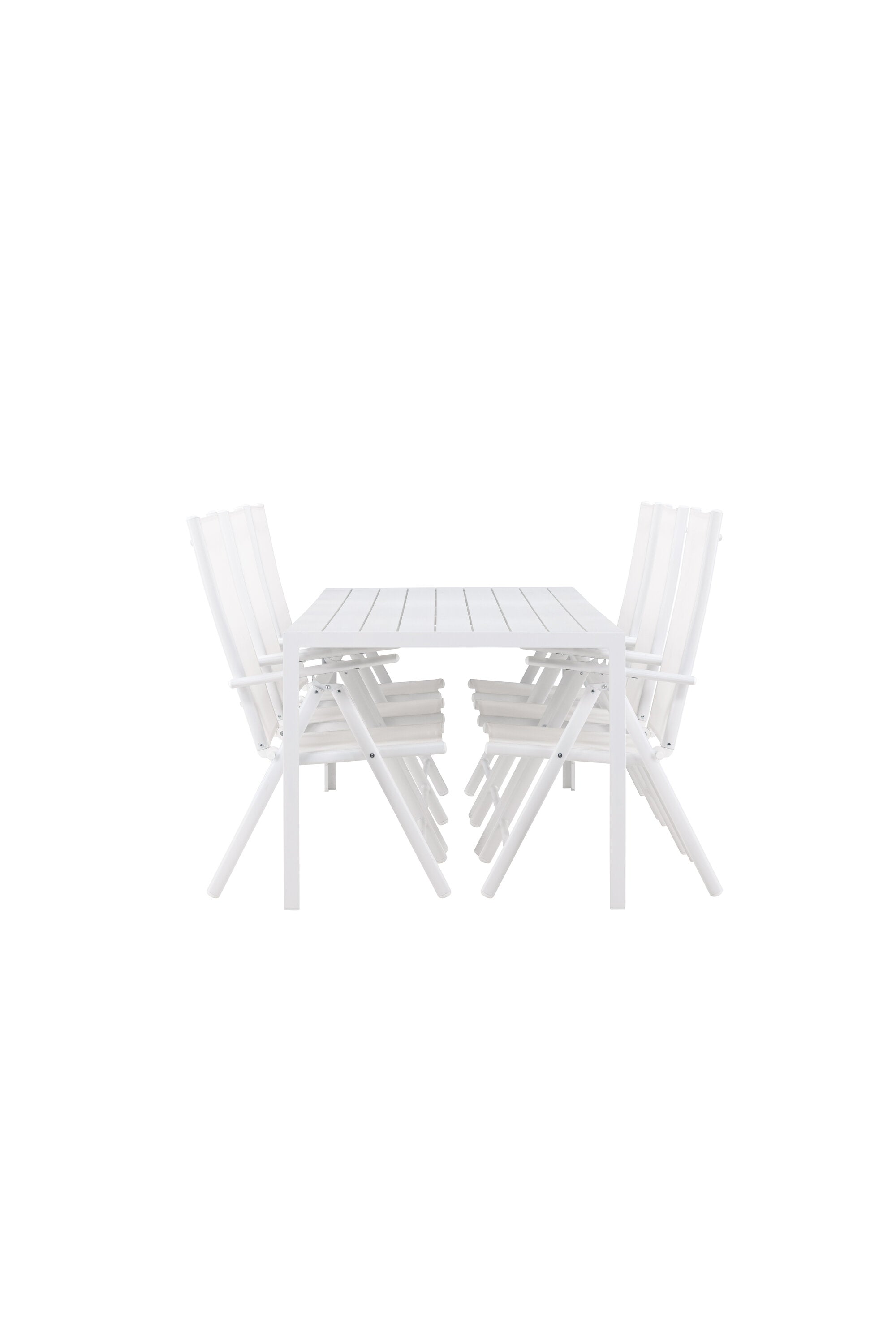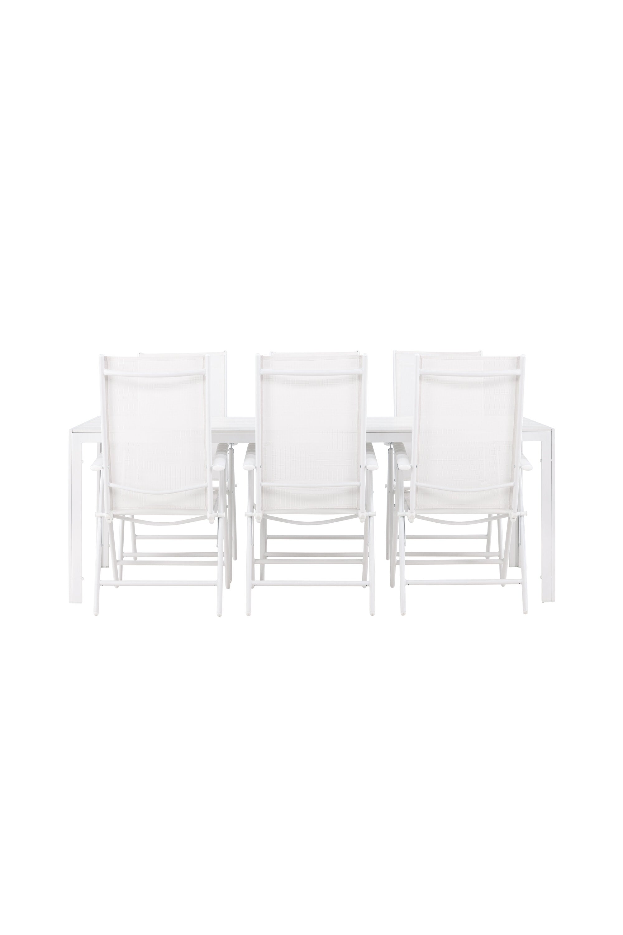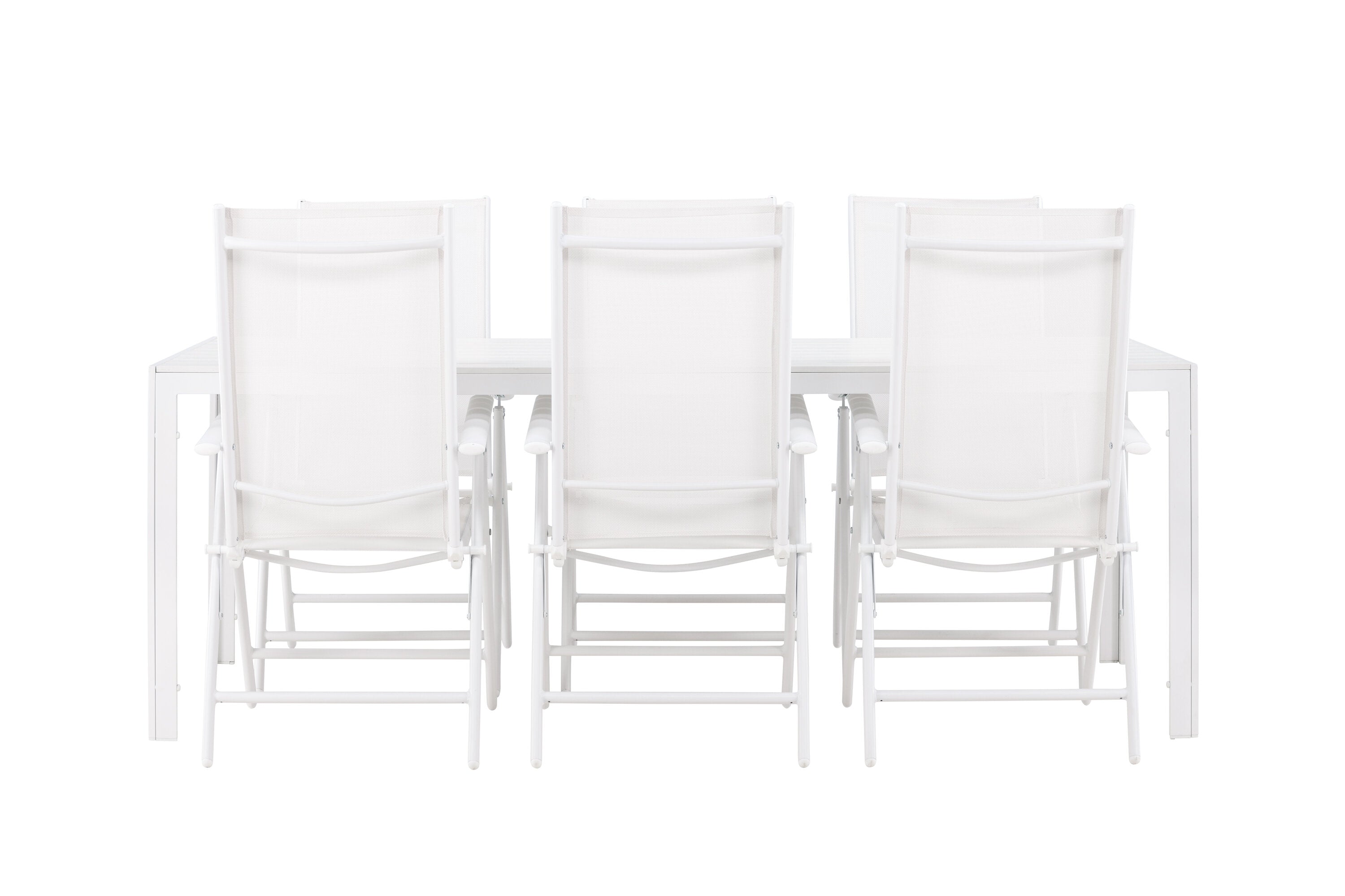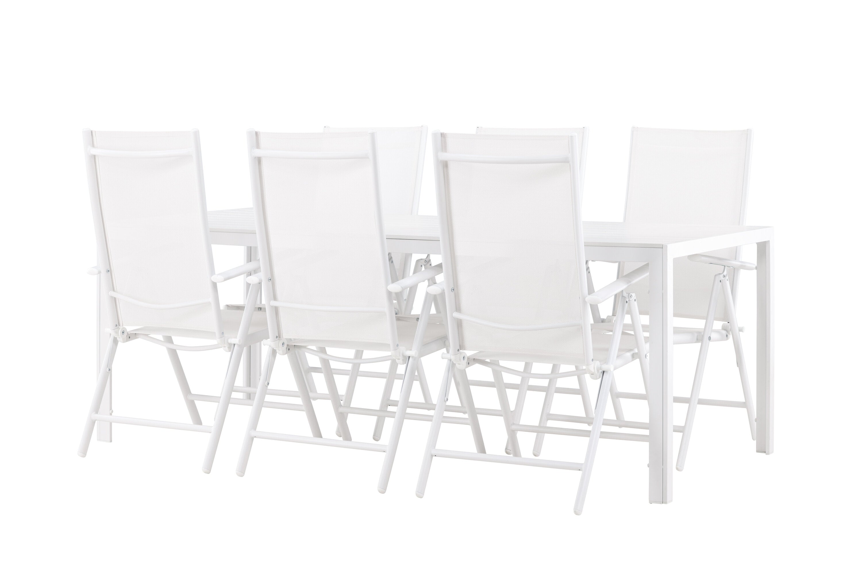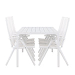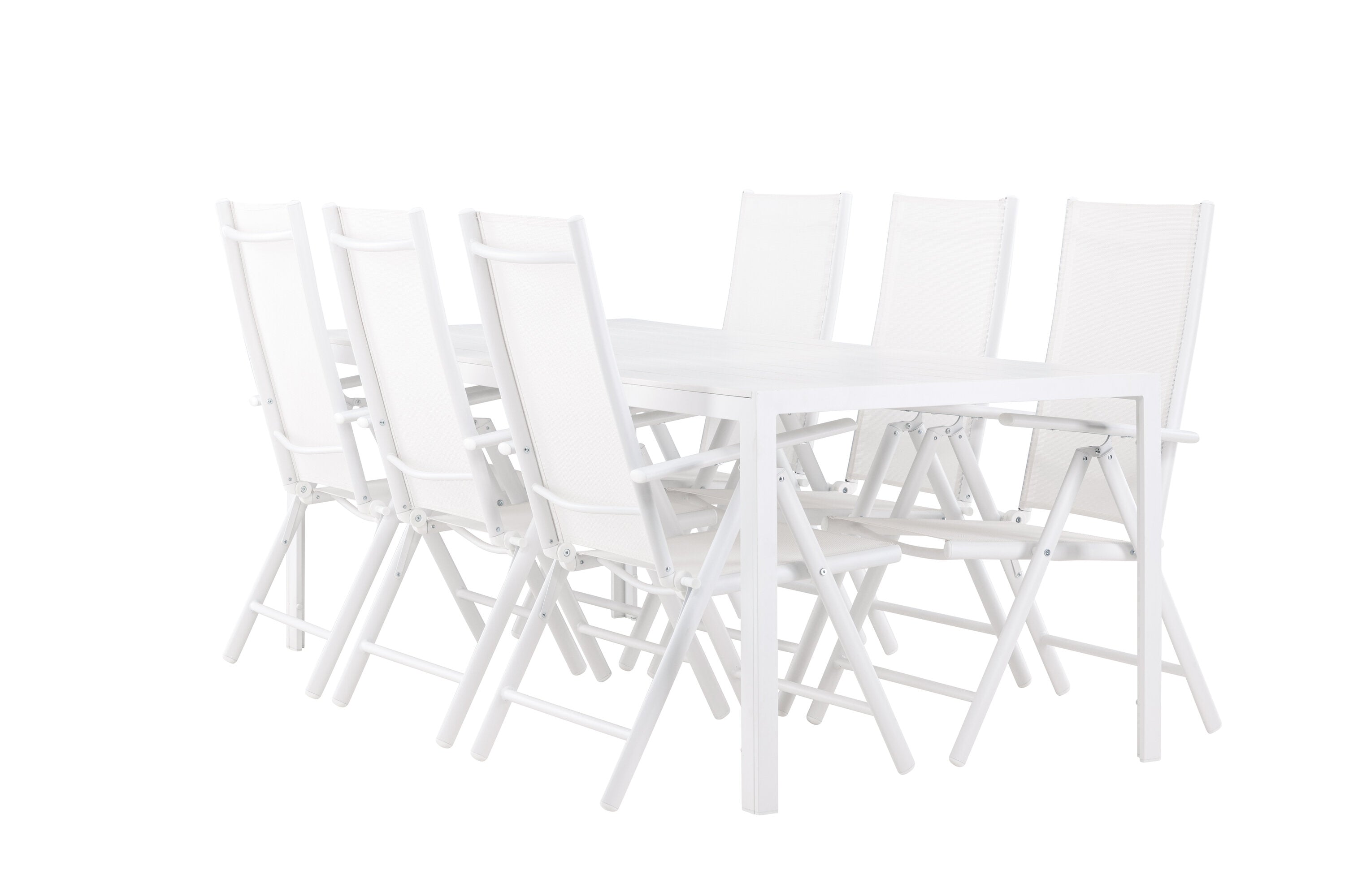 Stůl Break je dokonalým středobodem vašeho venkovního stolování, má bílou desku z nerezového dřeva a hliníkovou základnu. S velkorysými rozměry 205x75 cm pohodlně pojme šest osob pro příjemné venkovní posezení.