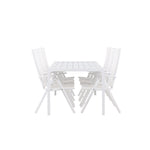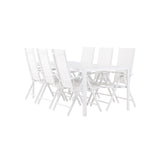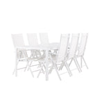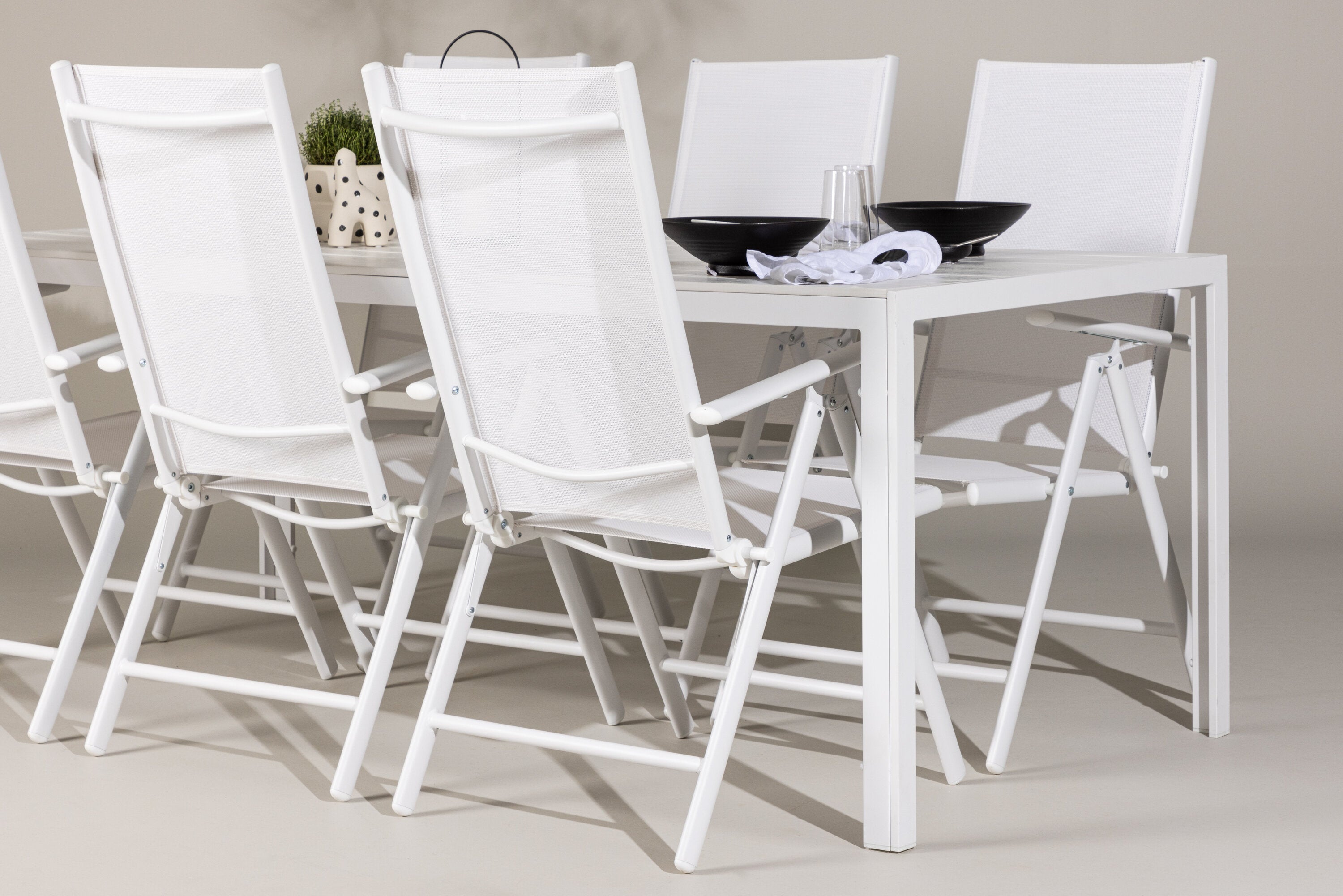 Tento jídelní set není jen funkčním venkovním nábytkem, ale také moderním interiérovým detailem, který vytváří atmosféru pro každou příležitost. Zažijte kamarádství a styl s naší promyšleně a elegantně navrženou jídelní sadou.