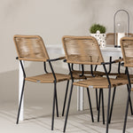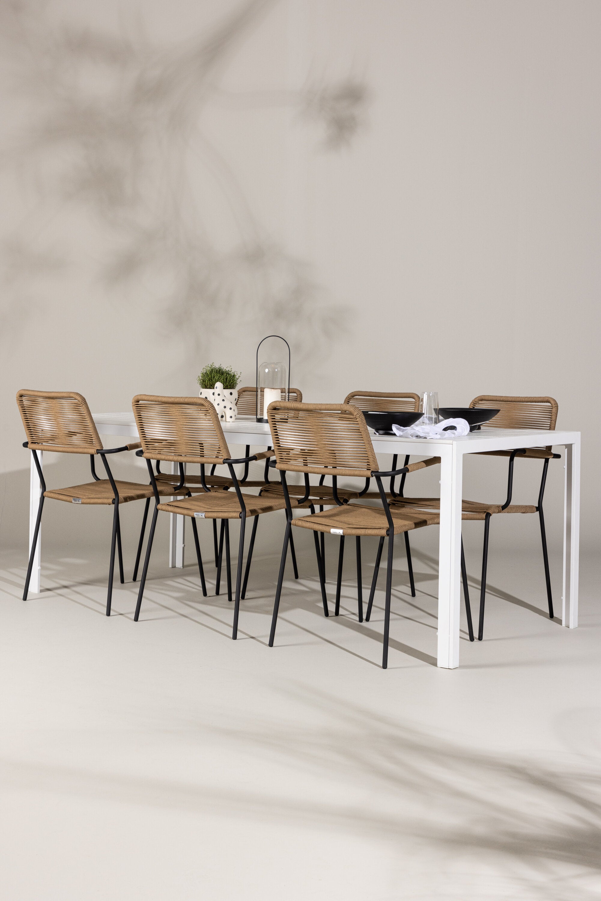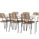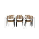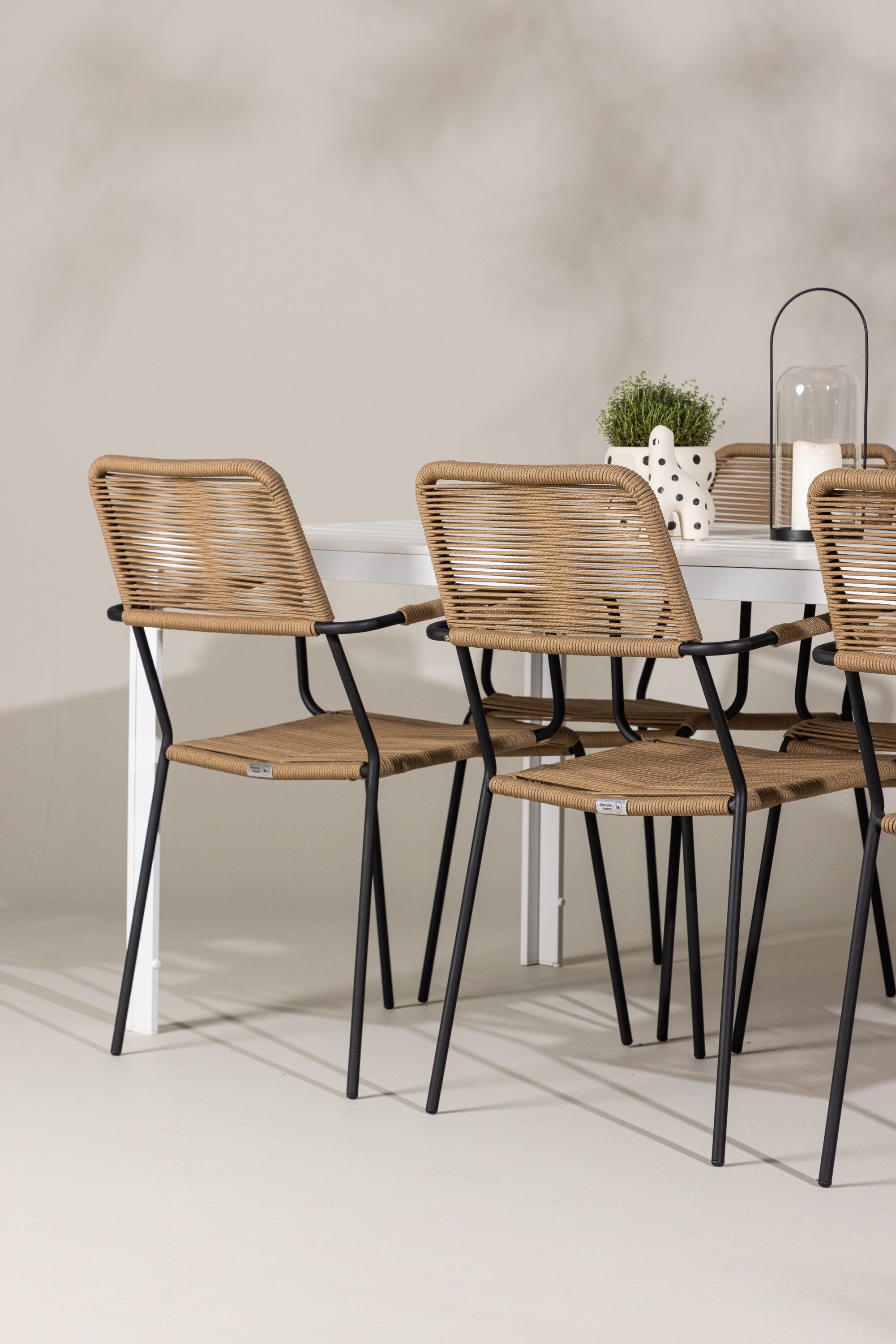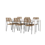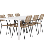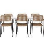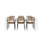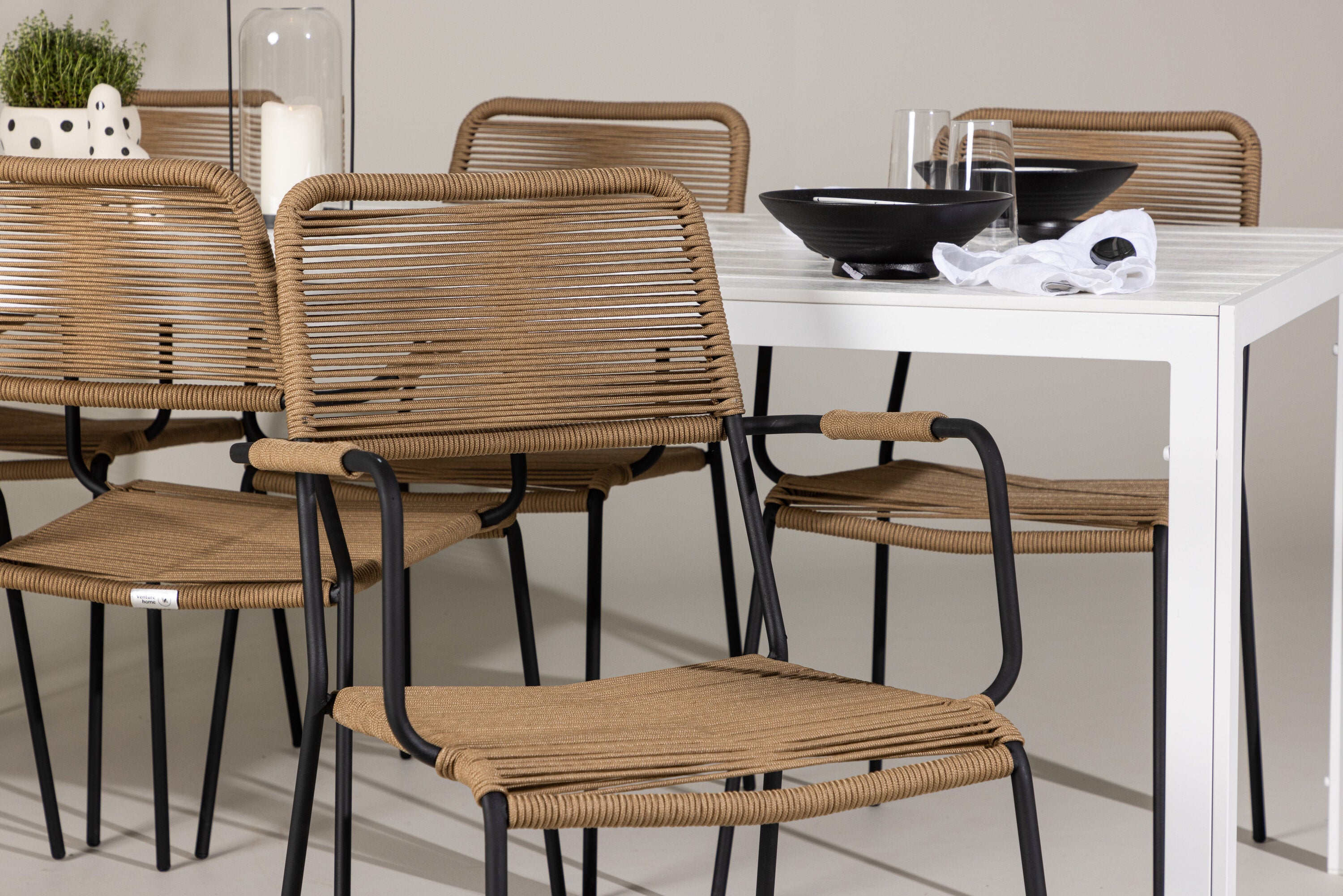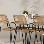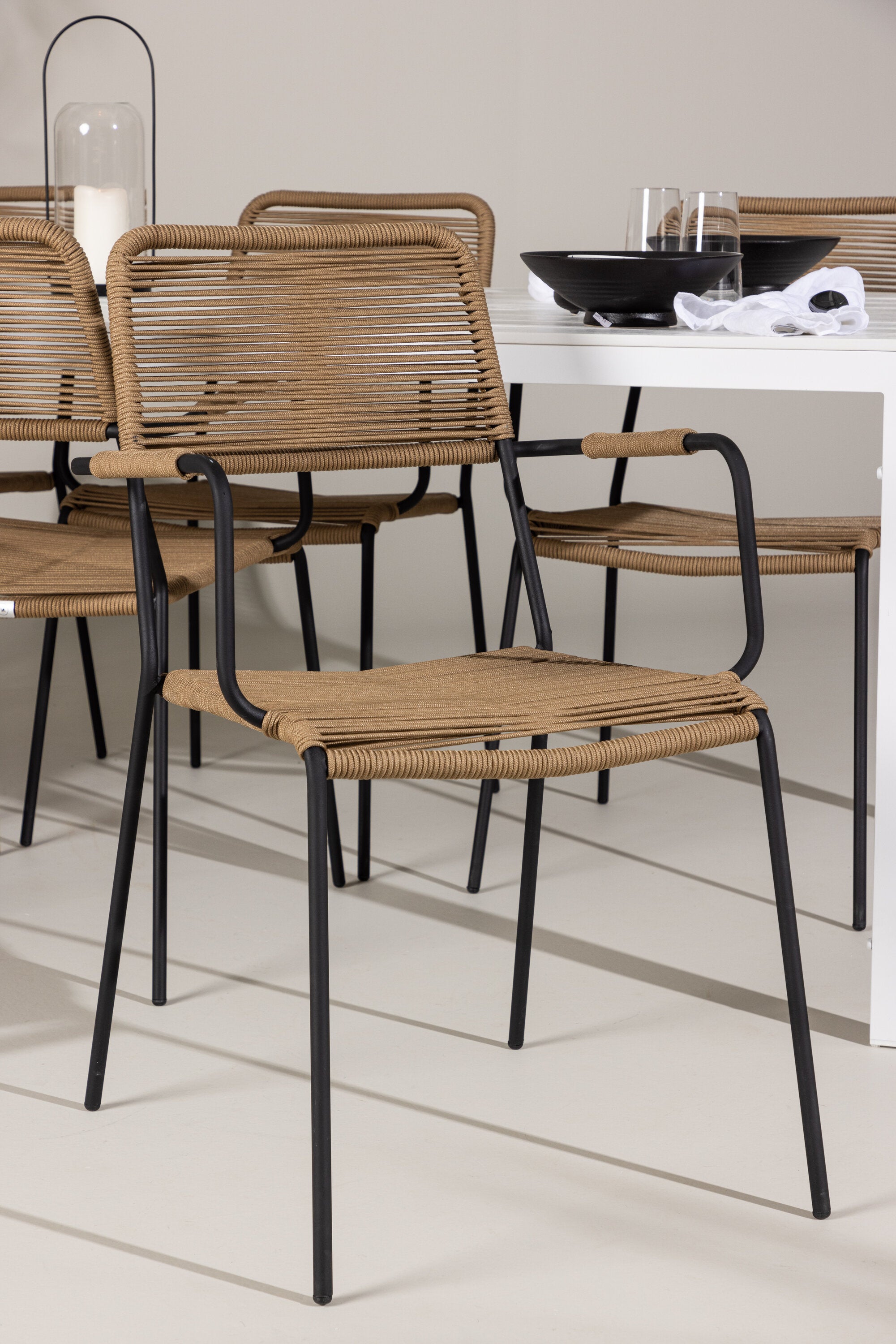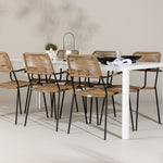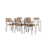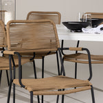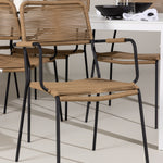 Židle Lindos se svými hnědými lanovými sedadly a černými ocelovými rámy nabízejí pohodlí i odolnost. Jejich přírodní vzhled dodá vašemu venkovnímu prostoru rustikální nádech.