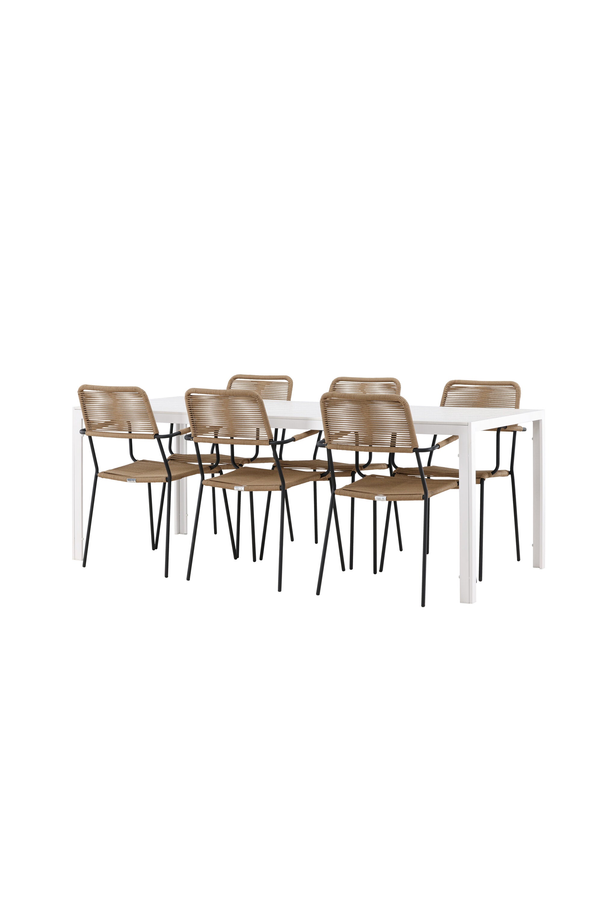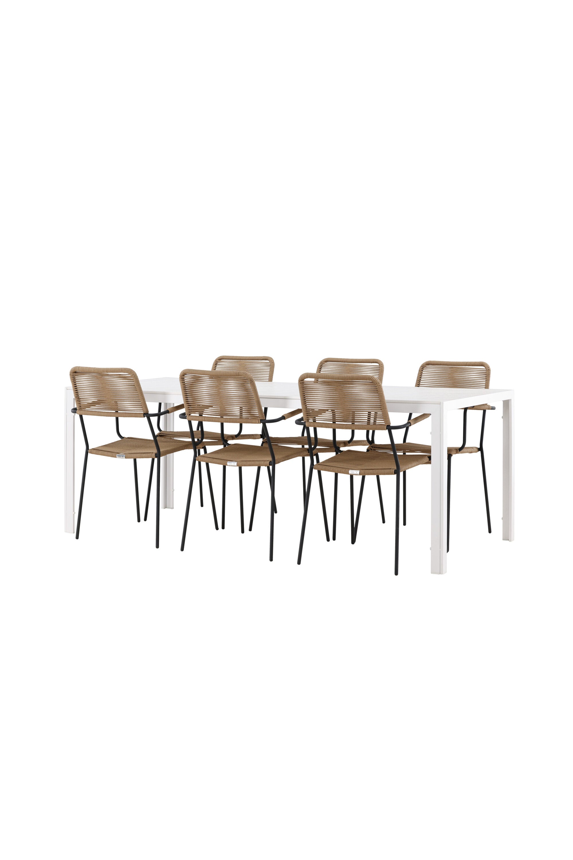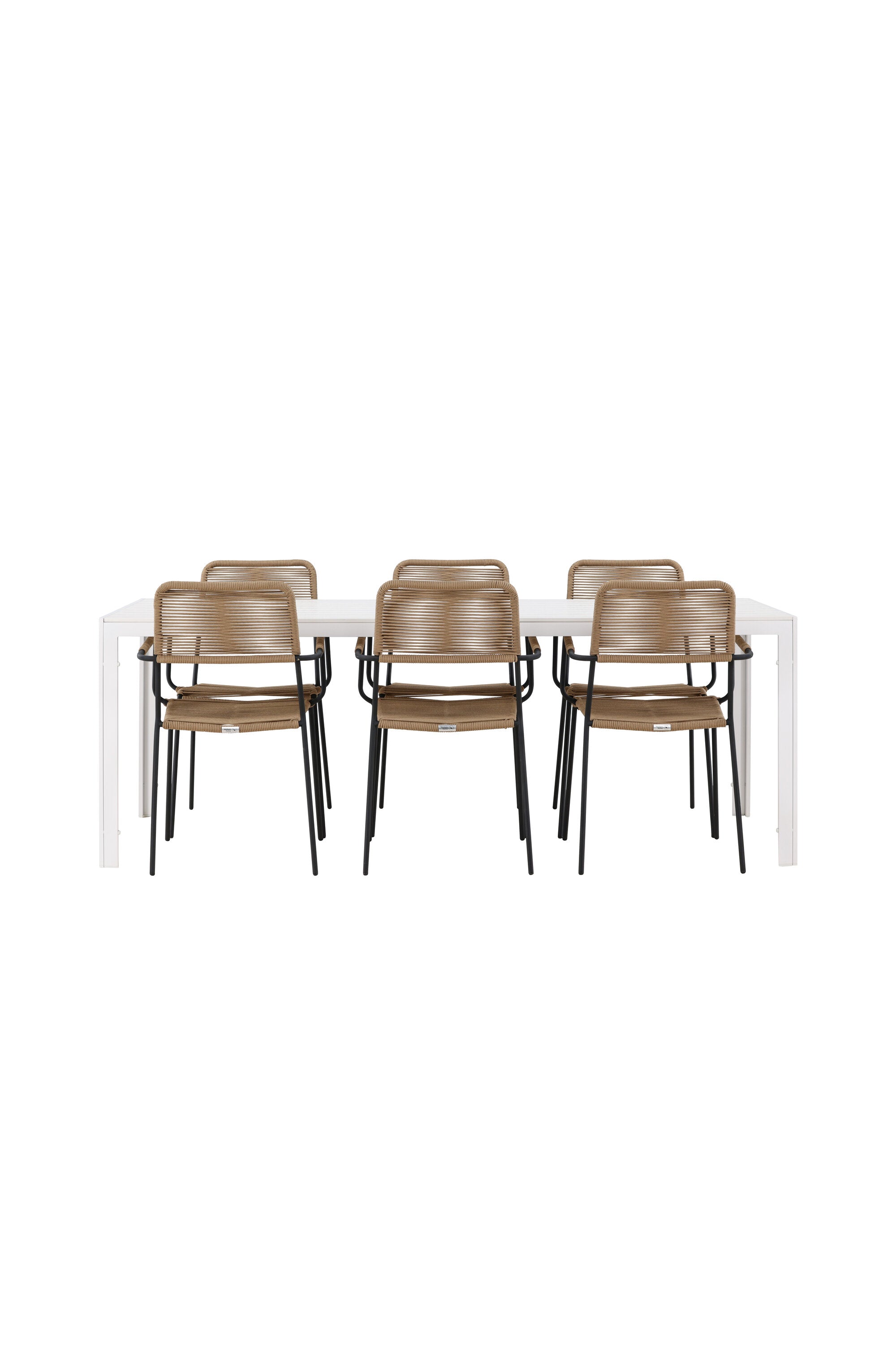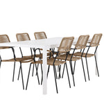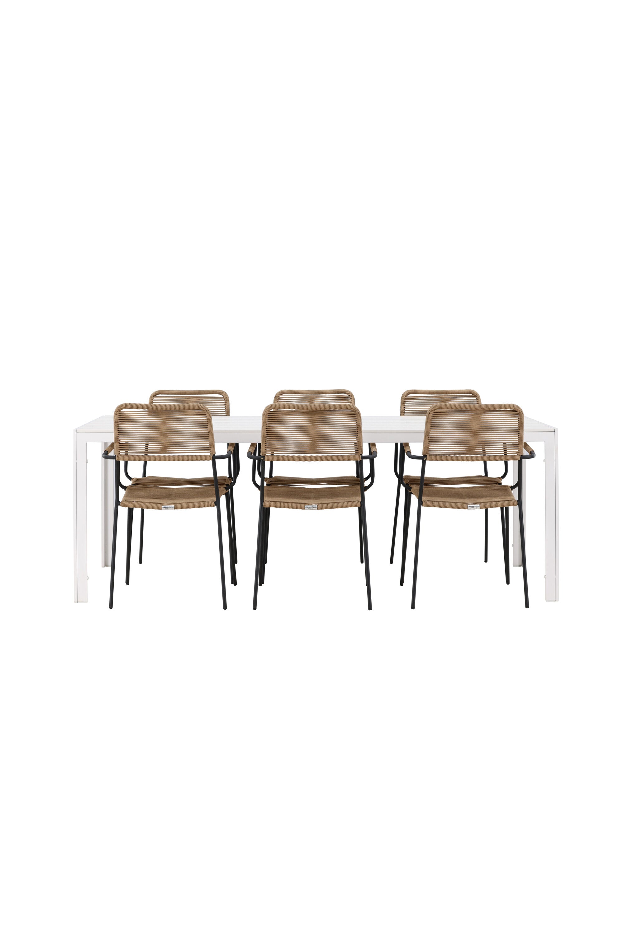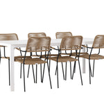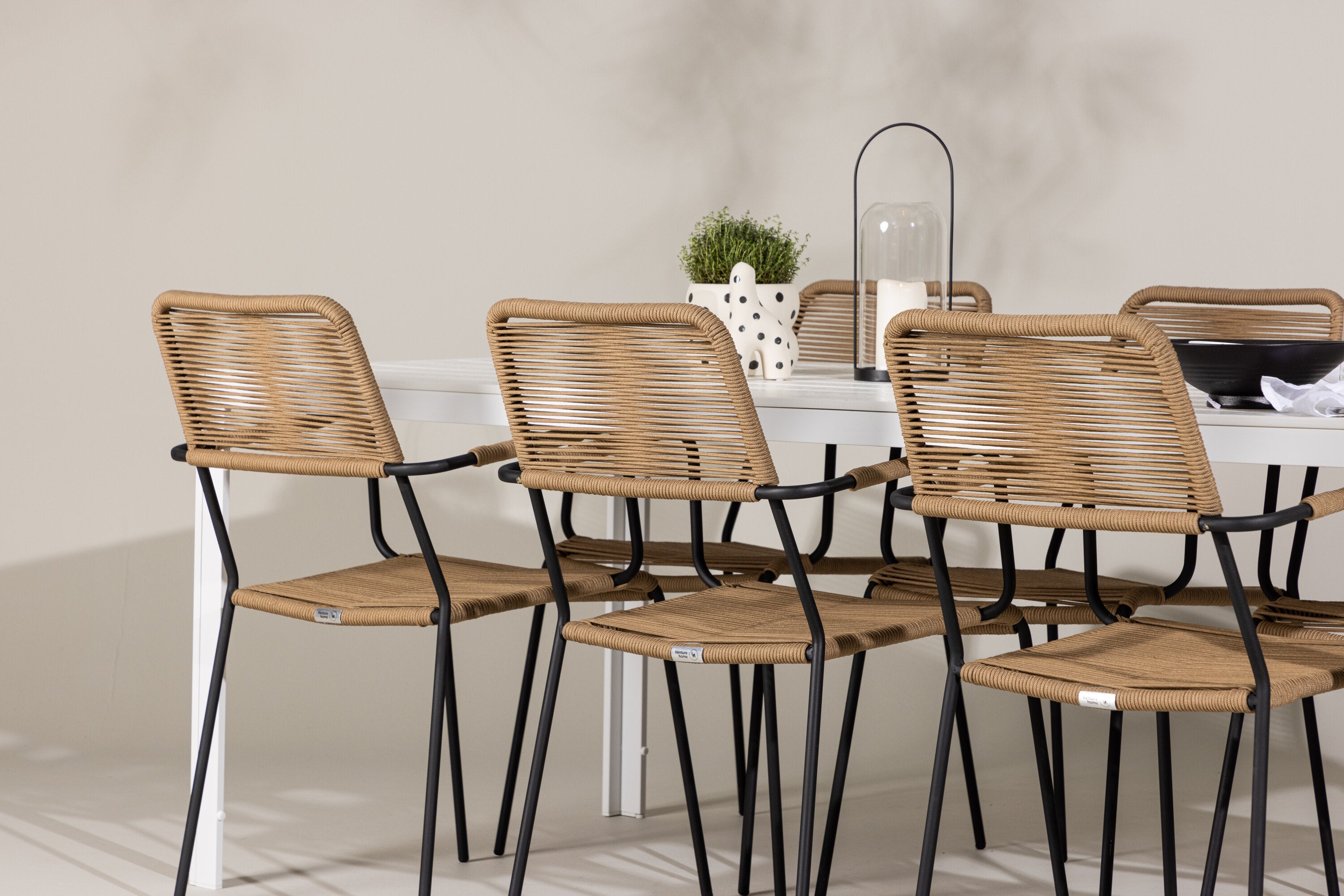 Židle Lindos se svými hnědými lanovými sedadly a černými ocelovými rámy nabízejí pohodlí i odolnost. Jejich přírodní vzhled dodá vašemu venkovnímu prostoru rustikální nádech.