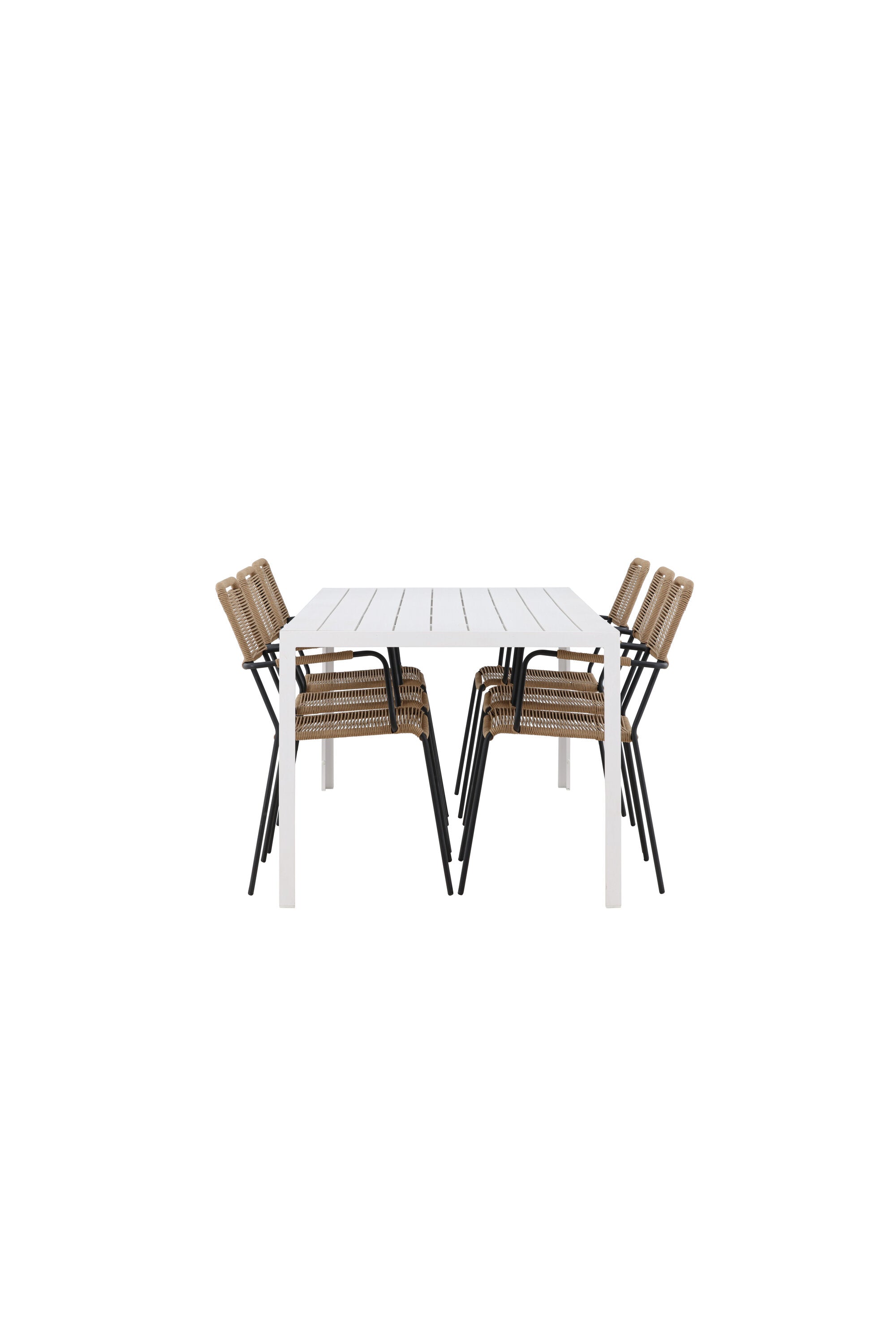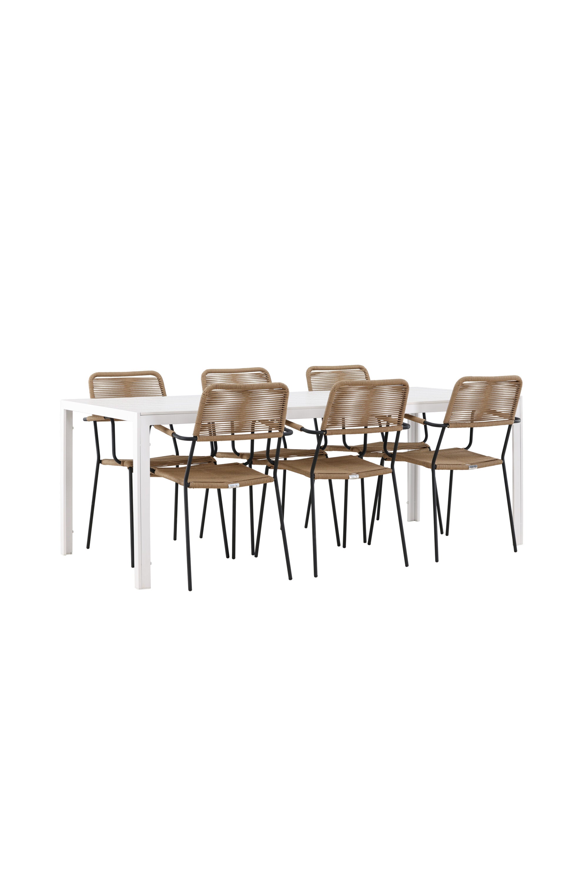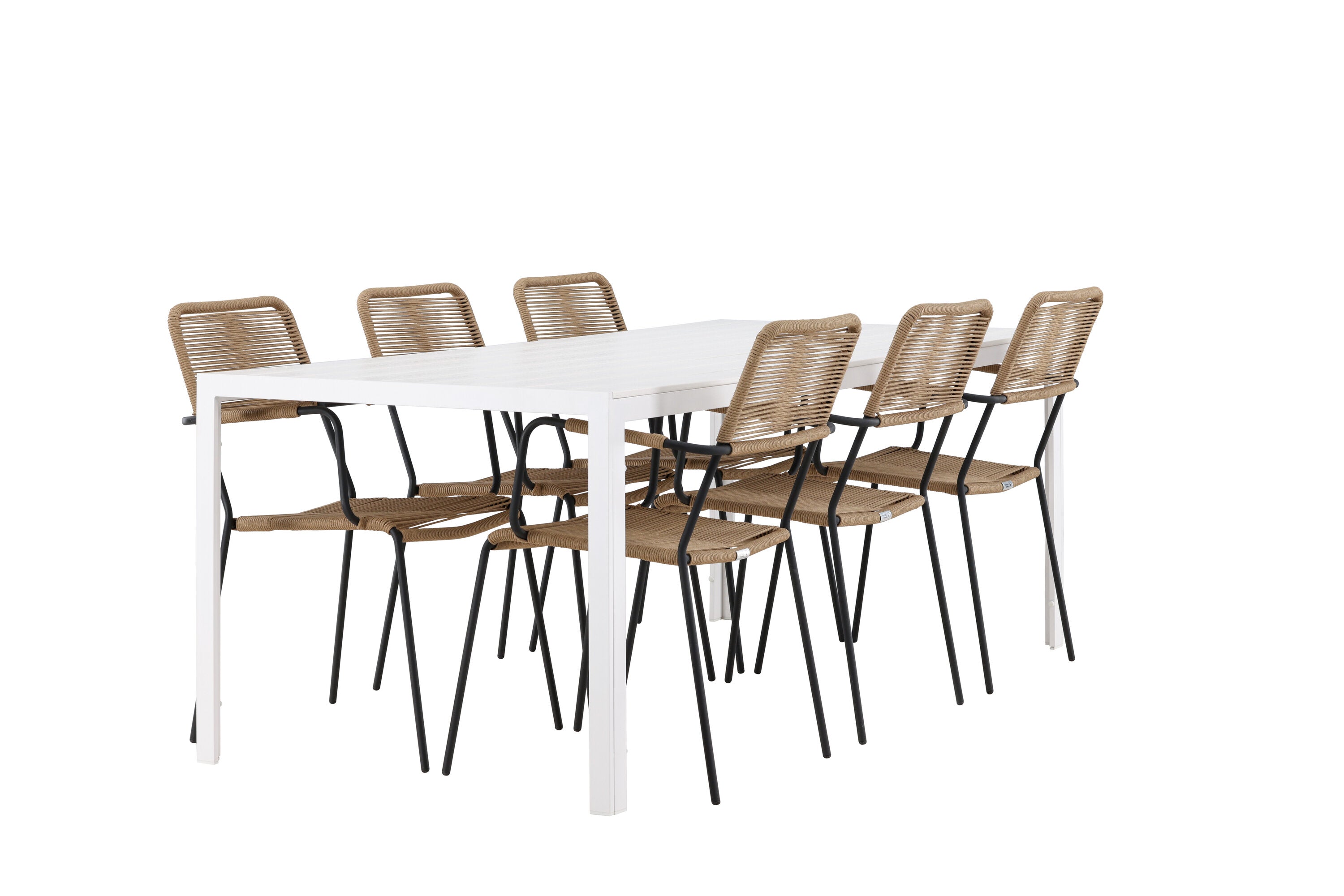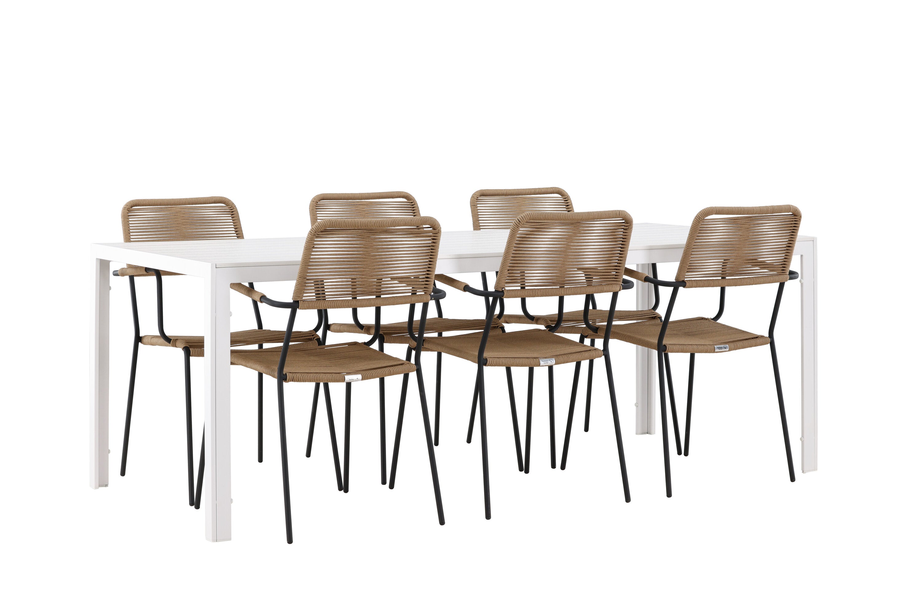 Židle Lindos se svými hnědými lanovými sedadly a černými ocelovými rámy nabízejí pohodlí i odolnost. Jejich přírodní vzhled dodá vašemu venkovnímu prostoru rustikální nádech.