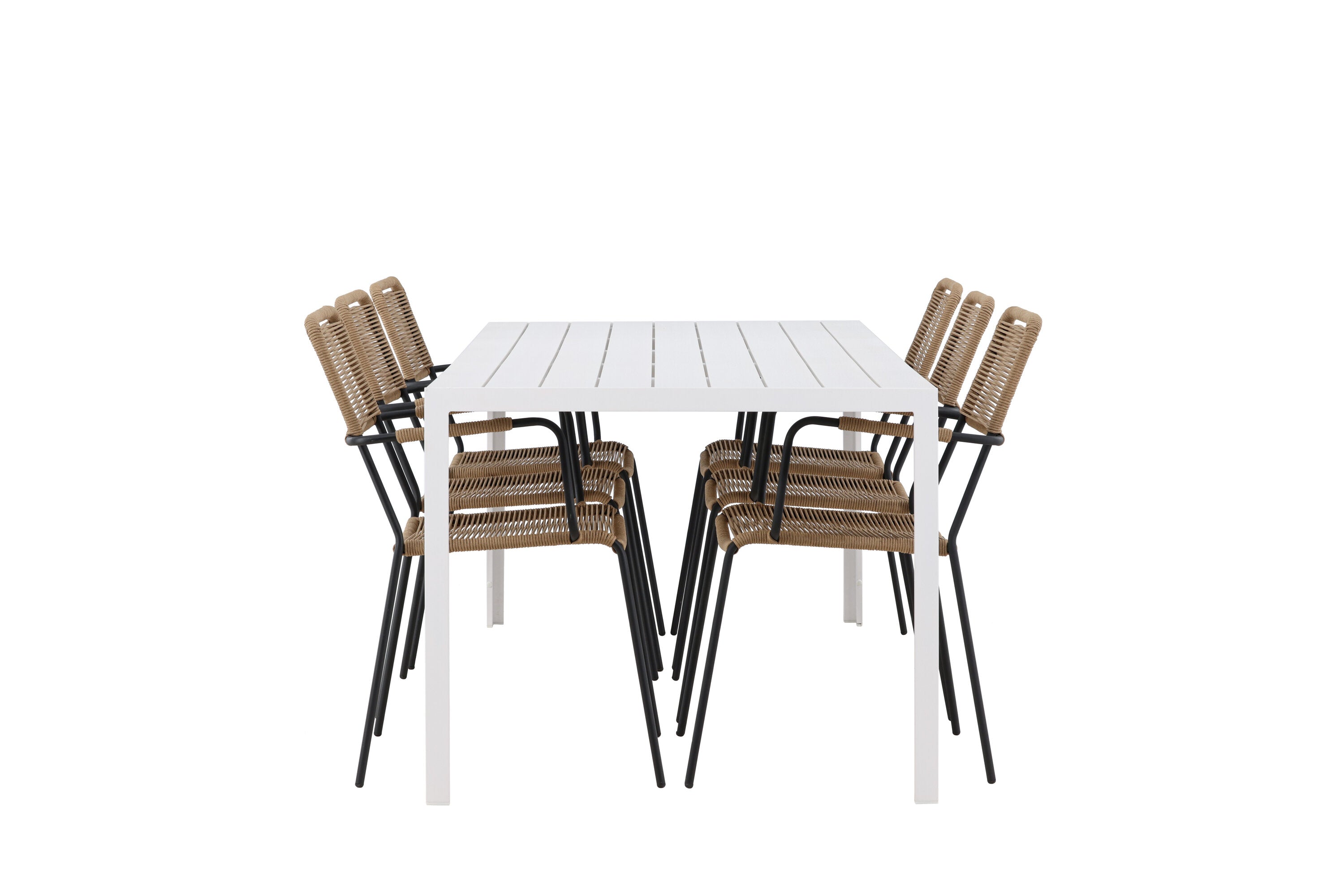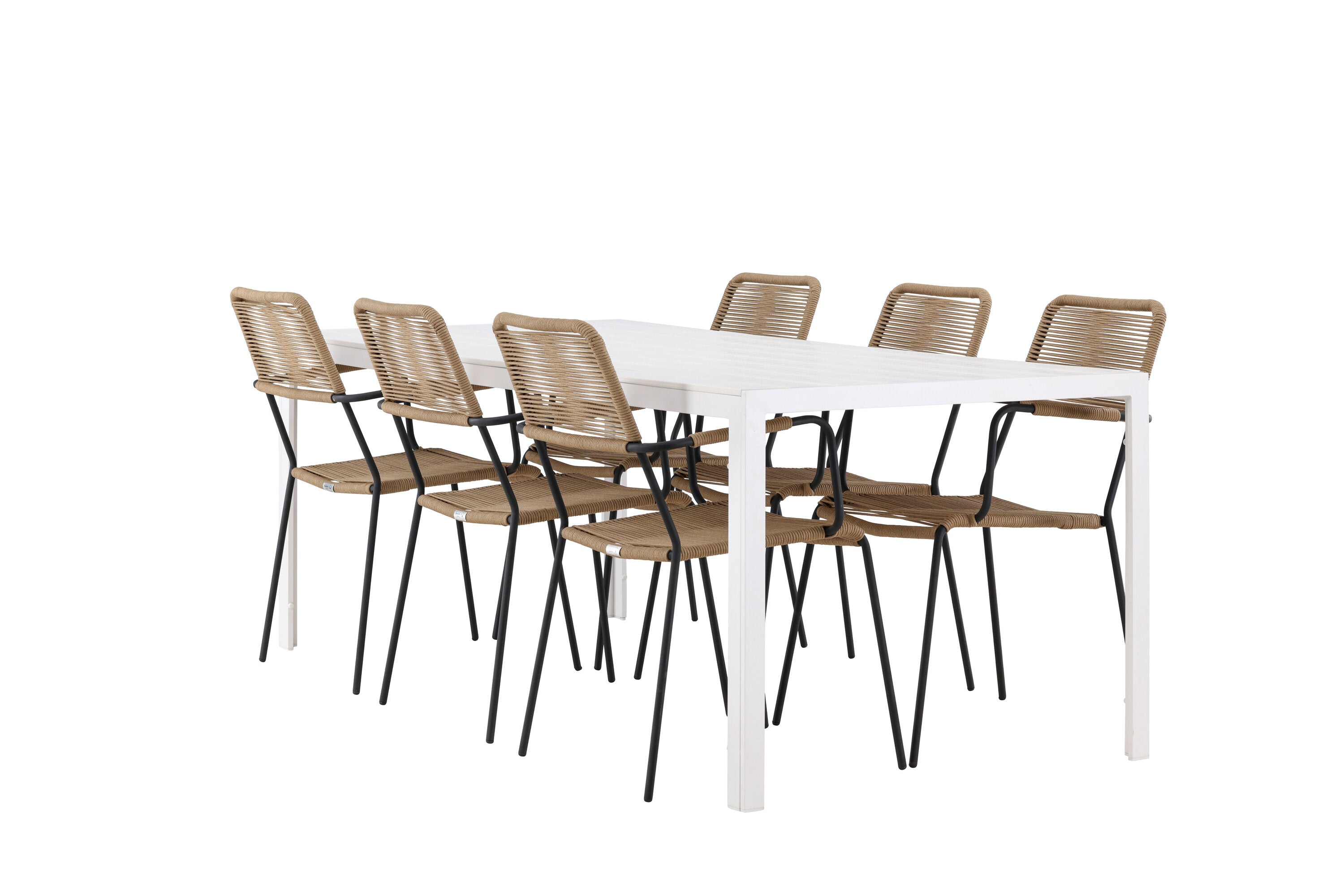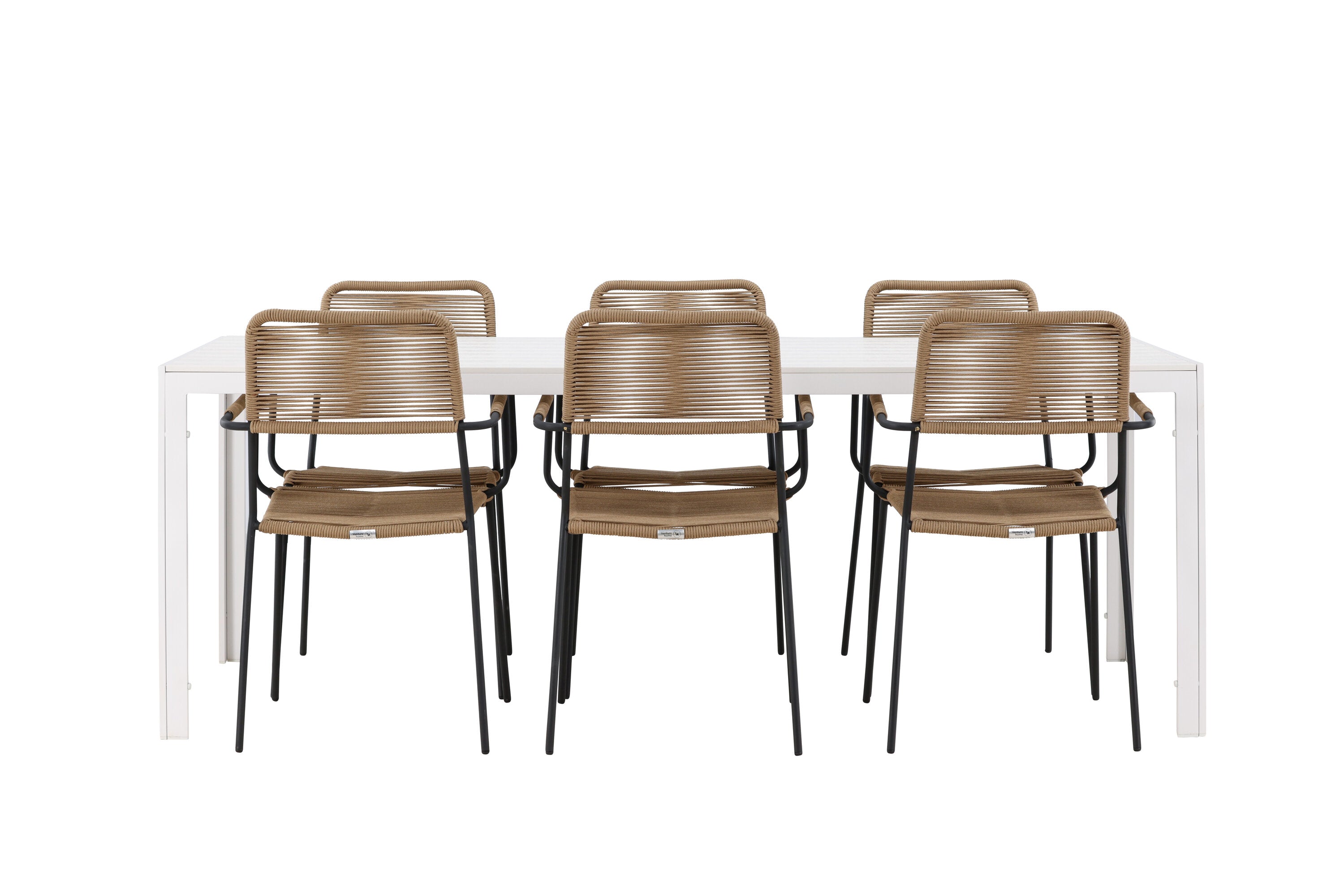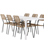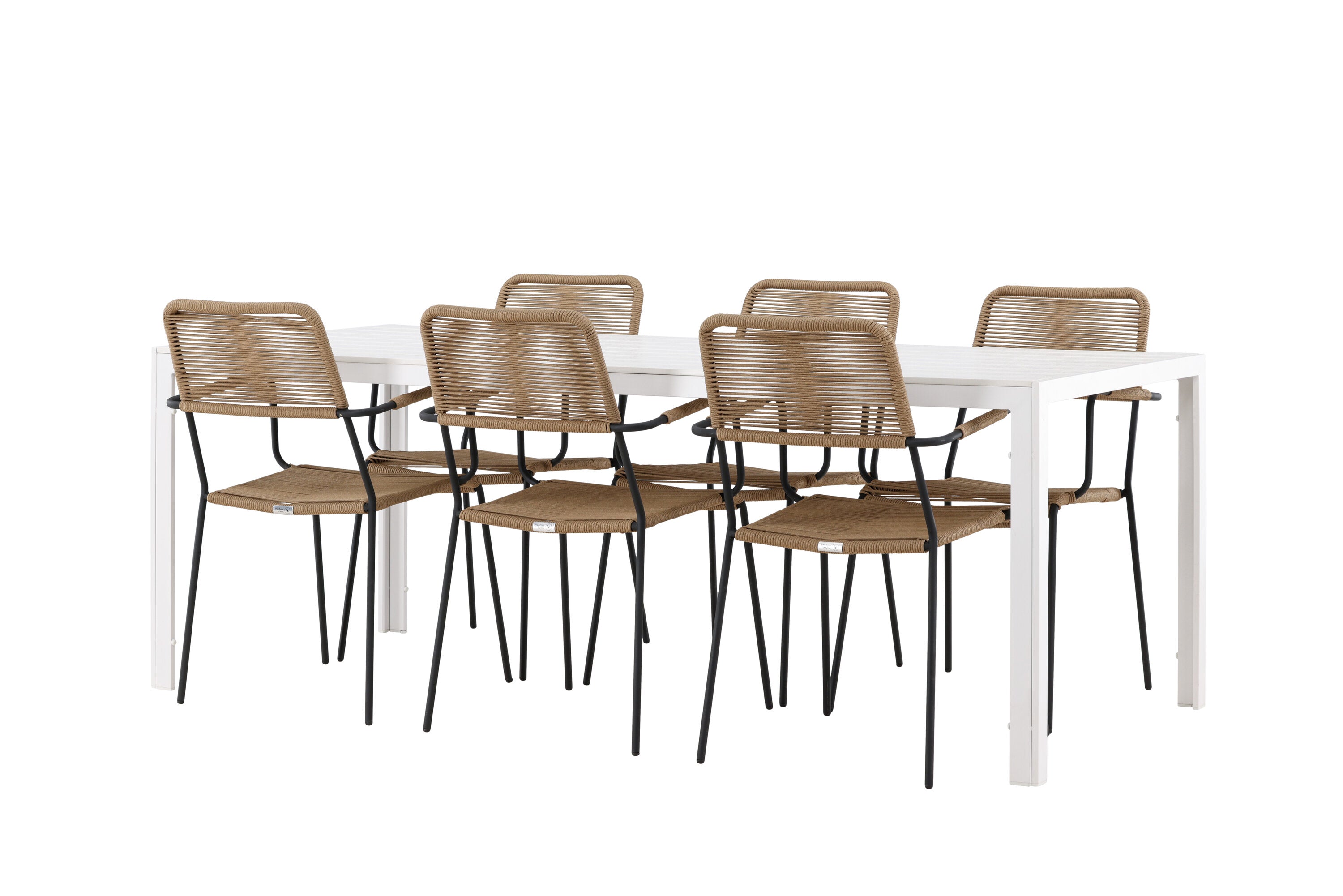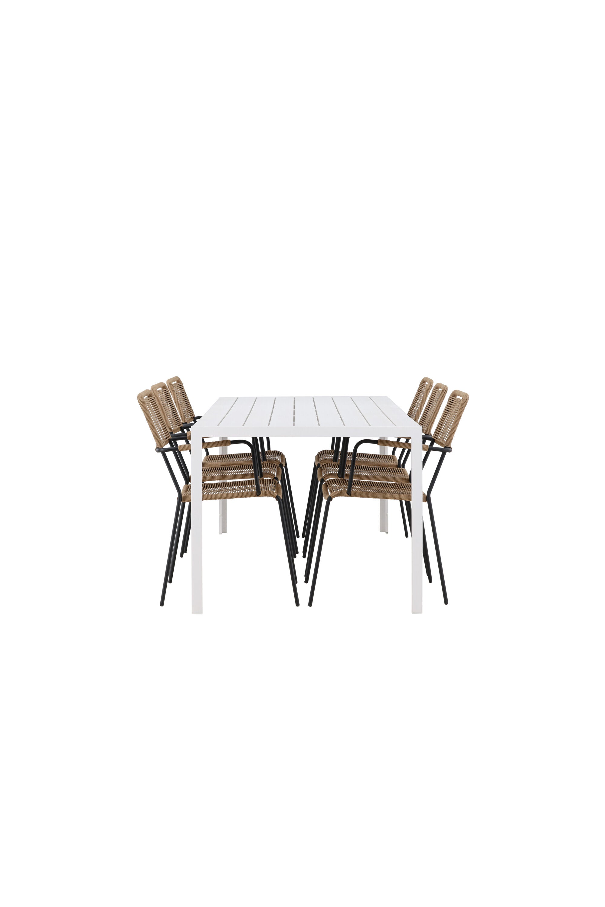 Židle Lindos se svými hnědými lanovými sedadly a černými ocelovými rámy nabízejí pohodlí i odolnost. Jejich přírodní vzhled dodá vašemu venkovnímu prostoru rustikální nádech.