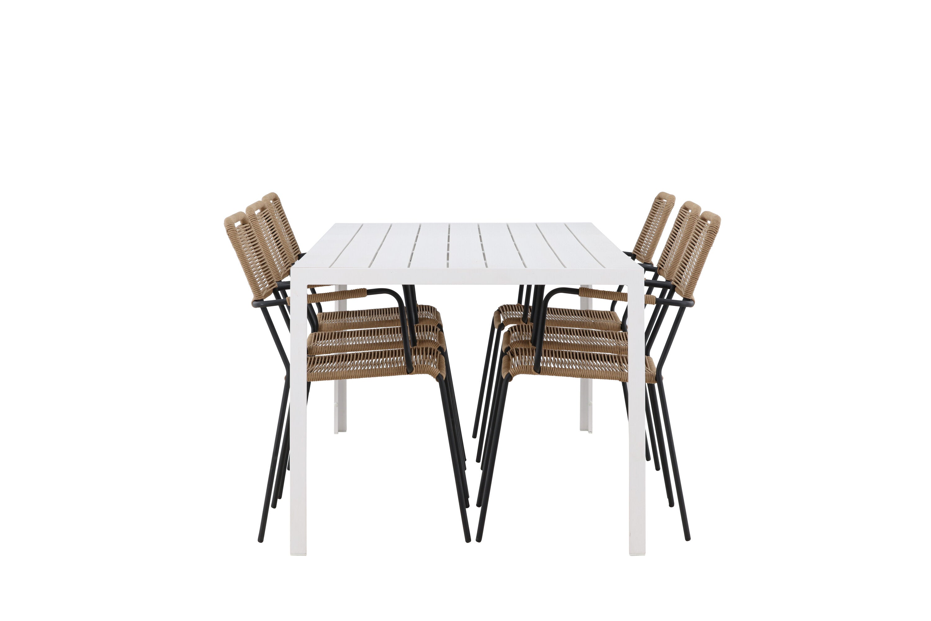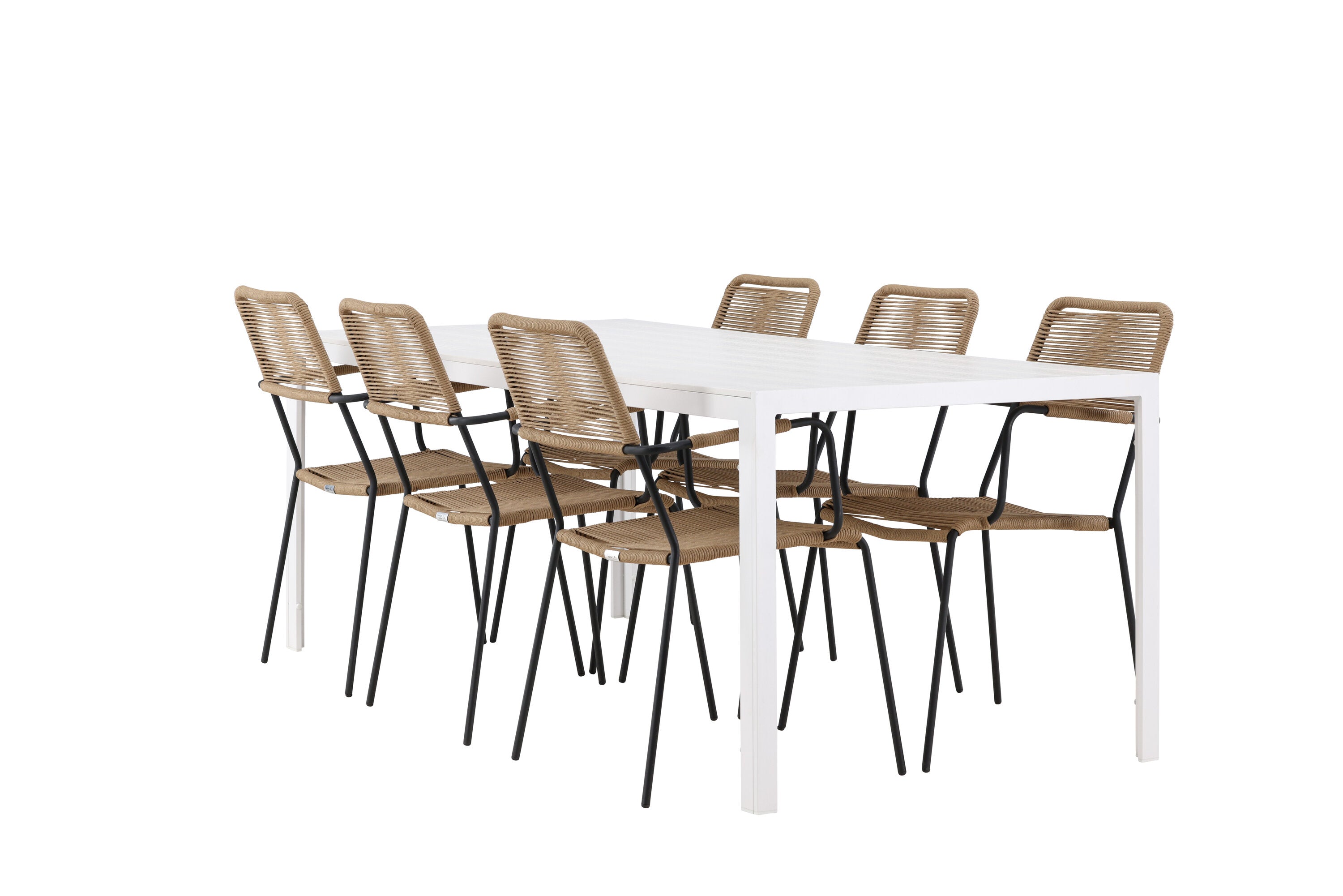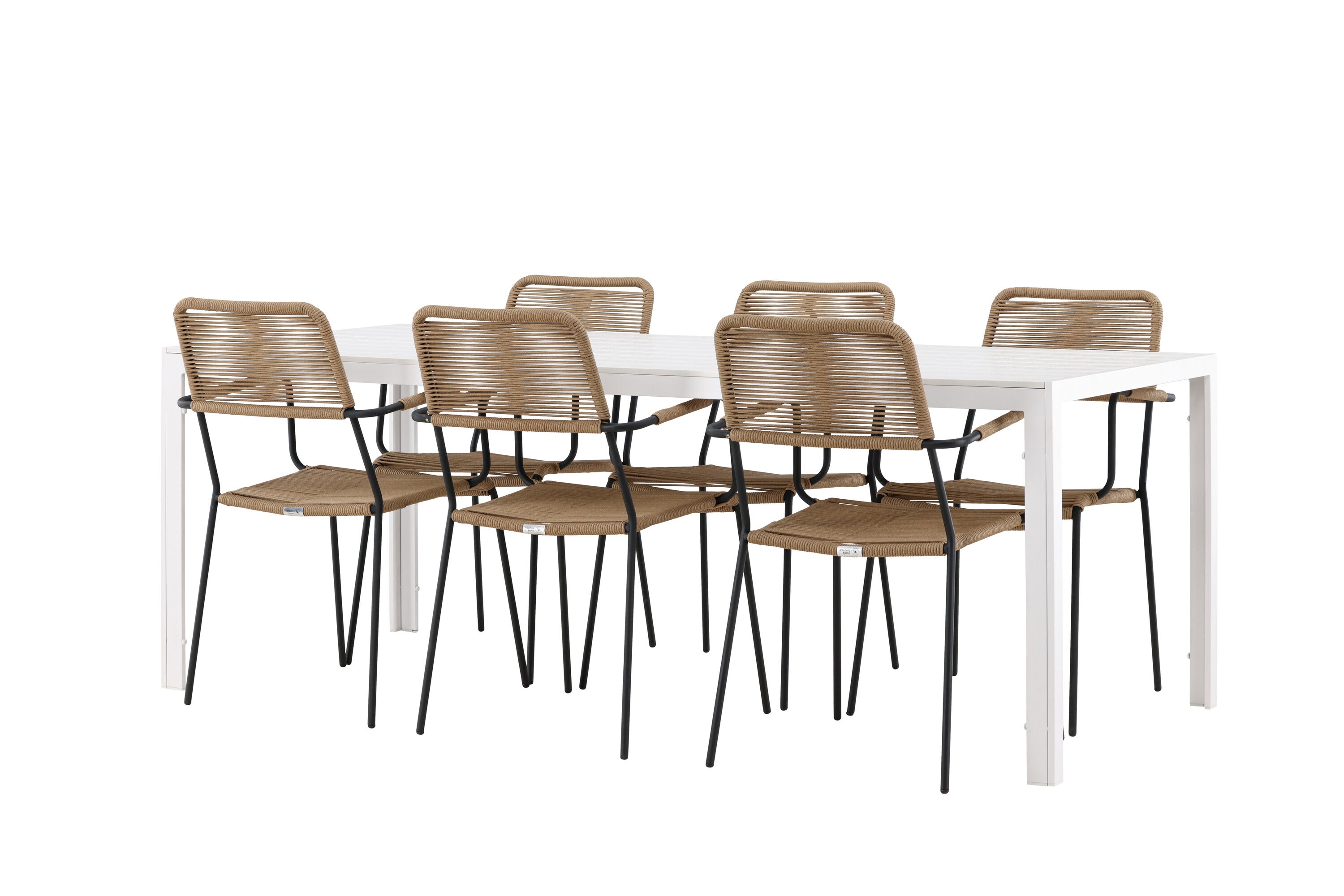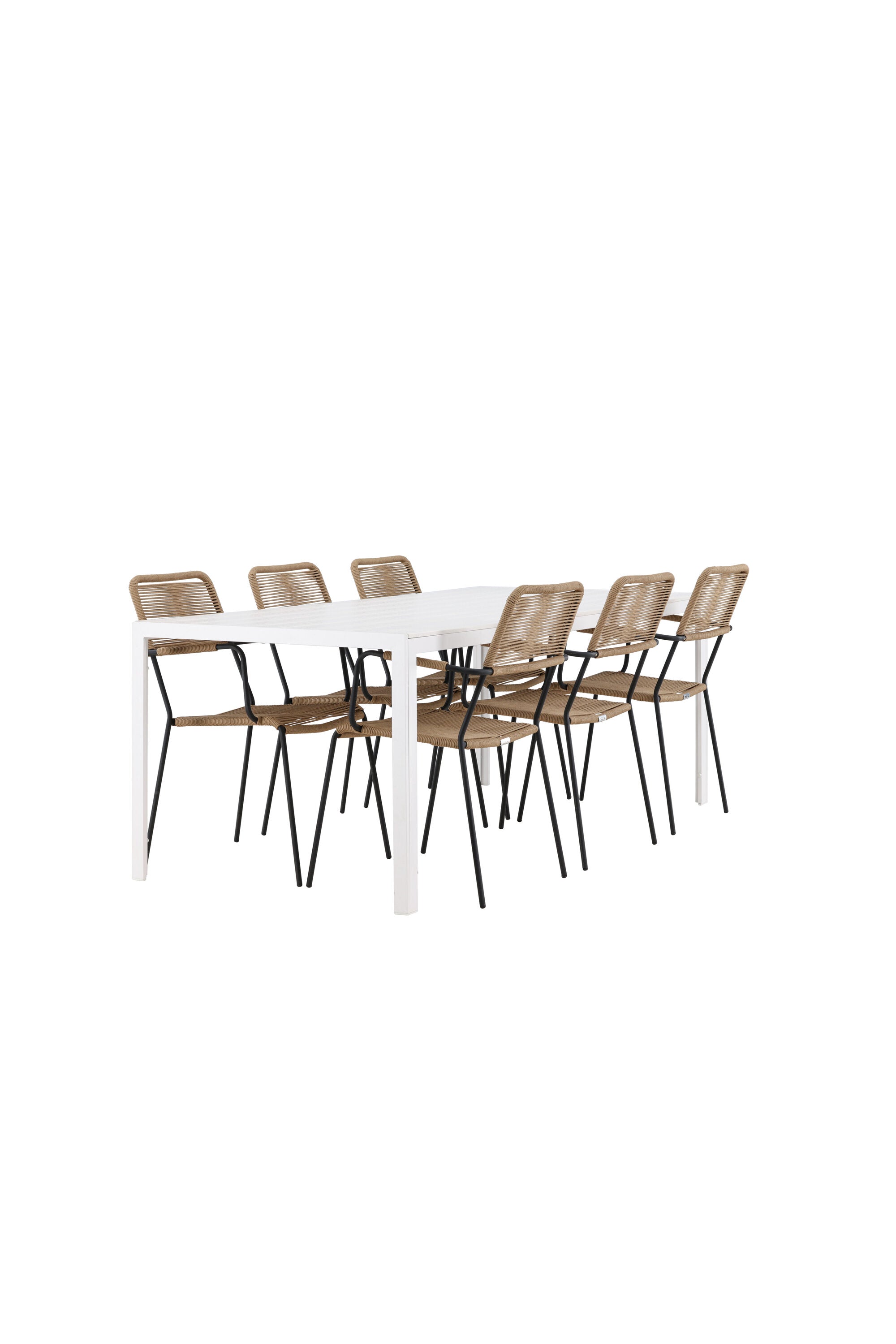Židle Lindos se svými hnědými lanovými sedadly a černými ocelovými rámy nabízejí pohodlí i odolnost. Jejich přírodní vzhled dodá vašemu venkovnímu prostoru rustikální nádech.