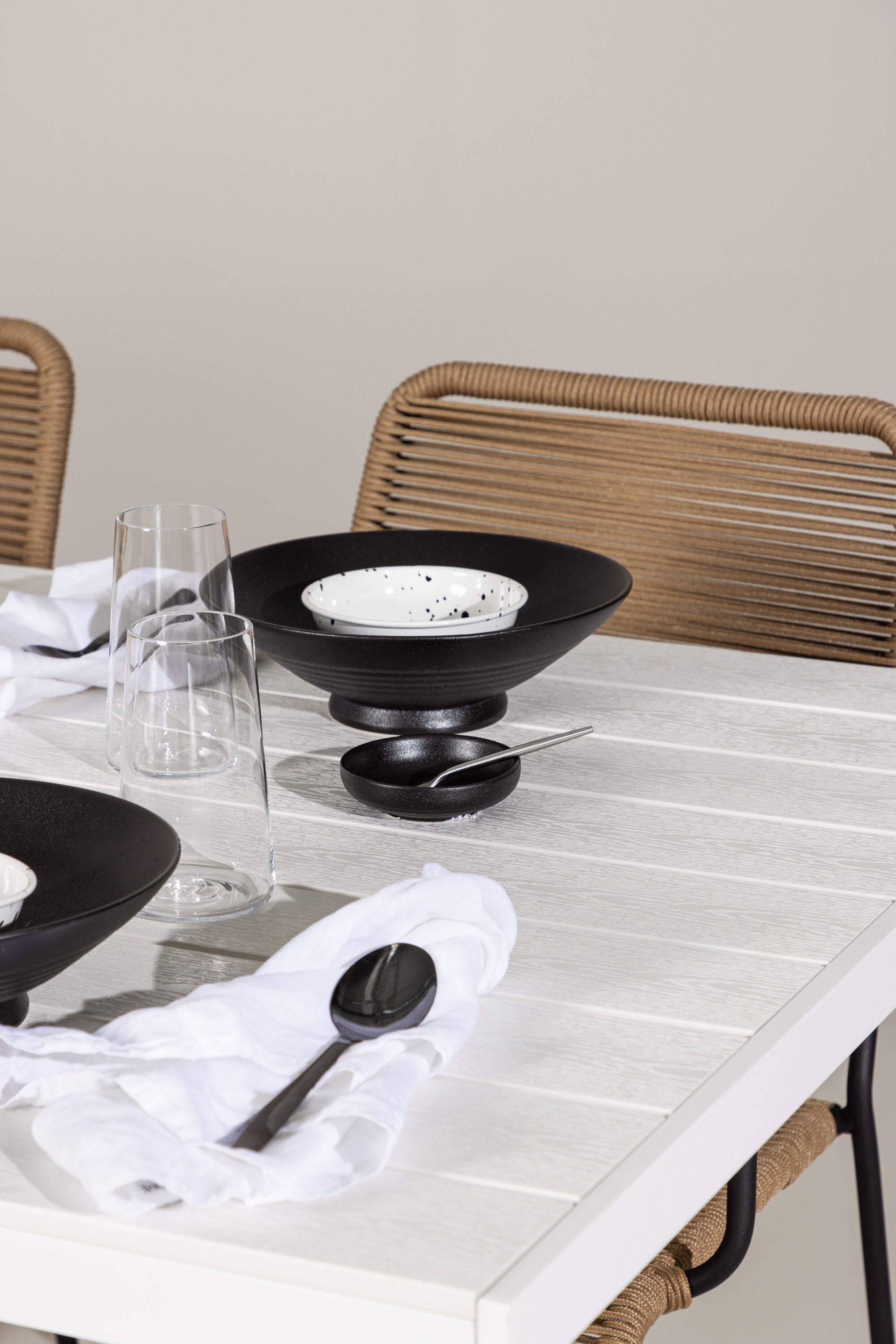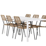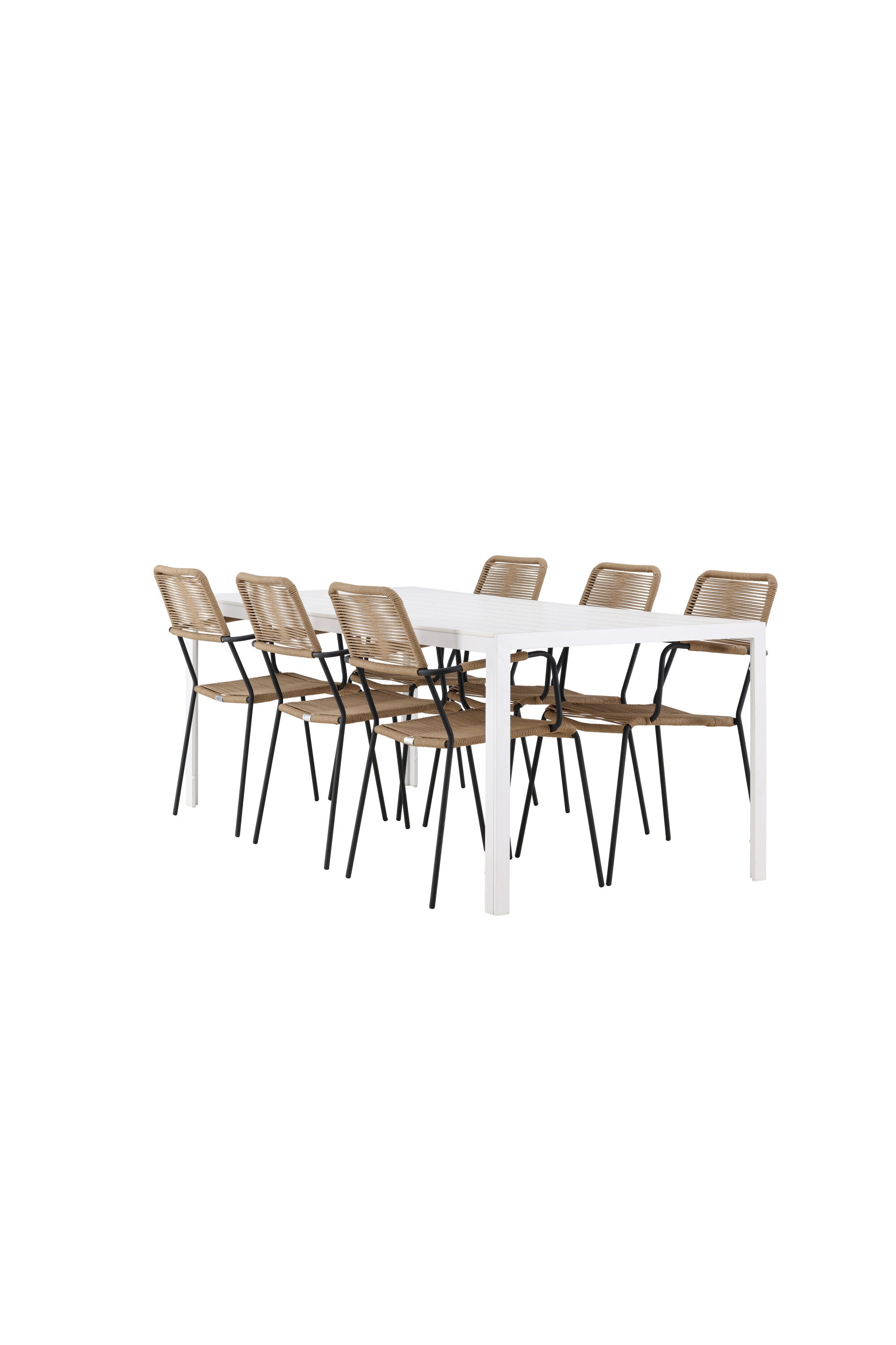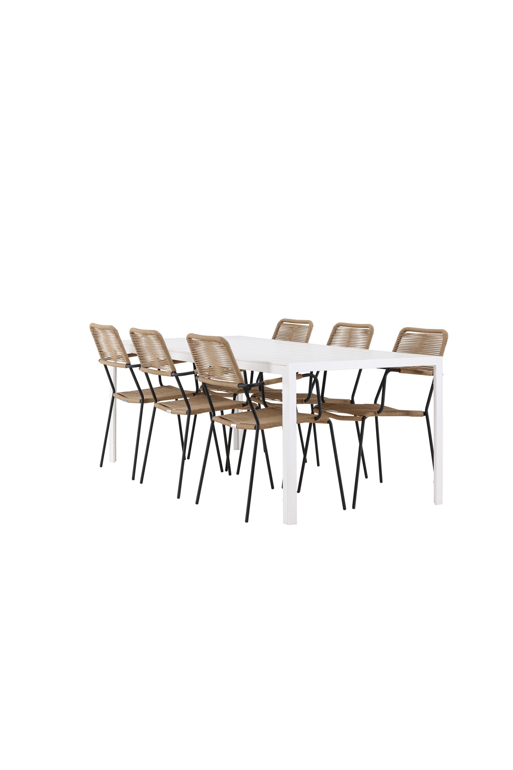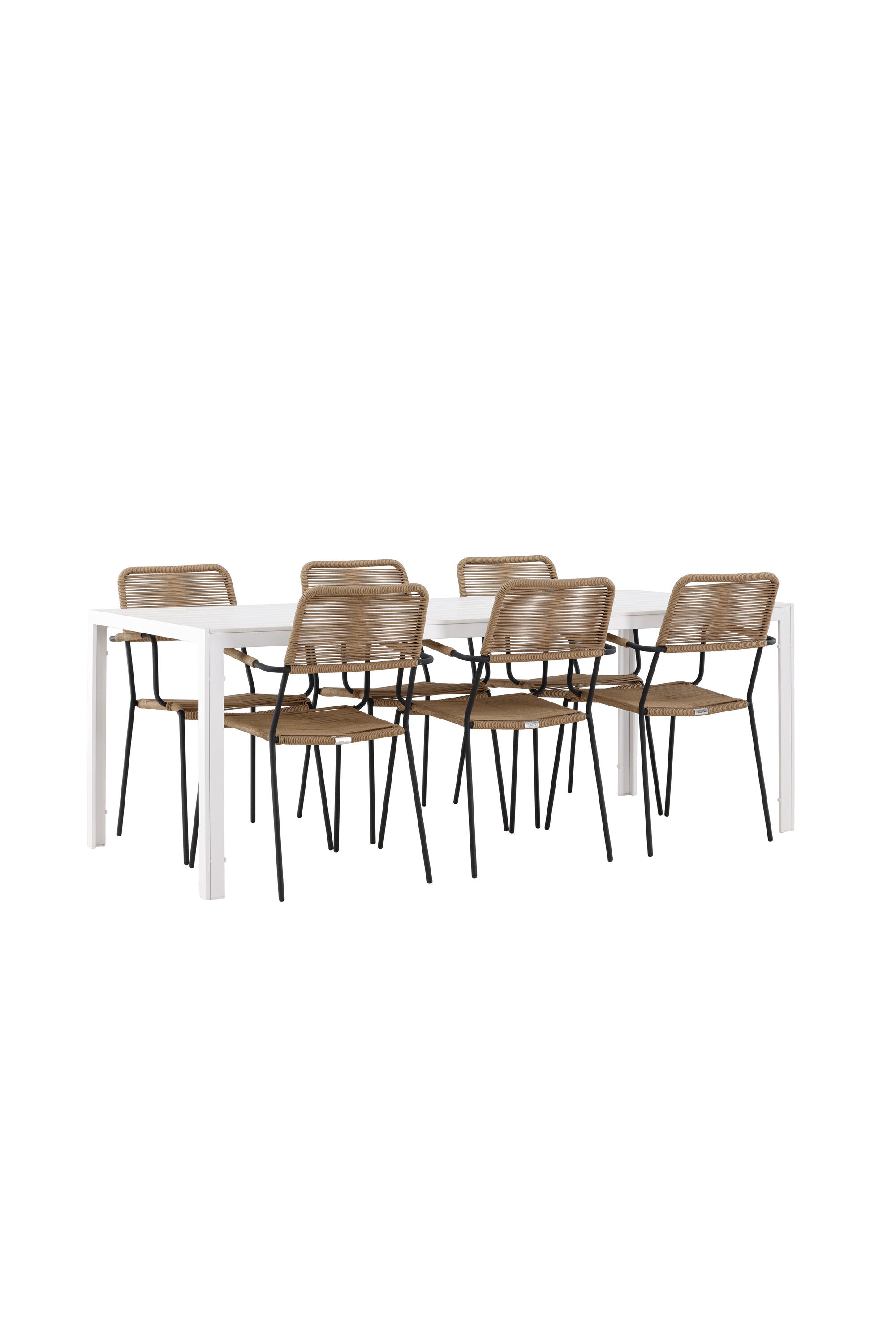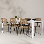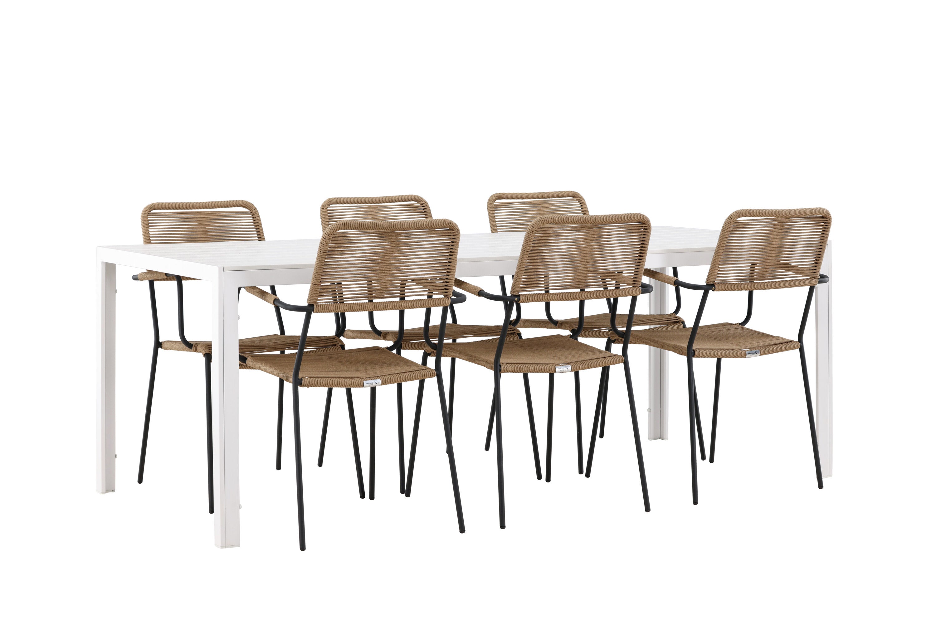 Židle Lindos se svými hnědými lanovými sedadly a černými ocelovými rámy nabízejí pohodlí i odolnost. Jejich přírodní vzhled dodá vašemu venkovnímu prostoru rustikální nádech.