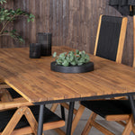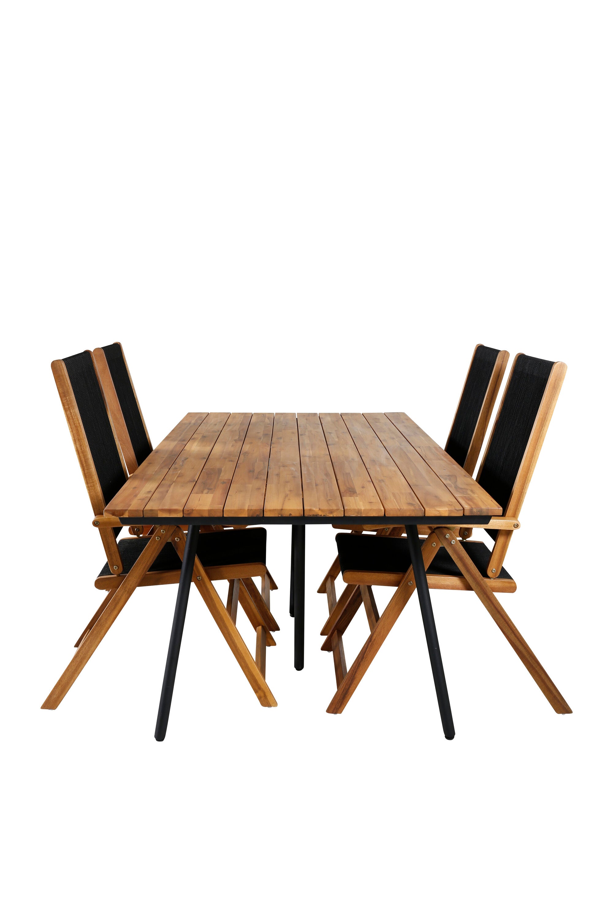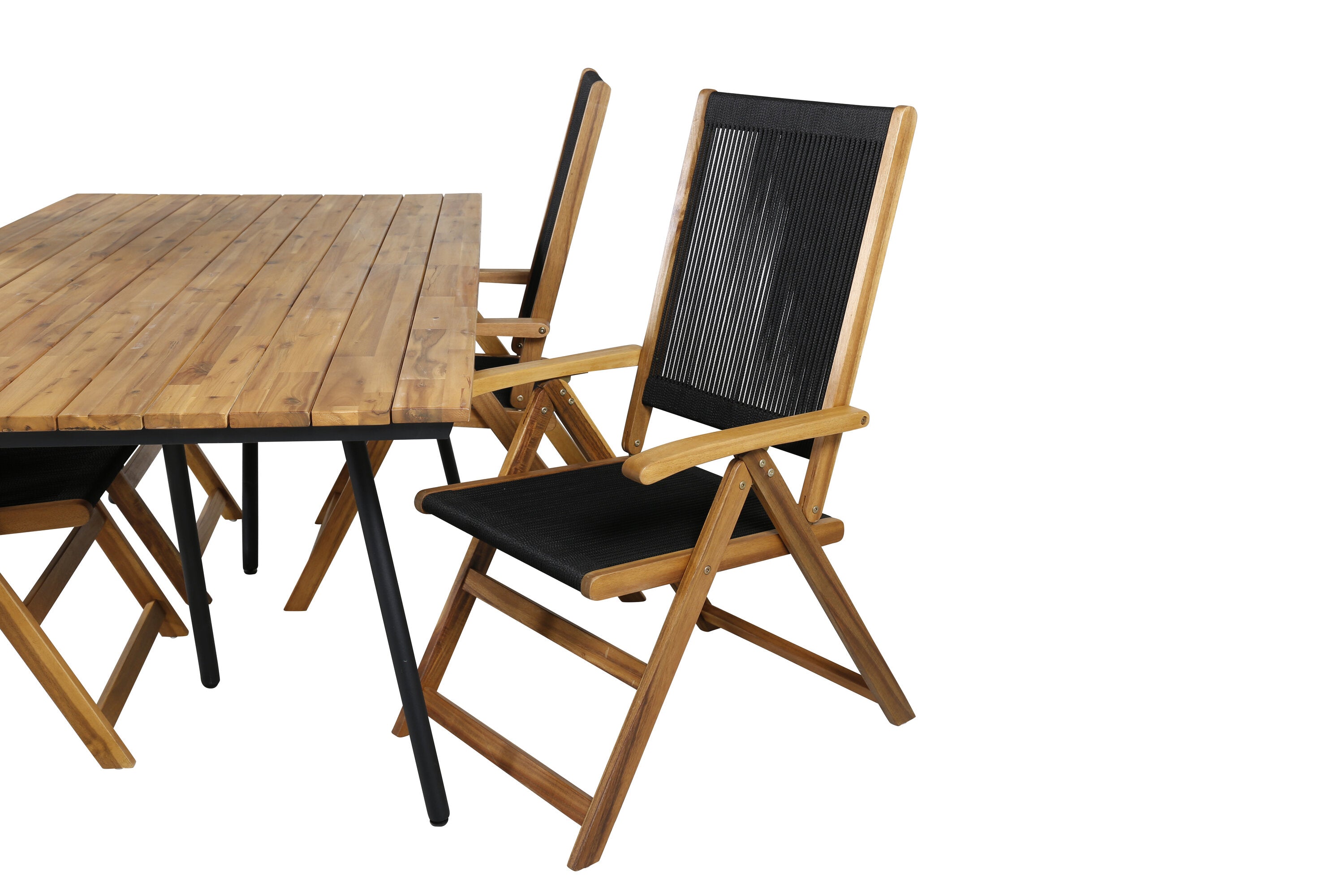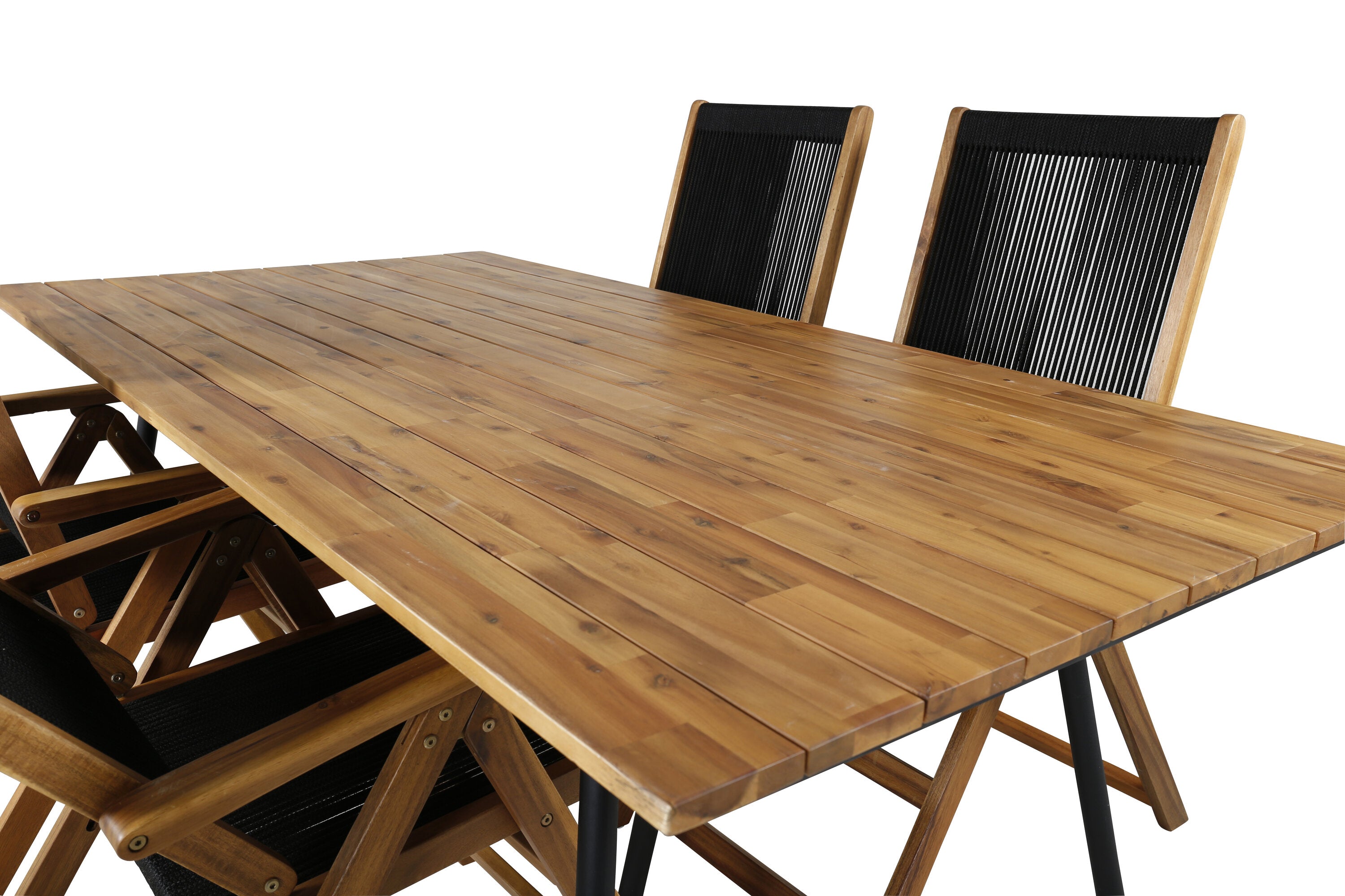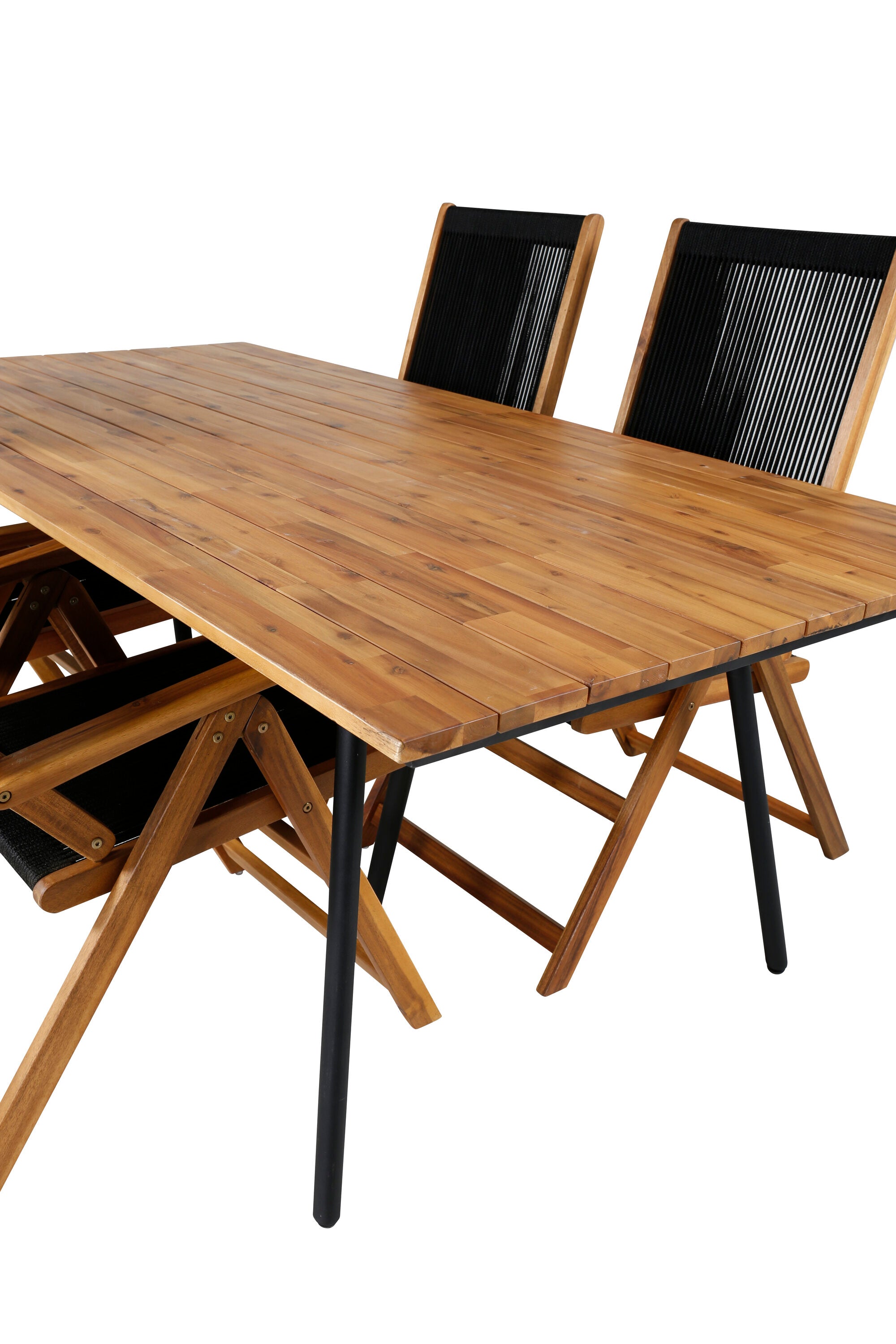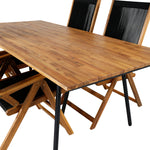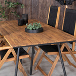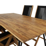 Jídelní stůl Chan - černá ocel / akácie (týkový vzhled) - 200 cm + skládací židle Little John - lano / akácie_4