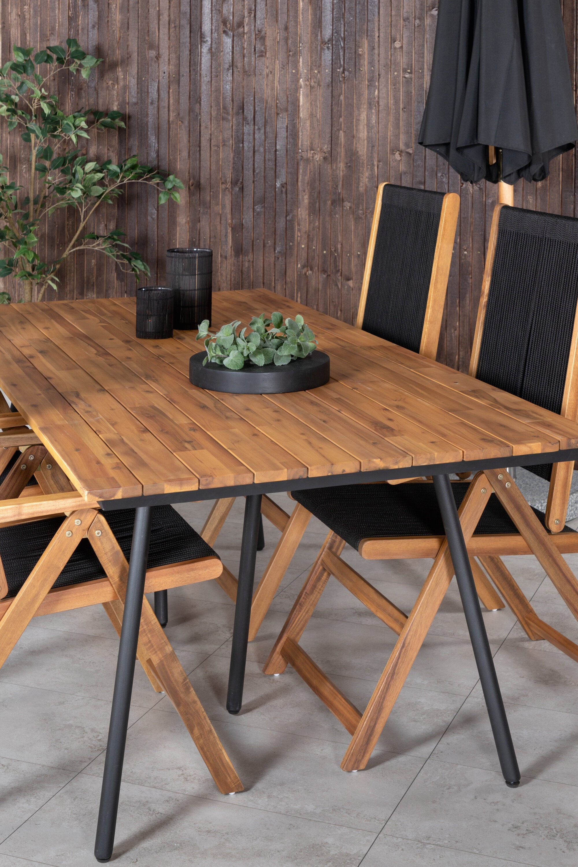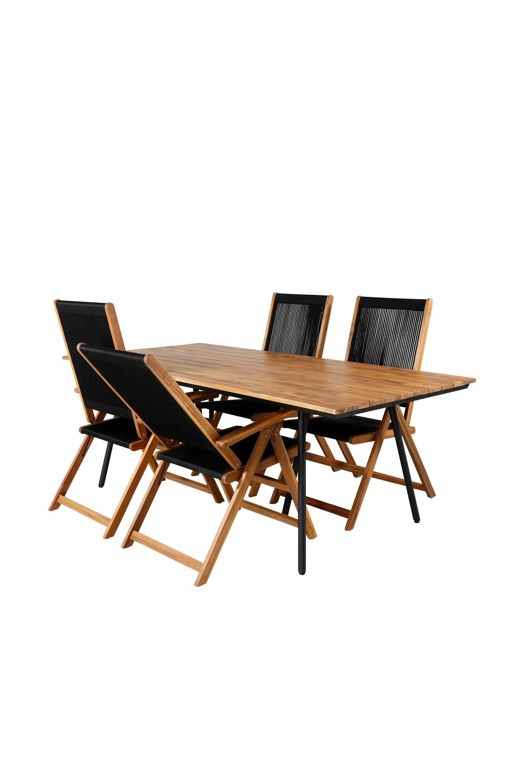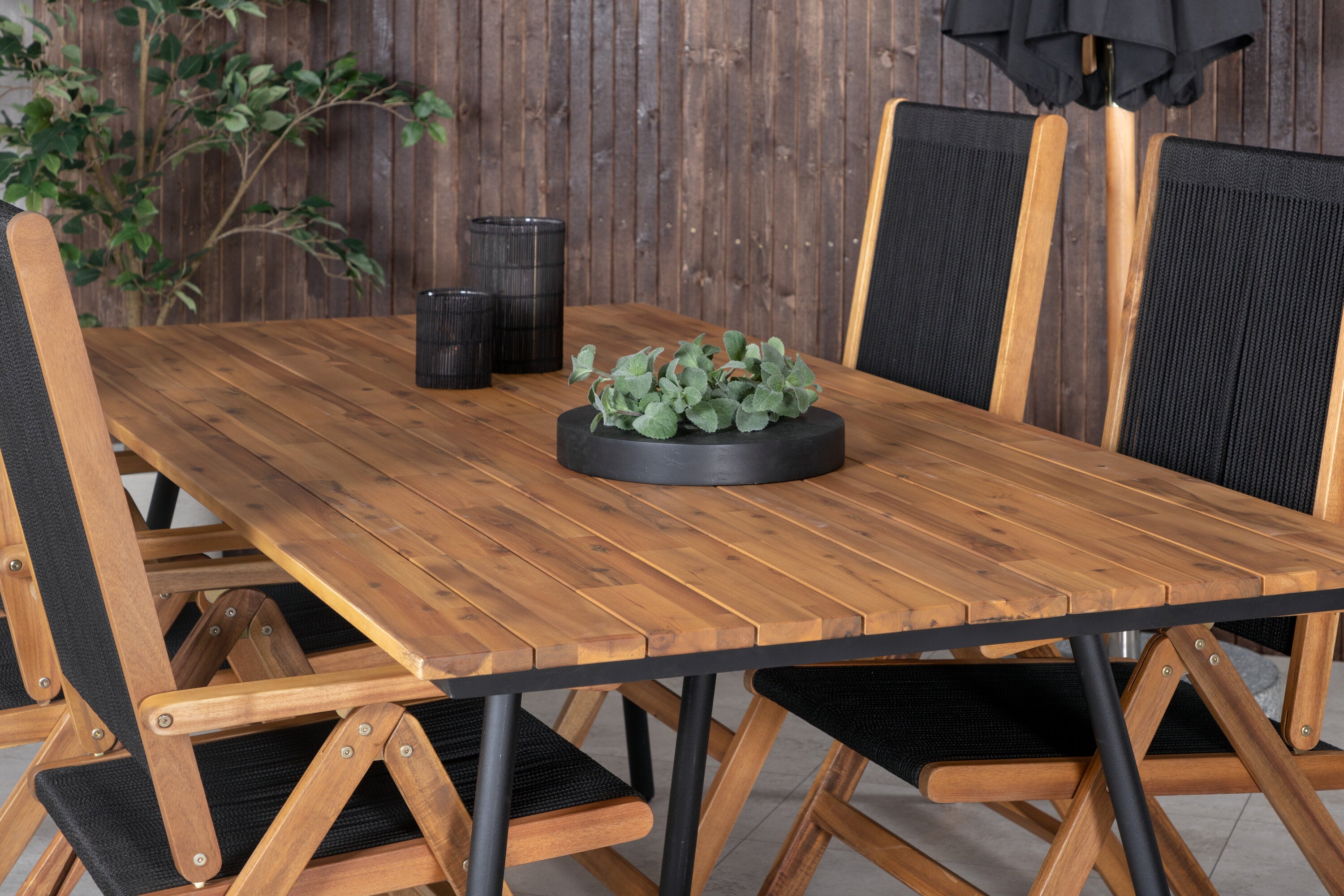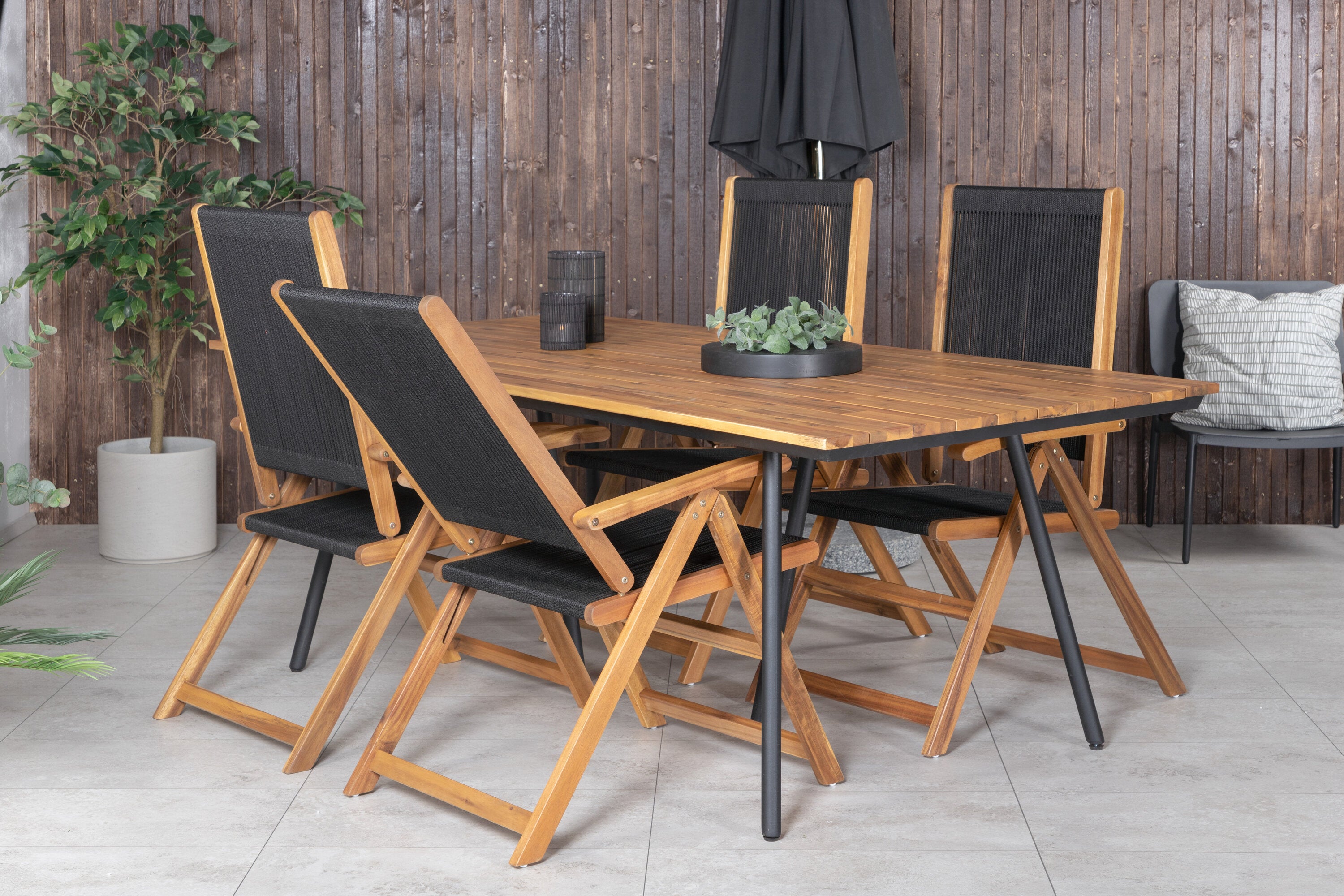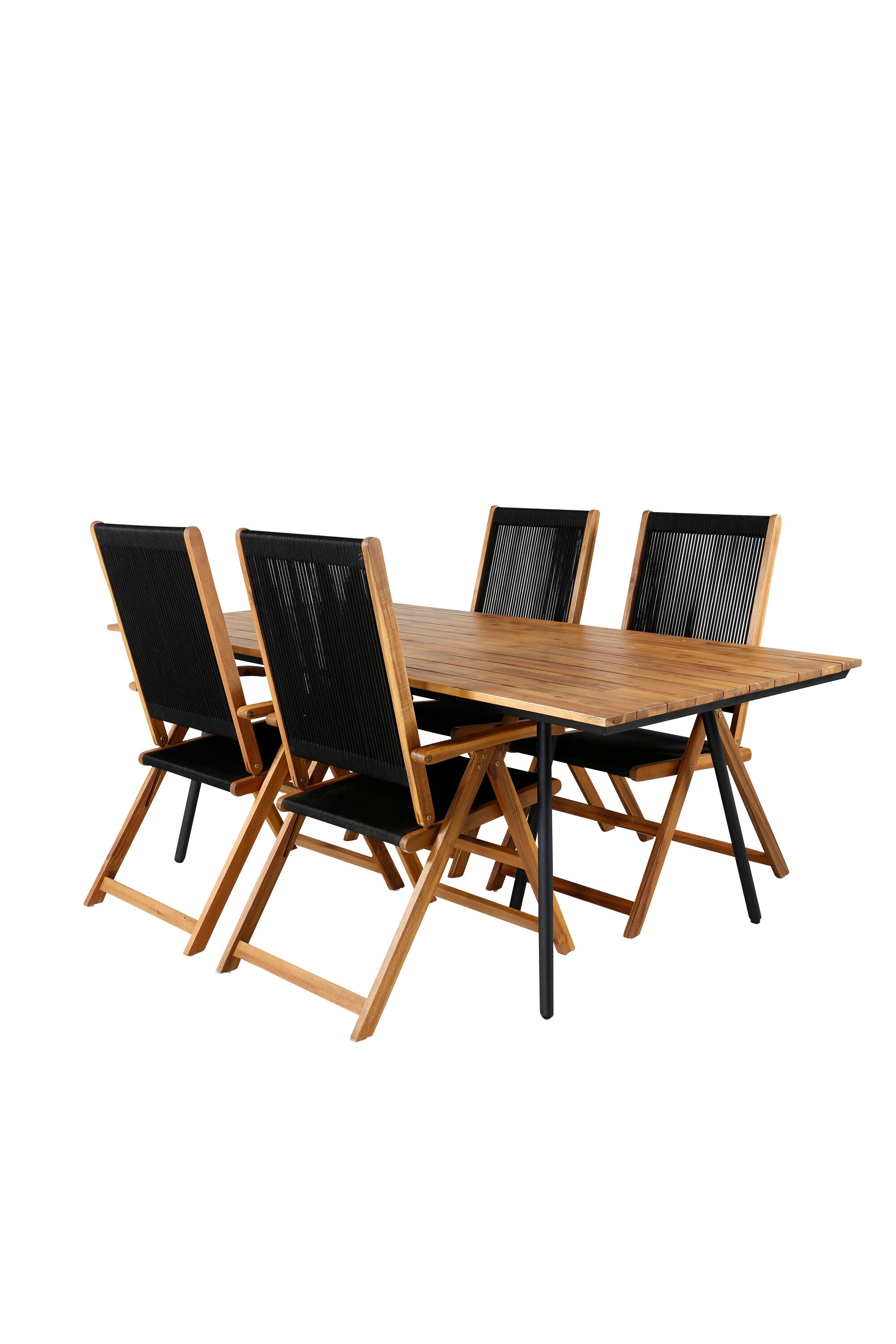 Jídelní stůl Chan - černá ocel / akácie (týkový vzhled) - 200 cm + skládací židle Little John - lano / akácie_4