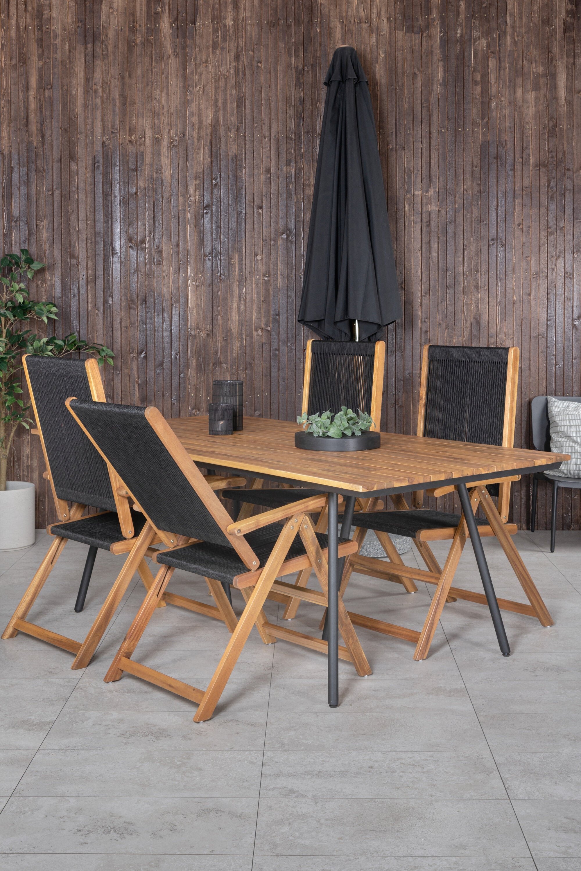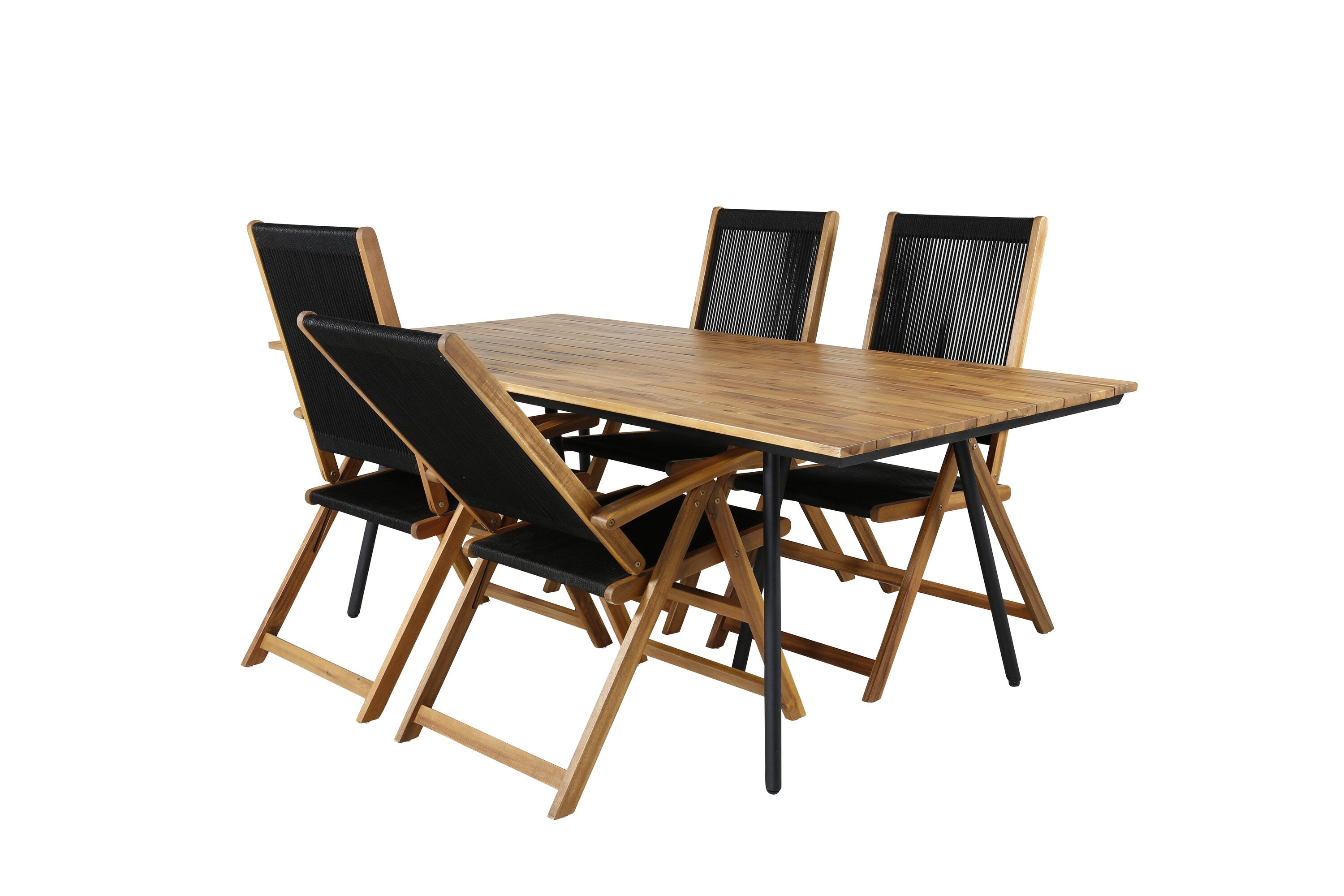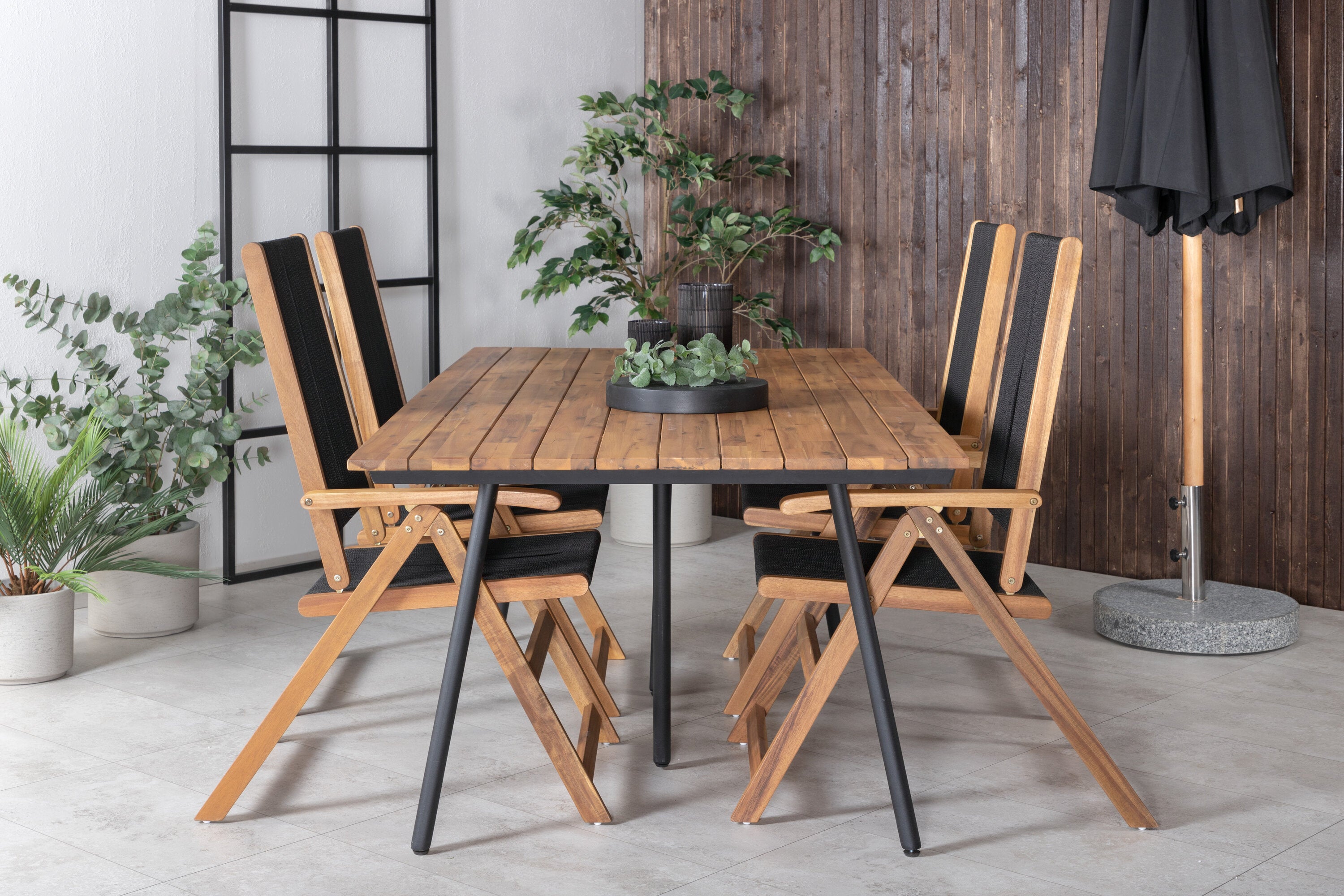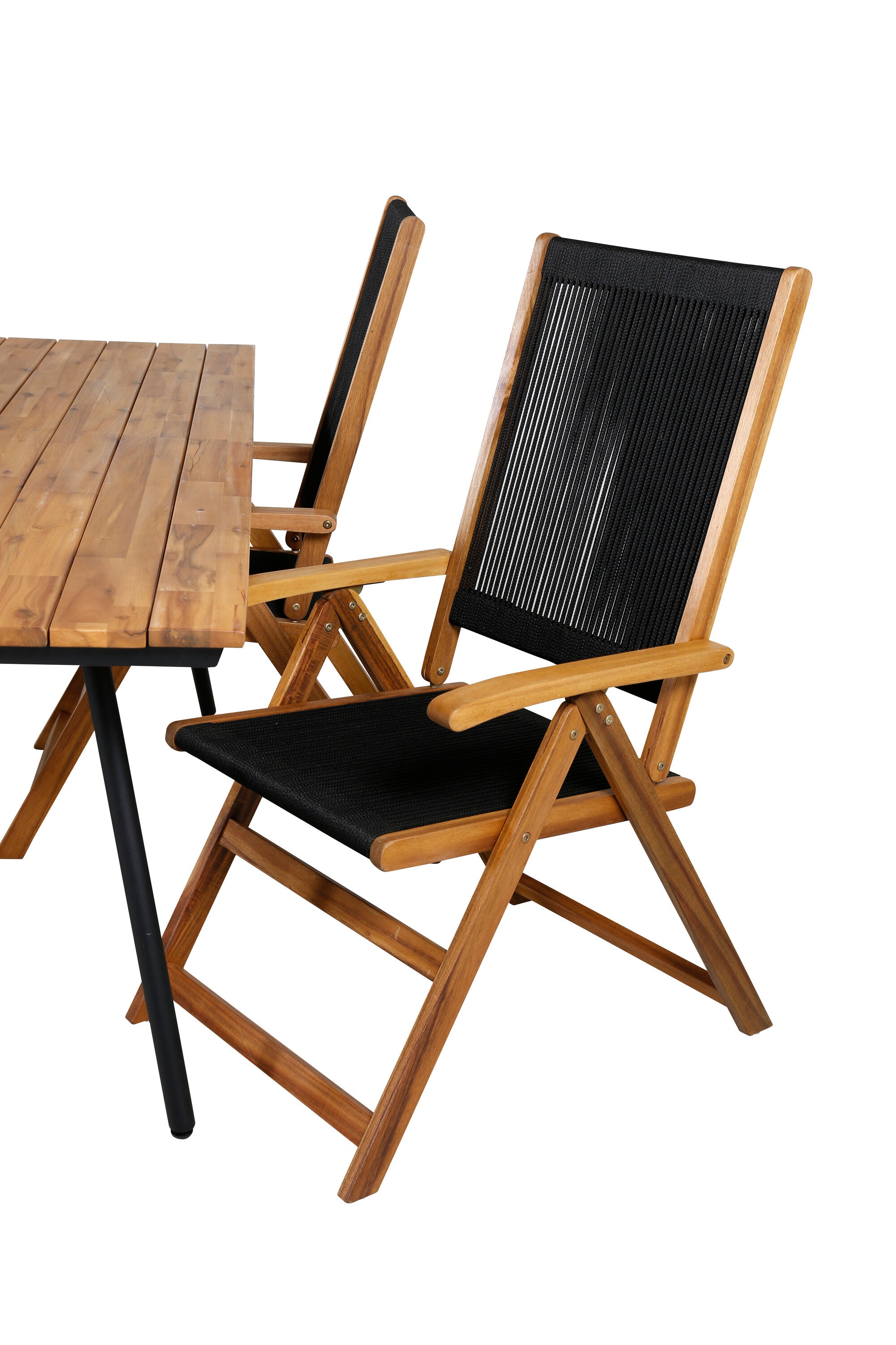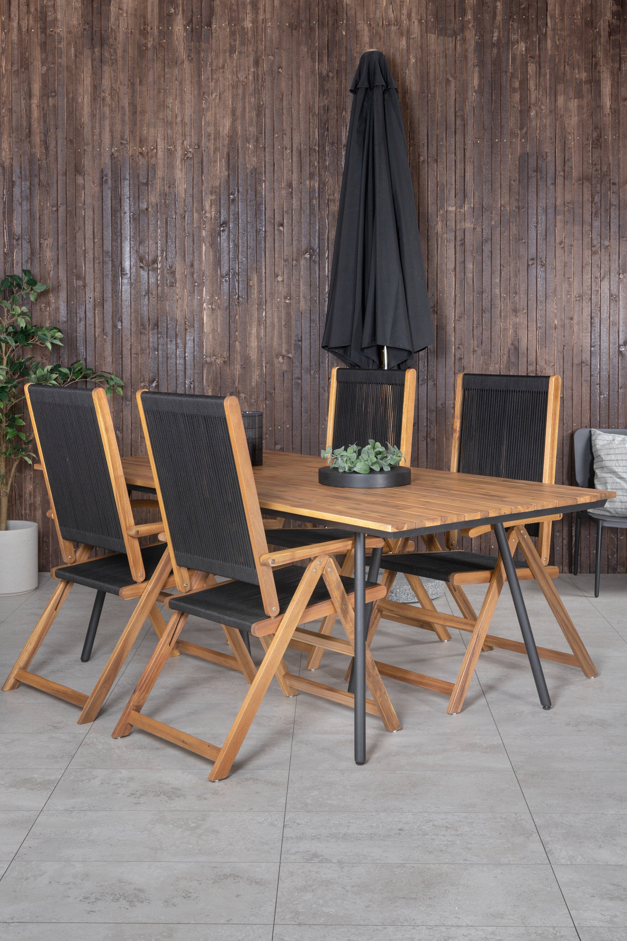 Jídelní stůl Chan - černá ocel / akácie (týkový vzhled) - 200 cm + skládací židle Little John - lano / akácie_4