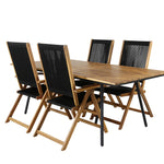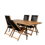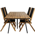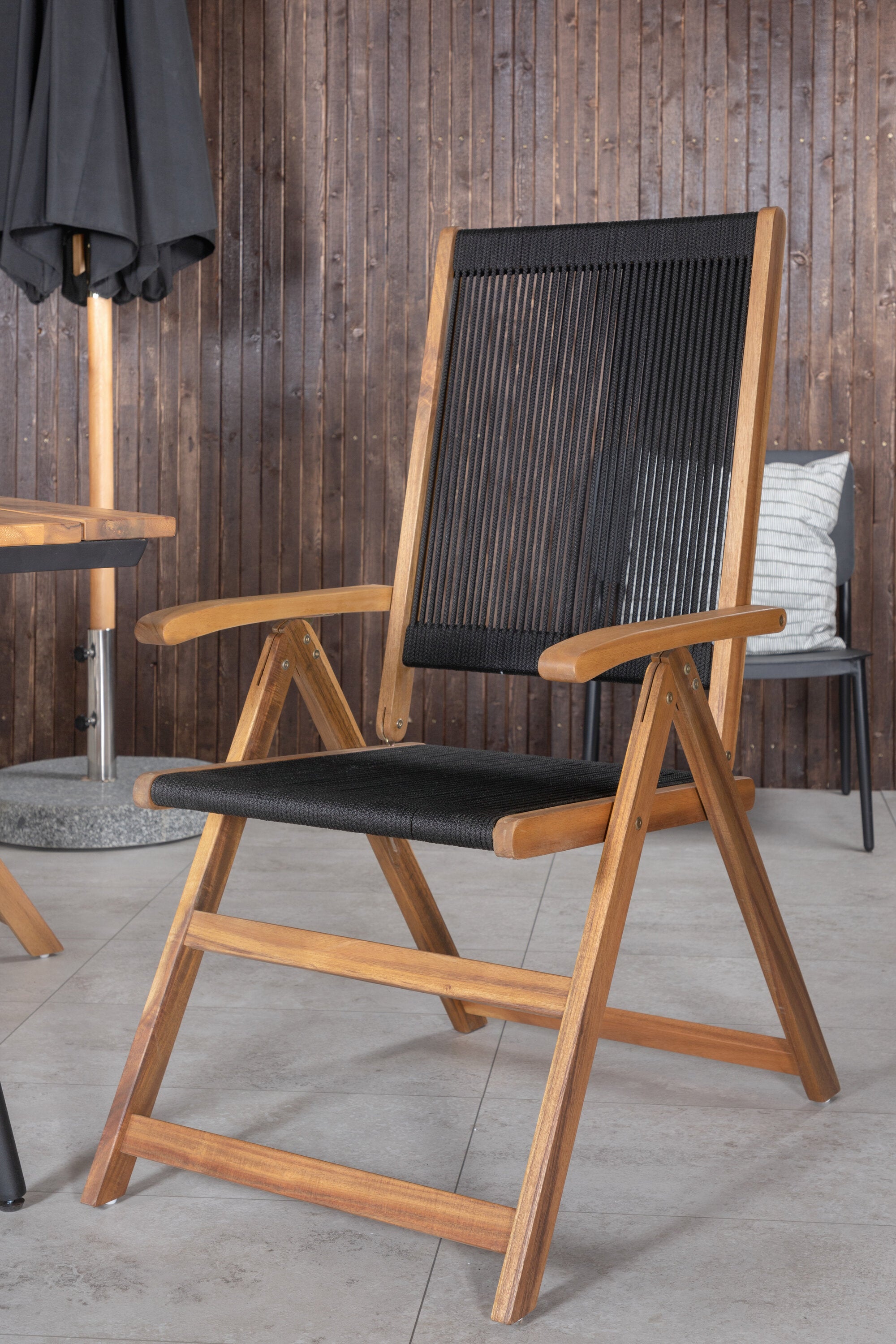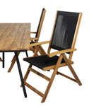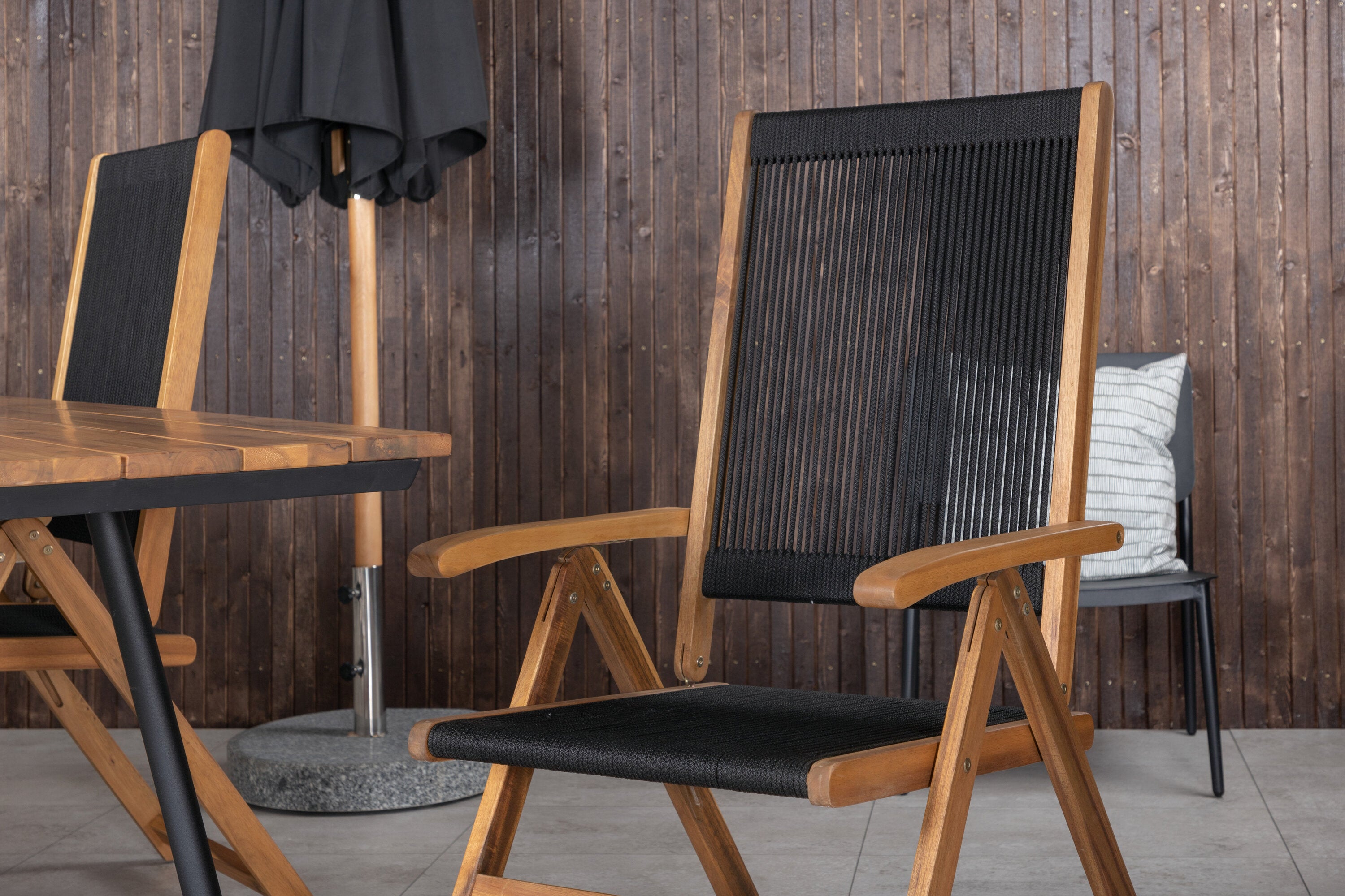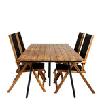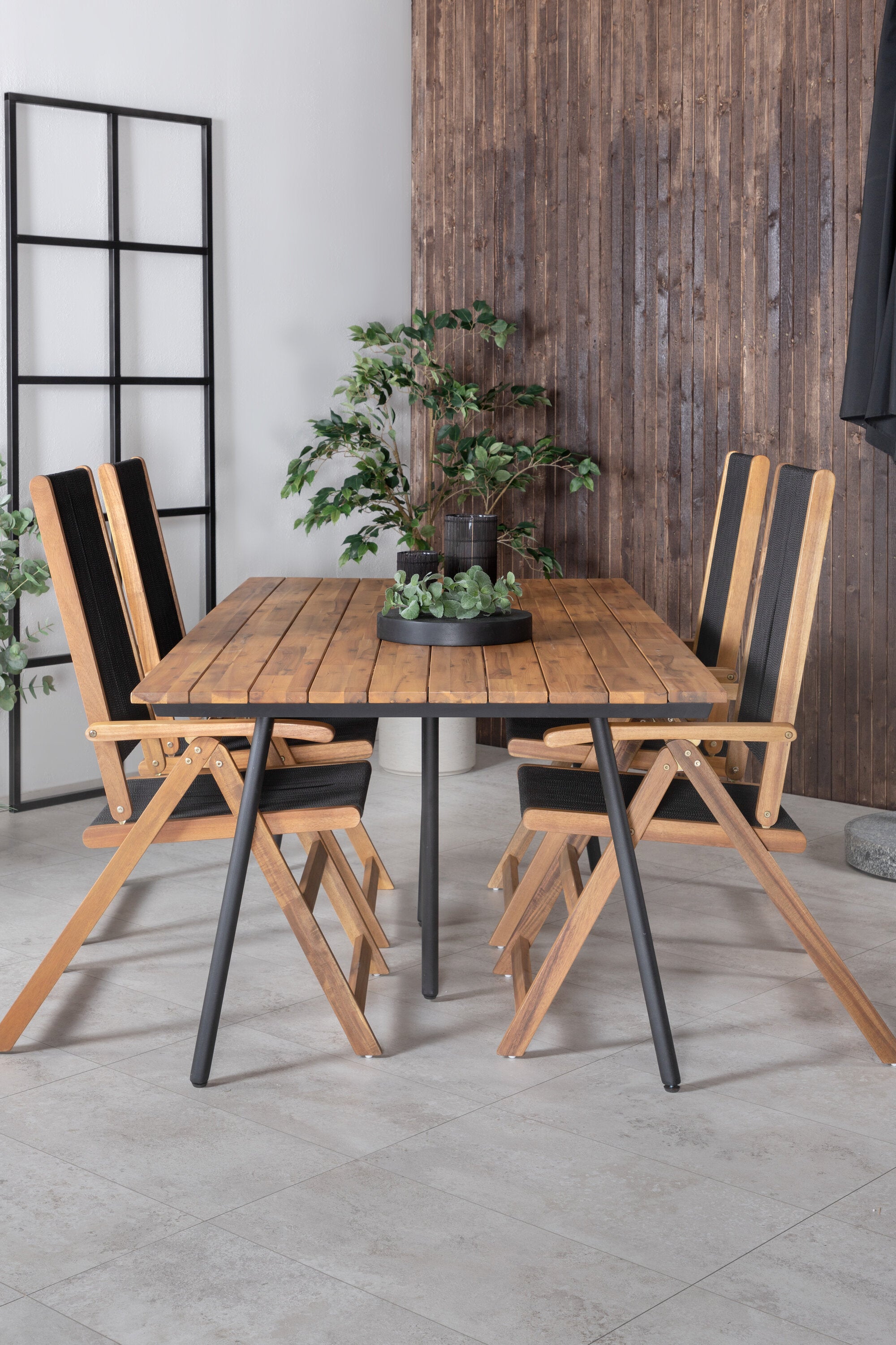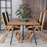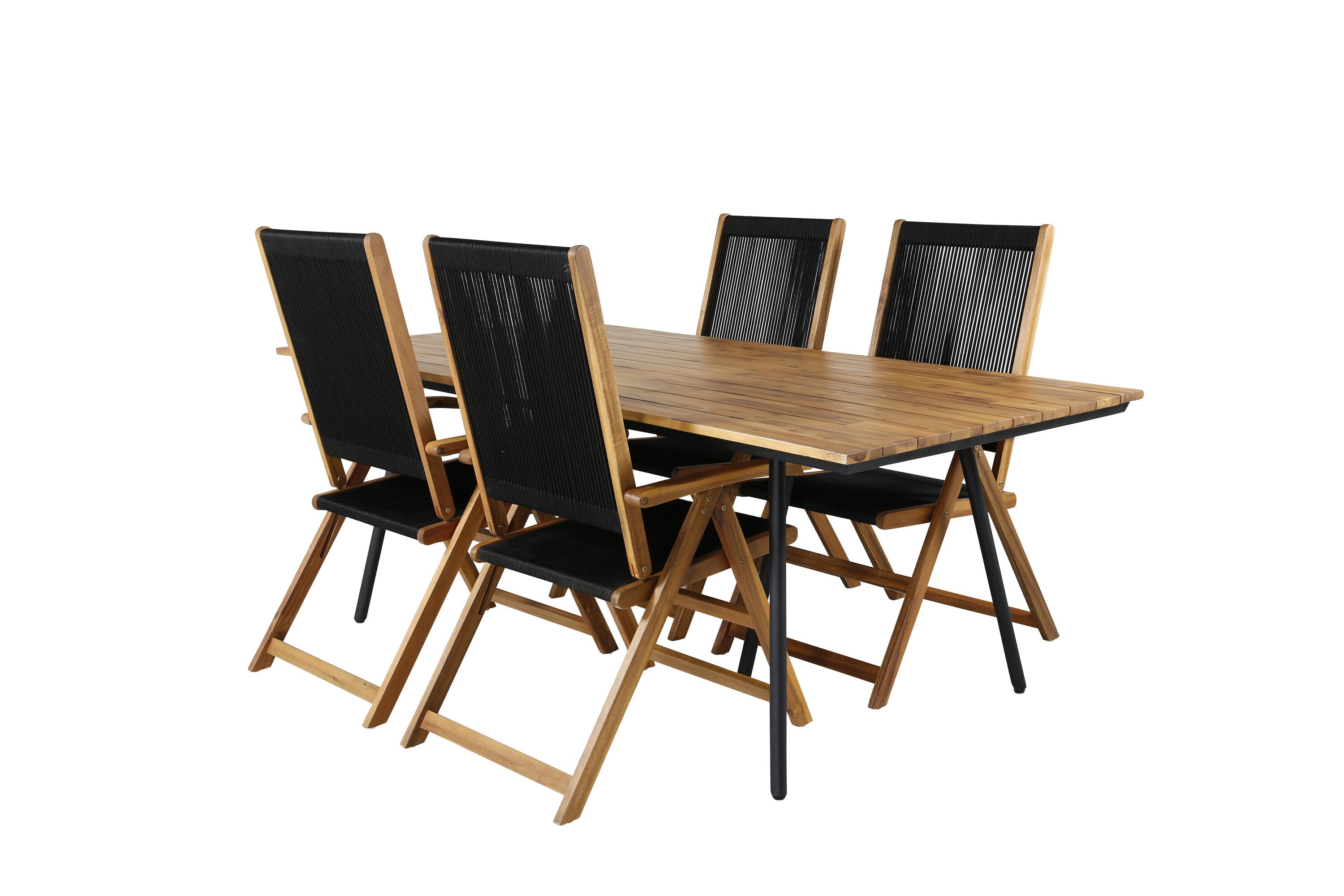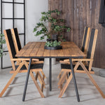 Jídelní stůl Chan - černá ocel / akácie (týkový vzhled) - 200 cm + skládací židle Little John - lano / akácie_4