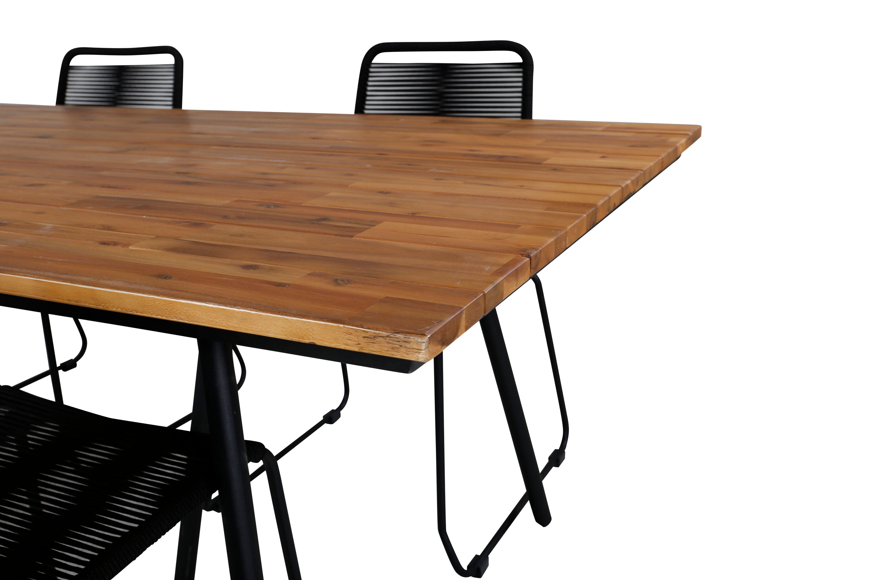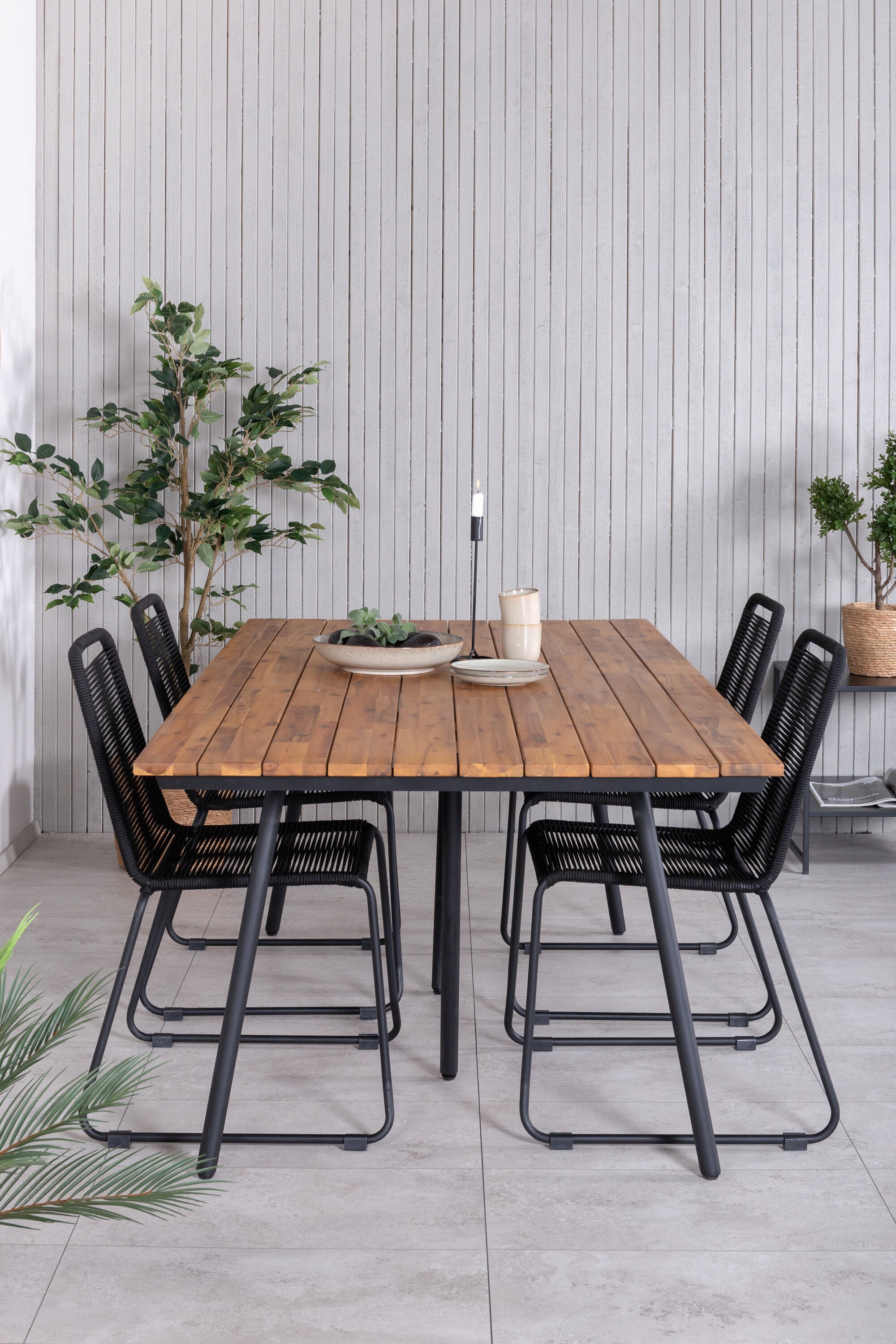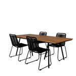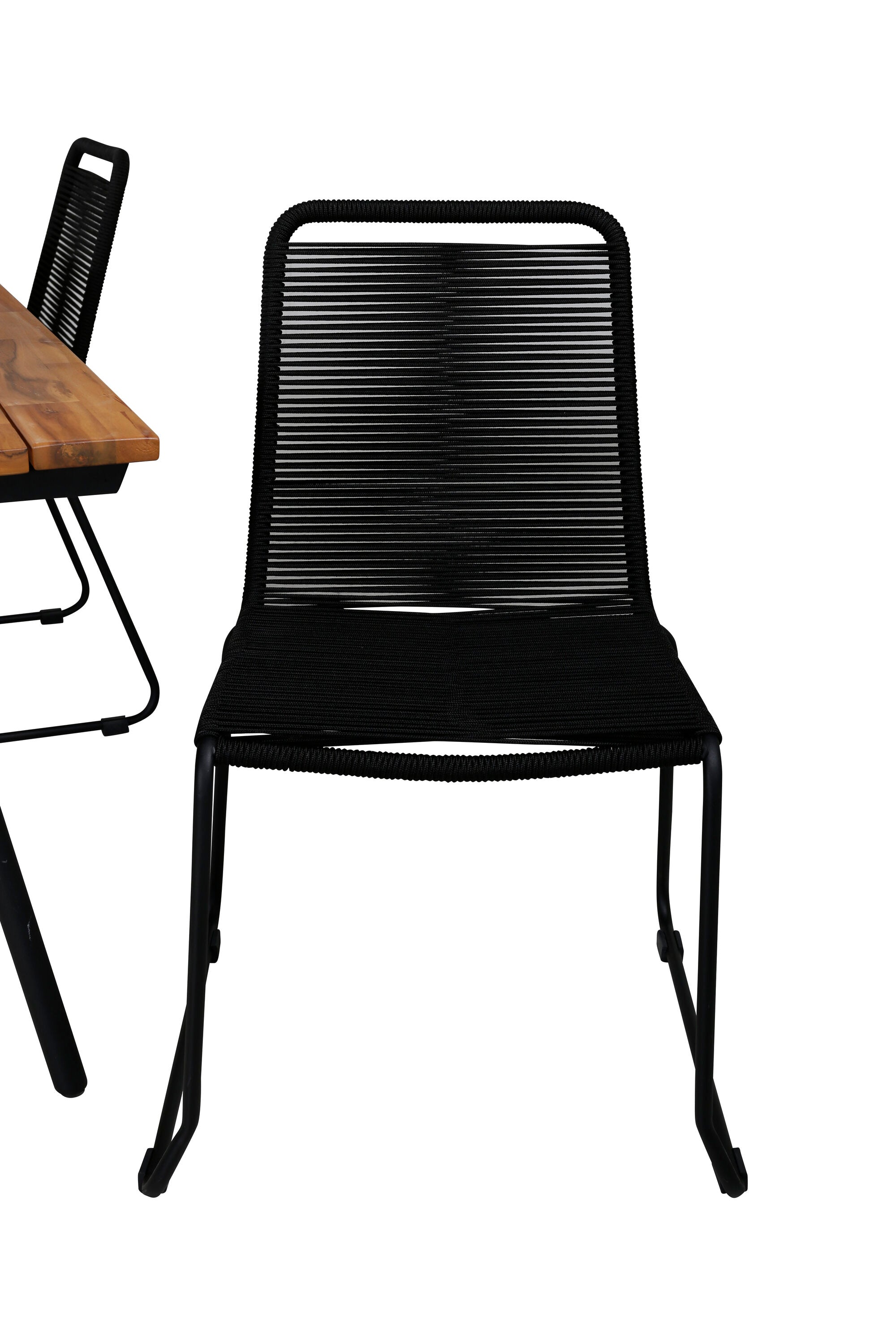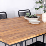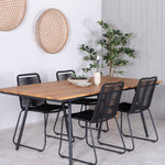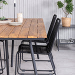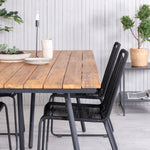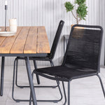 Jídelní stůl Chan - černá ocel / akácie (týkový vzhled) - 200 cm + stohovací židle Lindos - černá Alu / černé lano_4
