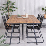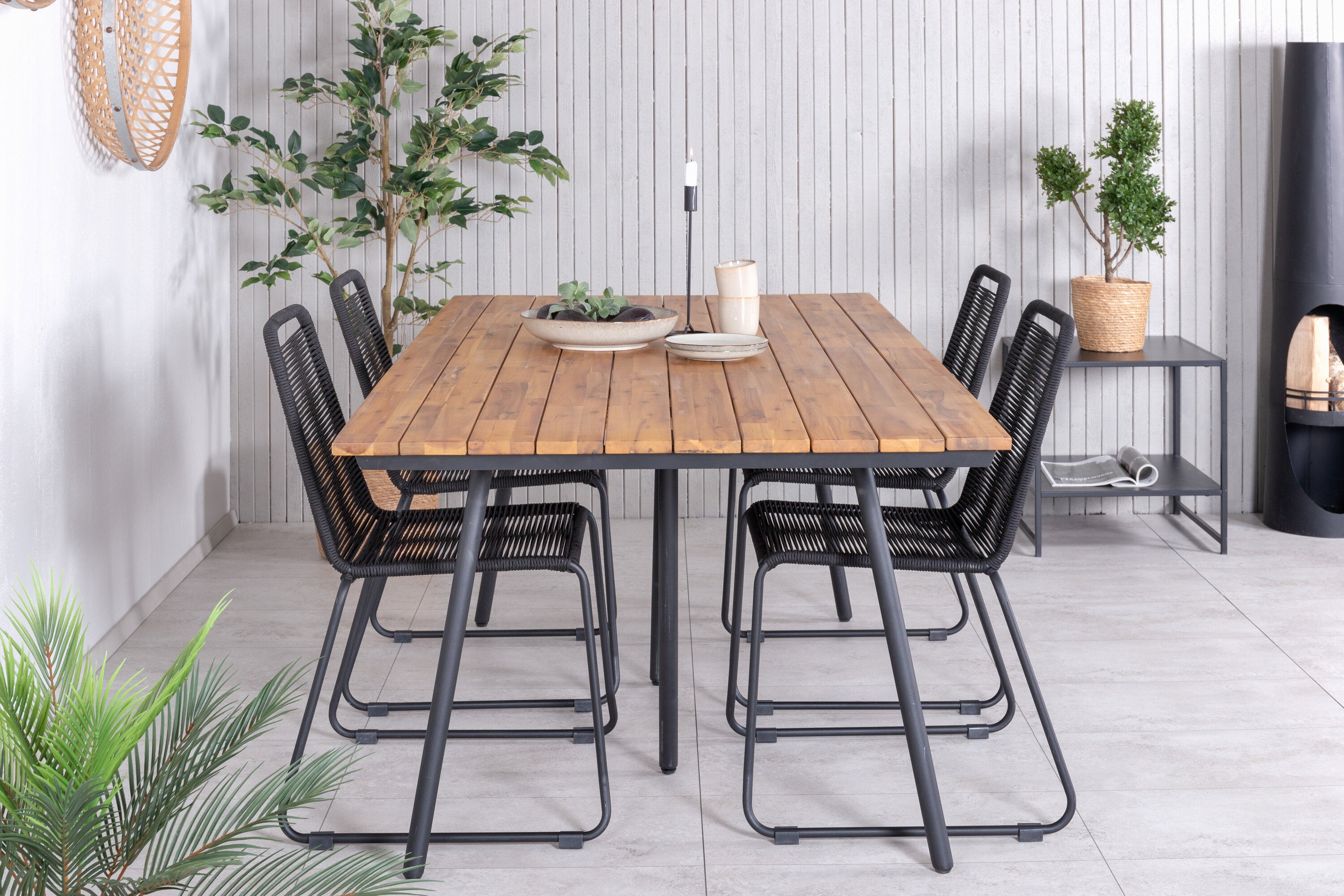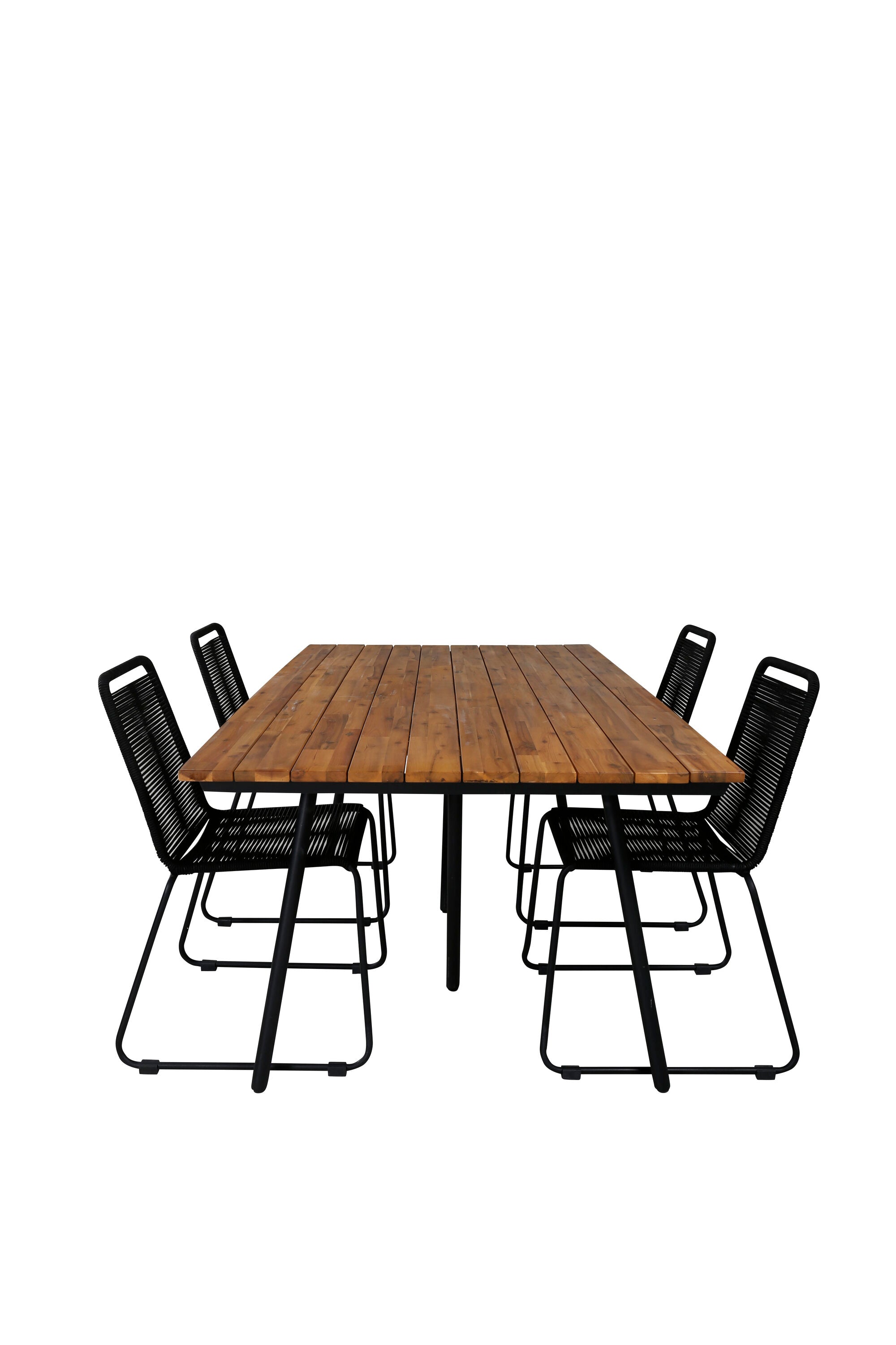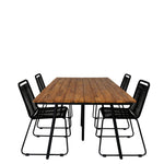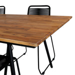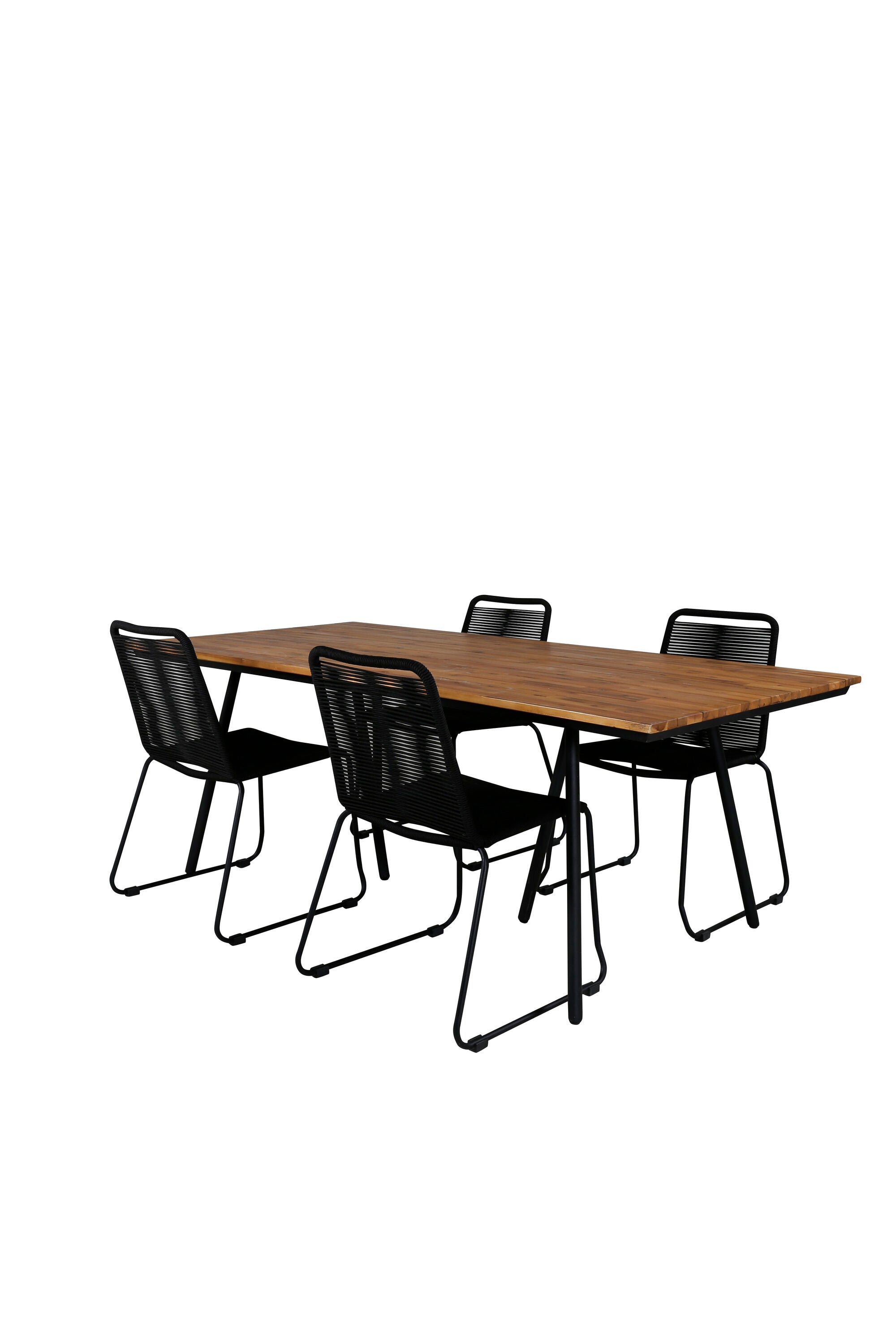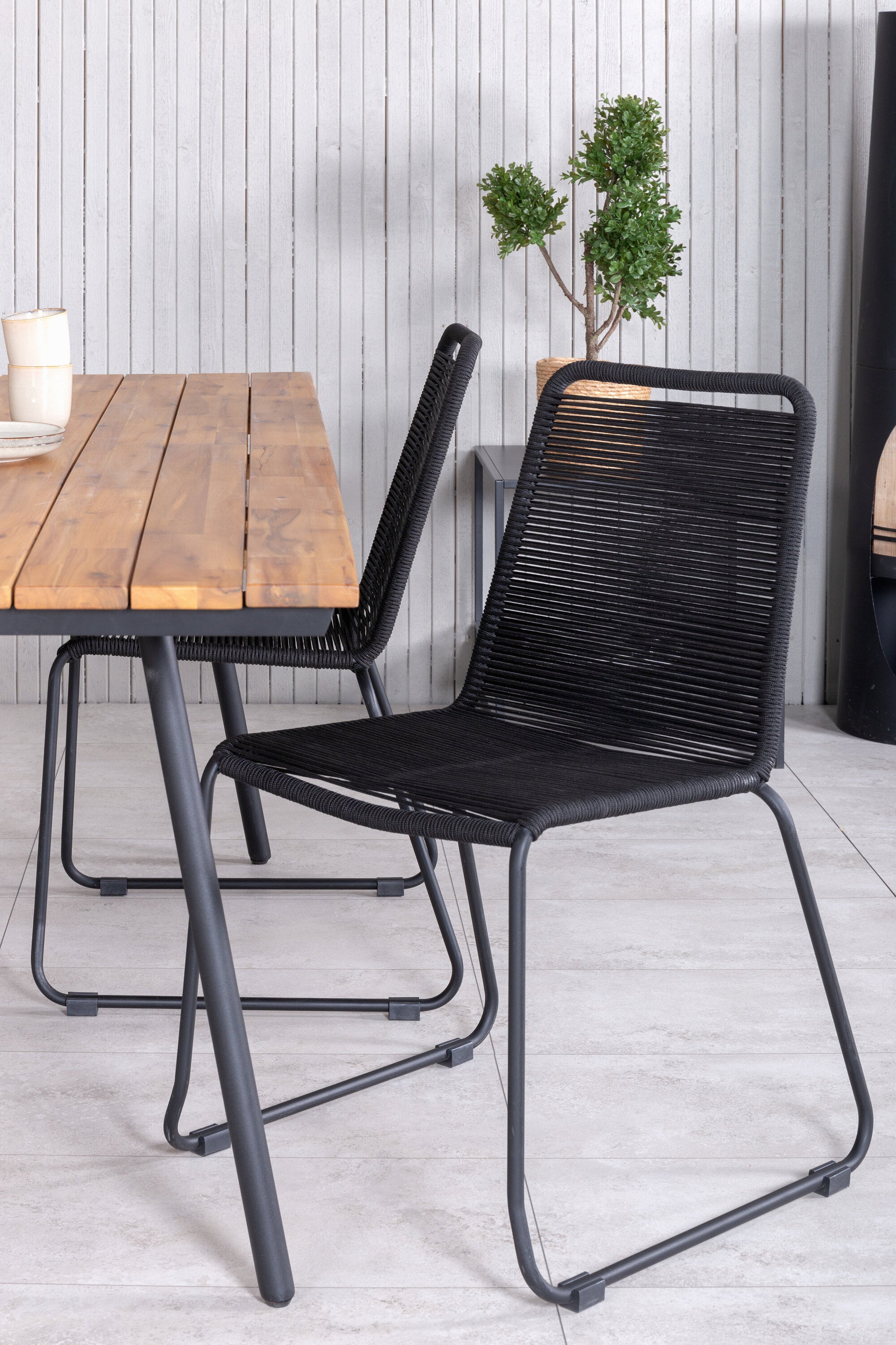 Jídelní stůl Chan - černá ocel / akácie (týkový vzhled) - 200 cm + stohovací židle Lindos - černá Alu / černé lano_4