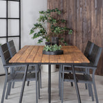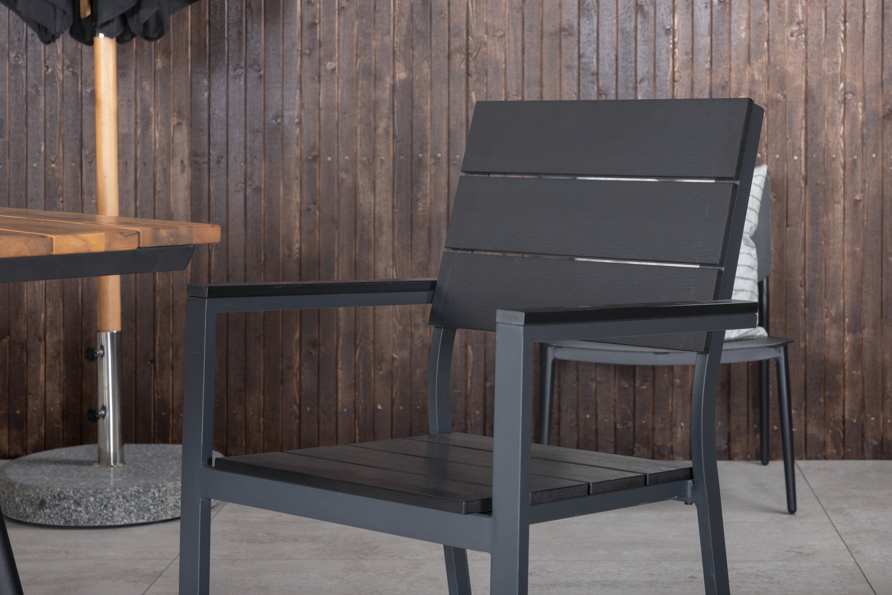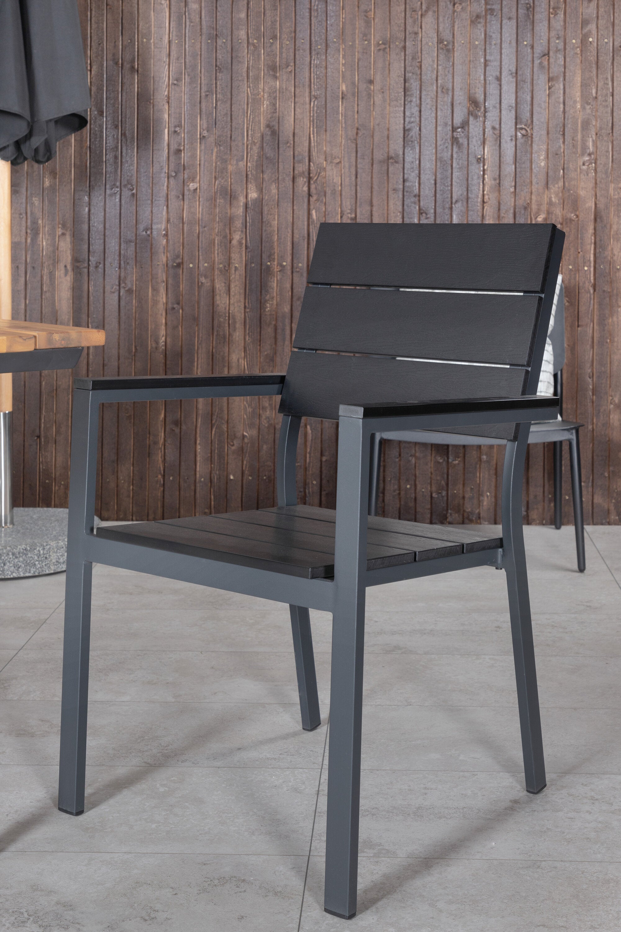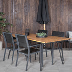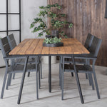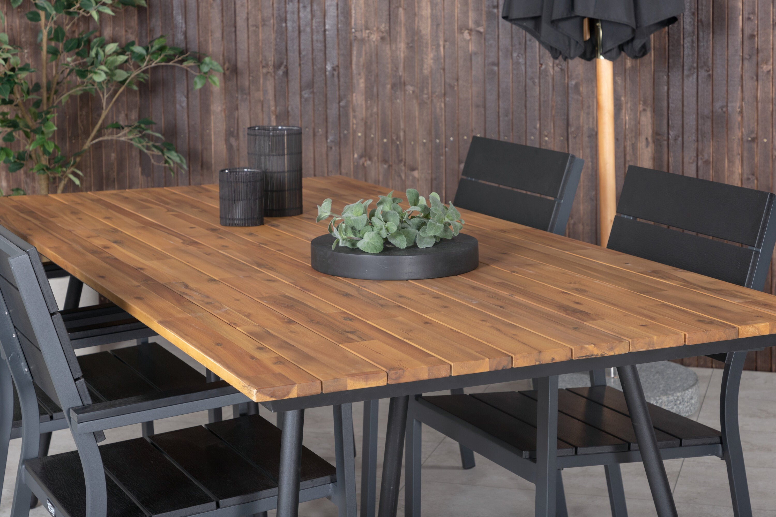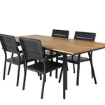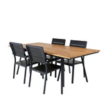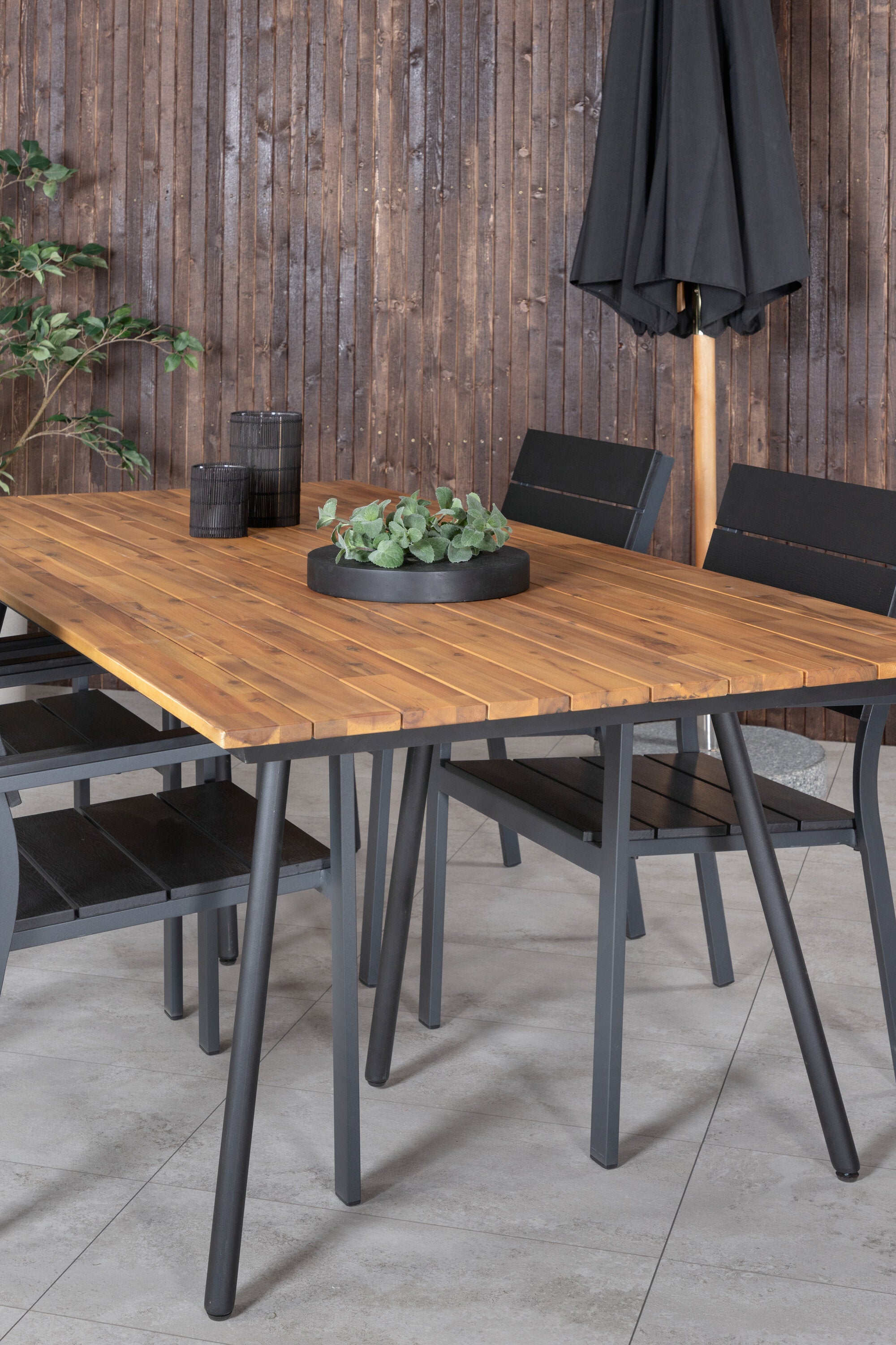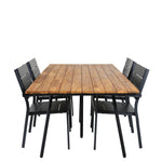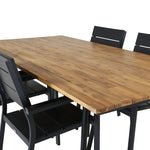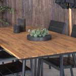 Jídelní stůl Chan - černá ocel / akácie (vzhled týkového dřeva) - 200 cm + židle (stohovatelné) - černá hliníková / černá Aintwood_4