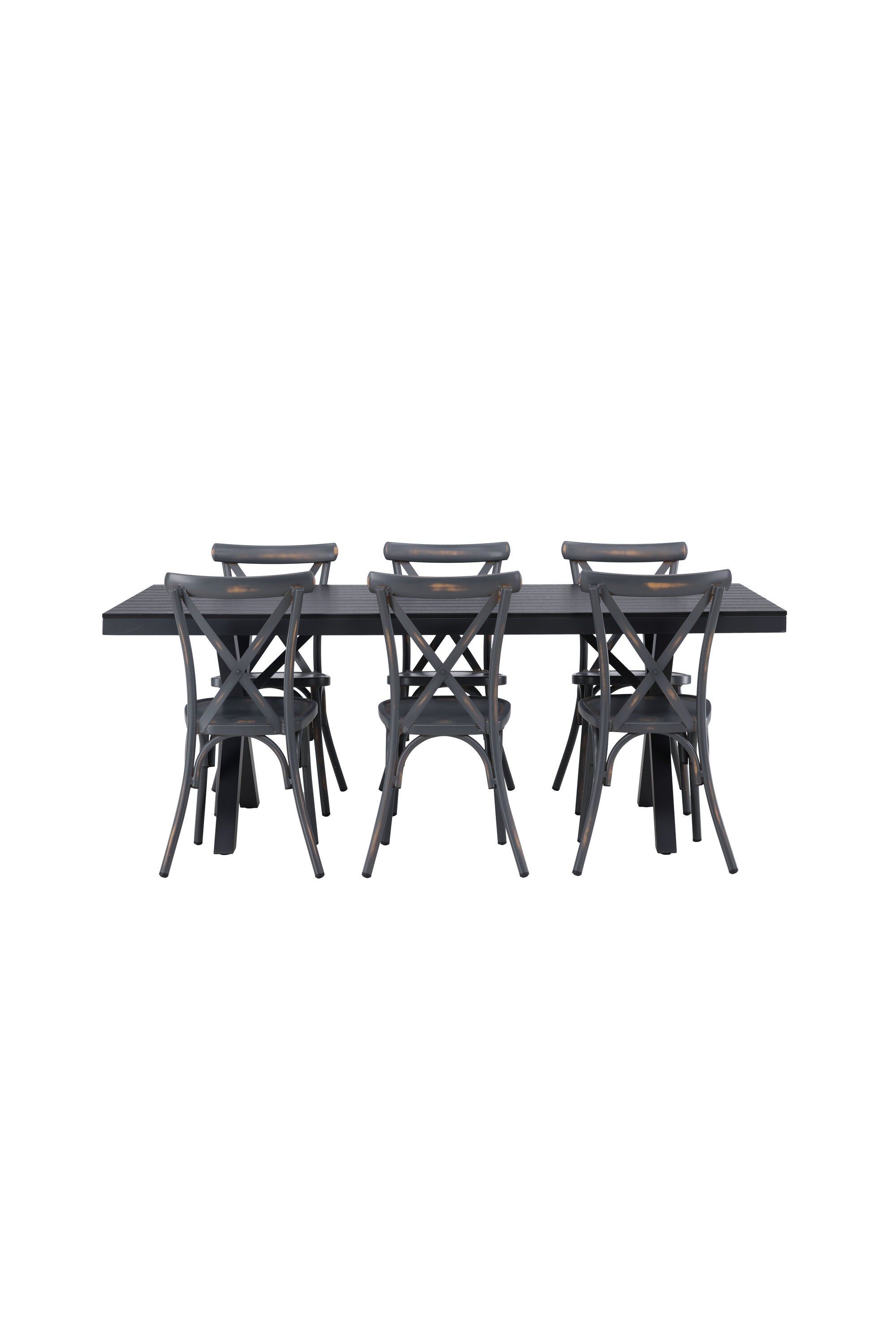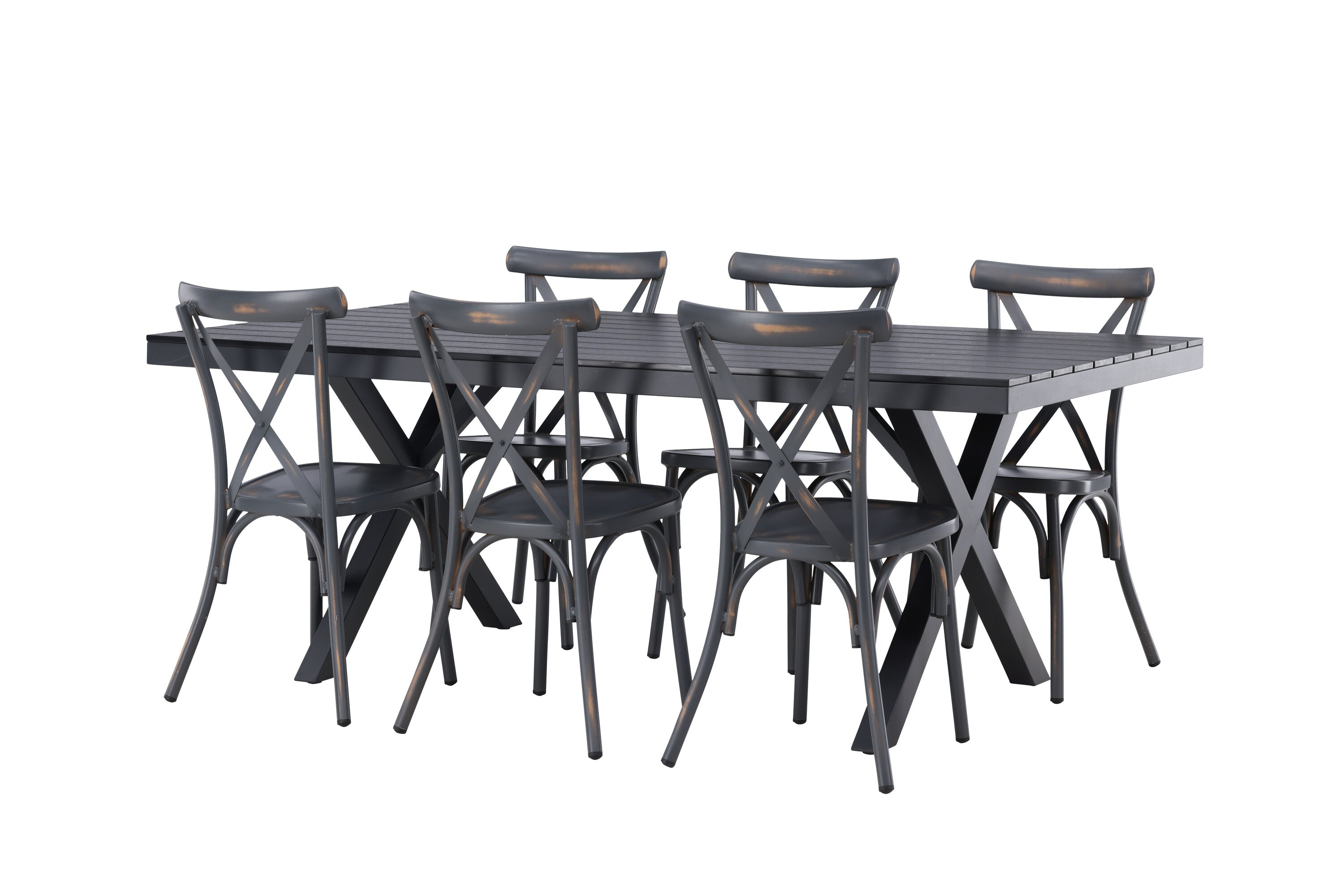 Jídelní stůl Garcia Alumnium – černý / obdélníkový 100*200* + hliníková jídelní židle Tablas – černá / _6