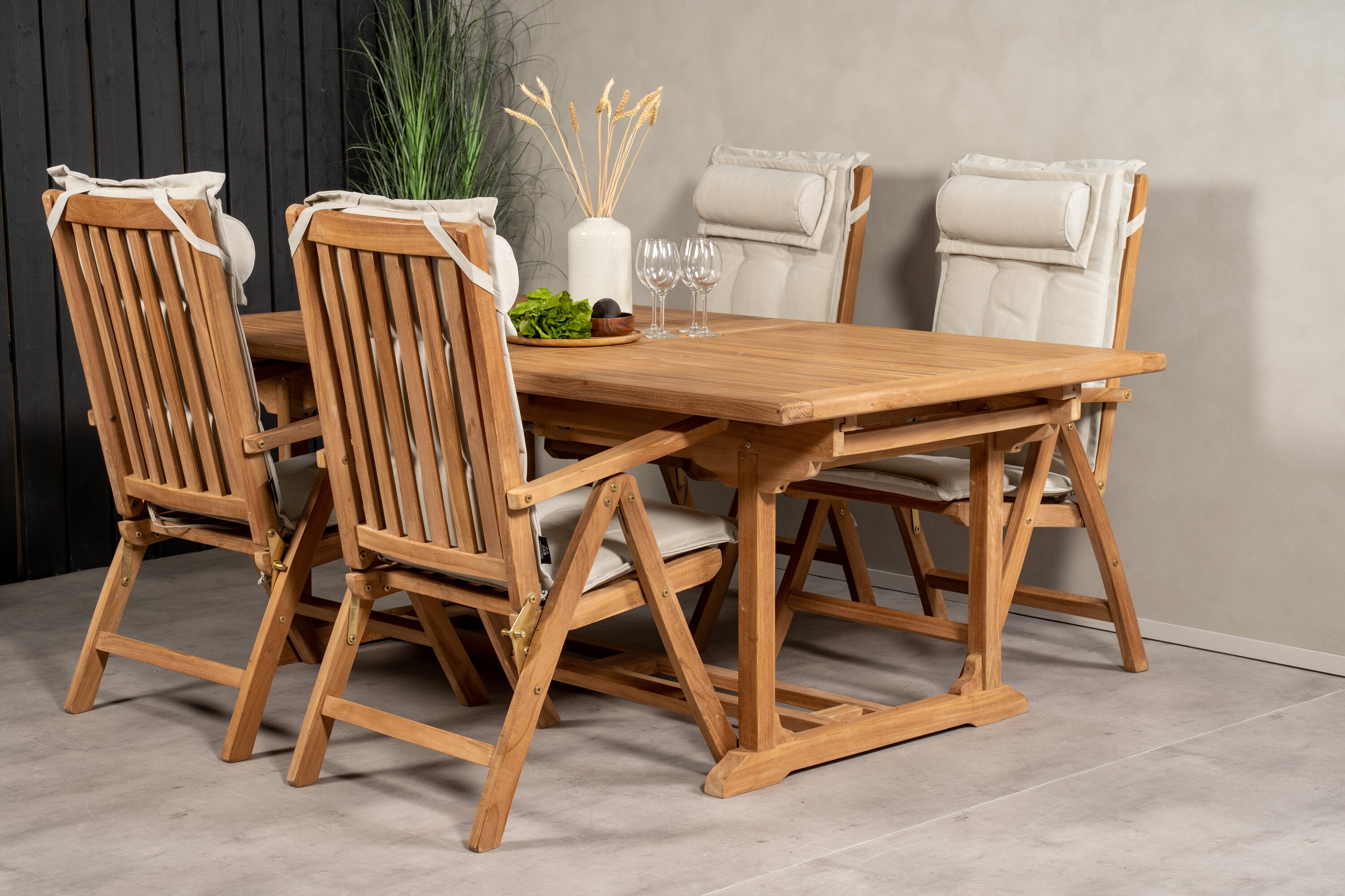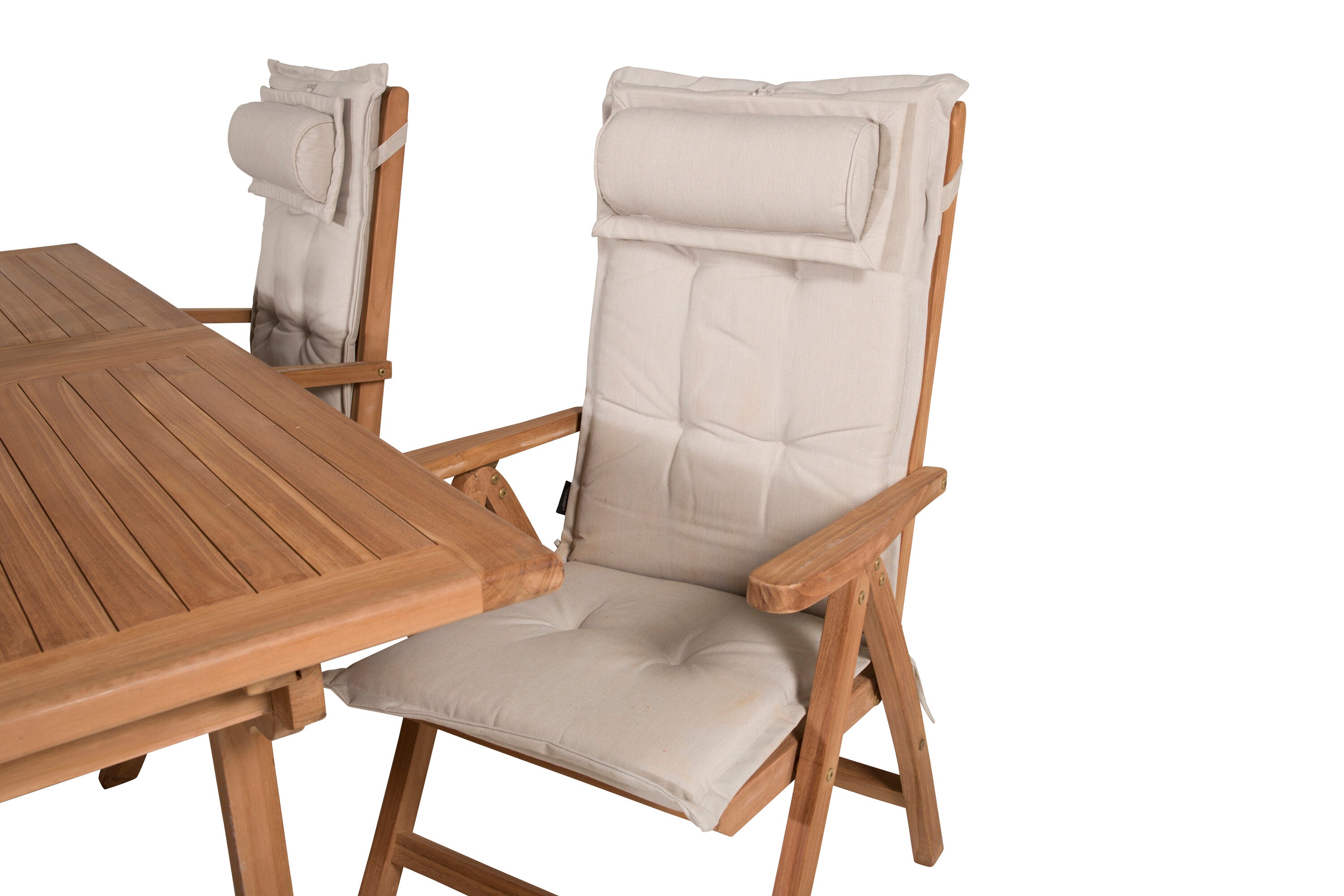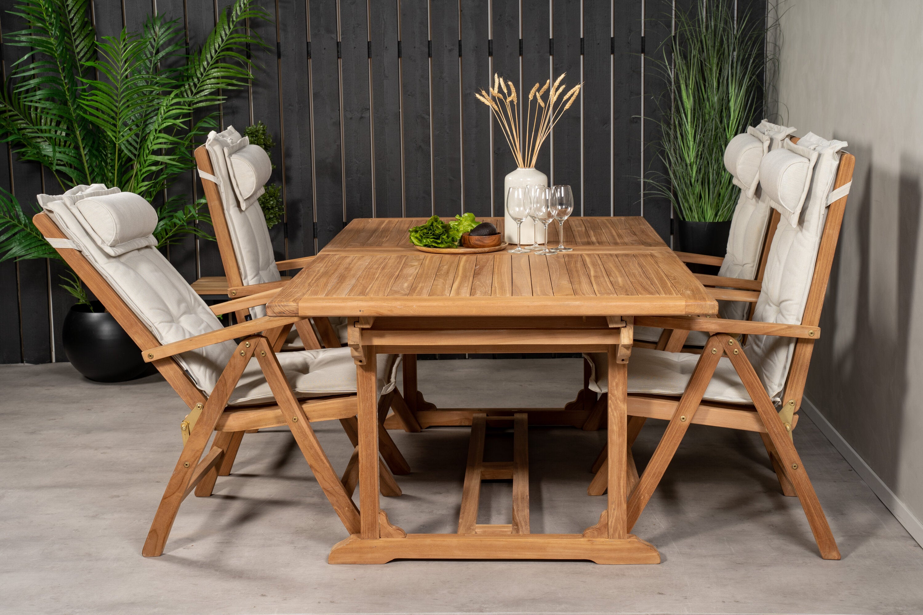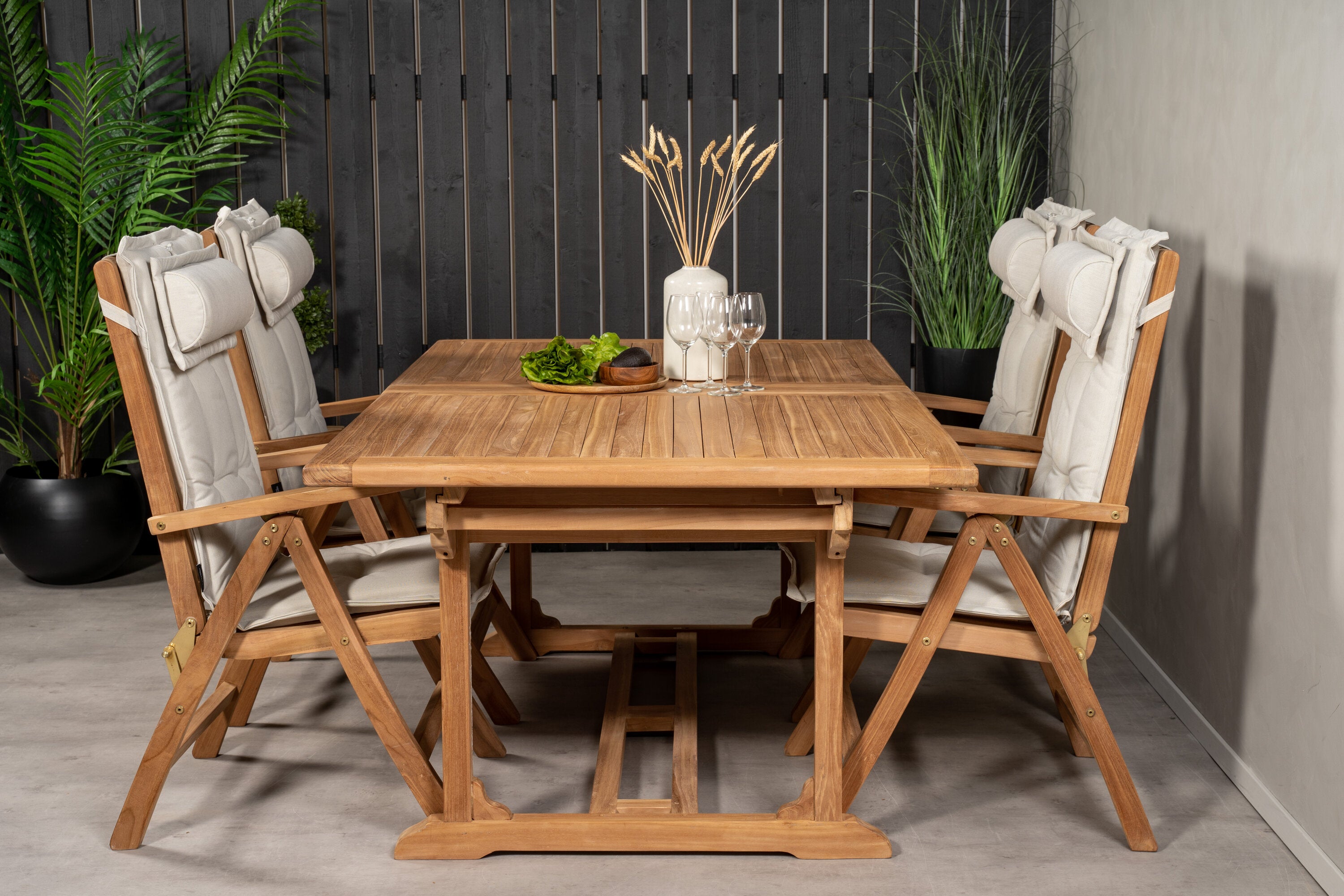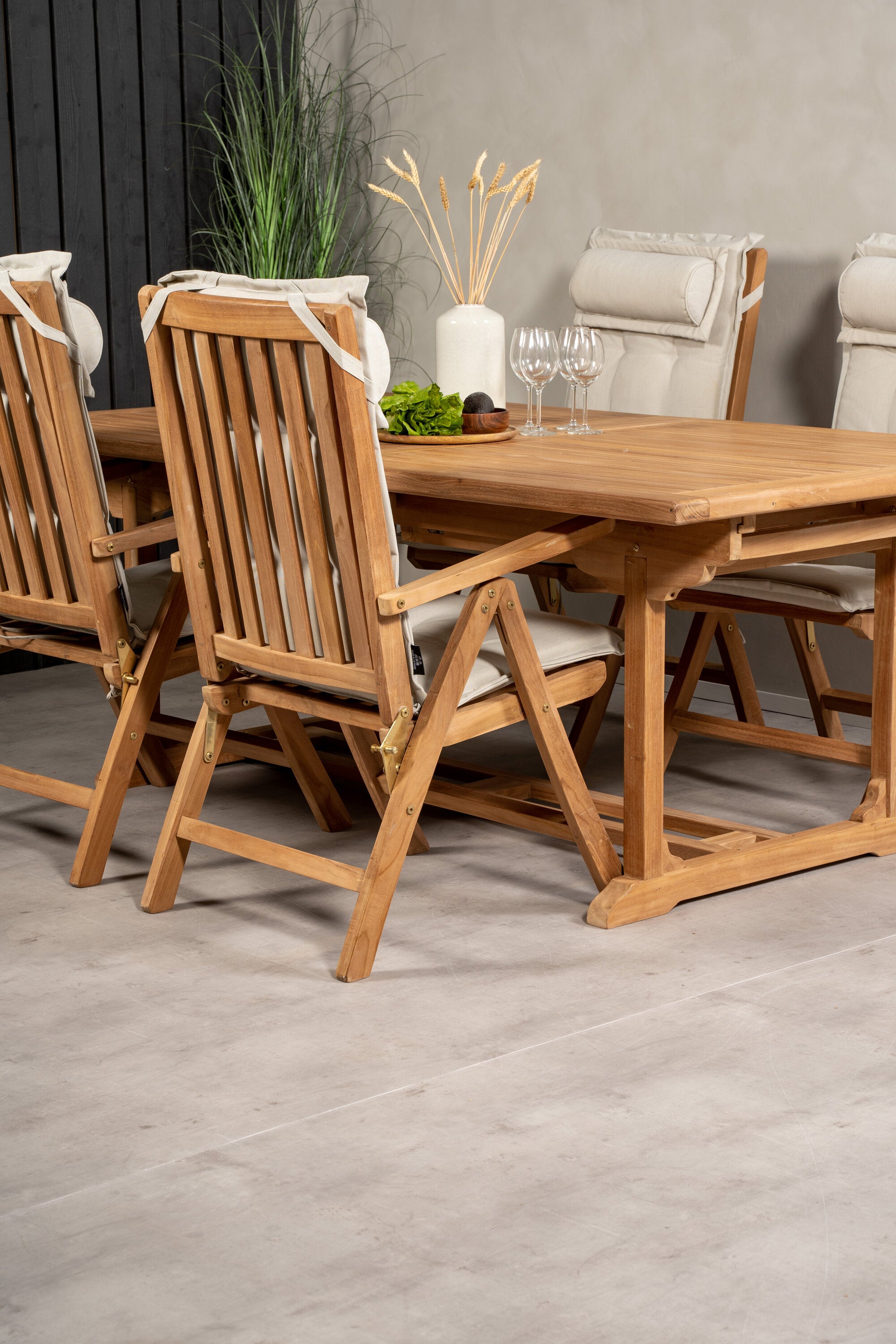 Jídelní stůl Kenya 195/295*110*H75 - Teak+Keňa 5-polohová skládací židle - Teak_