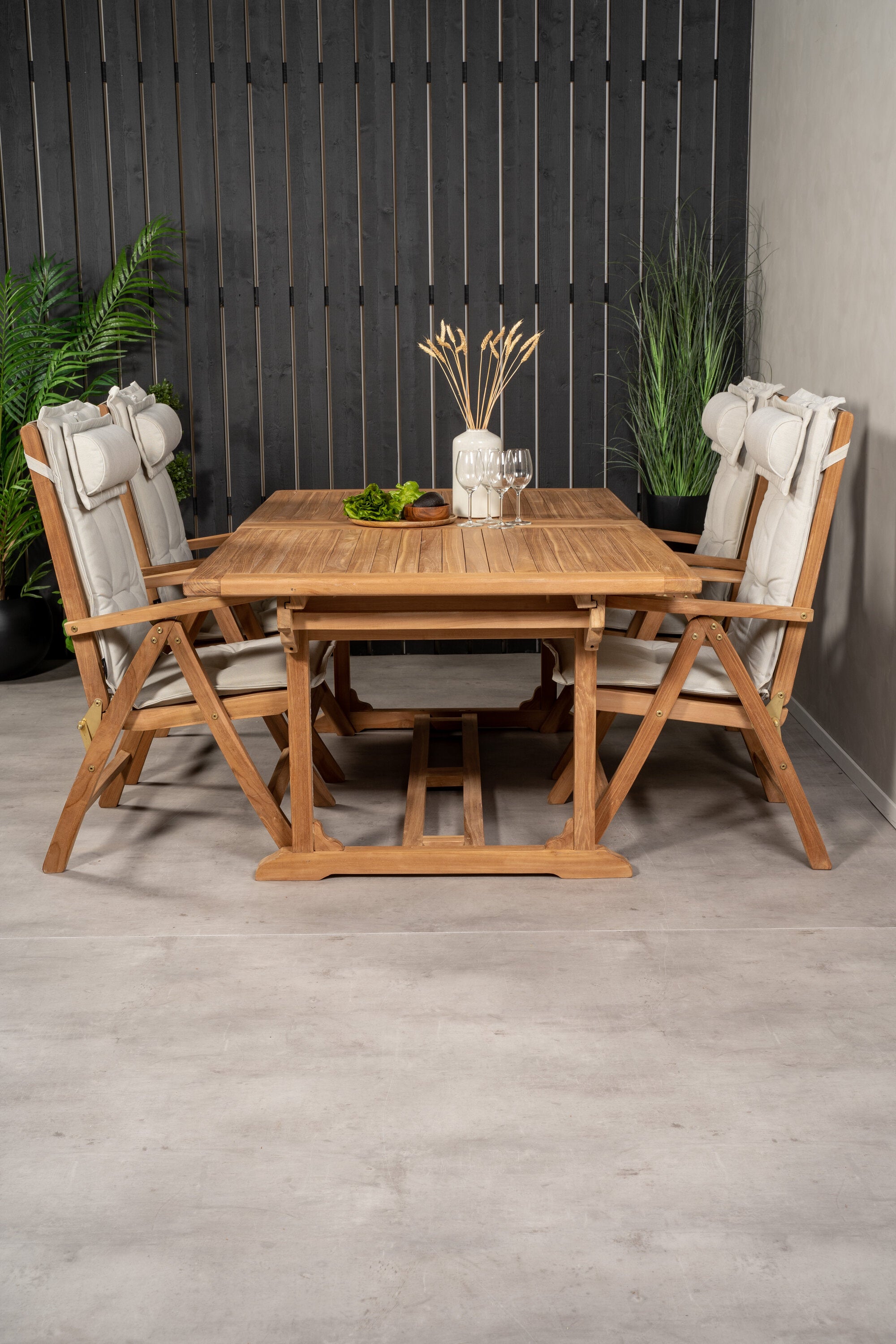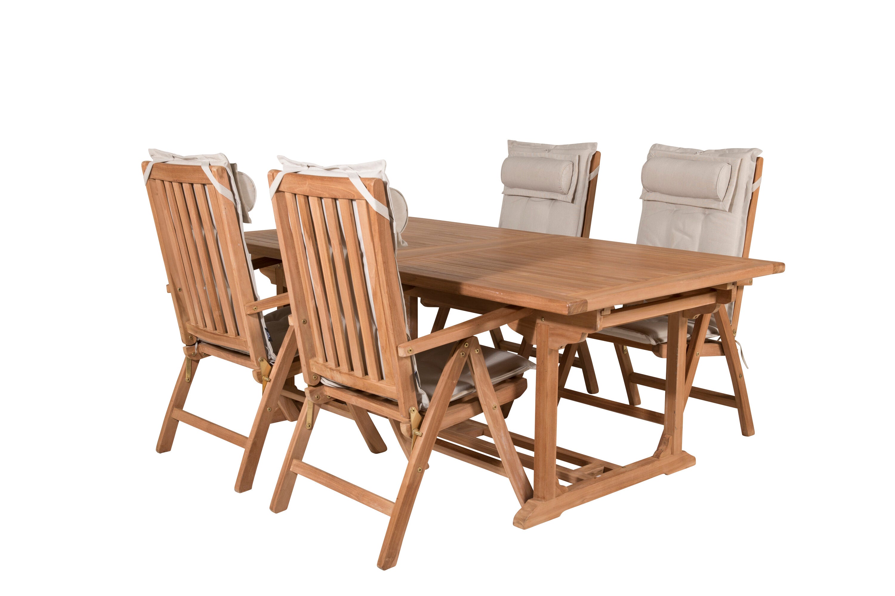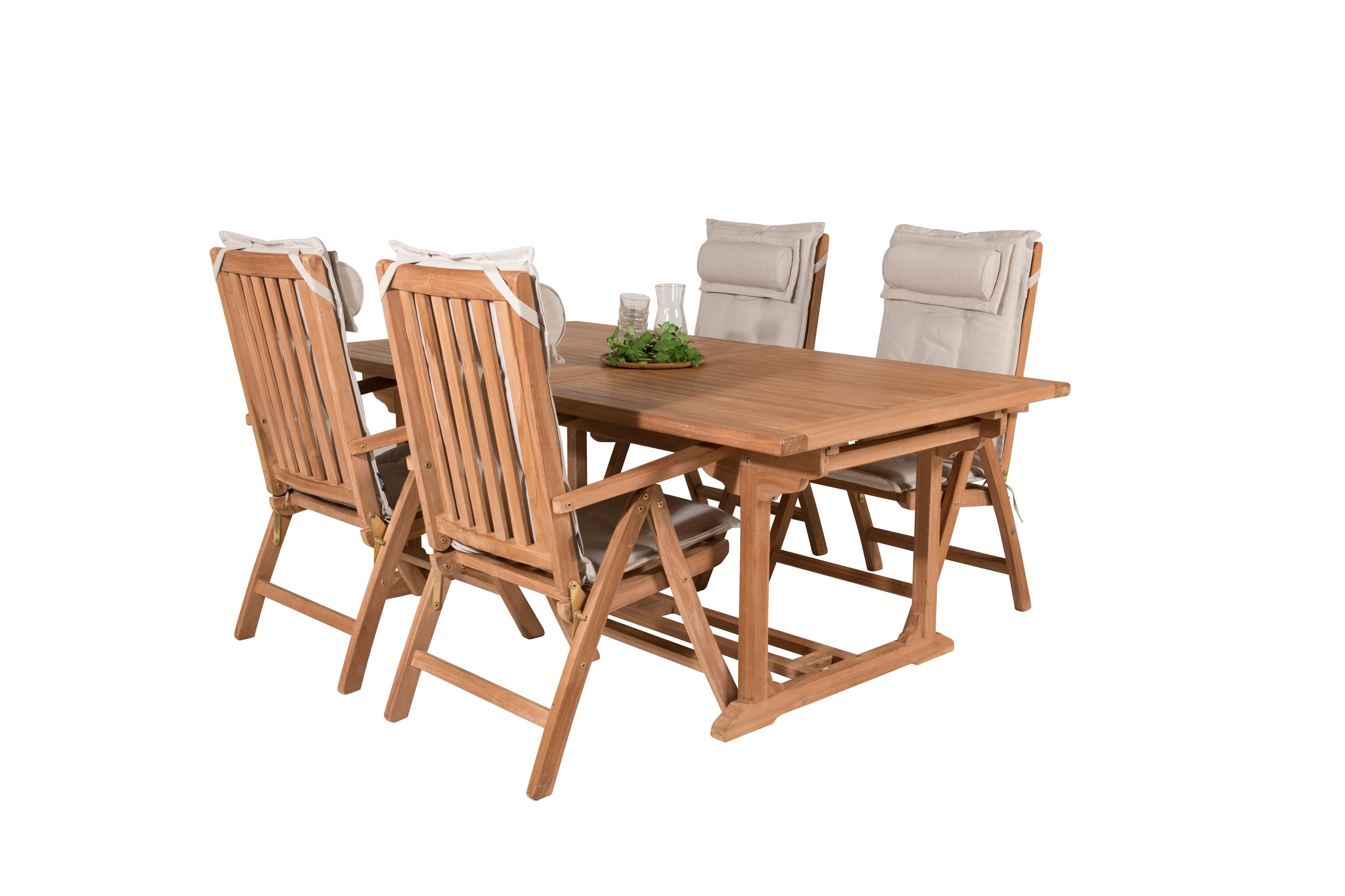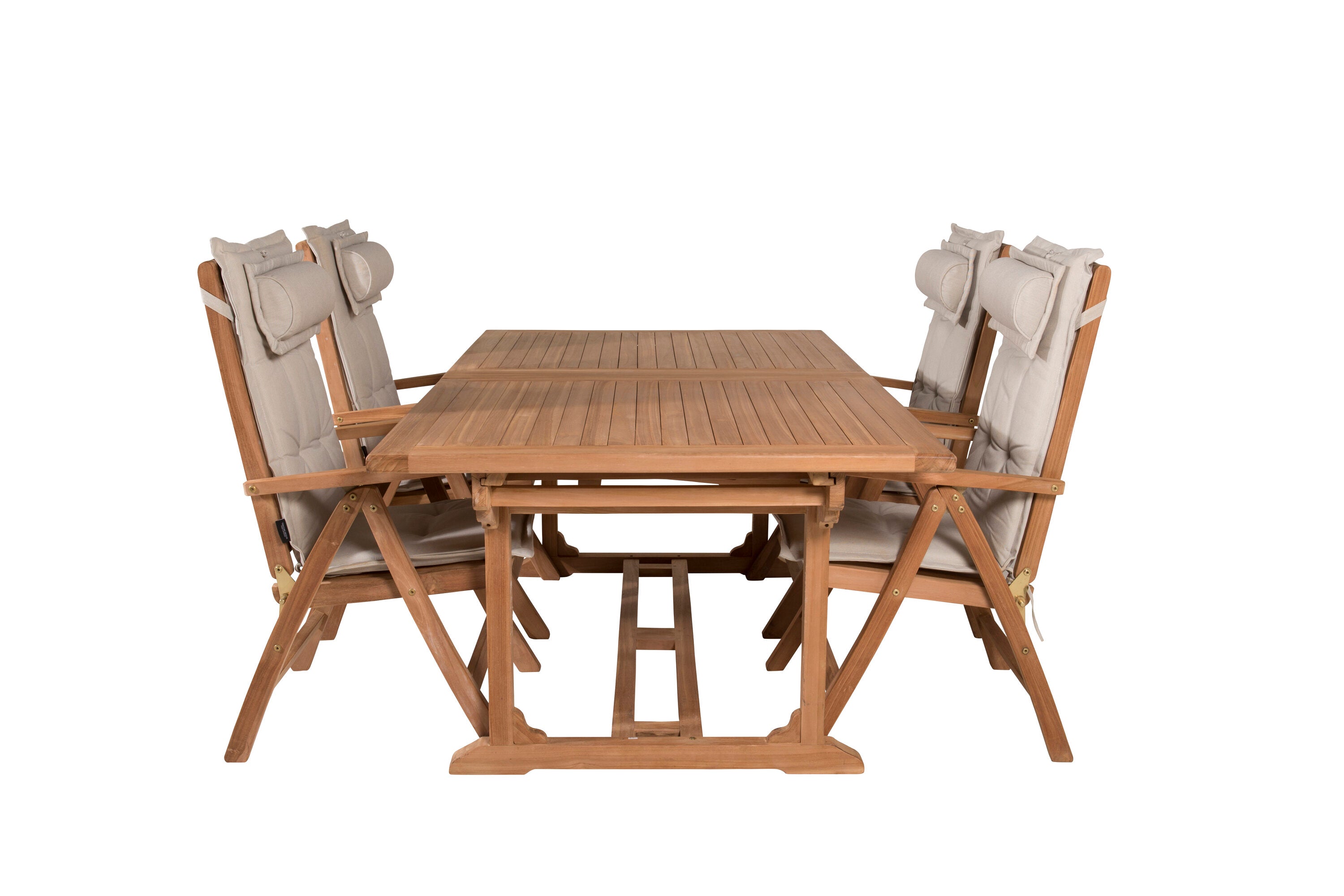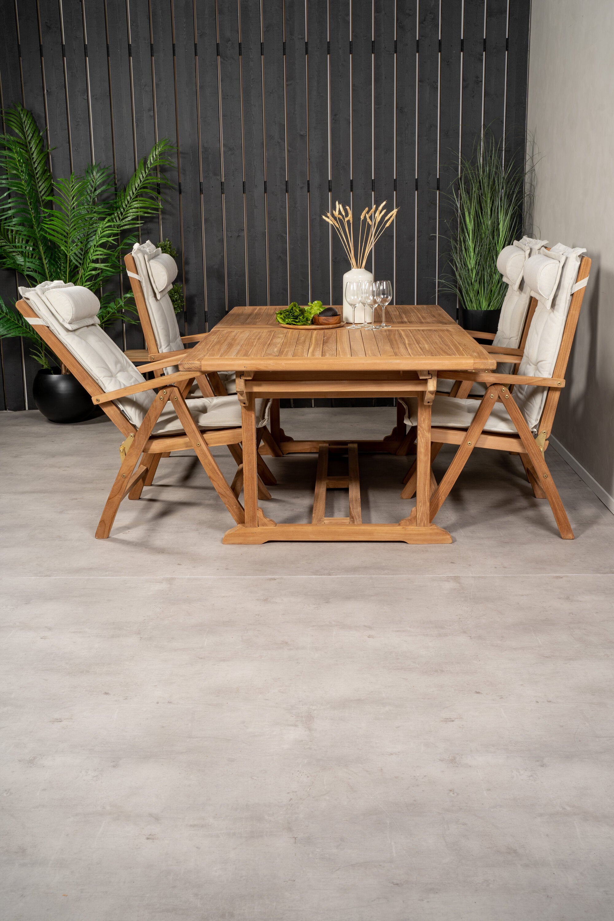 Jídelní stůl Kenya 195/295*110*H75 - Teak+Keňa 5-polohová skládací židle - Teak_