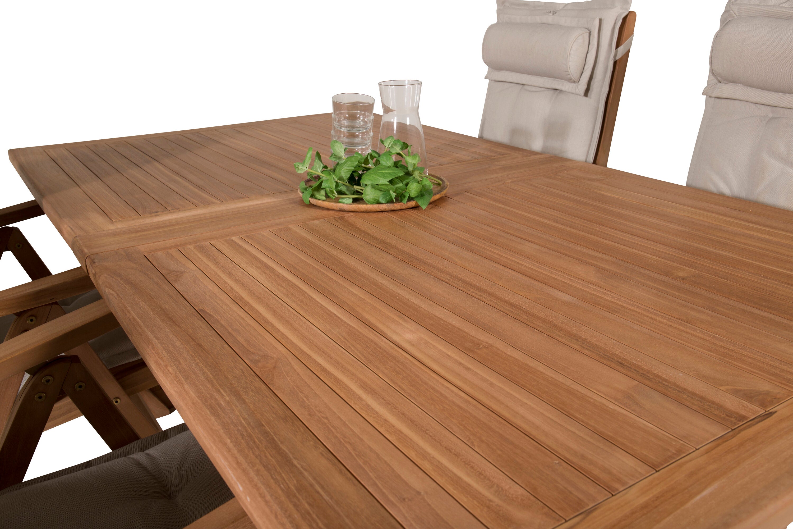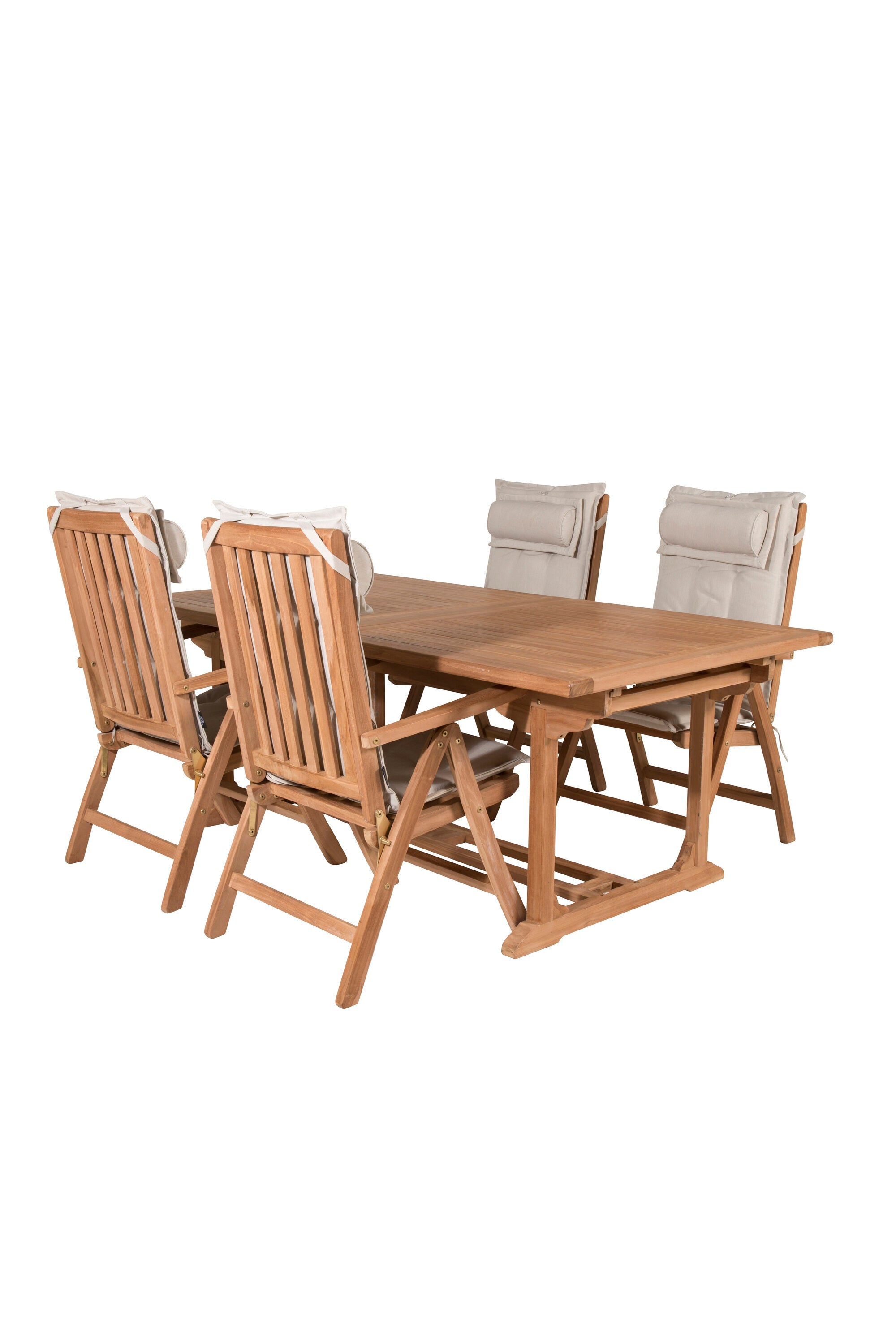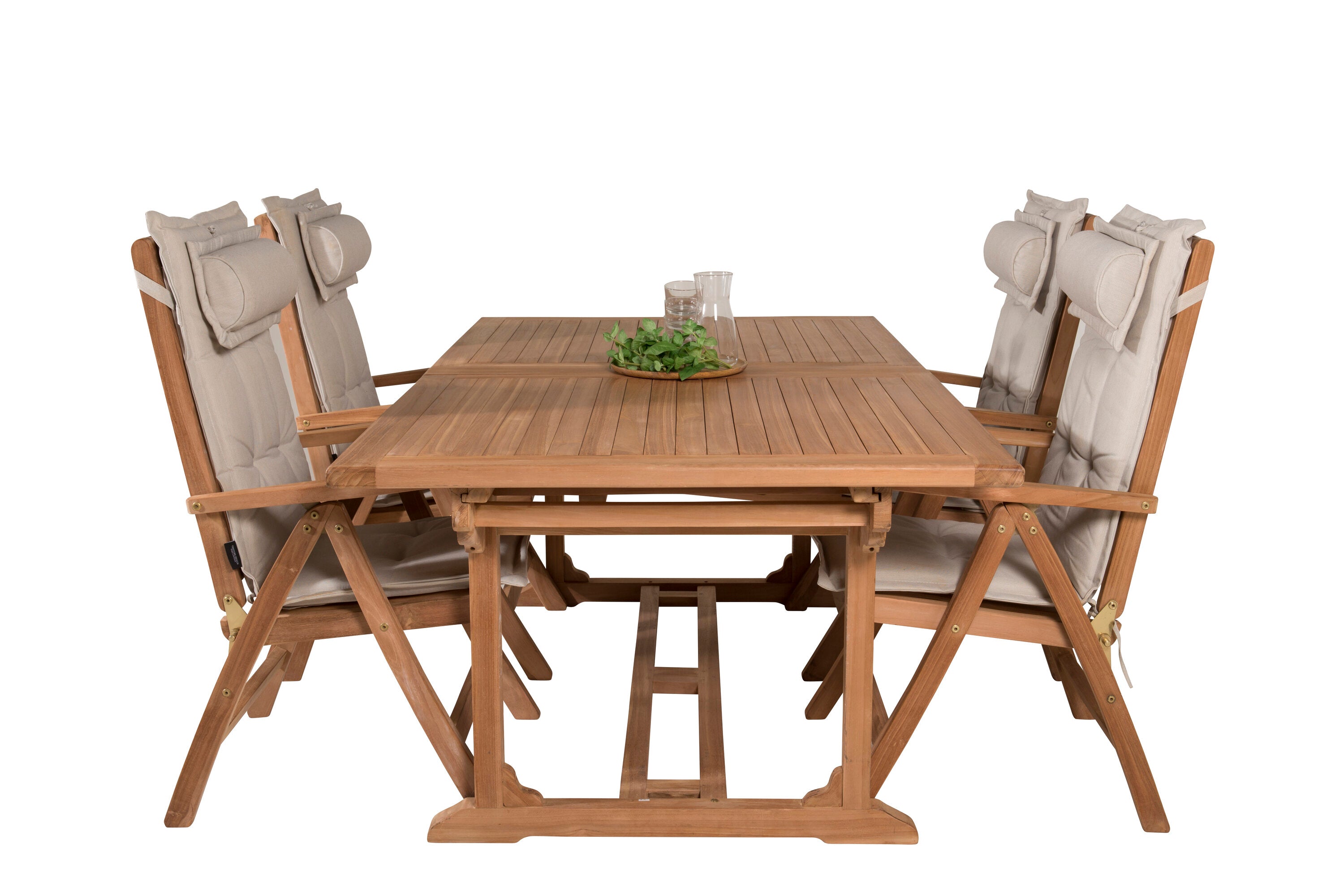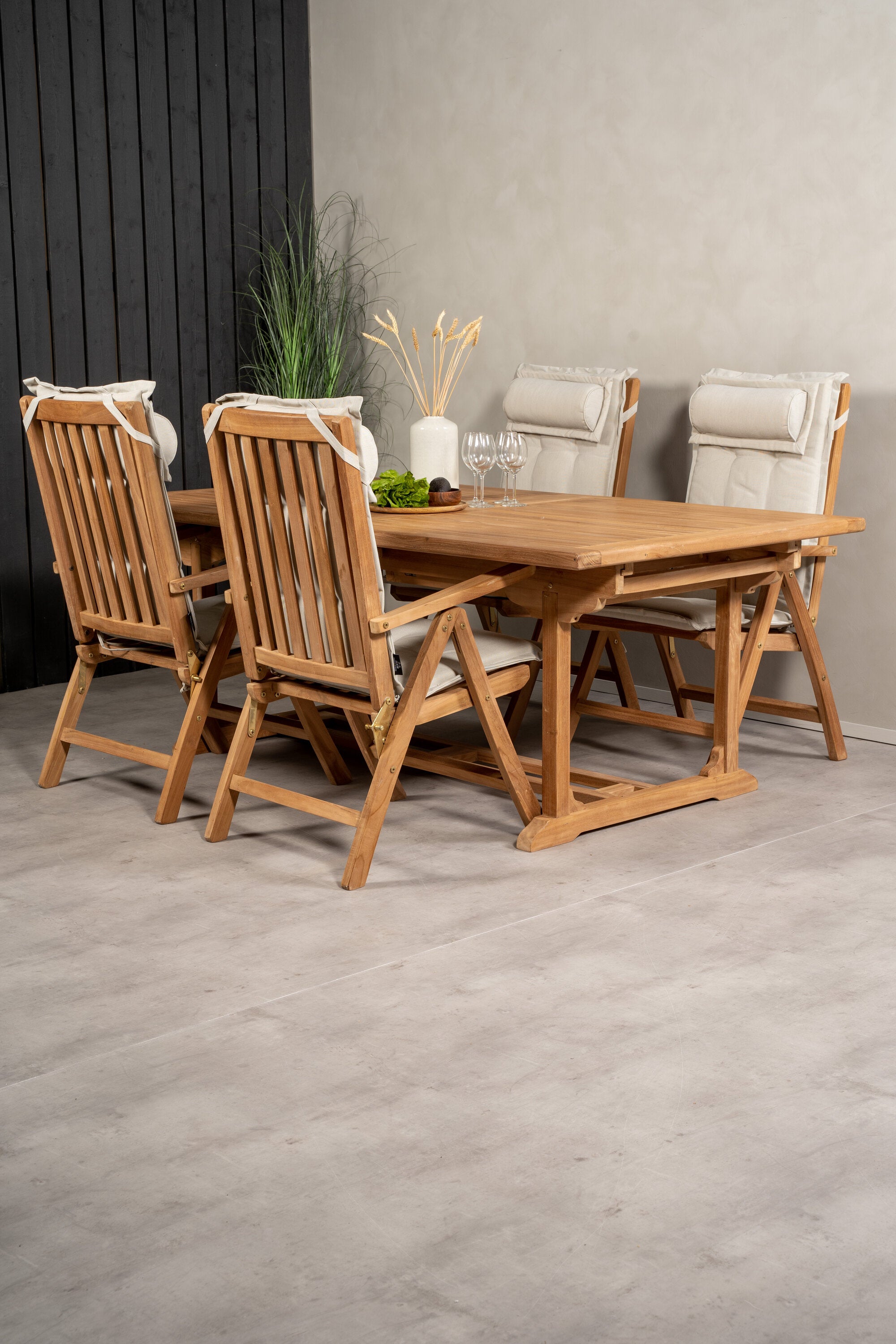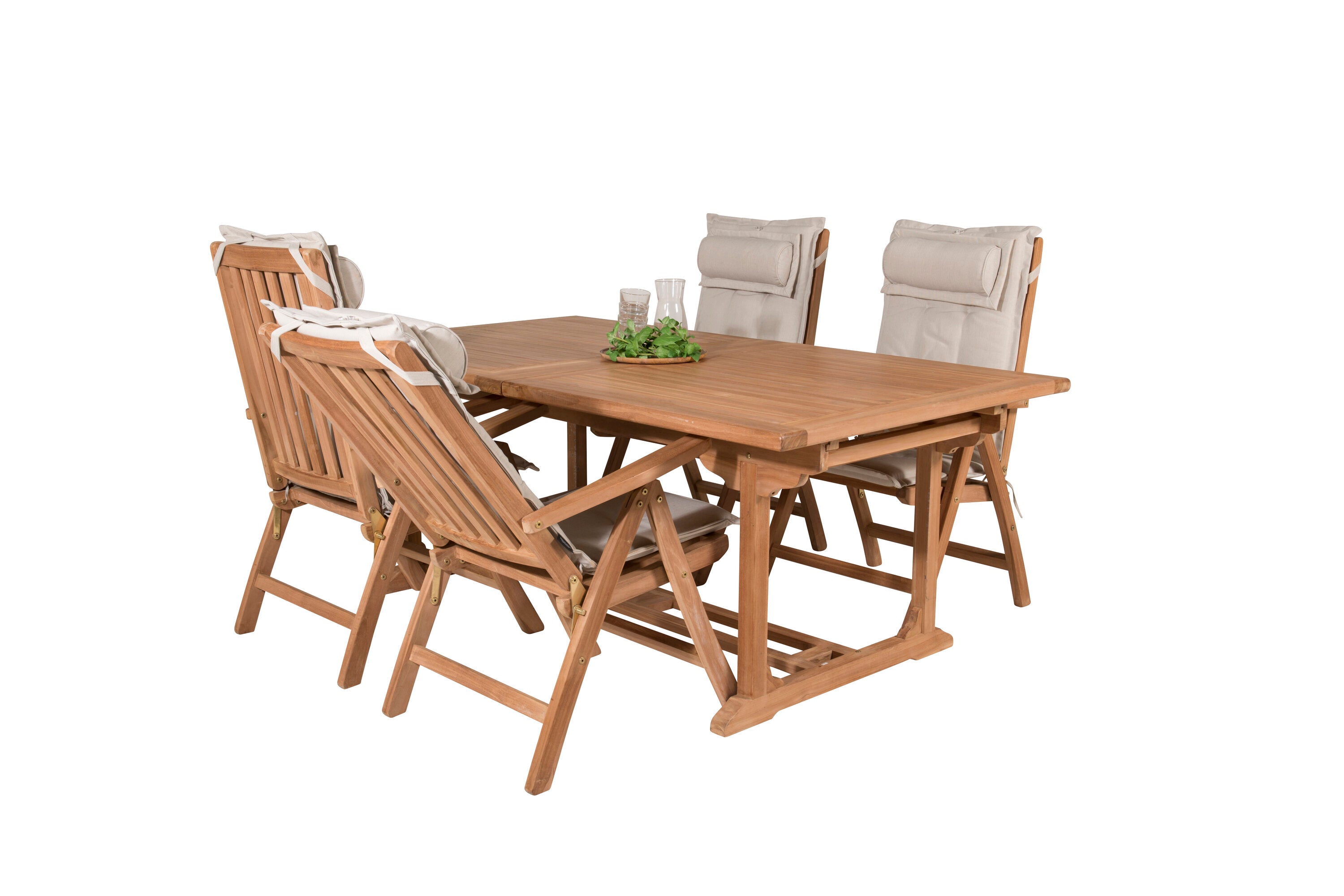Jídelní stůl Kenya 195/295*110*H75 - Teak+Keňa 5-polohová skládací židle - Teak_